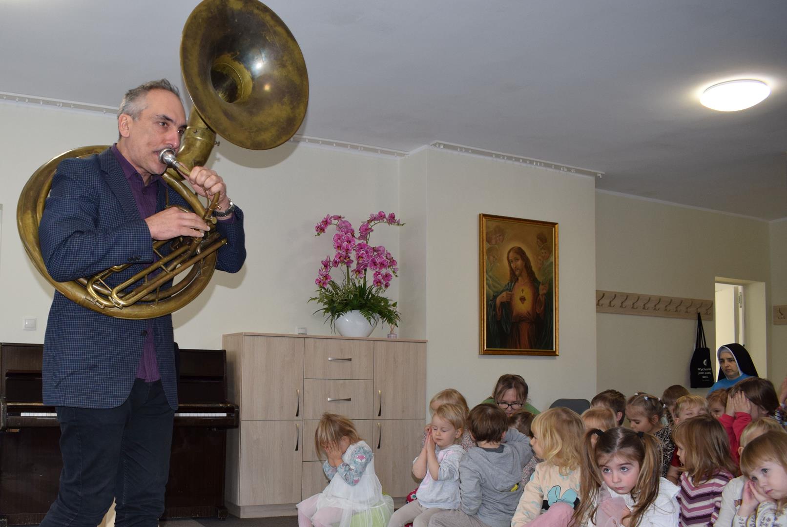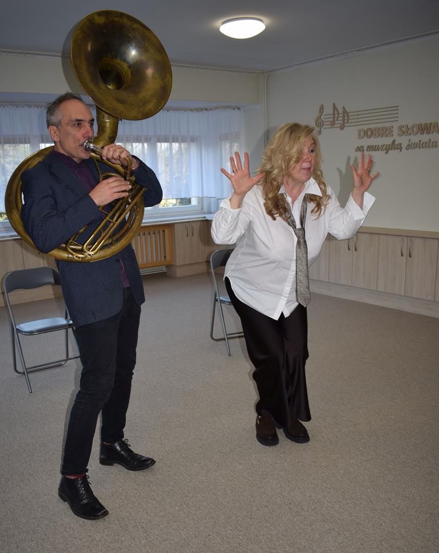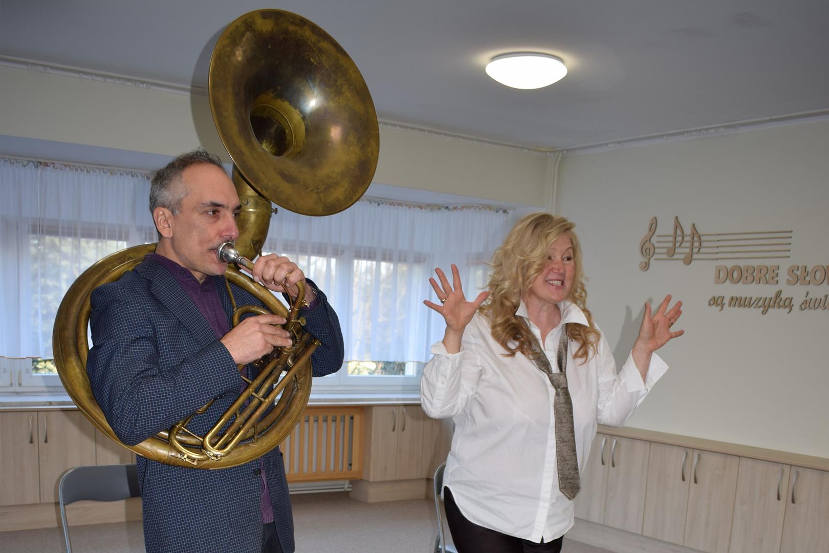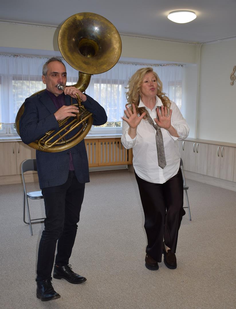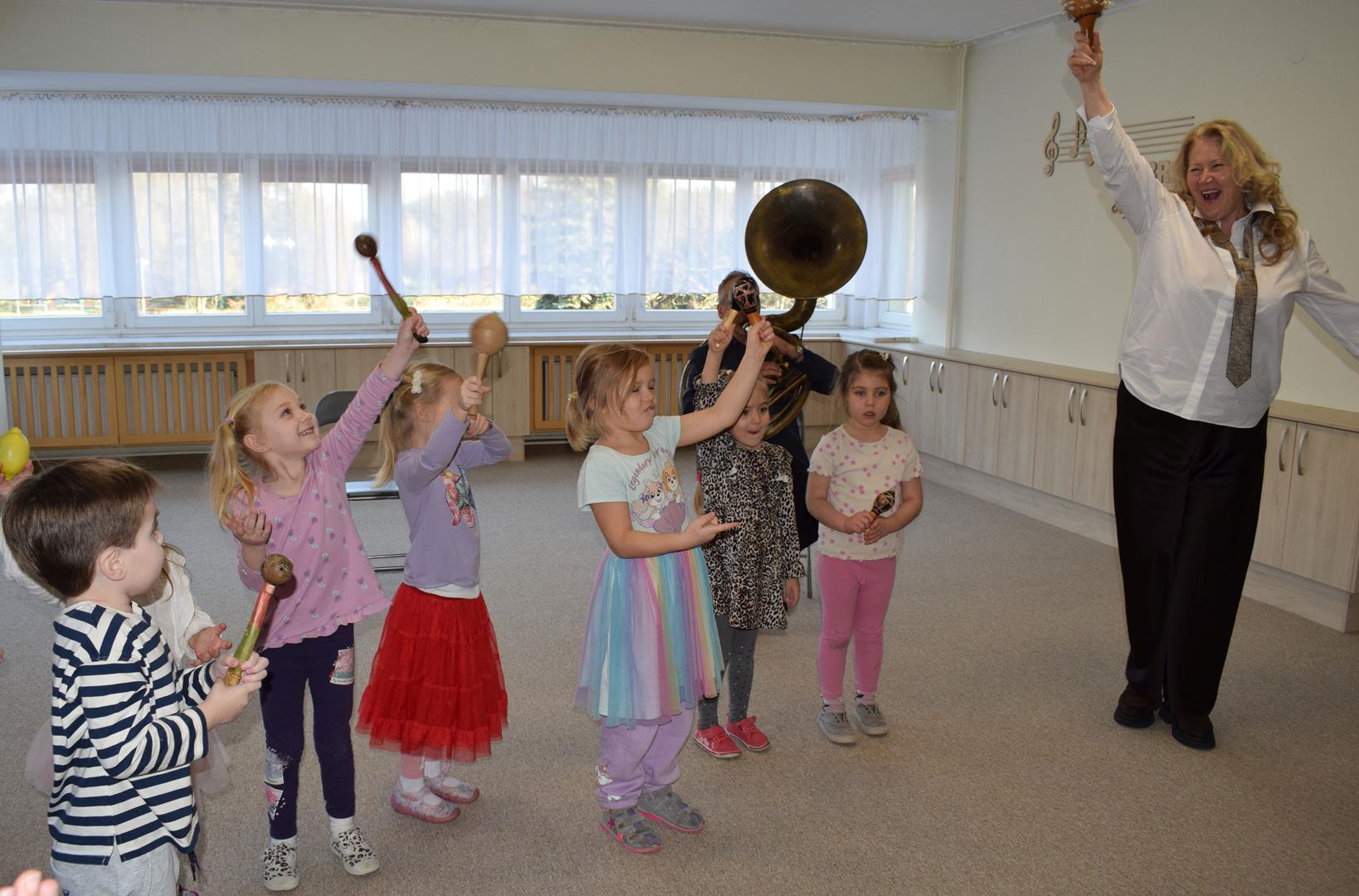 W miesiącu listopadzie pani Izabella zabrała nas w podróż do Krainy Muzyki. Tym razem mogliśmy poznać największy i najniżej brzmiący instrument w orkiestrowej rodzinie dętych blaszanych – suzafon. Wielki i wydający potężne dźwięki przyciągnął samego słonia, który rozpoznał w niej znajomo brzmiące nuty. A nas najbardziej zachwycił jego wygląd. Gdyby nie ciężar, mógłby stanowić iście oryginalne nakrycie głowy każdej damy.