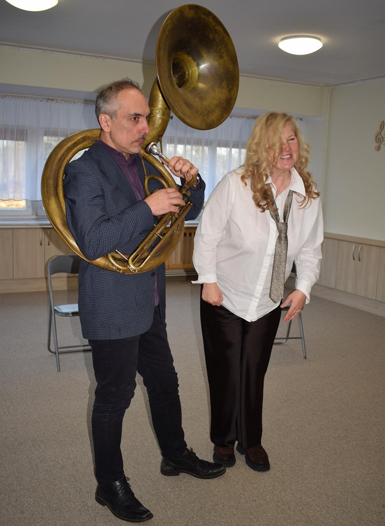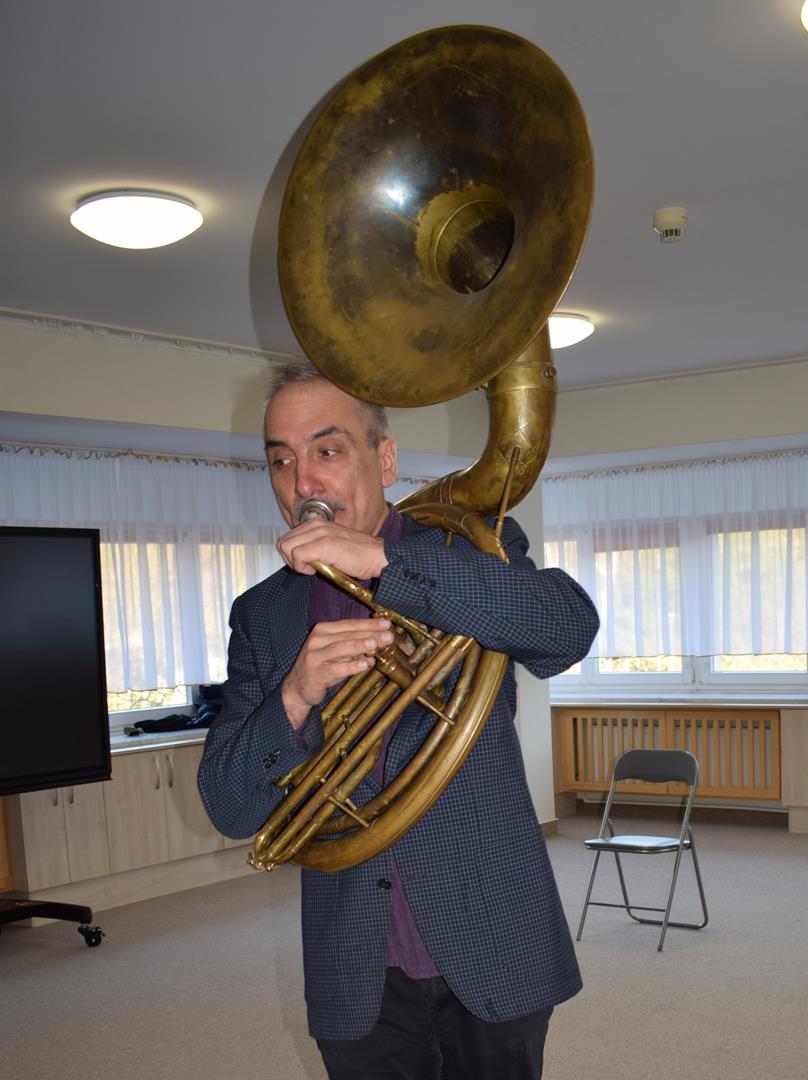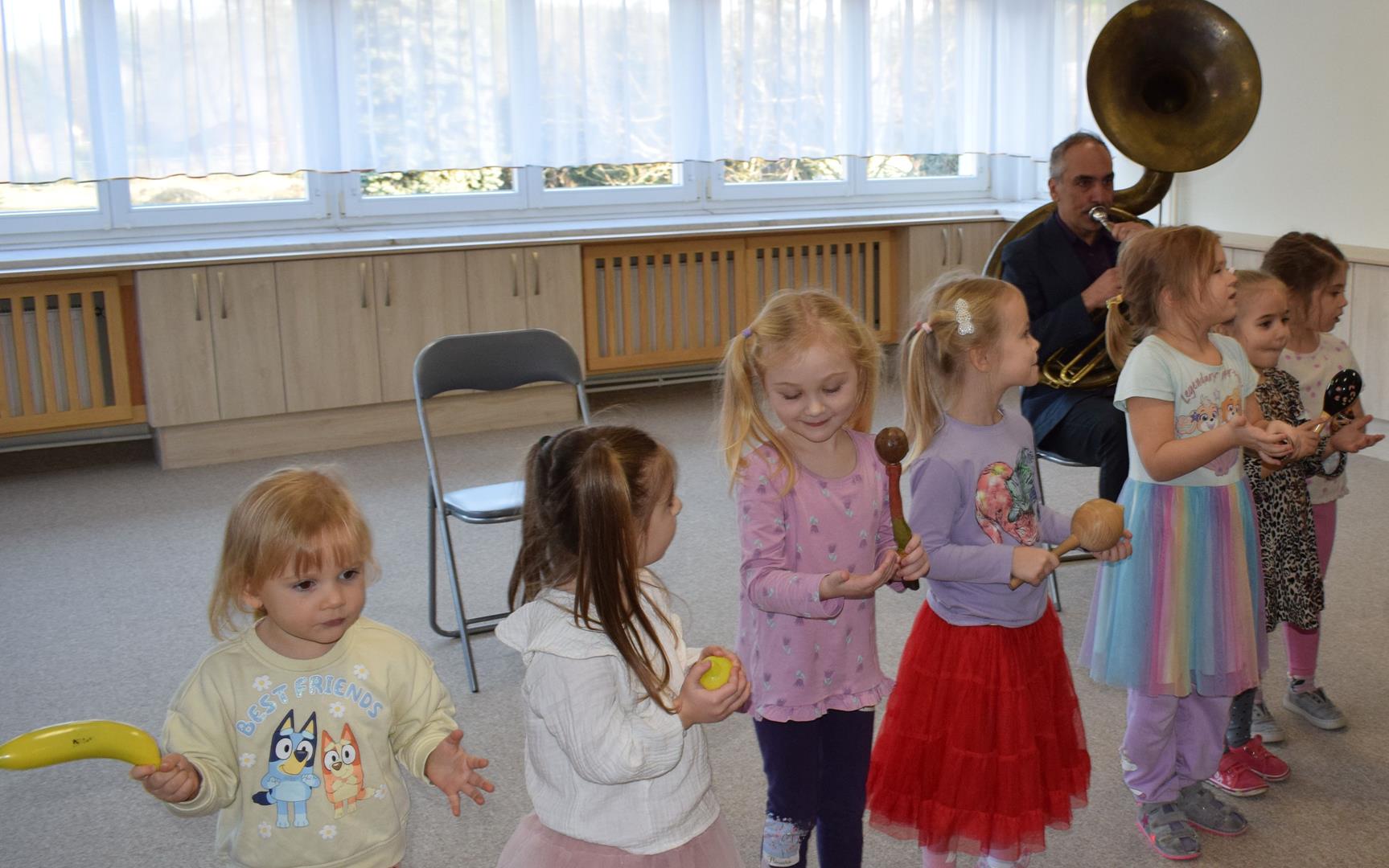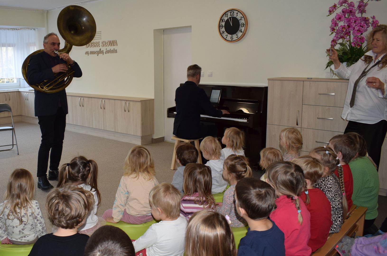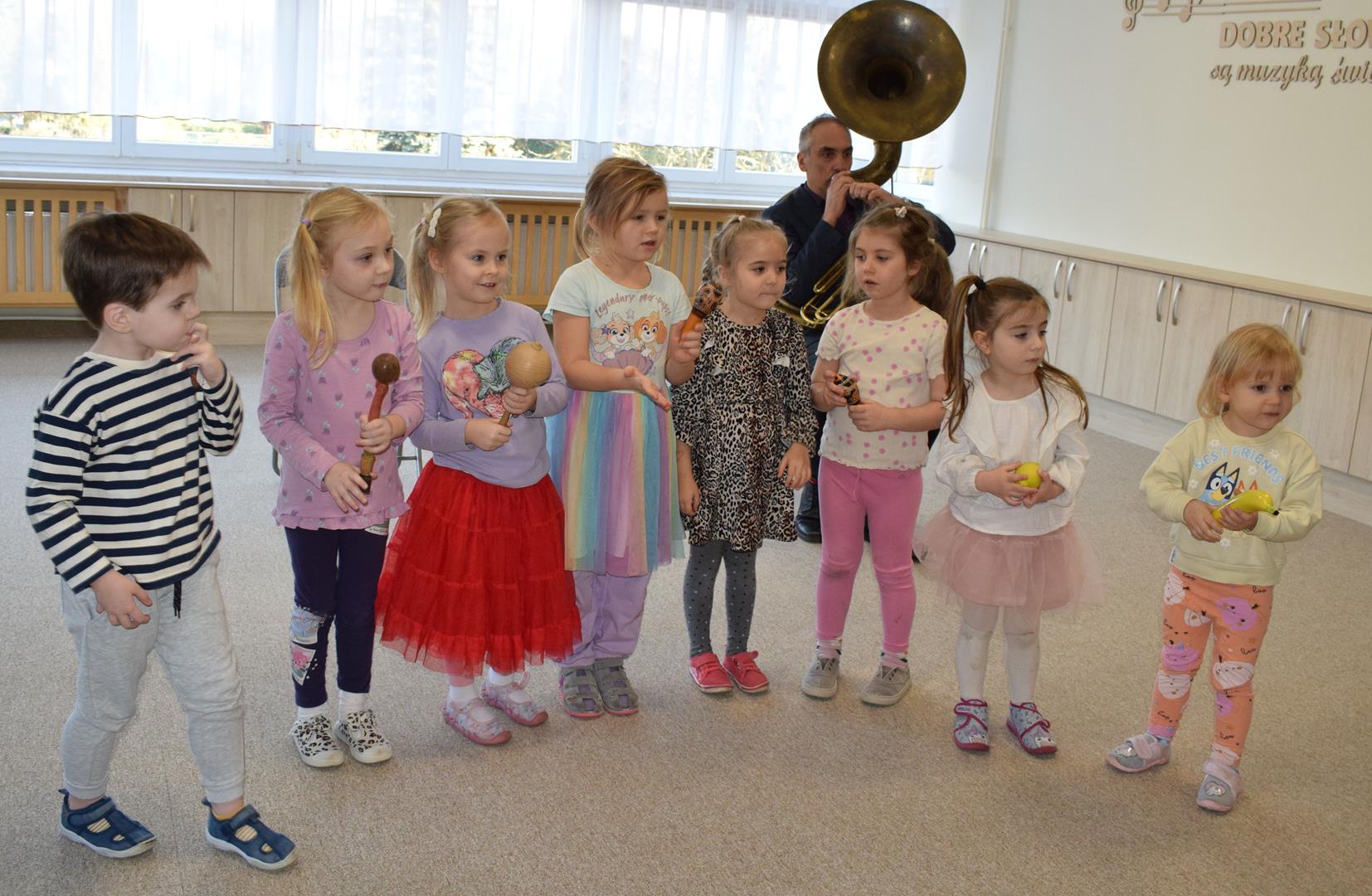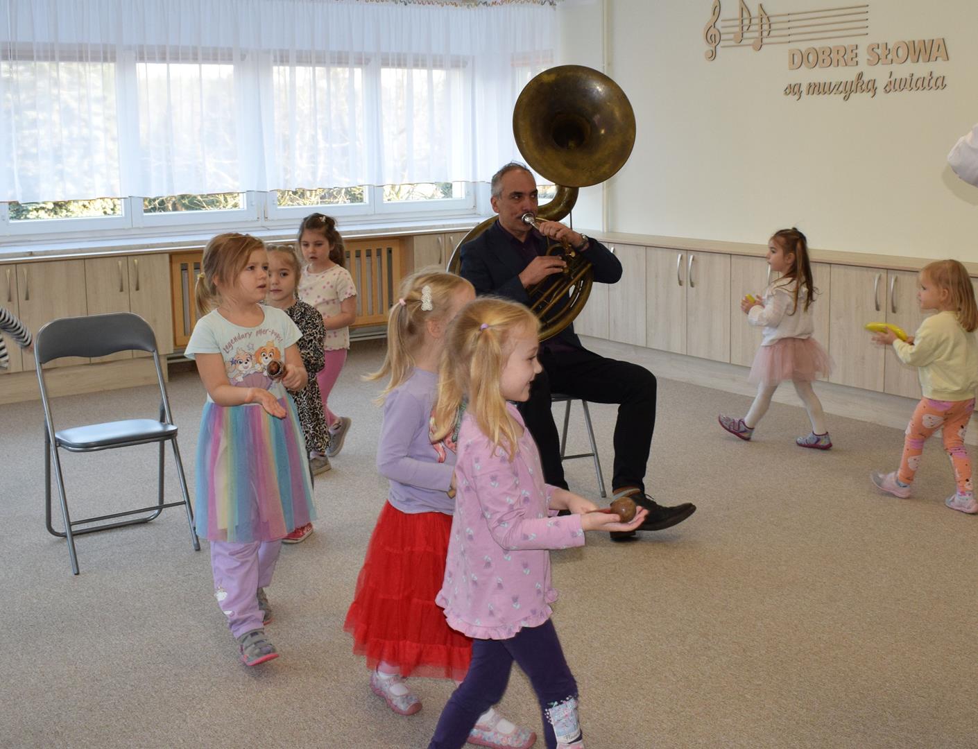 W miesiącu listopadzie pani Izabella zabrała nas w podróż do Krainy Muzyki. Tym razem mogliśmy poznać największy i najniżej brzmiący instrument w orkiestrowej rodzinie dętych blaszanych – suzafon. Wielki i wydający potężne dźwięki przyciągnął samego słonia, który rozpoznał w niej znajomo brzmiące nuty. A nas najbardziej zachwycił jego wygląd. Gdyby nie ciężar, mógłby stanowić iście oryginalne nakrycie głowy każdej damy.