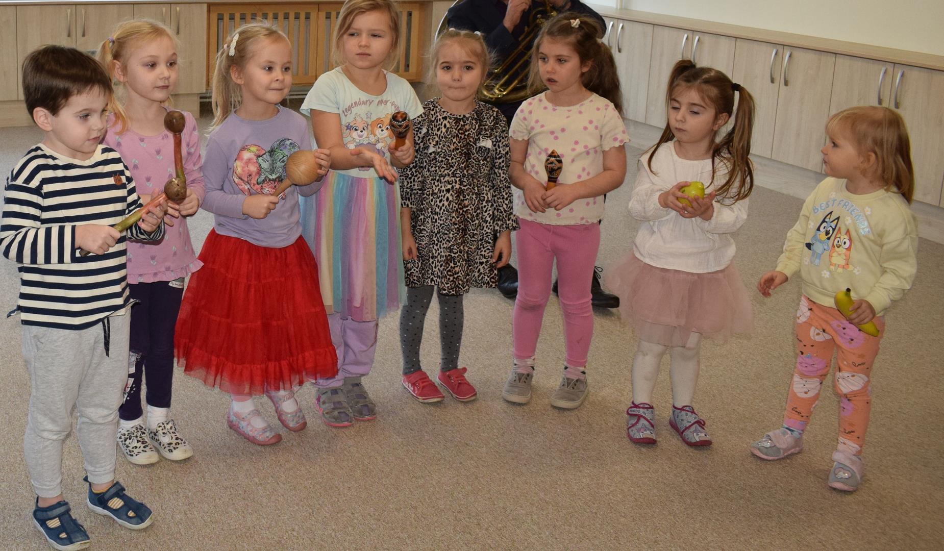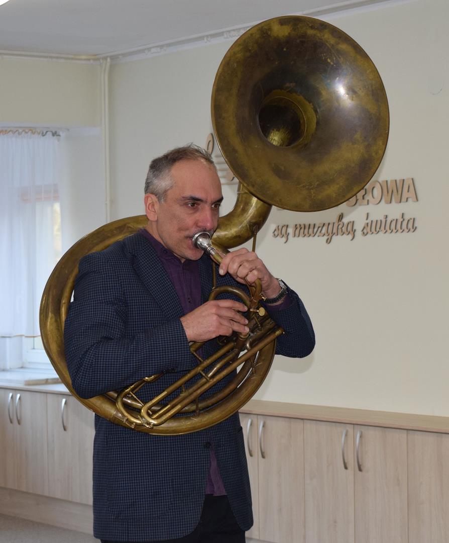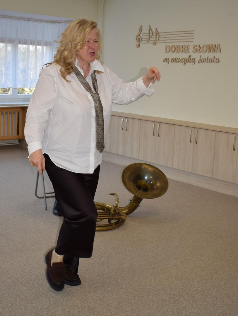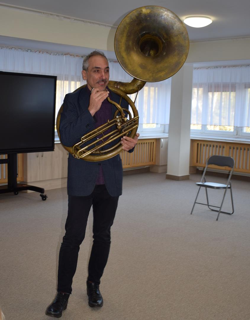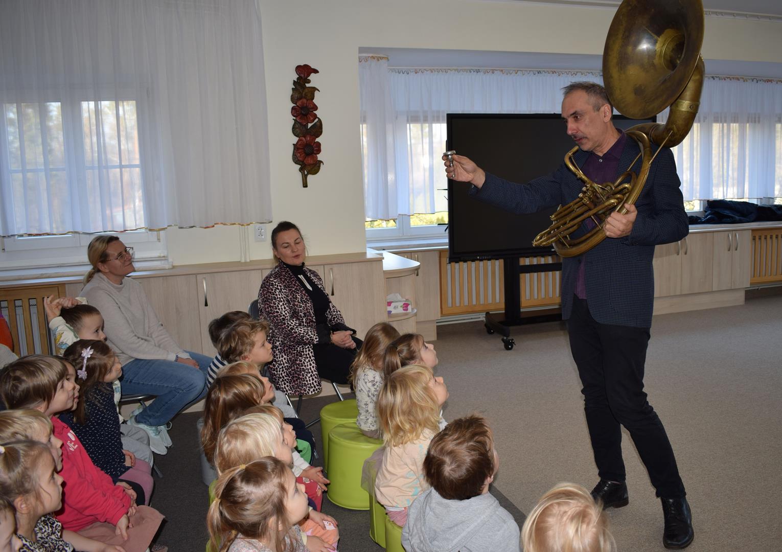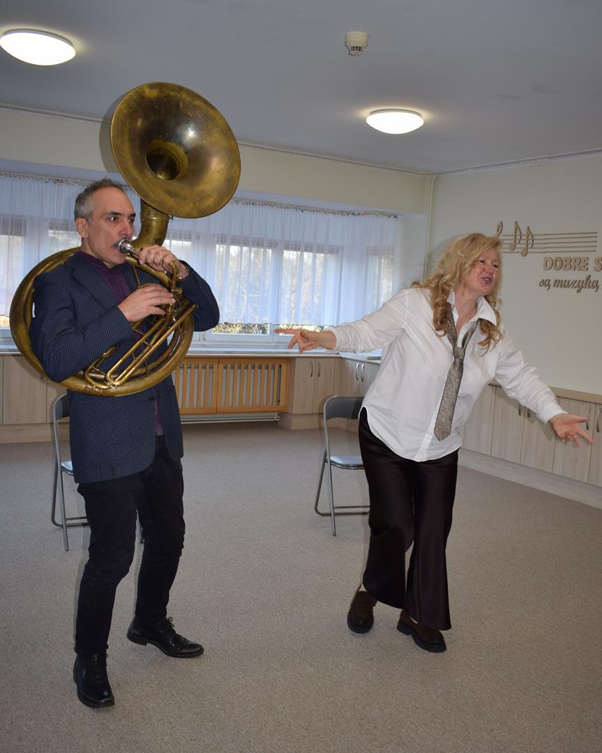W miesiącu listopadzie pani Izabella zabrała nas w podróż do Krainy Muzyki. Tym razem mogliśmy poznać największy i najniżej brzmiący instrument w orkiestrowej rodzinie dętych blaszanych – suzafon. Wielki i wydający potężne dźwięki przyciągnął samego słonia, który rozpoznał w niej znajomo brzmiące nuty. A nas najbardziej zachwycił jego wygląd. Gdyby nie ciężar, mógłby stanowić iście oryginalne nakrycie głowy każdej damy.