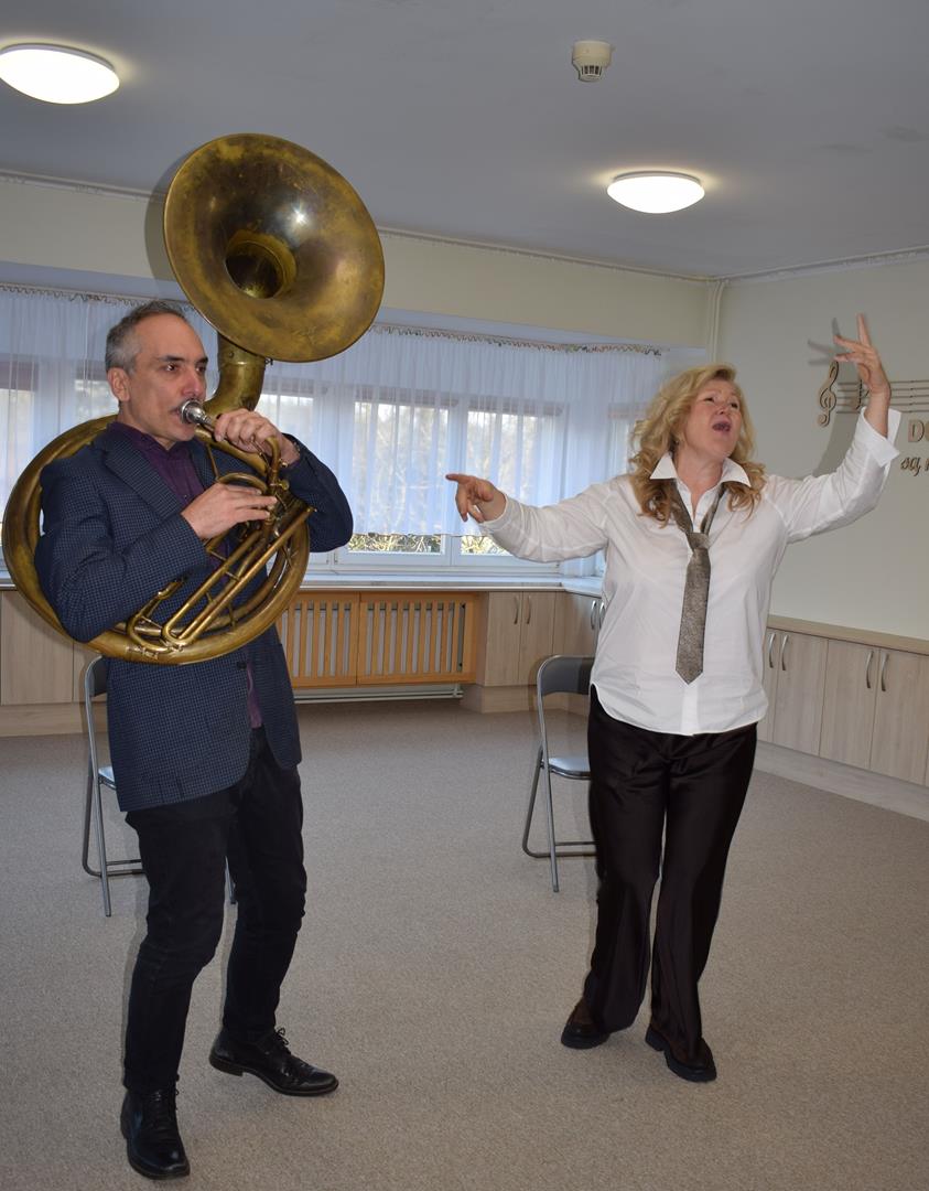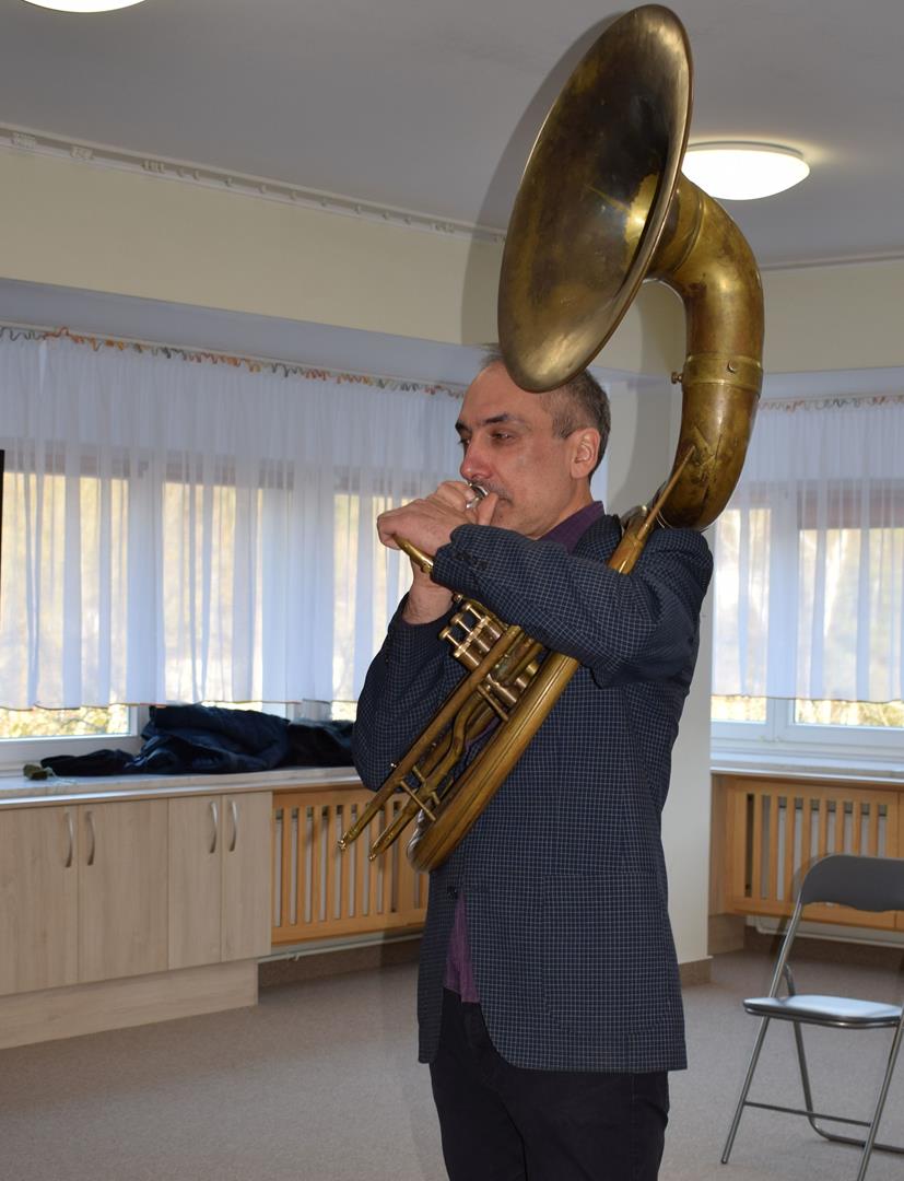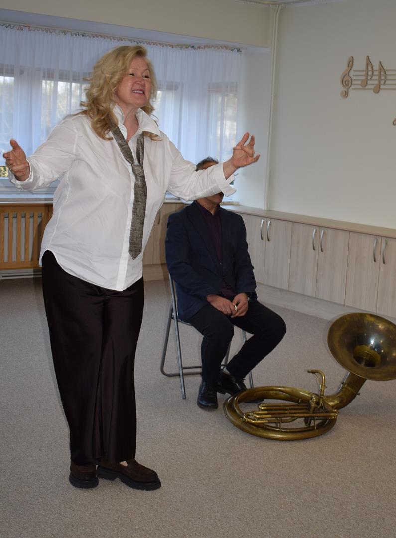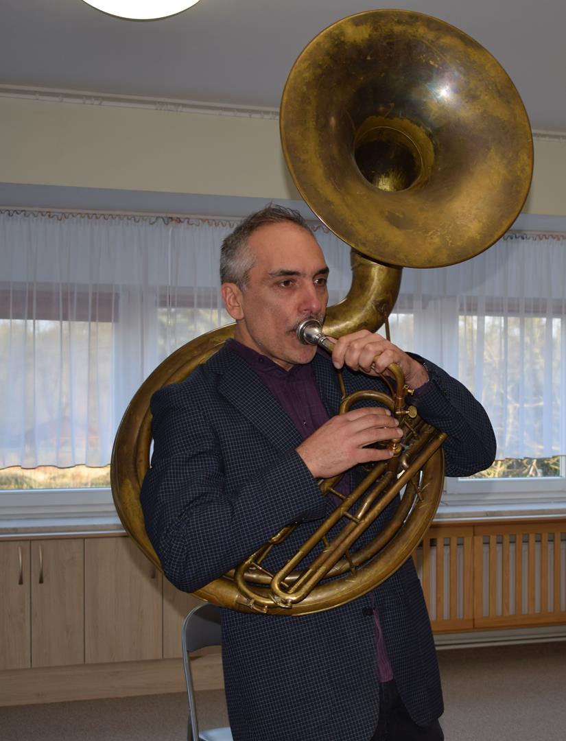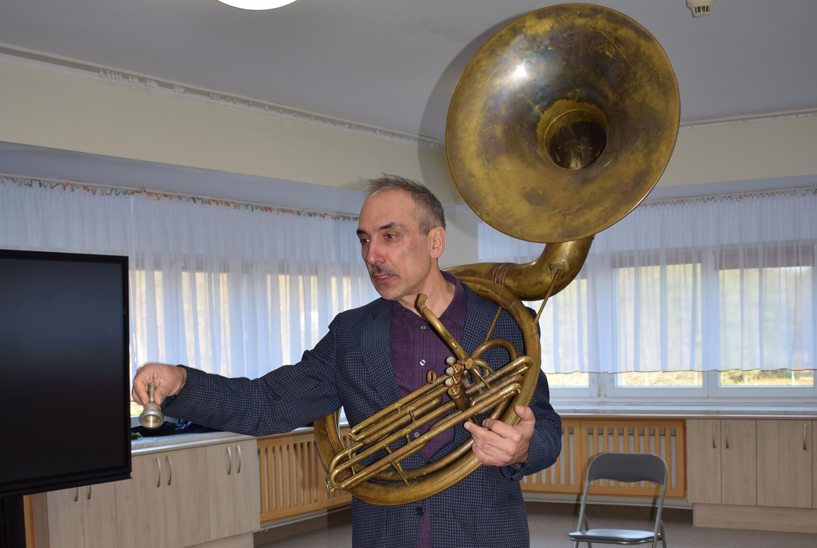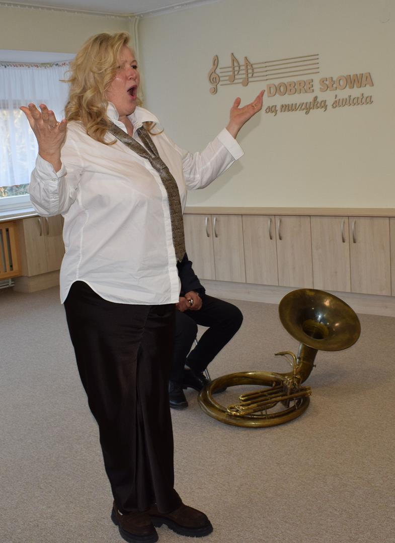 W miesiącu listopadzie pani Izabella zabrała nas w podróż do Krainy Muzyki. Tym razem mogliśmy poznać największy i najniżej brzmiący instrument w orkiestrowej rodzinie dętych blaszanych – suzafon. Wielki i wydający potężne dźwięki przyciągnął samego słonia, który rozpoznał w niej znajomo brzmiące nuty. A nas najbardziej zachwycił jego wygląd. Gdyby nie ciężar, mógłby stanowić iście oryginalne nakrycie głowy każdej damy.