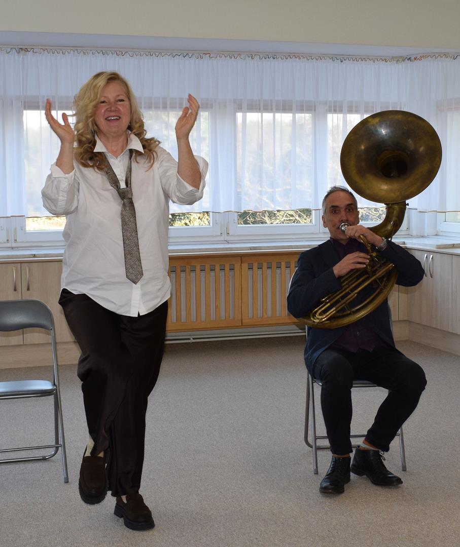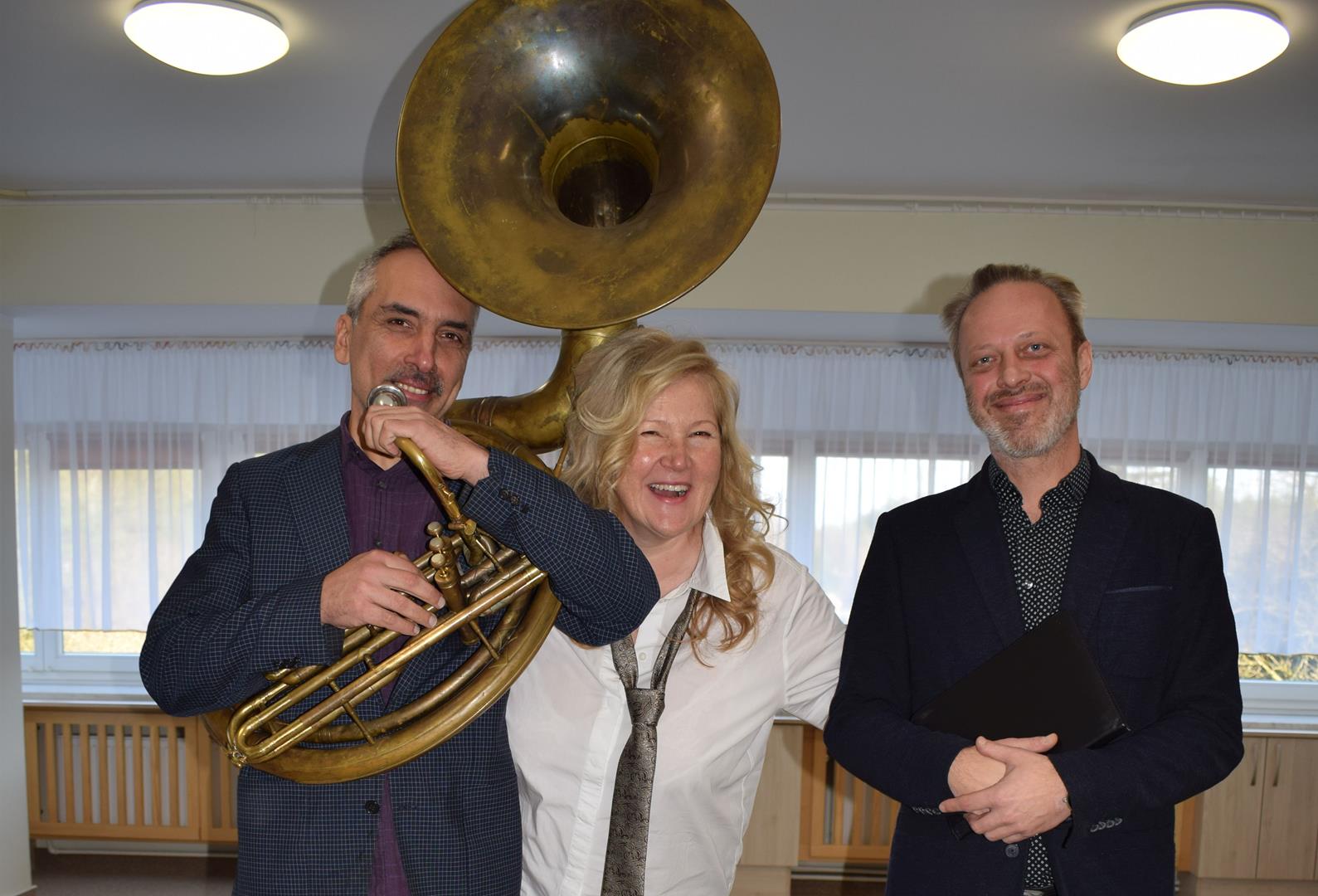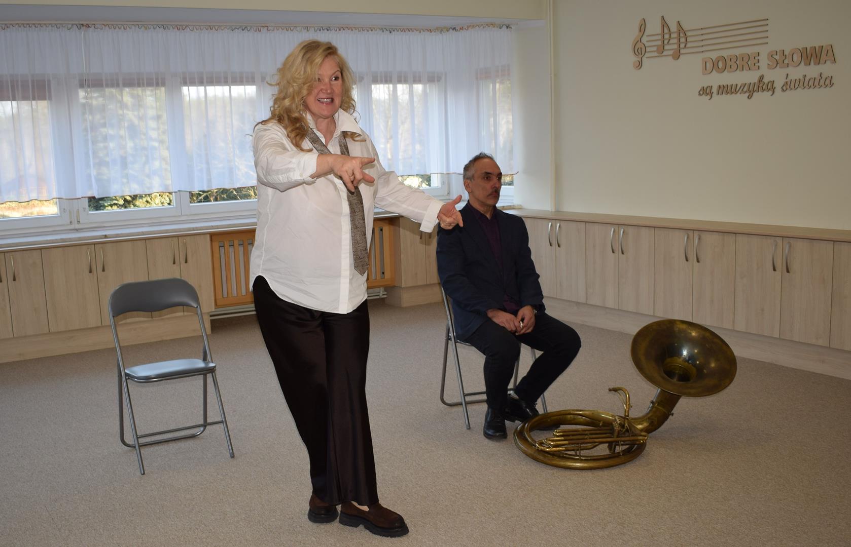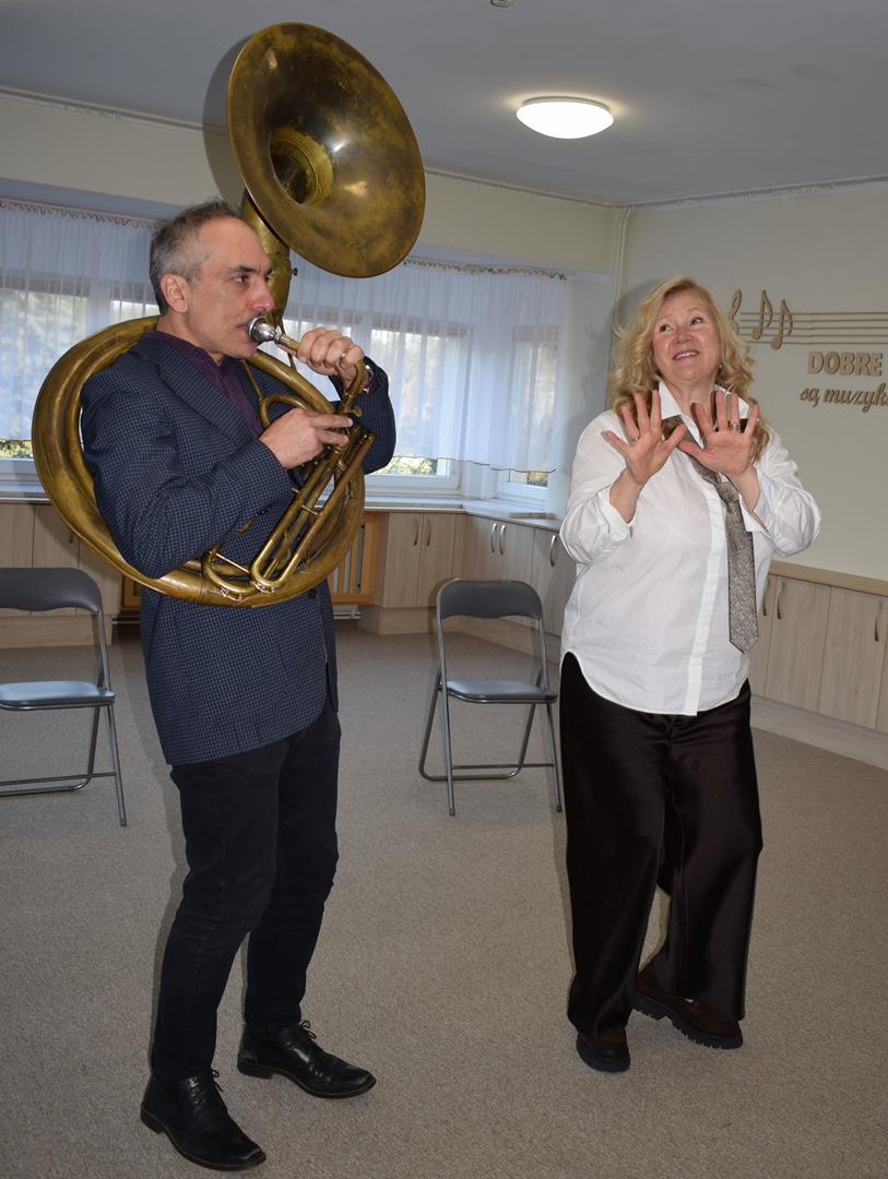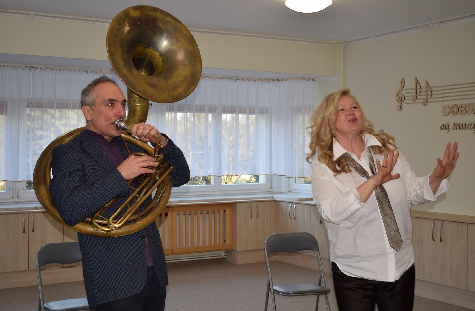 W miesiącu listopadzie pani Izabella zabrała nas w podróż do Krainy Muzyki. Tym razem mogliśmy poznać największy i najniżej brzmiący instrument w orkiestrowej rodzinie dętych blaszanych – suzafon. Wielki i wydający potężne dźwięki przyciągnął samego słonia, który rozpoznał w niej znajomo brzmiące nuty. A nas najbardziej zachwycił jego wygląd. Gdyby nie ciężar, mógłby stanowić iście oryginalne nakrycie głowy każdej damy.
