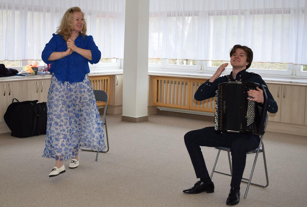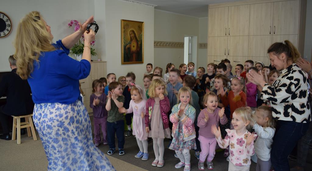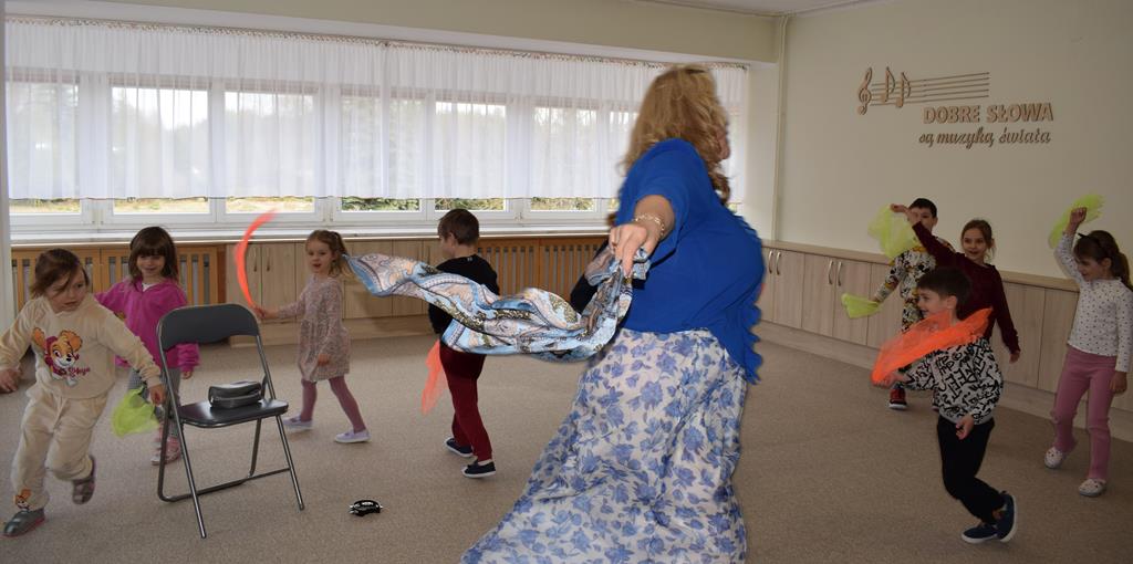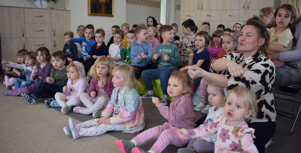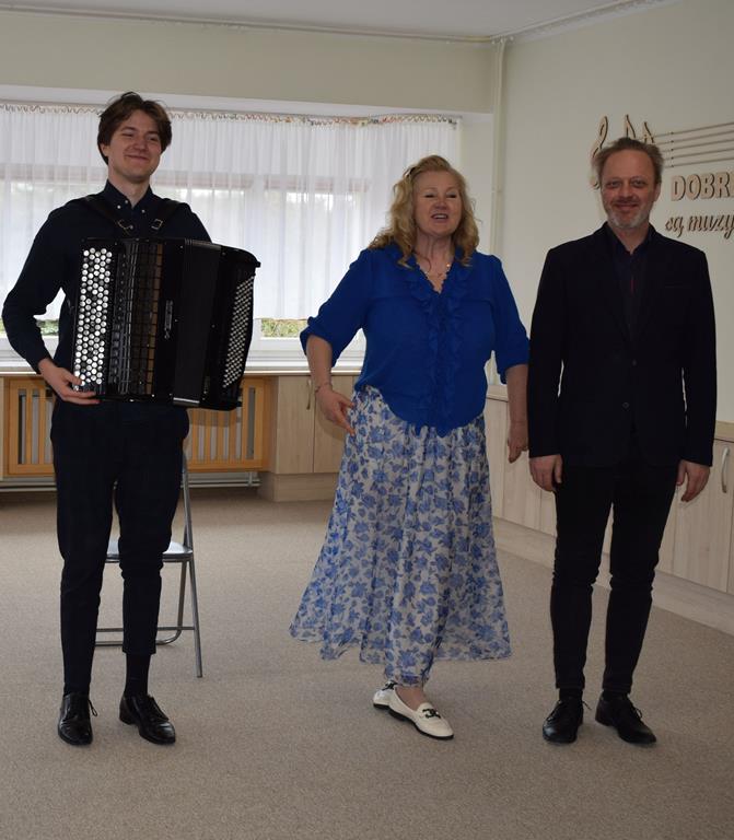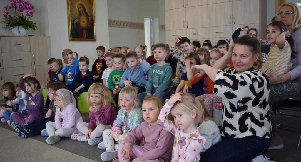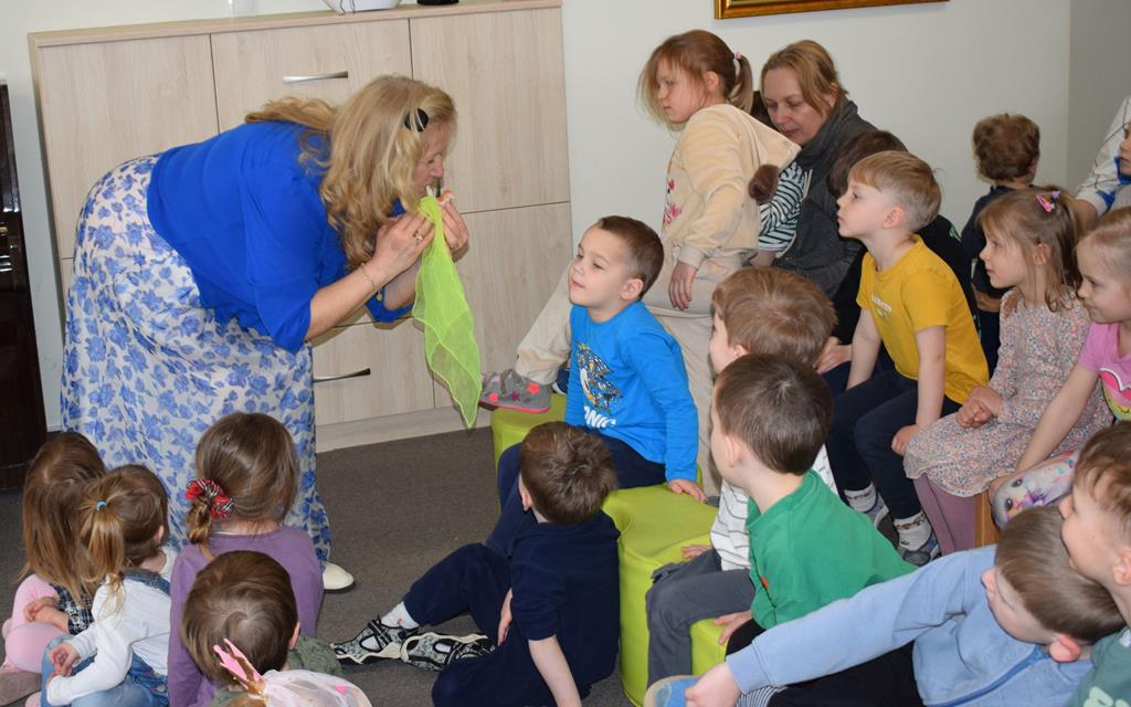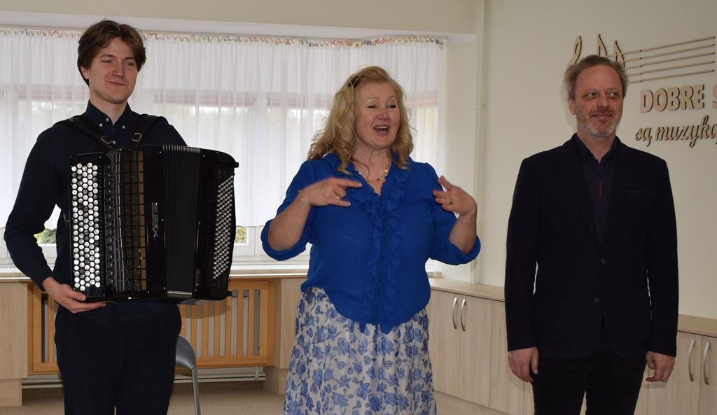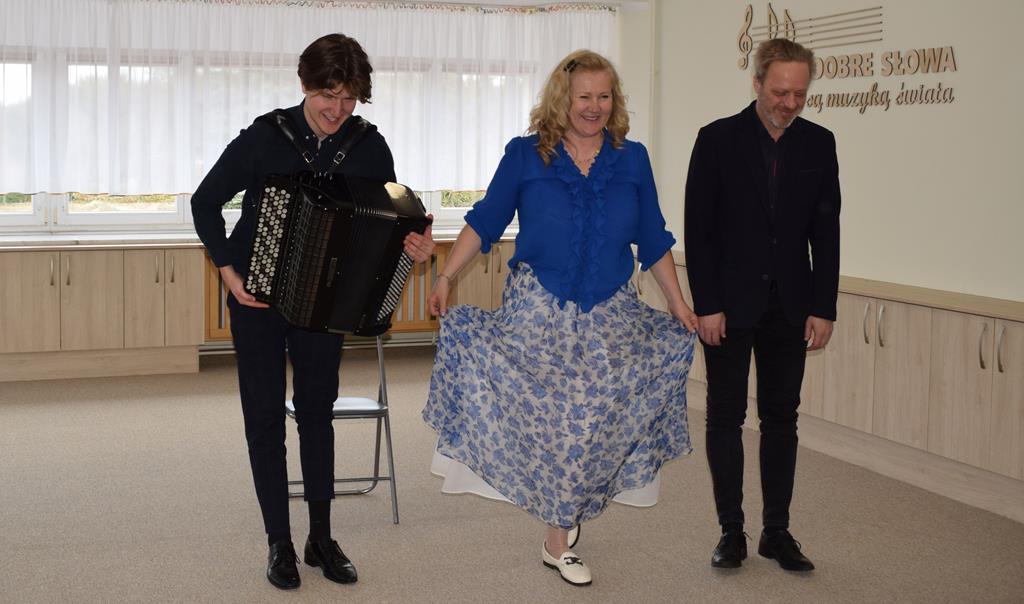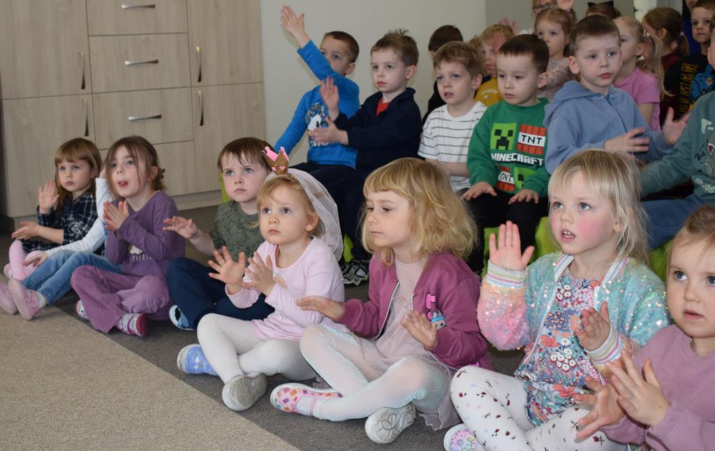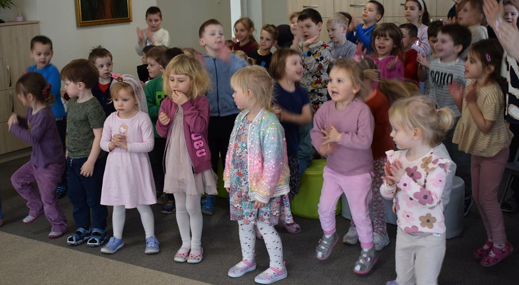 Podczas interaktywnej audycji „Jak skrzaty i trolle szukały wiosny w lesie” dzieci wyruszyły w podróż do budzącego się z zimowego snu lasu, by wraz z bajkowymi bohaterami – skrzatami i trollami – odnaleźć pierwsze oznaki wiosny. Głównym bohaterem spotkania, obok leśnych postaci, był akordeon. Muzycy w przystępny i zabawny sposób przybliżyli dzieciom ten niezwykły instrument. Dowiedzieliśmy się, do czego służy miech i jak akordeon „oddycha”. Odkryliśmy różnicę między klawiszami a guzikami basowymi. Słuchaliśmy, jak za pomocą instrumentów można opowiadać historie bez słów. Największą atrakcją było naśladowanie dźwięków pracy drwala – rytmiczne, mocne uderzenia w akordeon idealnie oddawały odgłos rąbania drewna. Kontrastem dla nich była subtelna gra na gwizdku, która do złudzenia przypominała ptasie trele, obwieszczające wszystkim zwierzętom powrót wiosny.