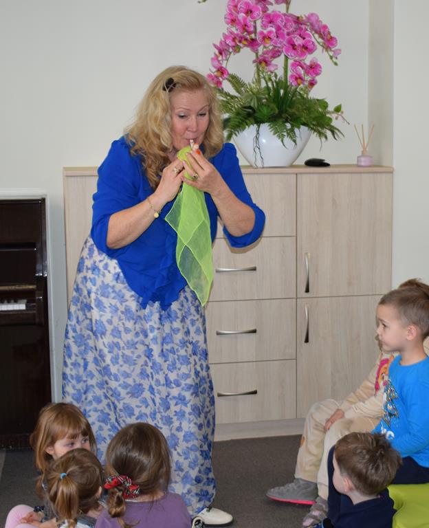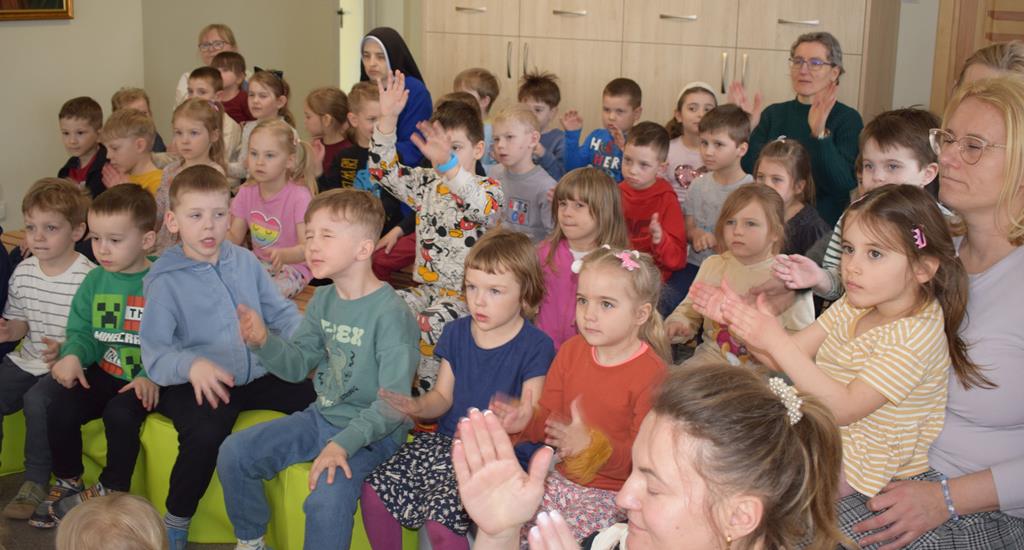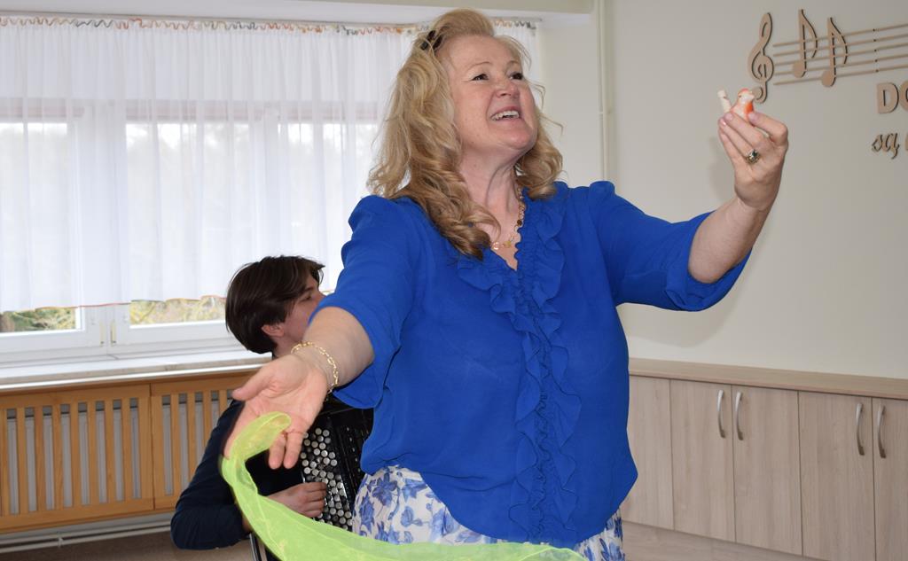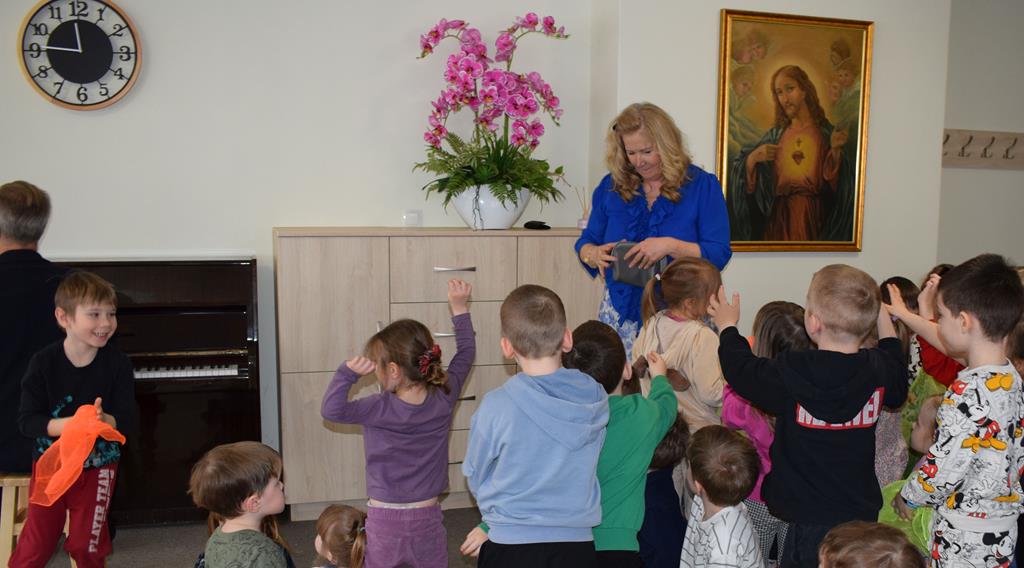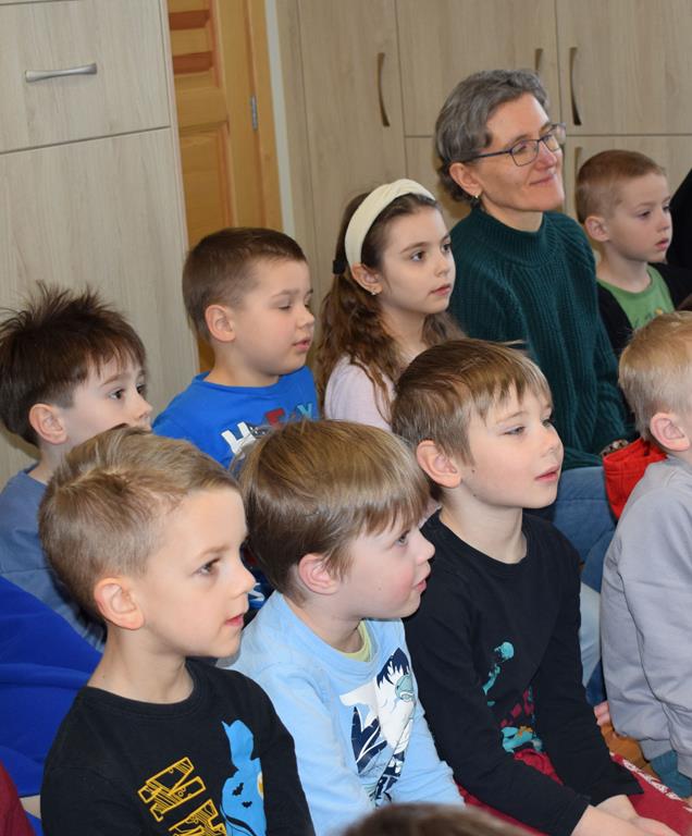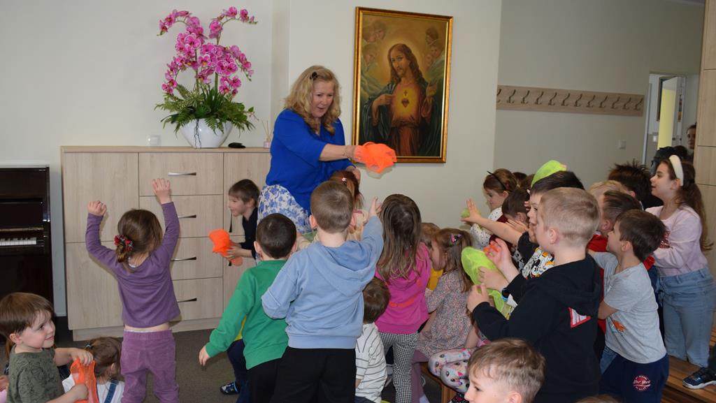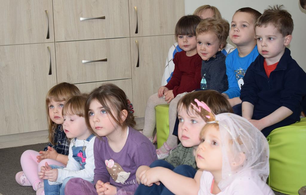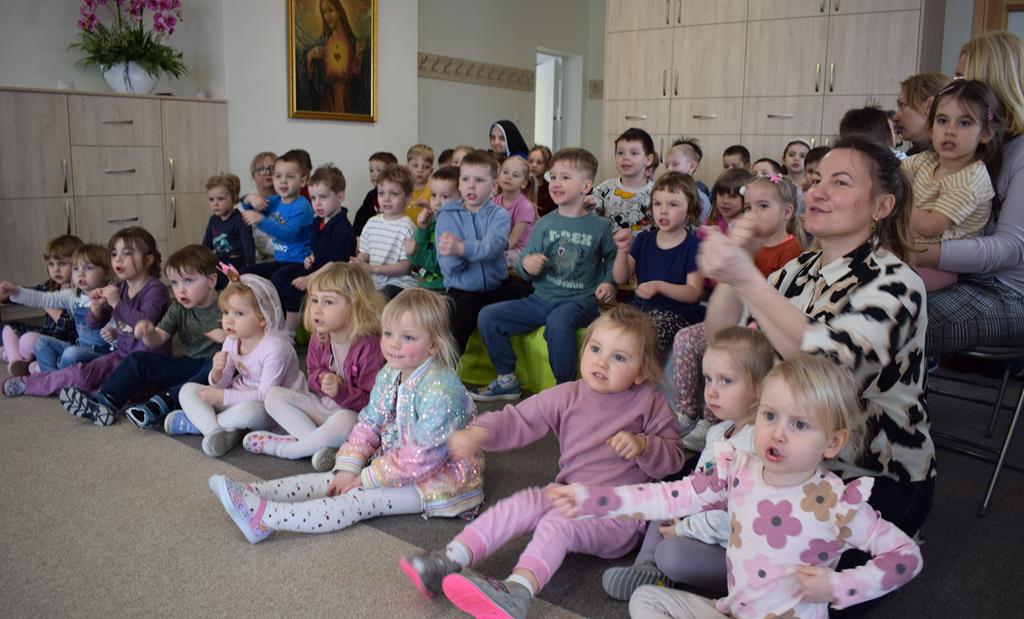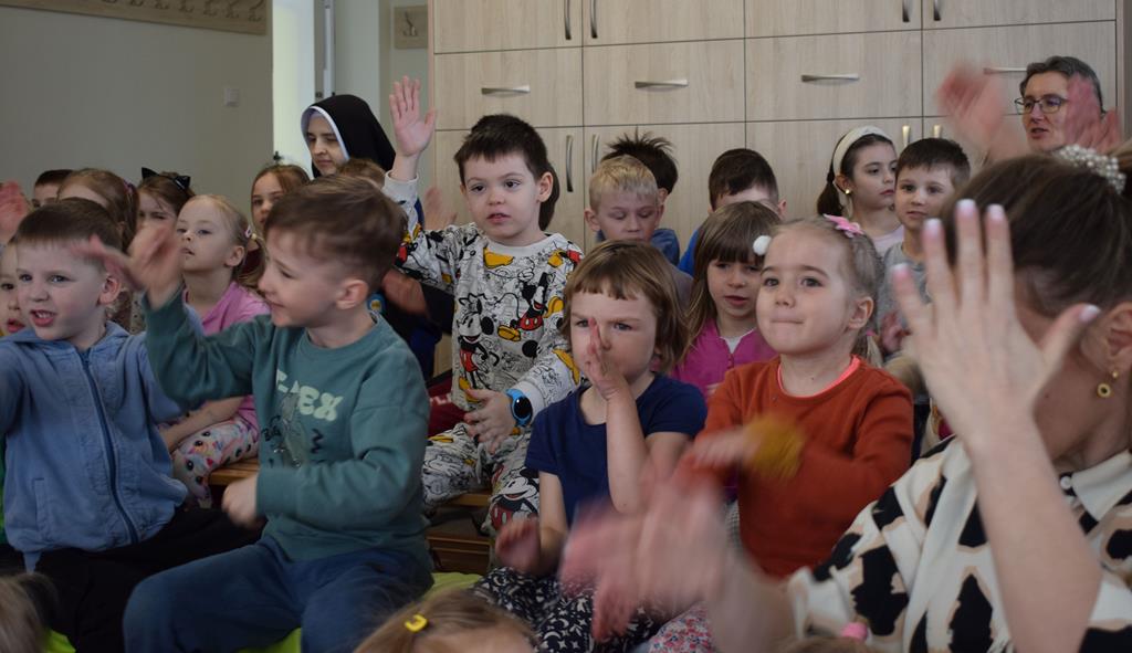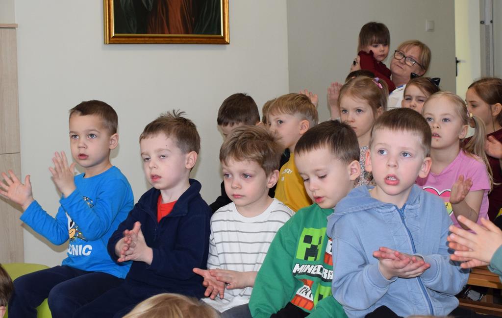 Podczas interaktywnej audycji „Jak skrzaty i trolle szukały wiosny w lesie” dzieci wyruszyły w podróż do budzącego się z zimowego snu lasu, by wraz z bajkowymi bohaterami – skrzatami i trollami – odnaleźć pierwsze oznaki wiosny. Głównym bohaterem spotkania, obok leśnych postaci, był akordeon. Muzycy w przystępny i zabawny sposób przybliżyli dzieciom ten niezwykły instrument. Dowiedzieliśmy się, do czego służy miech i jak akordeon „oddycha”. Odkryliśmy różnicę między klawiszami a guzikami basowymi. Słuchaliśmy, jak za pomocą instrumentów można opowiadać historie bez słów. Największą atrakcją było naśladowanie dźwięków pracy drwala – rytmiczne, mocne uderzenia w akordeon idealnie oddawały odgłos rąbania drewna. Kontrastem dla nich była subtelna gra na gwizdku, która do złudzenia przypominała ptasie trele, obwieszczające wszystkim zwierzętom powrót wiosny.