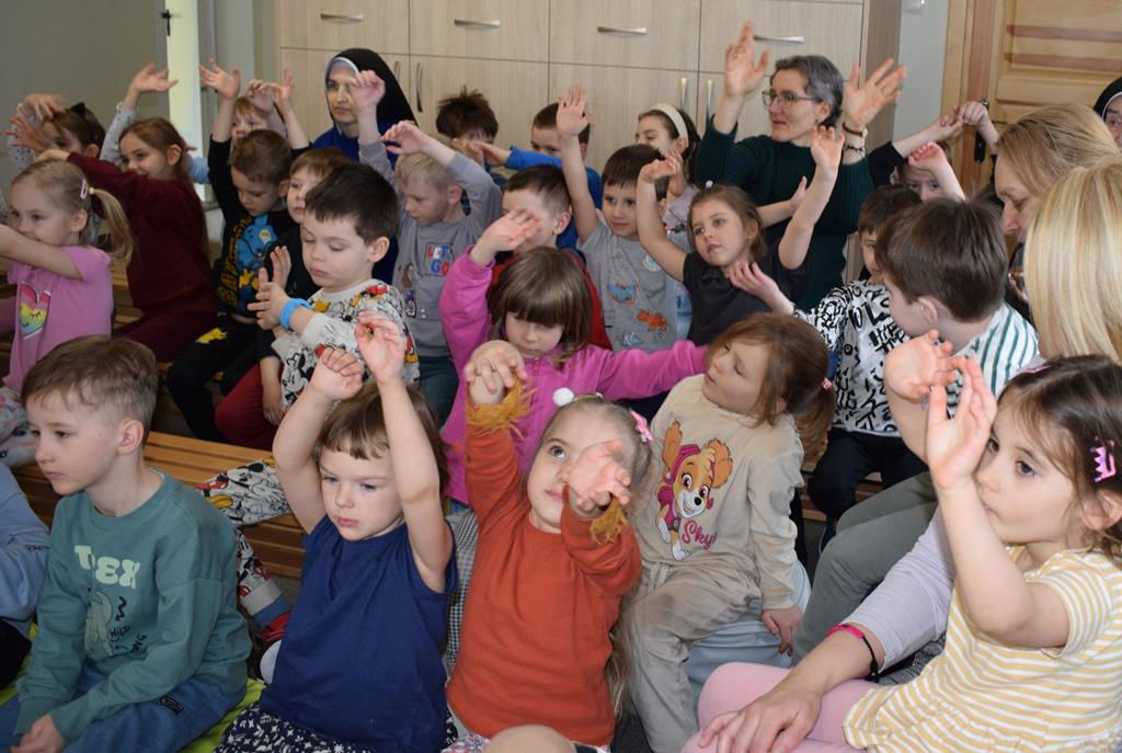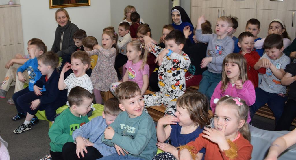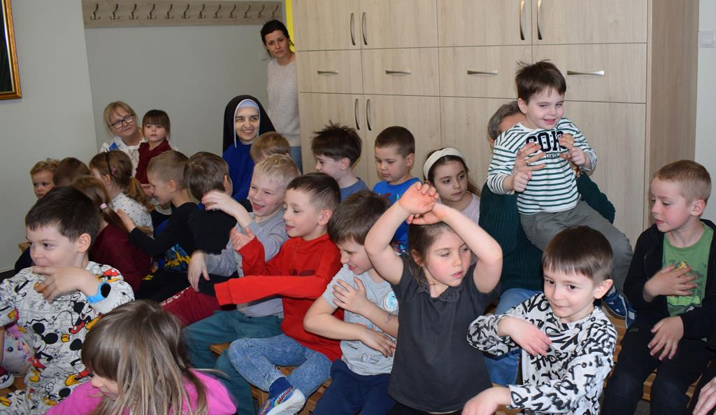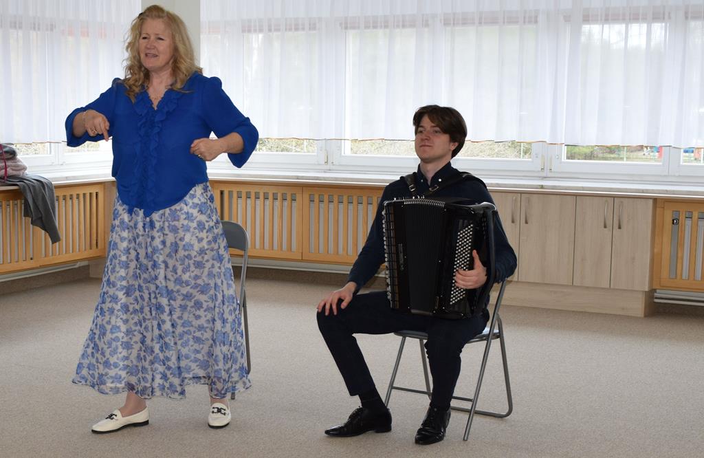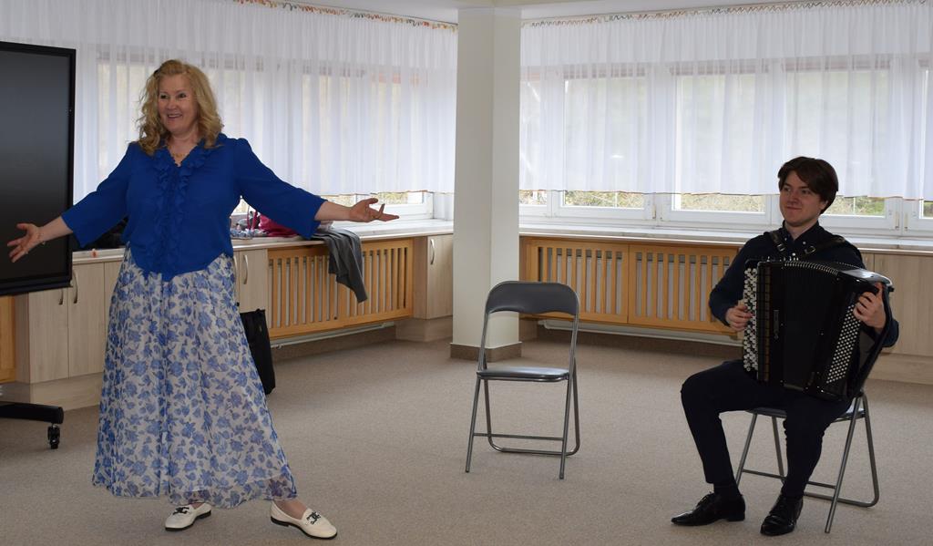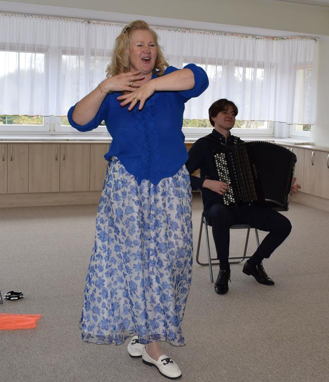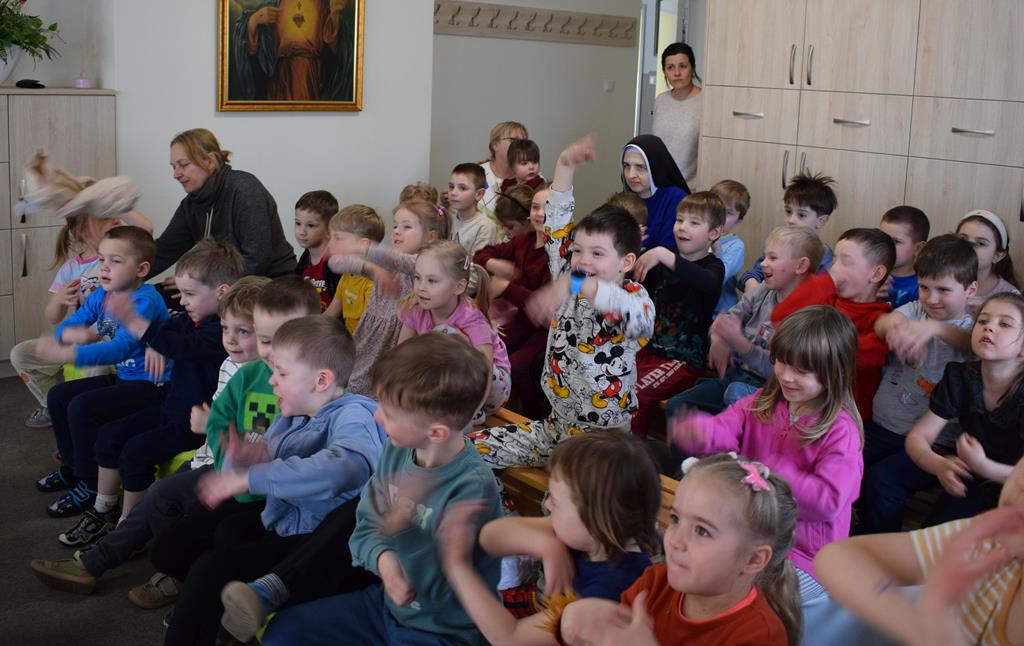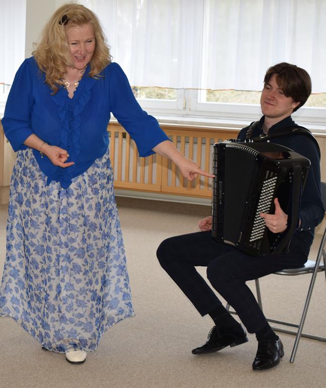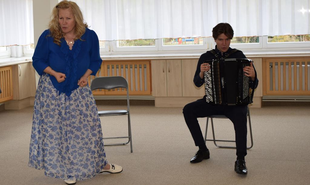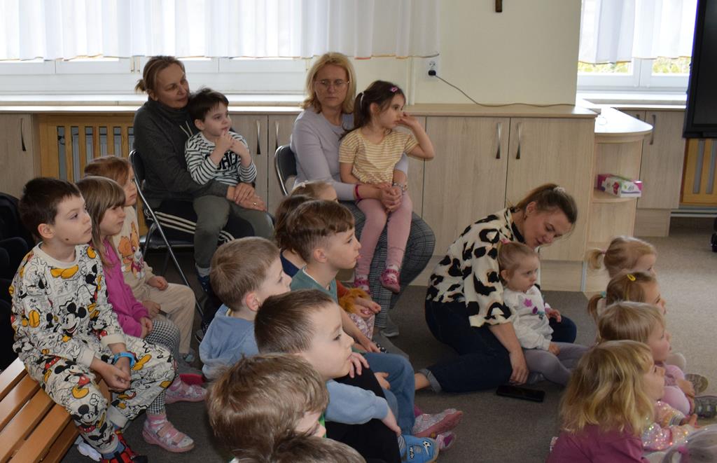 Podczas interaktywnej audycji „Jak skrzaty i trolle szukały wiosny w lesie” dzieci wyruszyły w podróż do budzącego się z zimowego snu lasu, by wraz z bajkowymi bohaterami – skrzatami i trollami – odnaleźć pierwsze oznaki wiosny. Głównym bohaterem spotkania, obok leśnych postaci, był akordeon. Muzycy w przystępny i zabawny sposób przybliżyli dzieciom ten niezwykły instrument. Dowiedzieliśmy się, do czego służy miech i jak akordeon „oddycha”. Odkryliśmy różnicę między klawiszami a guzikami basowymi. Słuchaliśmy, jak za pomocą instrumentów można opowiadać historie bez słów. Największą atrakcją było naśladowanie dźwięków pracy drwala – rytmiczne, mocne uderzenia w akordeon idealnie oddawały odgłos rąbania drewna. Kontrastem dla nich była subtelna gra na gwizdku, która do złudzenia przypominała ptasie trele, obwieszczające wszystkim zwierzętom powrót wiosny.