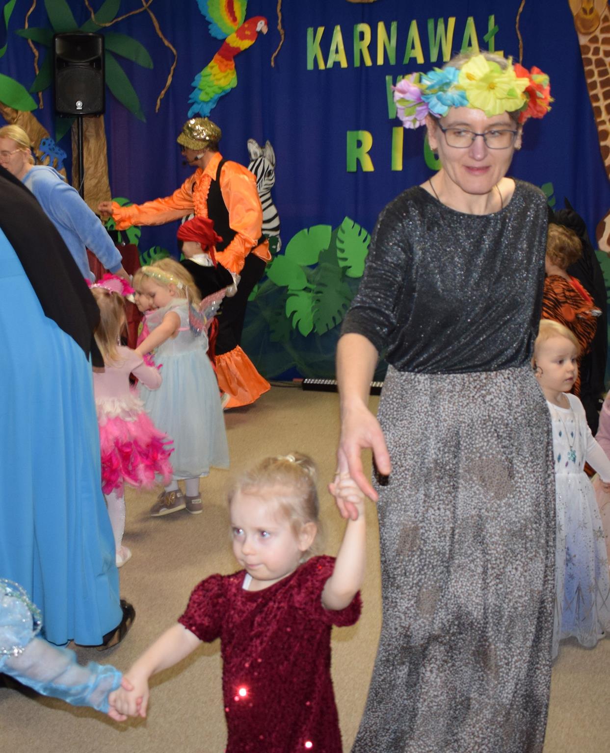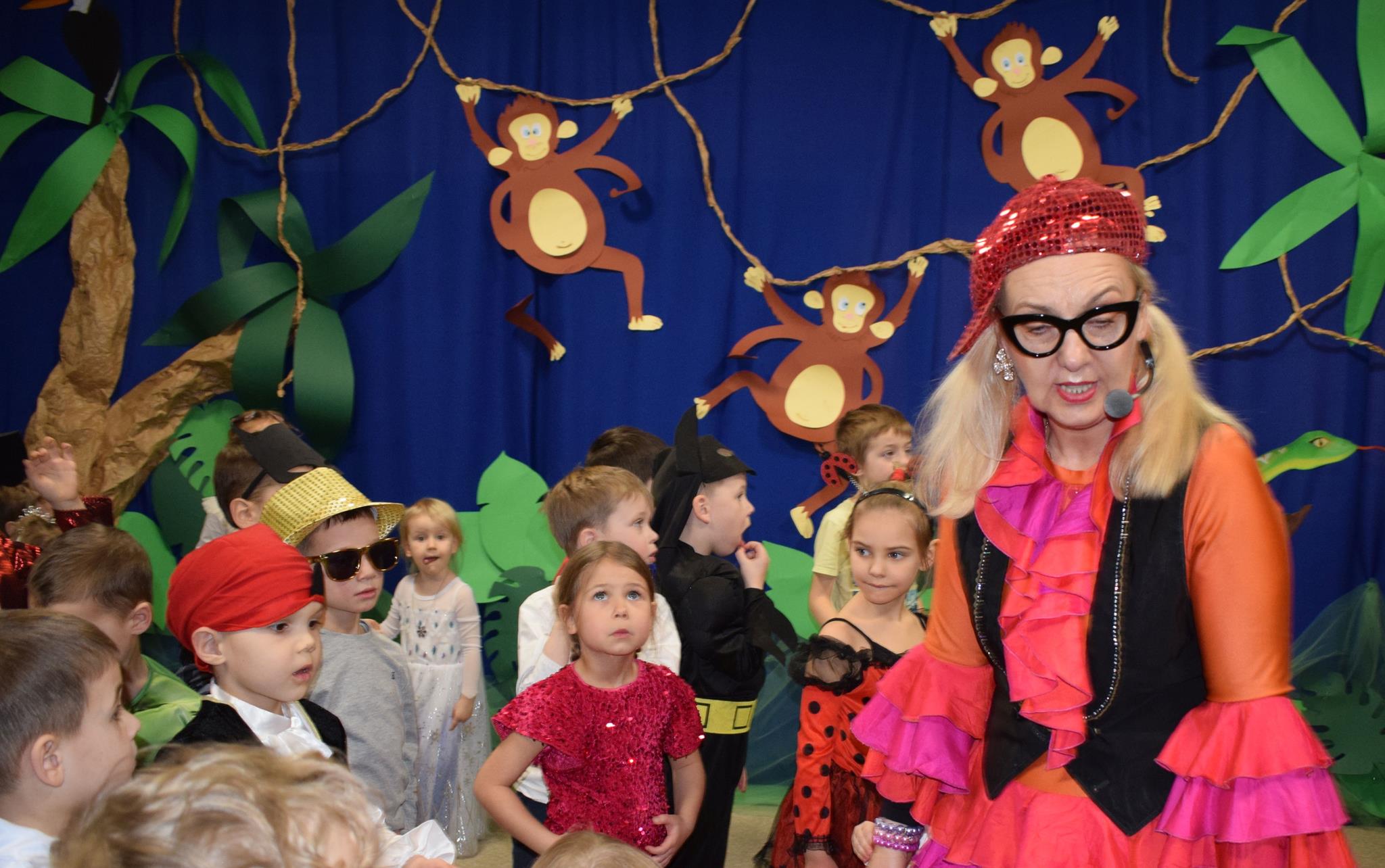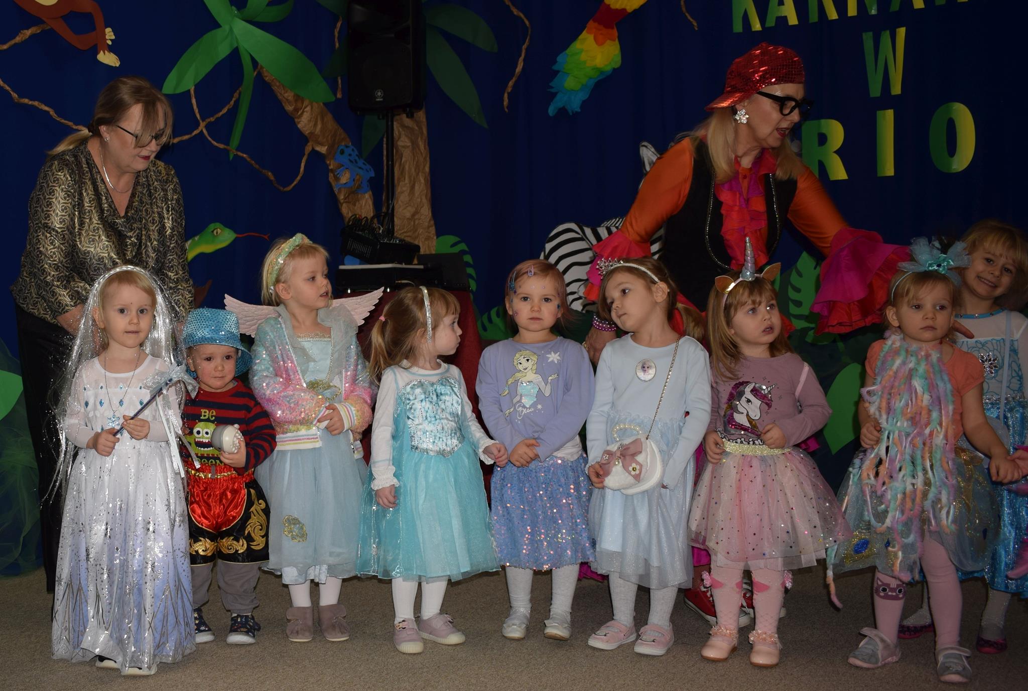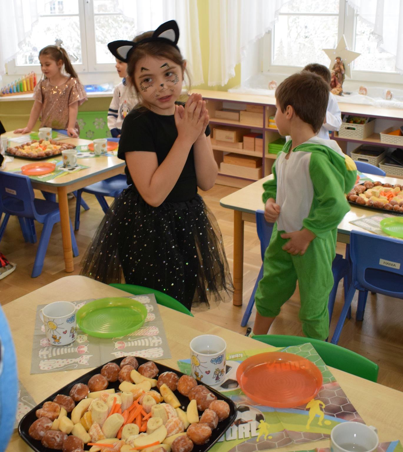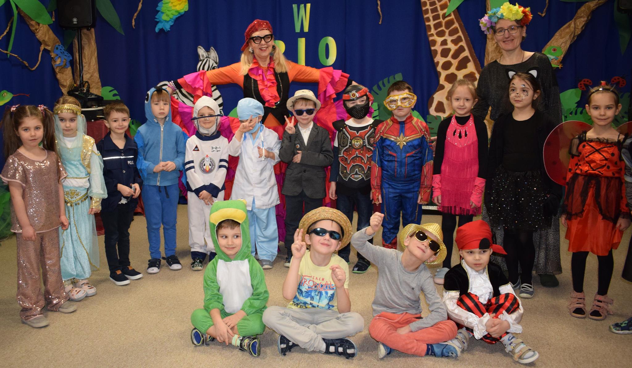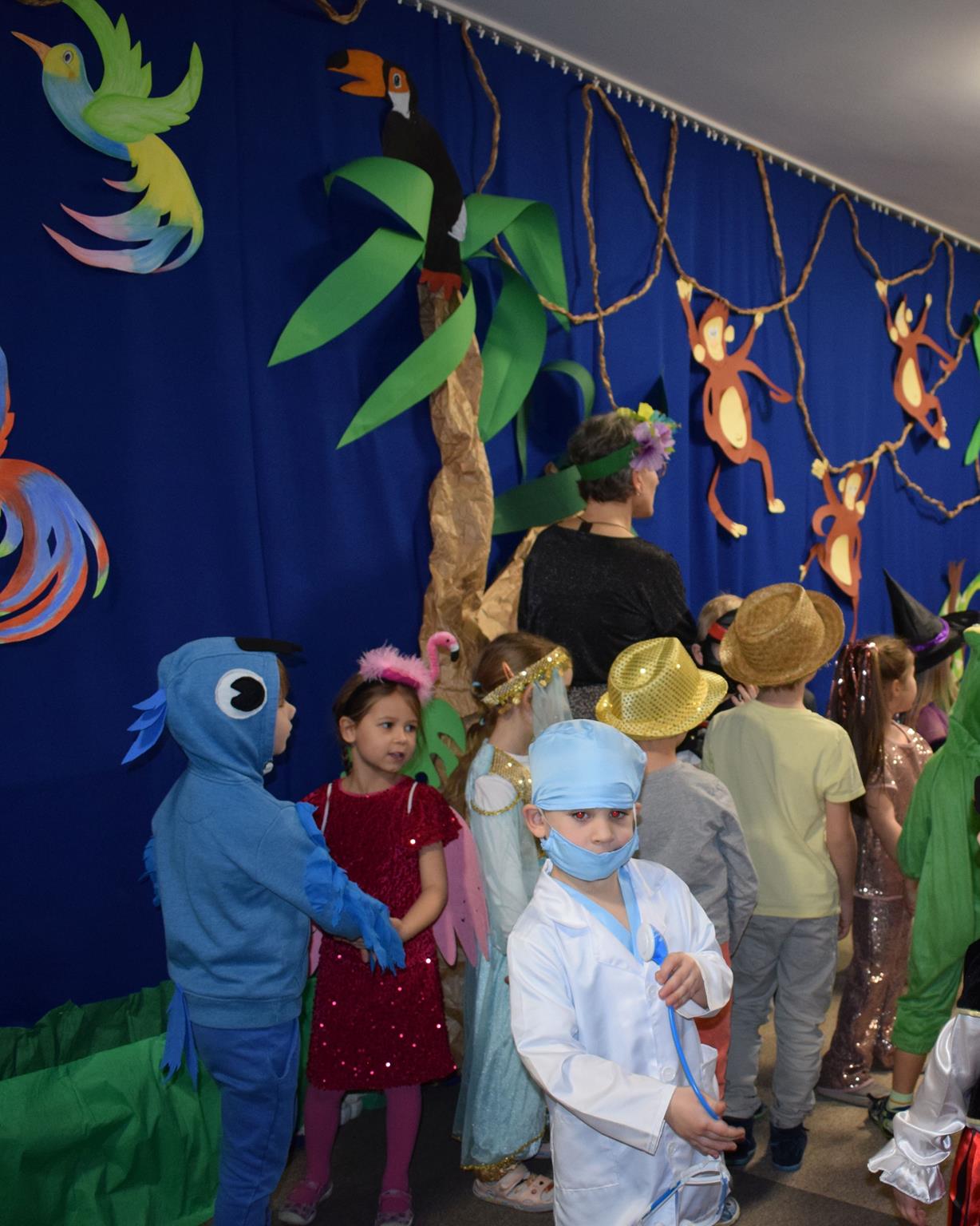Tegoroczny karnawał rozpoczęliśmy taneczną imprezą. Żywiołowa muzyka pobudziła do tańca nawet najbardziej zasiedziałe przedszkolaki. Sunęliśmy po parkiecie solo, w parach i w wężykach w rytmie gorącej jak brazylijskie słońce samby. Wiele przebojów znaliśmy na pamięć, więc śpiewaliśmy głośno, jakby marząc o tym, by usłyszano nas na Copacabanie. Prowadzących zaś aktorów z Teatru Złoty Dukat zachwyciliśmy nie tylko swoimi umiejętnościami tanecznymi czy wokalnymi, lecz także wielobarwnymi strojami. Na parkiecie nie zabrakło policjantów, strażaków, postaci bajkowych, zwierzątek. Czas karnawałowych pląsów umilały liczne księżniczki i wróżki. Chwilami zdawało się, że wiosna już tuż-tuż, kiedy nagle swym kolorowym skrzydełkiem machnęła jakaś biedronka i motylek.