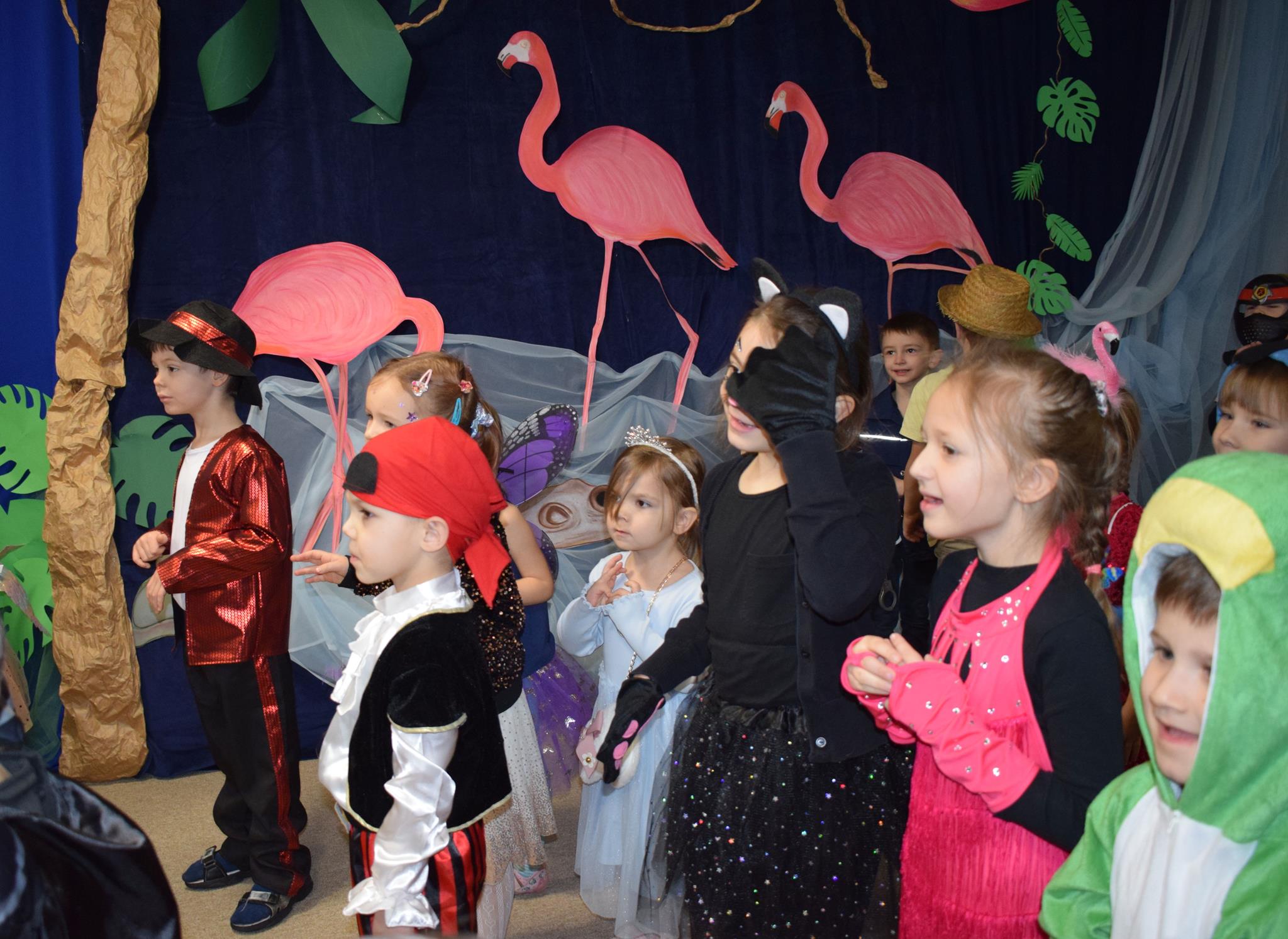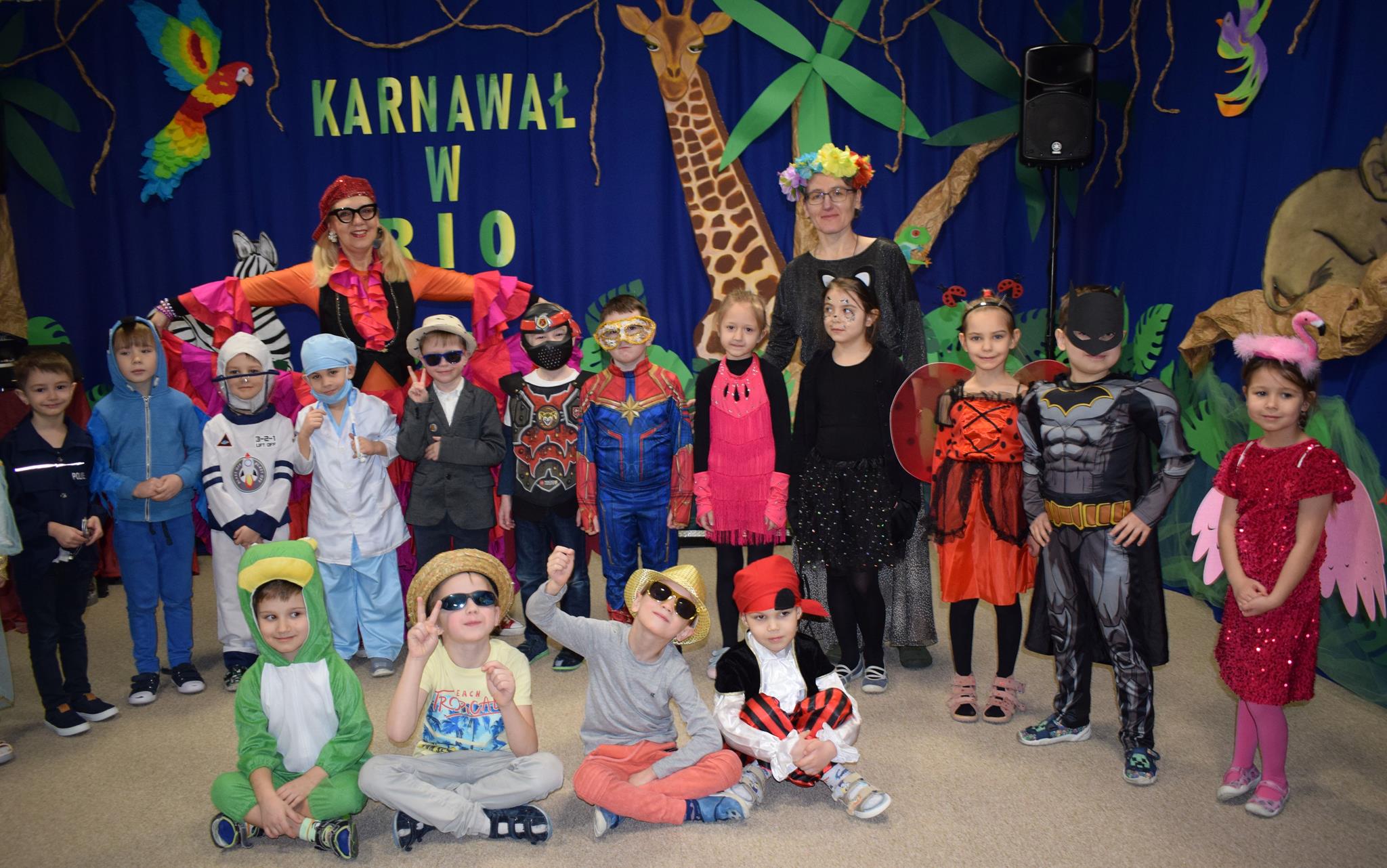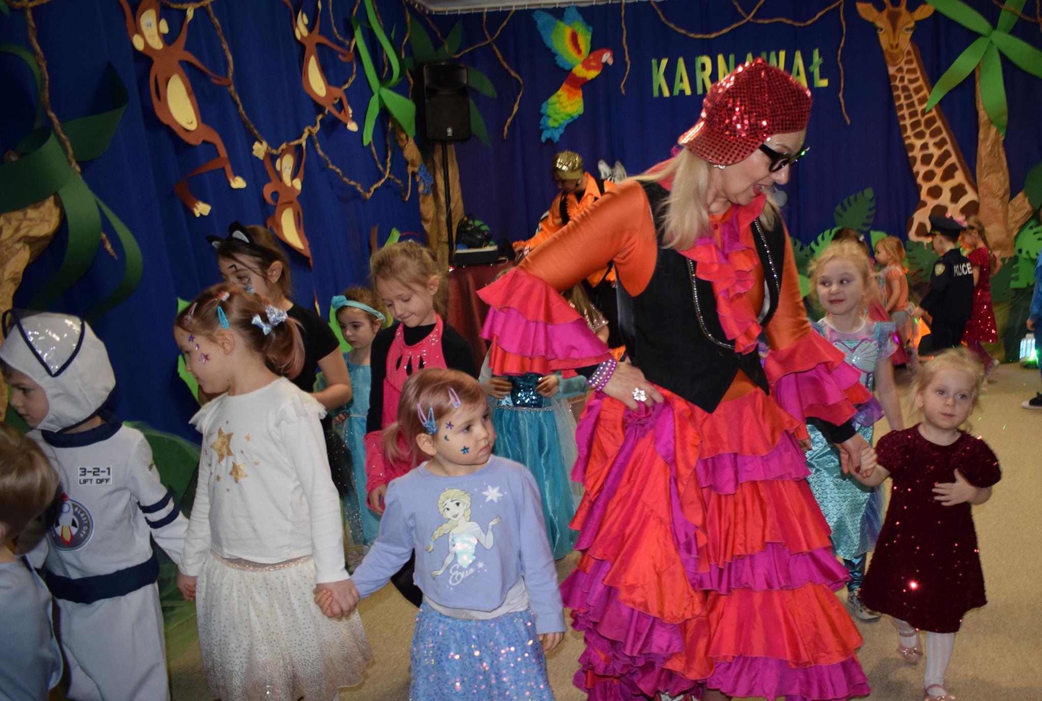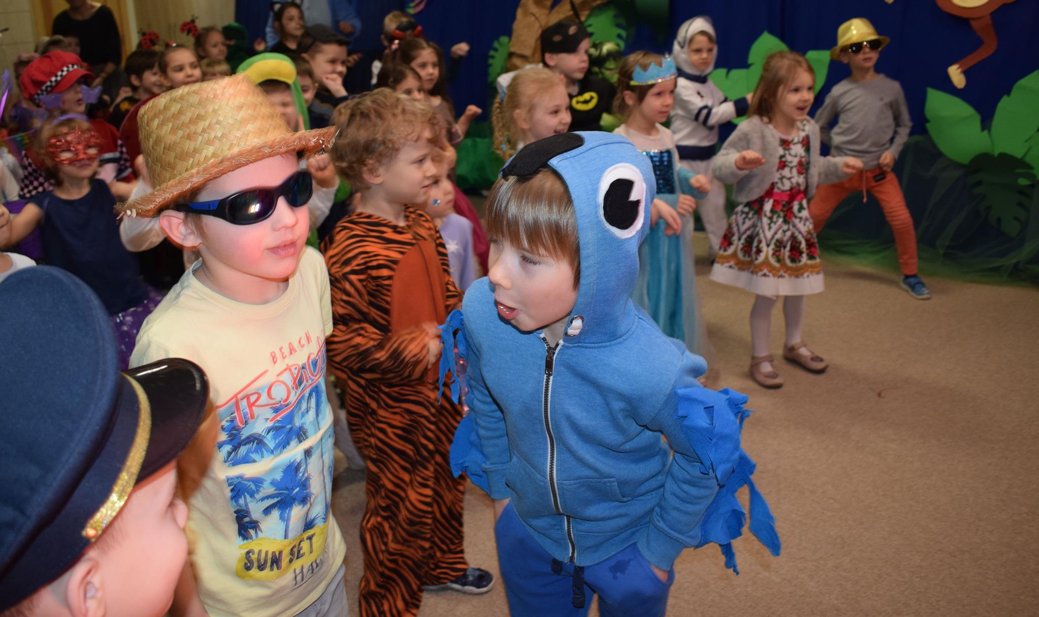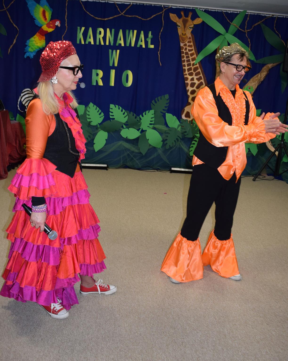 Tegoroczny karnawał rozpoczęliśmy taneczną imprezą. Żywiołowa muzyka pobudziła do tańca nawet najbardziej zasiedziałe przedszkolaki. Sunęliśmy po parkiecie solo, w parach i w wężykach w rytmie gorącej jak brazylijskie słońce samby. Wiele przebojów znaliśmy na pamięć, więc śpiewaliśmy głośno, jakby marząc o tym, by usłyszano nas na Copacabanie. Prowadzących zaś aktorów z Teatru Złoty Dukat zachwyciliśmy nie tylko swoimi umiejętnościami tanecznymi czy wokalnymi, lecz także wielobarwnymi strojami. Na parkiecie nie zabrakło policjantów, strażaków, postaci bajkowych, zwierzątek. Czas karnawałowych pląsów umilały liczne księżniczki i wróżki. Chwilami zdawało się, że wiosna już tuż-tuż, kiedy nagle swym kolorowym skrzydełkiem machnęła jakaś biedronka i motylek.