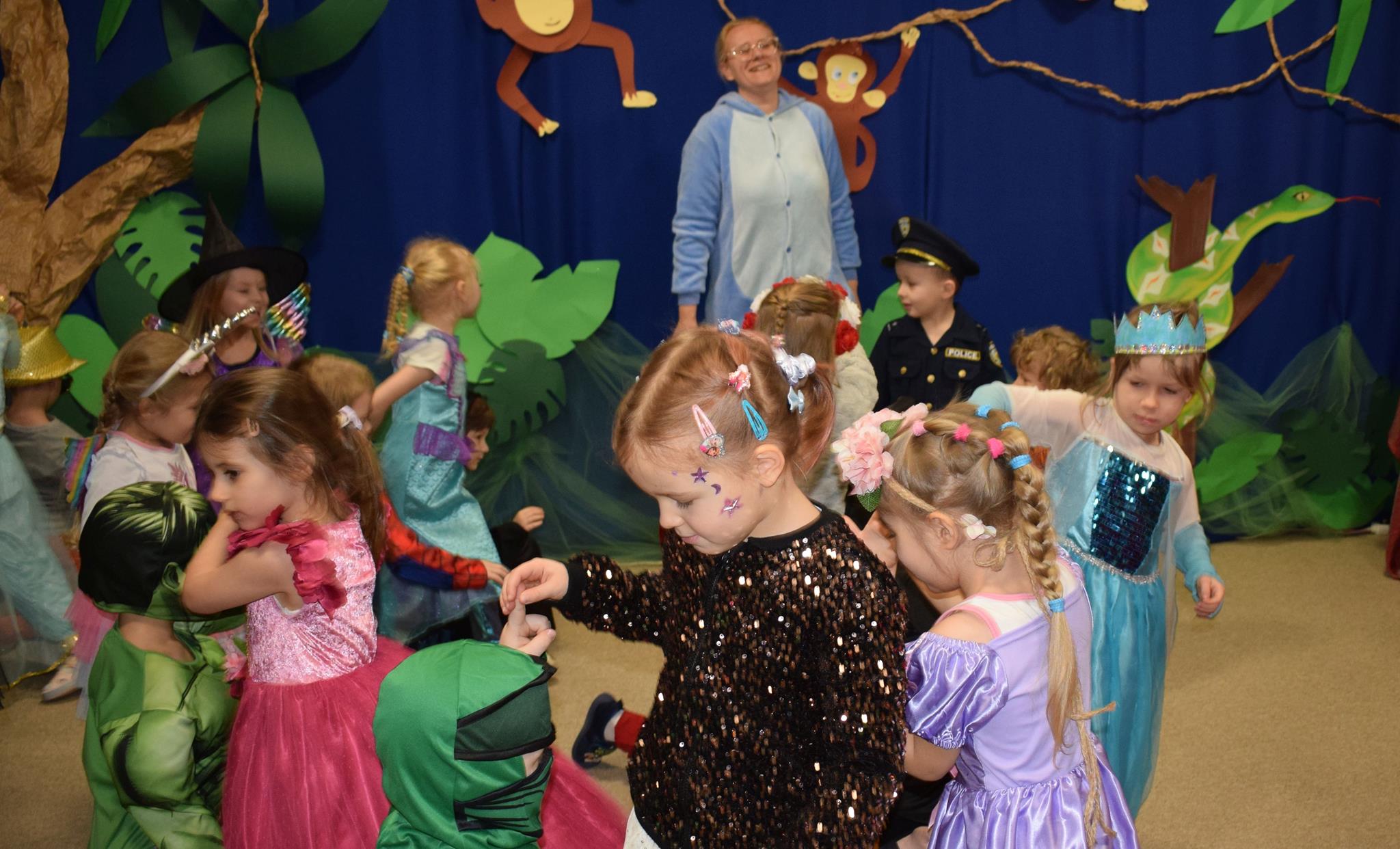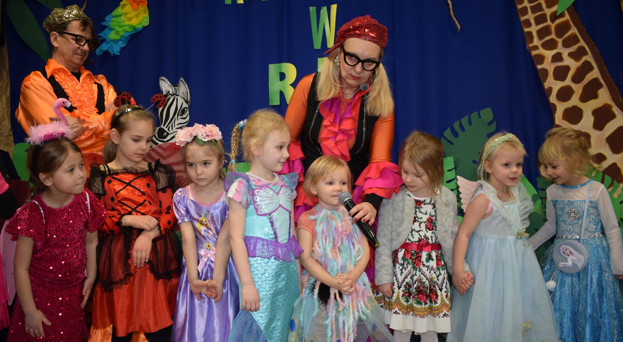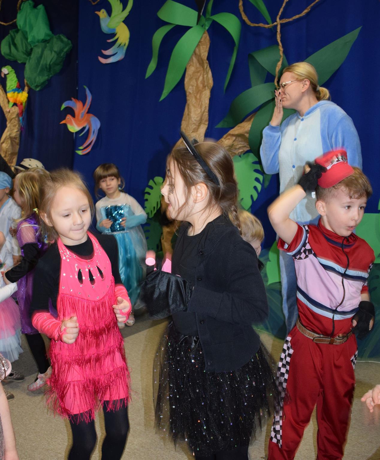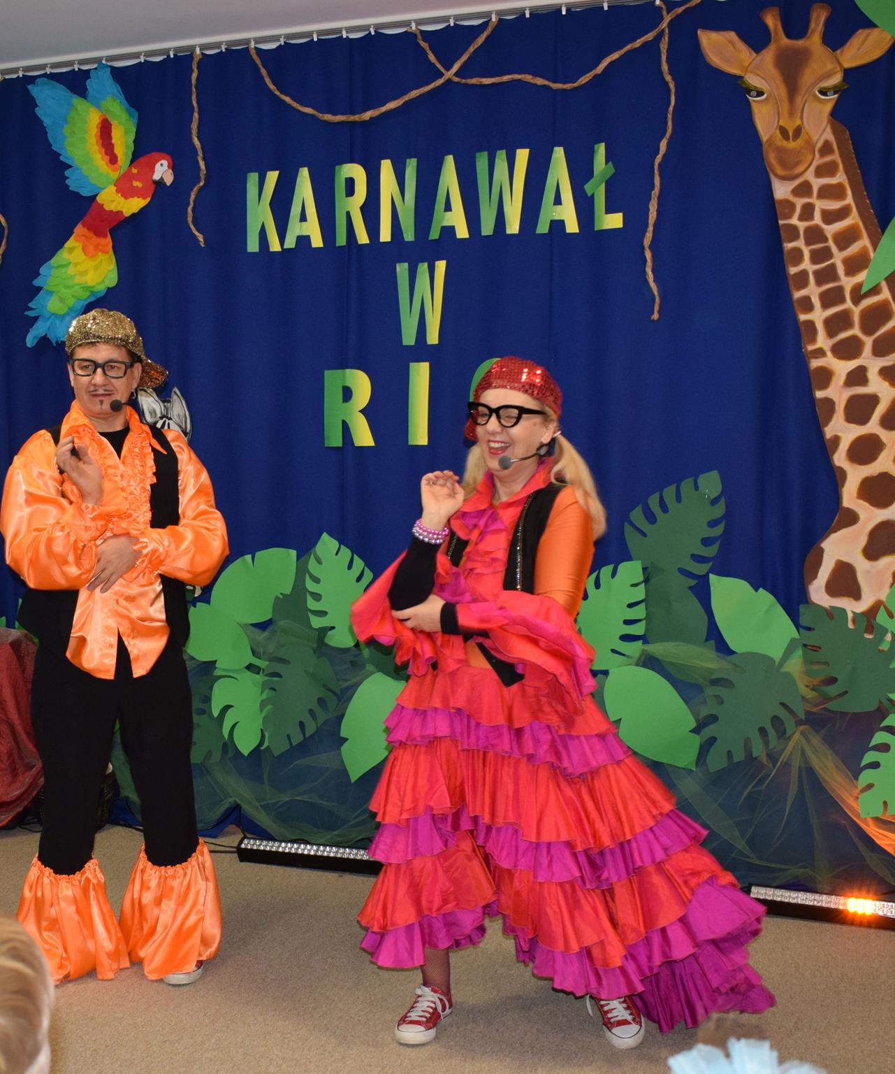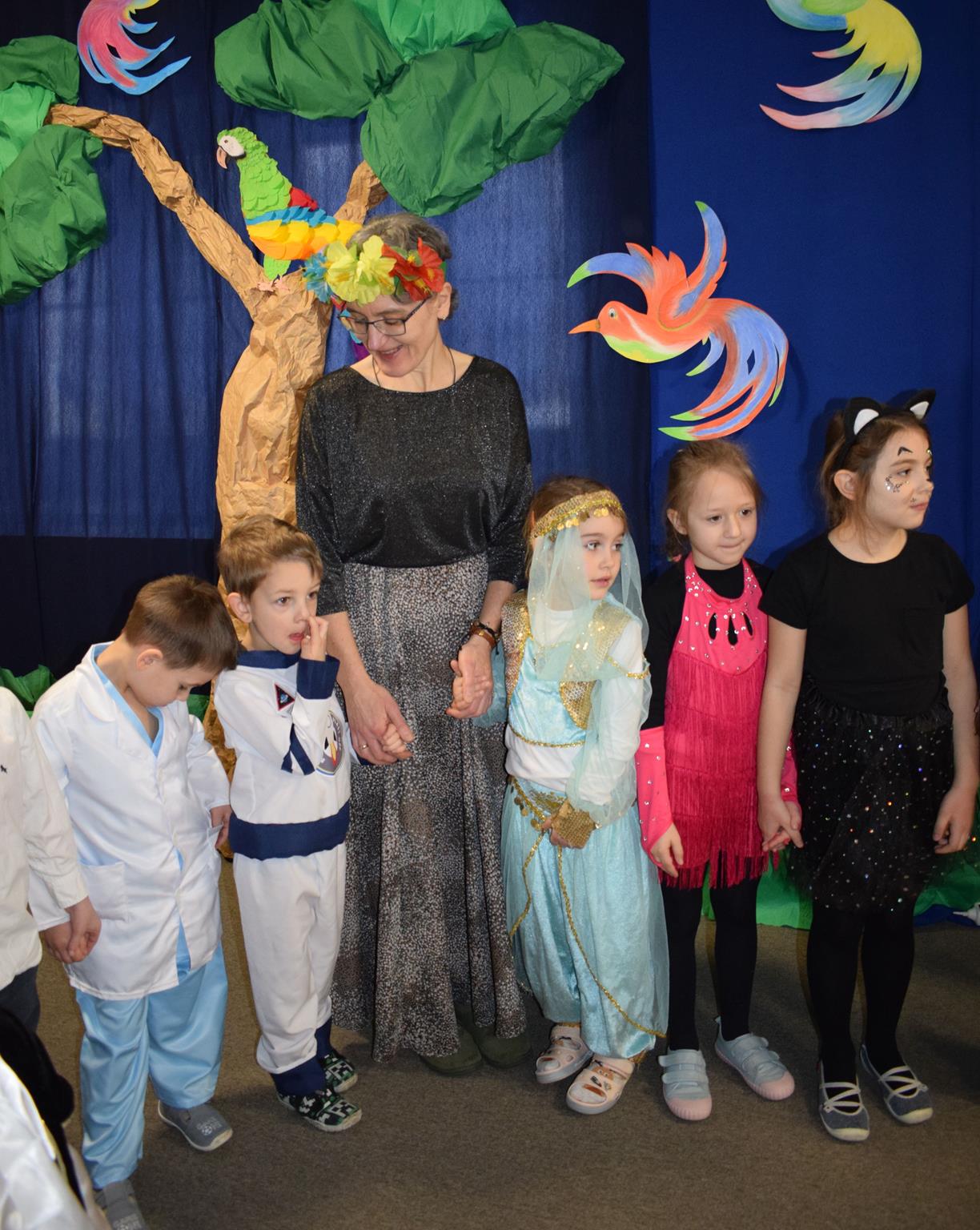 Tegoroczny karnawał rozpoczęliśmy taneczną imprezą. Żywiołowa muzyka pobudziła do tańca nawet najbardziej zasiedziałe przedszkolaki. Sunęliśmy po parkiecie solo, w parach i w wężykach w rytmie gorącej jak brazylijskie słońce samby. Wiele przebojów znaliśmy na pamięć, więc śpiewaliśmy głośno, jakby marząc o tym, by usłyszano nas na Copacabanie. Prowadzących zaś aktorów z Teatru Złoty Dukat zachwyciliśmy nie tylko swoimi umiejętnościami tanecznymi czy wokalnymi, lecz także wielobarwnymi strojami. Na parkiecie nie zabrakło policjantów, strażaków, postaci bajkowych, zwierzątek. Czas karnawałowych pląsów umilały liczne księżniczki i wróżki. Chwilami zdawało się, że wiosna już tuż-tuż, kiedy nagle swym kolorowym skrzydełkiem machnęła jakaś biedronka i motylek.