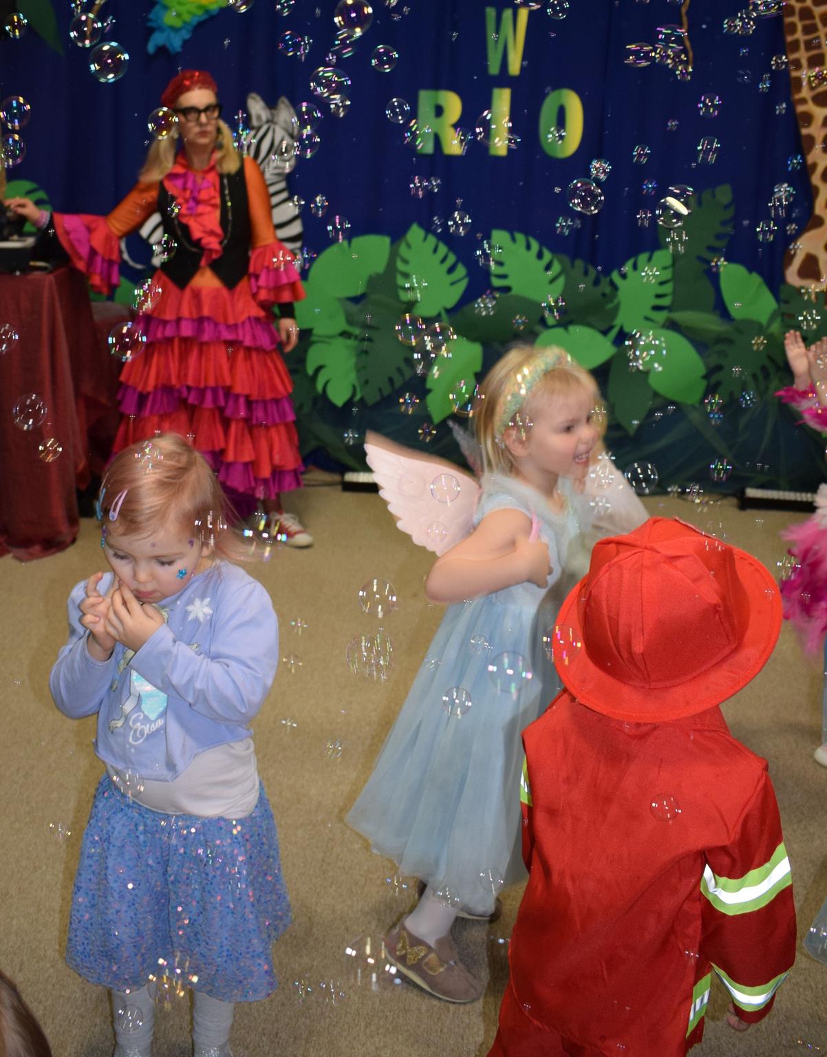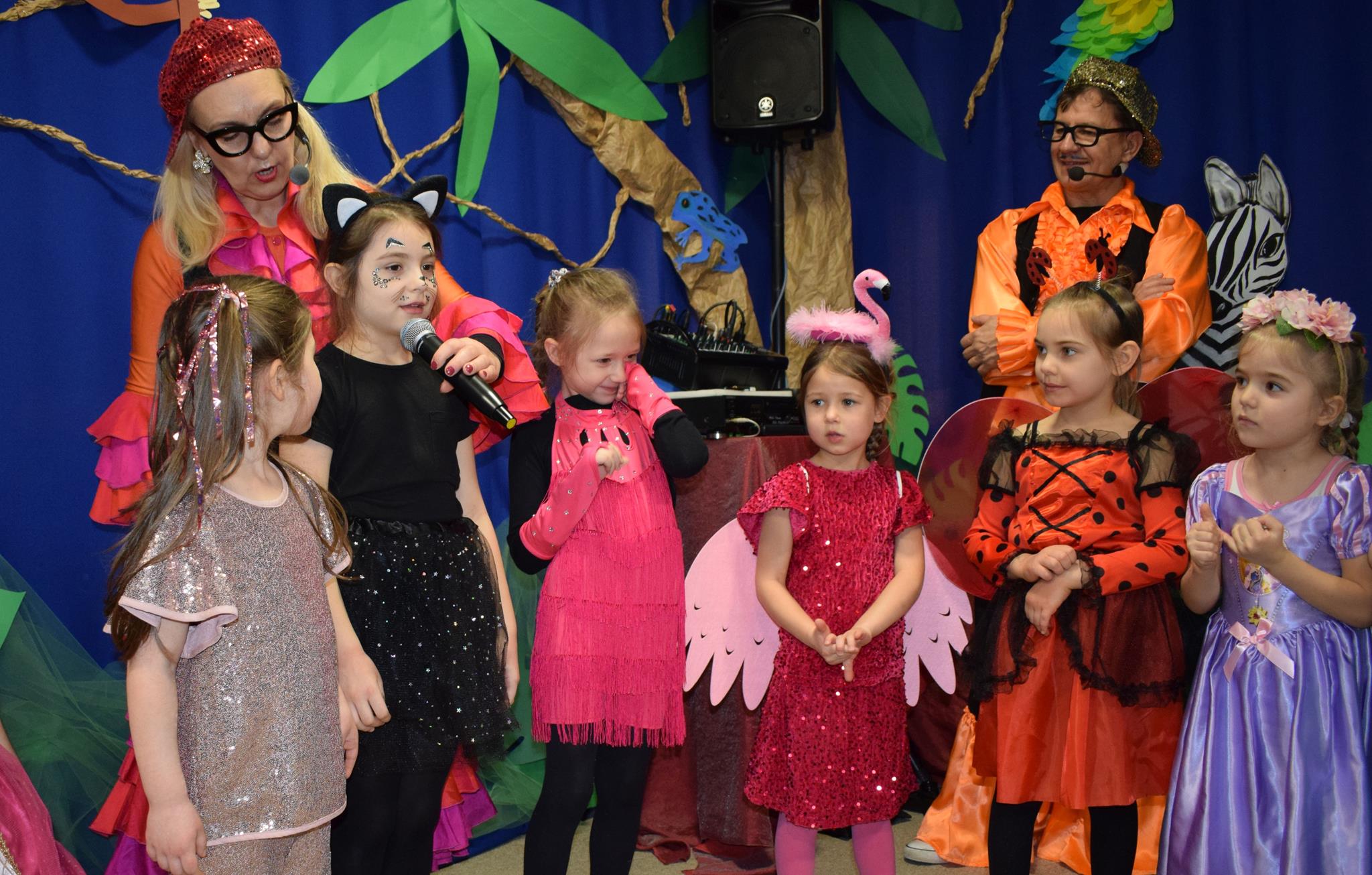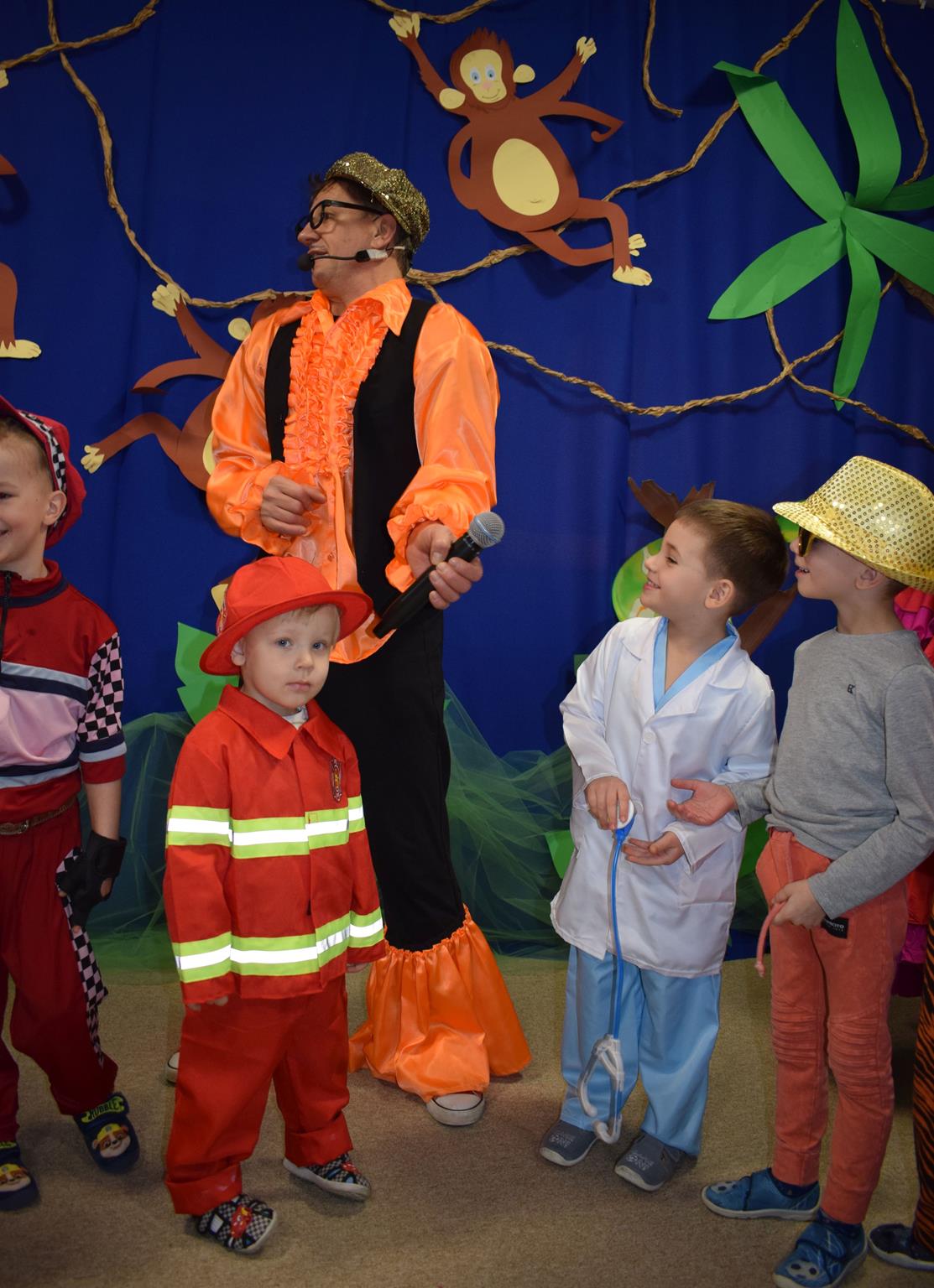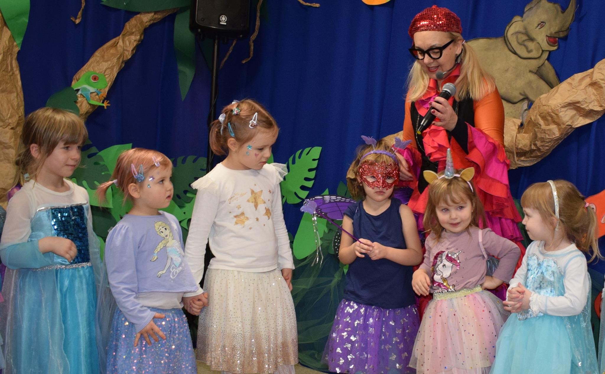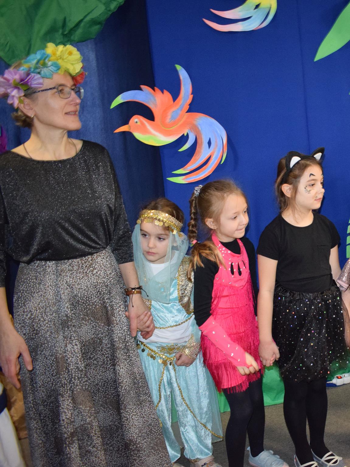 Tegoroczny karnawał rozpoczęliśmy taneczną imprezą. Żywiołowa muzyka pobudziła do tańca nawet najbardziej zasiedziałe przedszkolaki. Sunęliśmy po parkiecie solo, w parach i w wężykach w rytmie gorącej jak brazylijskie słońce samby. Wiele przebojów znaliśmy na pamięć, więc śpiewaliśmy głośno, jakby marząc o tym, by usłyszano nas na Copacabanie. Prowadzących zaś aktorów z Teatru Złoty Dukat zachwyciliśmy nie tylko swoimi umiejętnościami tanecznymi czy wokalnymi, lecz także wielobarwnymi strojami. Na parkiecie nie zabrakło policjantów, strażaków, postaci bajkowych, zwierzątek. Czas karnawałowych pląsów umilały liczne księżniczki i wróżki. Chwilami zdawało się, że wiosna już tuż-tuż, kiedy nagle swym kolorowym skrzydełkiem machnęła jakaś biedronka i motylek.