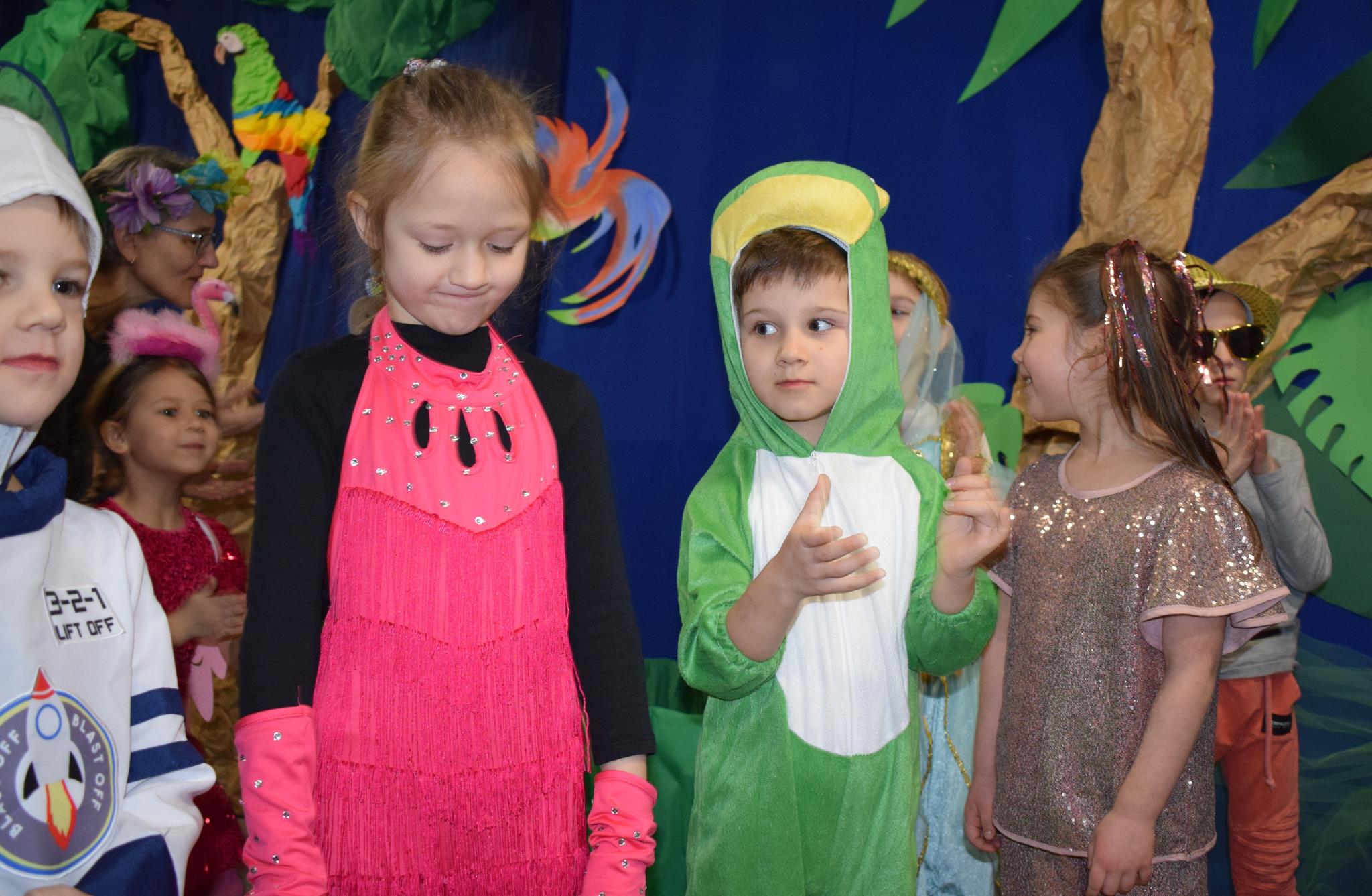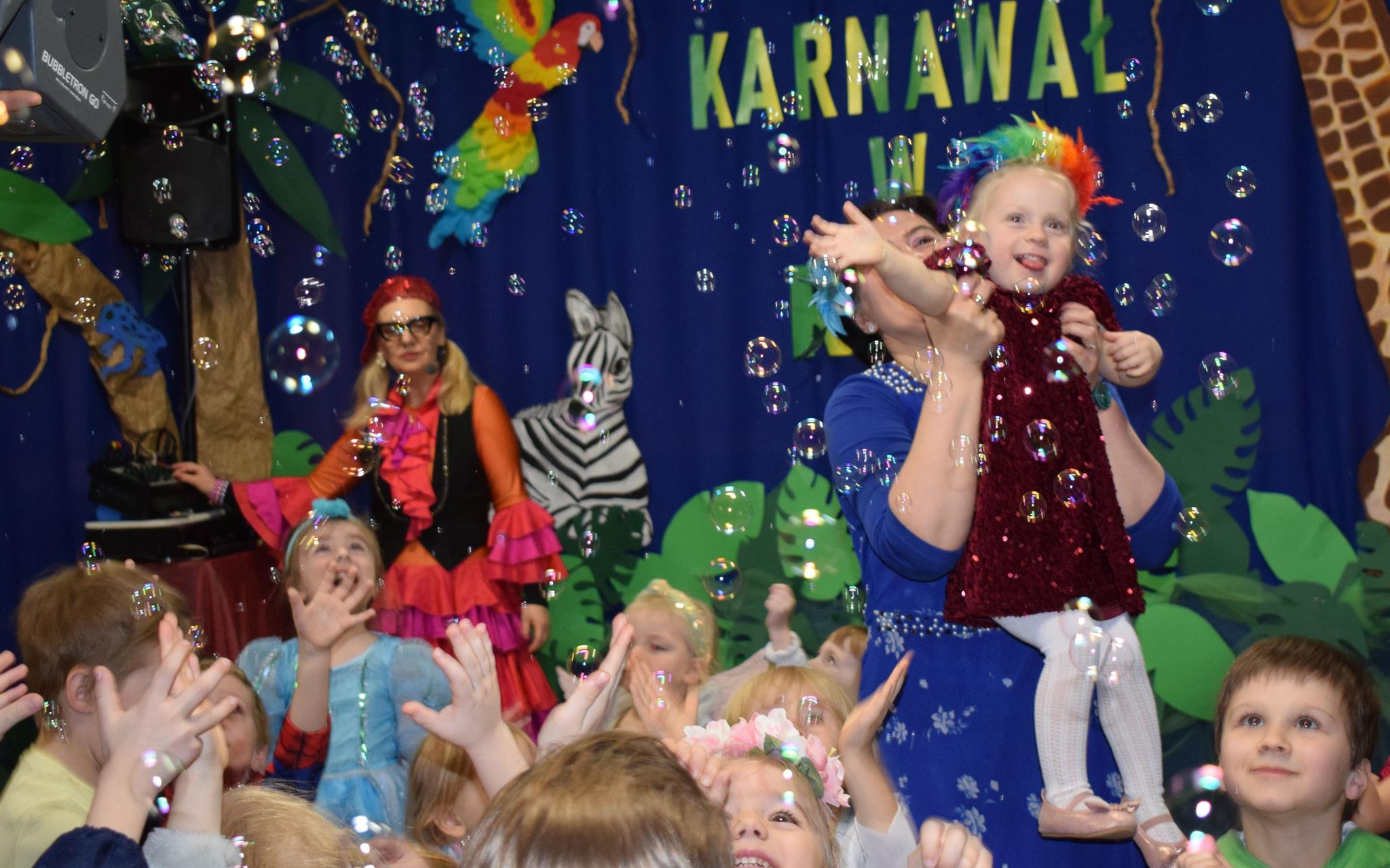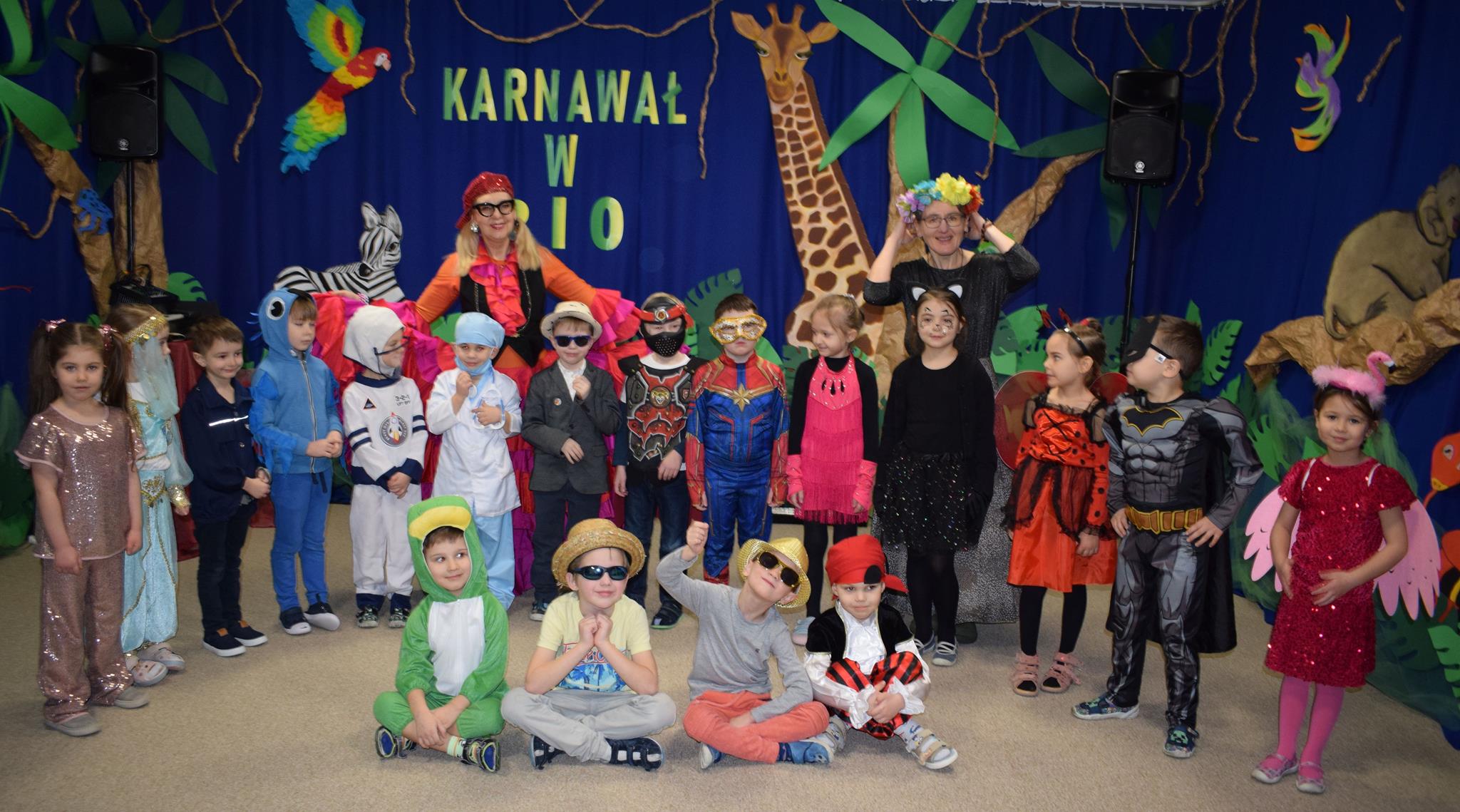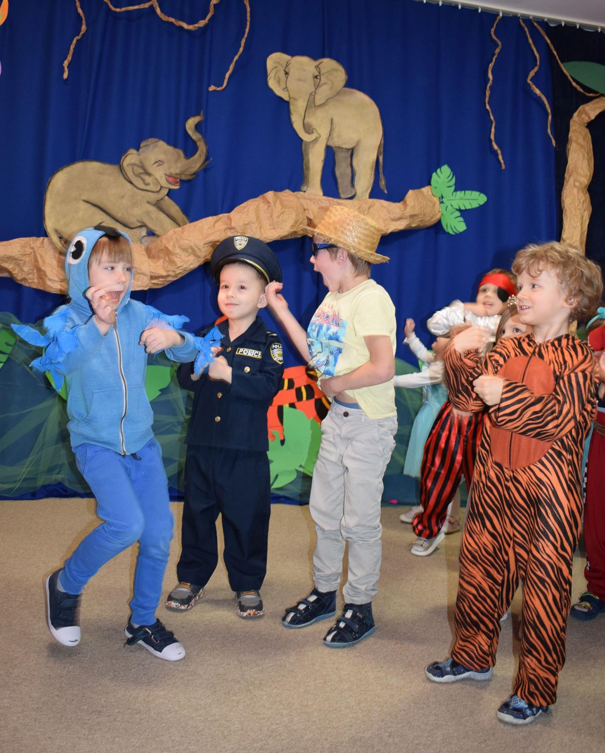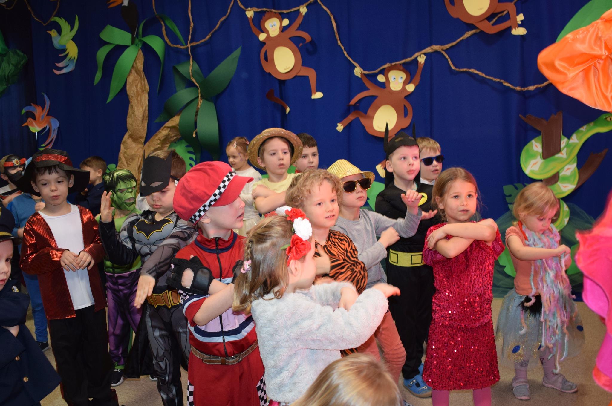 Tegoroczny karnawał rozpoczęliśmy taneczną imprezą. Żywiołowa muzyka pobudziła do tańca nawet najbardziej zasiedziałe przedszkolaki. Sunęliśmy po parkiecie solo, w parach i w wężykach w rytmie gorącej jak brazylijskie słońce samby. Wiele przebojów znaliśmy na pamięć, więc śpiewaliśmy głośno, jakby marząc o tym, by usłyszano nas na Copacabanie. Prowadzących zaś aktorów z Teatru Złoty Dukat zachwyciliśmy nie tylko swoimi umiejętnościami tanecznymi czy wokalnymi, lecz także wielobarwnymi strojami. Na parkiecie nie zabrakło policjantów, strażaków, postaci bajkowych, zwierzątek. Czas karnawałowych pląsów umilały liczne księżniczki i wróżki. Chwilami zdawało się, że wiosna już tuż-tuż, kiedy nagle swym kolorowym skrzydełkiem machnęła jakaś biedronka i motylek.