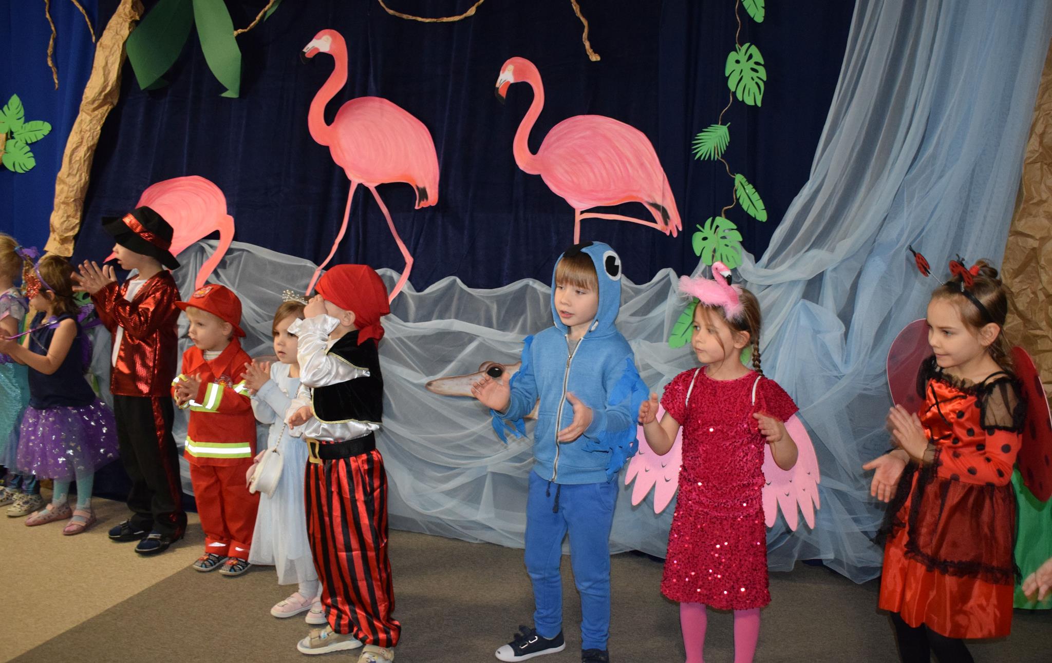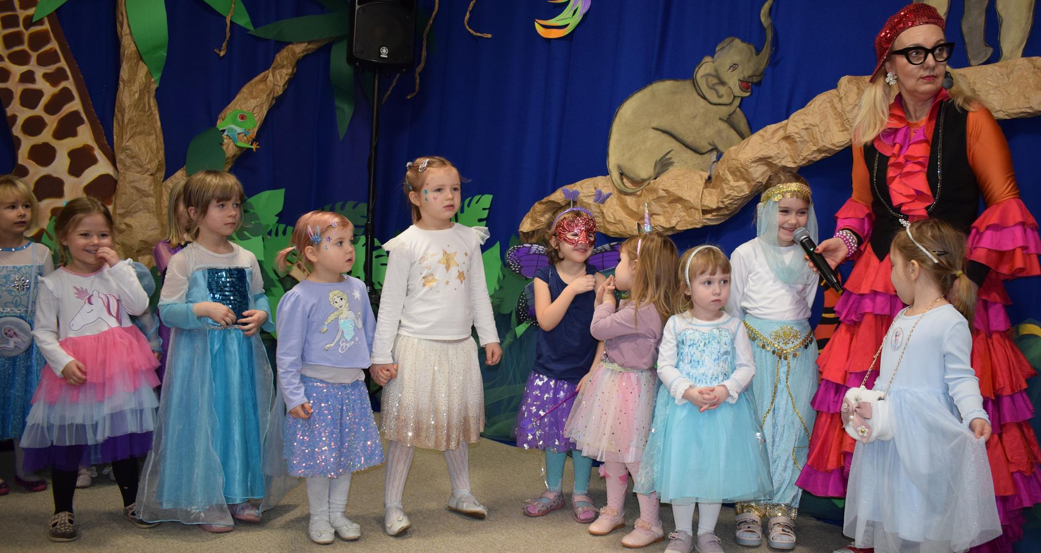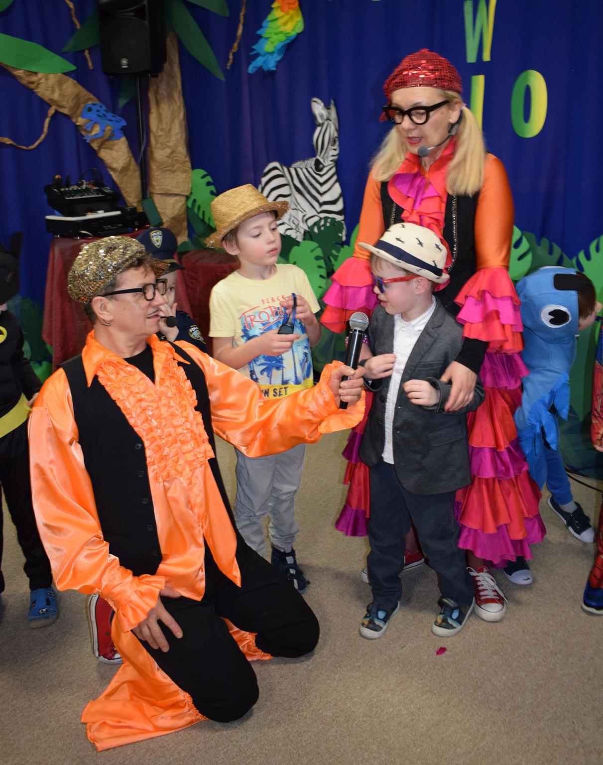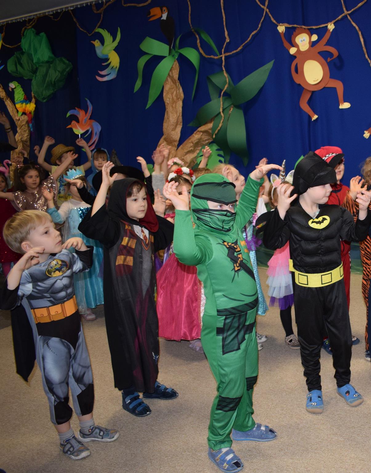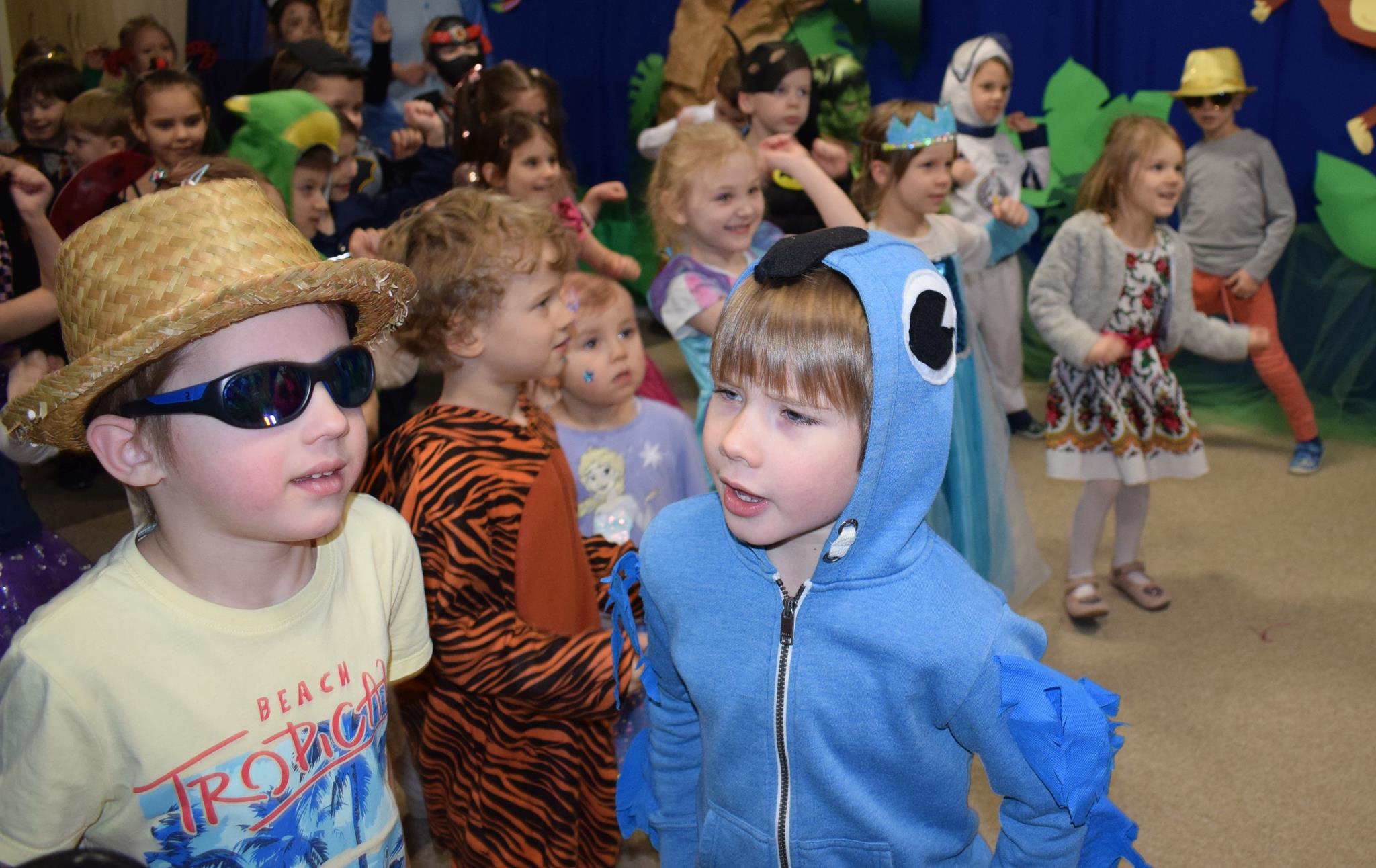 Tegoroczny karnawał rozpoczęliśmy taneczną imprezą. Żywiołowa muzyka pobudziła do tańca nawet najbardziej zasiedziałe przedszkolaki. Sunęliśmy po parkiecie solo, w parach i w wężykach w rytmie gorącej jak brazylijskie słońce samby. Wiele przebojów znaliśmy na pamięć, więc śpiewaliśmy głośno, jakby marząc o tym, by usłyszano nas na Copacabanie. Prowadzących zaś aktorów z Teatru Złoty Dukat zachwyciliśmy nie tylko swoimi umiejętnościami tanecznymi czy wokalnymi, lecz także wielobarwnymi strojami. Na parkiecie nie zabrakło policjantów, strażaków, postaci bajkowych, zwierzątek. Czas karnawałowych pląsów umilały liczne księżniczki i wróżki. Chwilami zdawało się, że wiosna już tuż-tuż, kiedy nagle swym kolorowym skrzydełkiem machnęła jakaś biedronka i motylek.