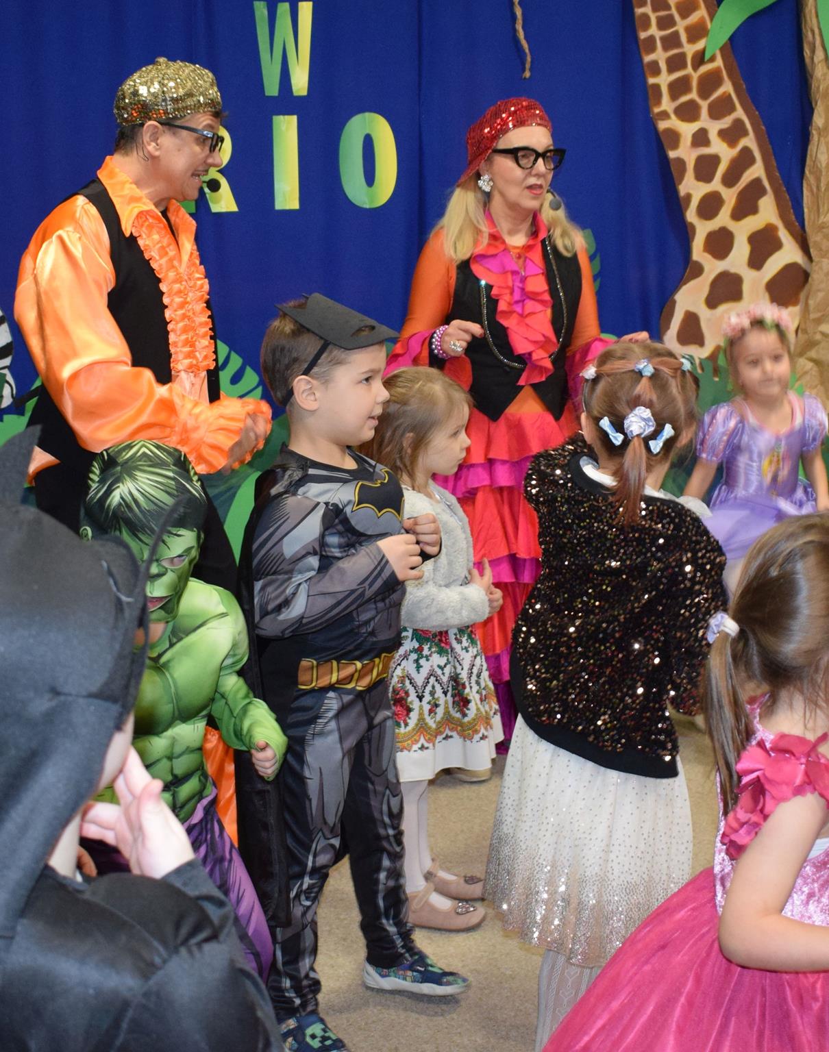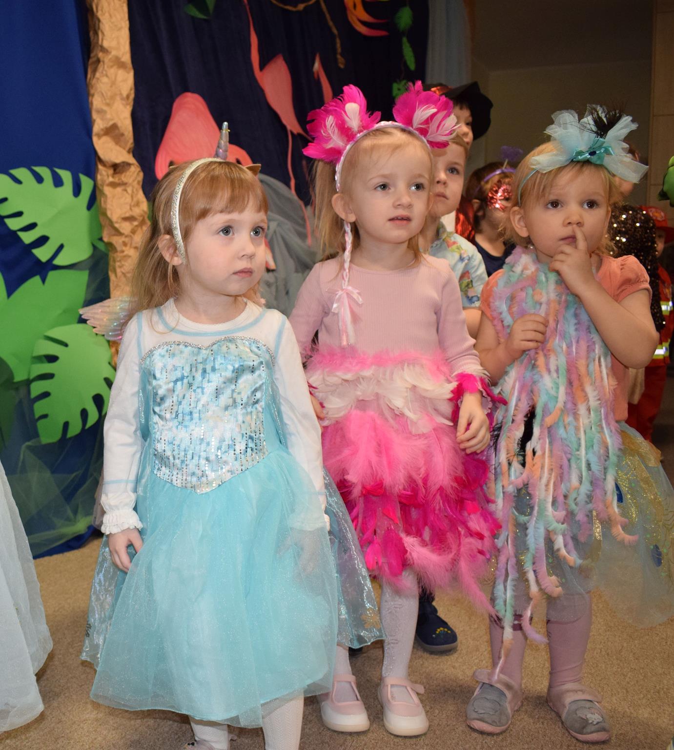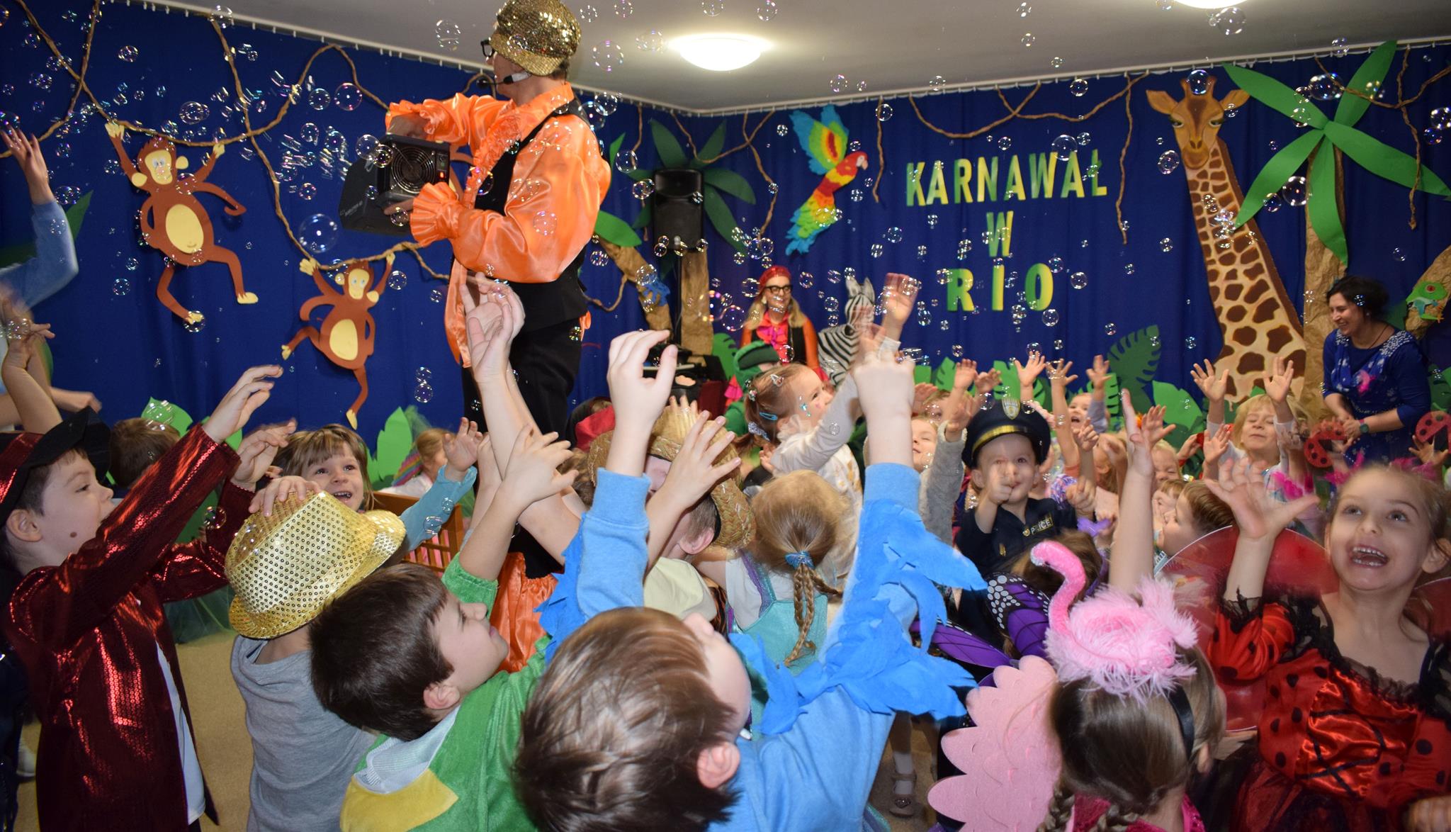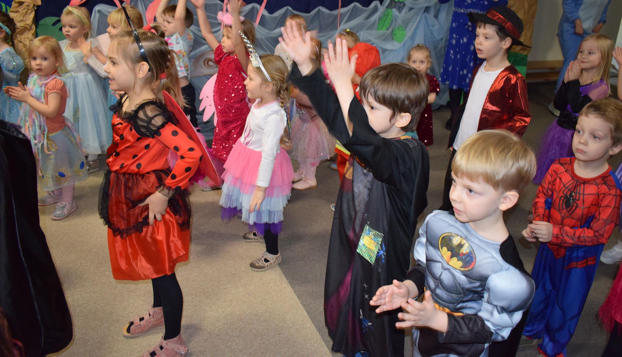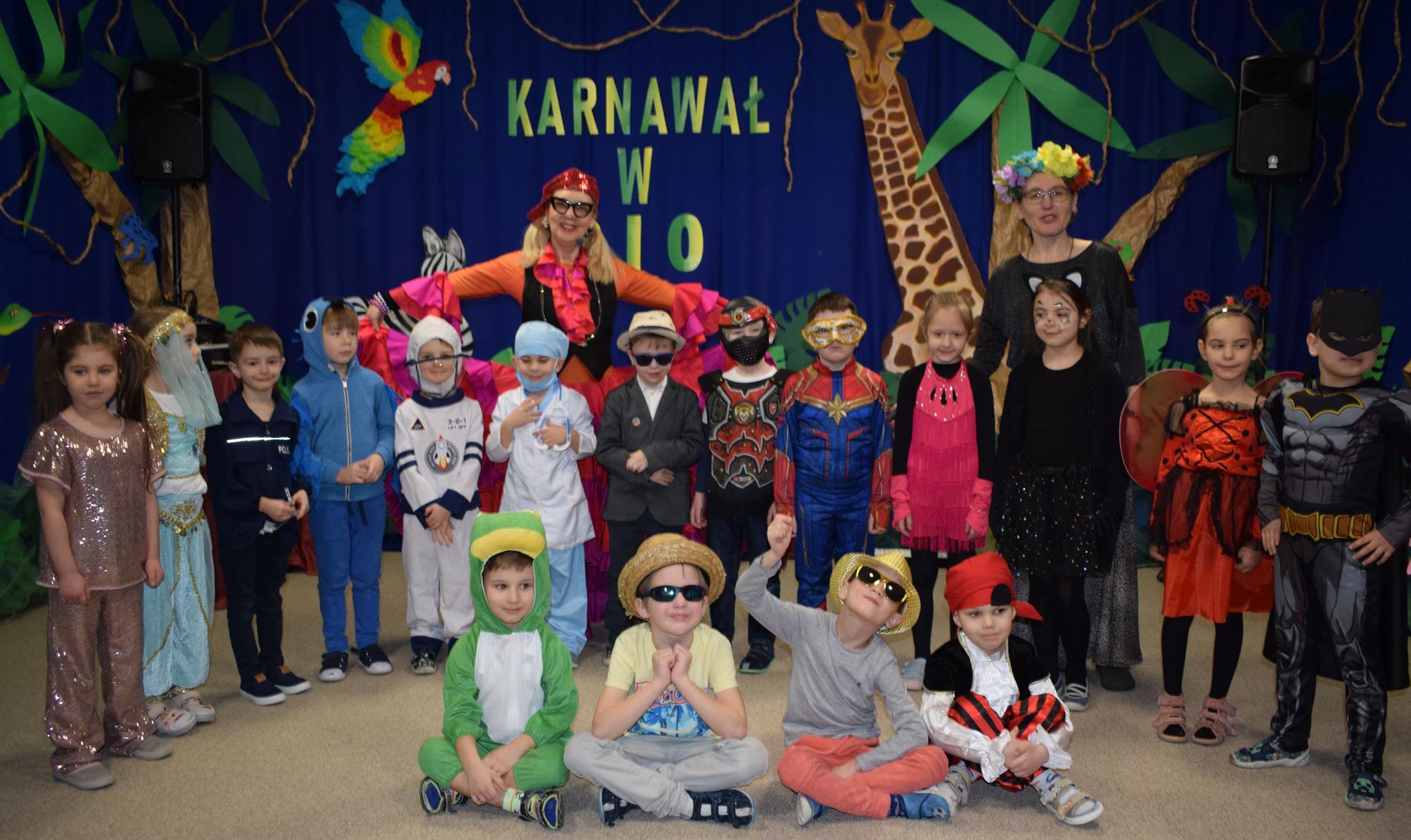 Tegoroczny karnawał rozpoczęliśmy taneczną imprezą. Żywiołowa muzyka pobudziła do tańca nawet najbardziej zasiedziałe przedszkolaki. Sunęliśmy po parkiecie solo, w parach i w wężykach w rytmie gorącej jak brazylijskie słońce samby. Wiele przebojów znaliśmy na pamięć, więc śpiewaliśmy głośno, jakby marząc o tym, by usłyszano nas na Copacabanie. Prowadzących zaś aktorów z Teatru Złoty Dukat zachwyciliśmy nie tylko swoimi umiejętnościami tanecznymi czy wokalnymi, lecz także wielobarwnymi strojami. Na parkiecie nie zabrakło policjantów, strażaków, postaci bajkowych, zwierzątek. Czas karnawałowych pląsów umilały liczne księżniczki i wróżki. Chwilami zdawało się, że wiosna już tuż-tuż, kiedy nagle swym kolorowym skrzydełkiem machnęła jakaś biedronka i motylek.