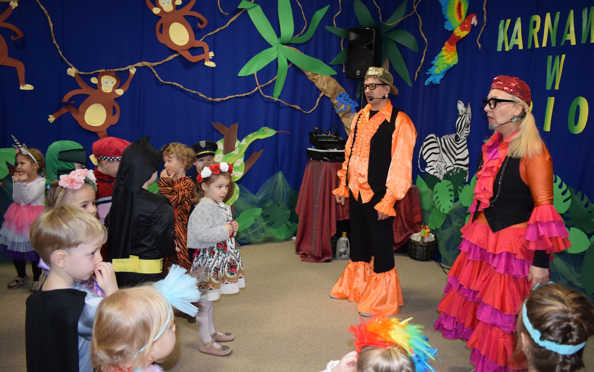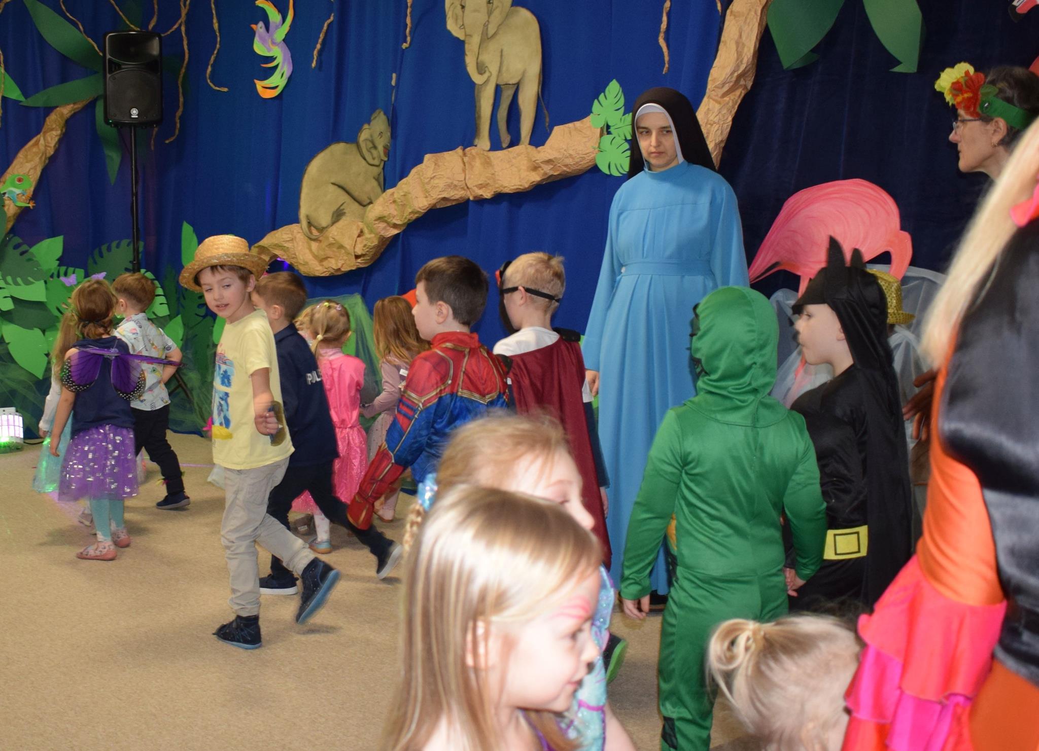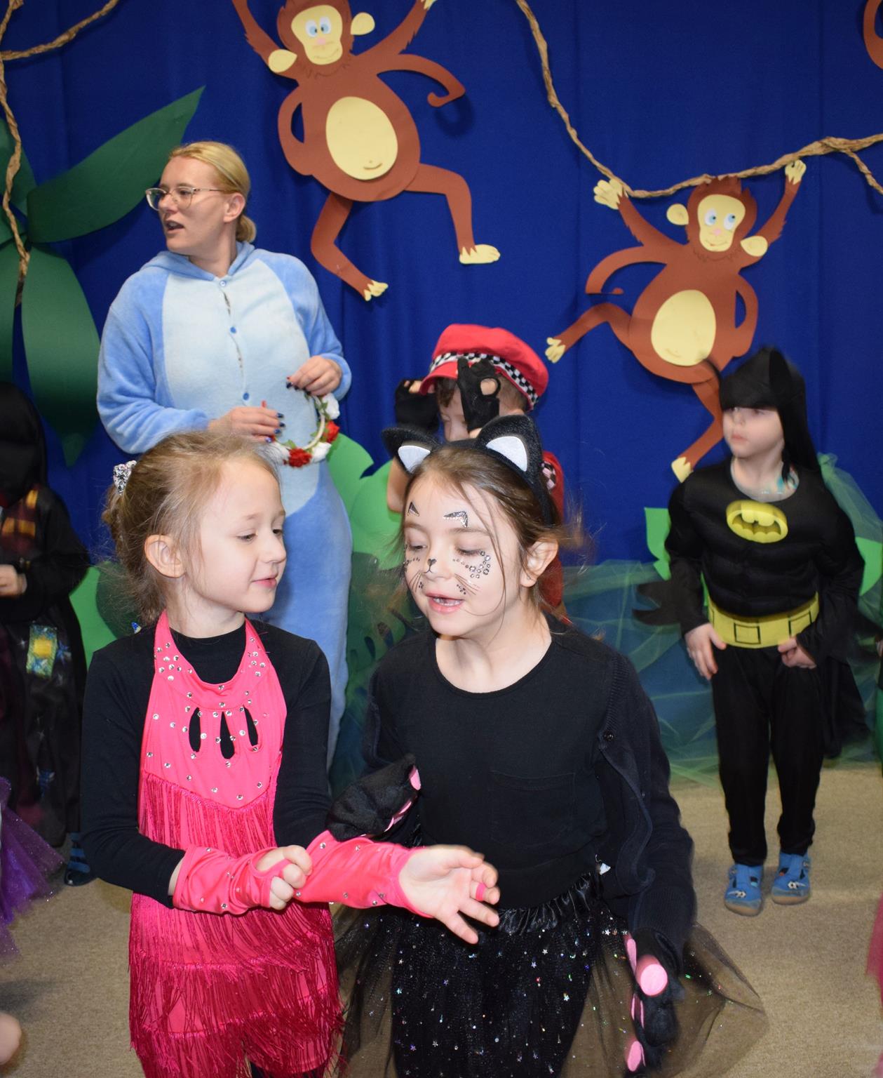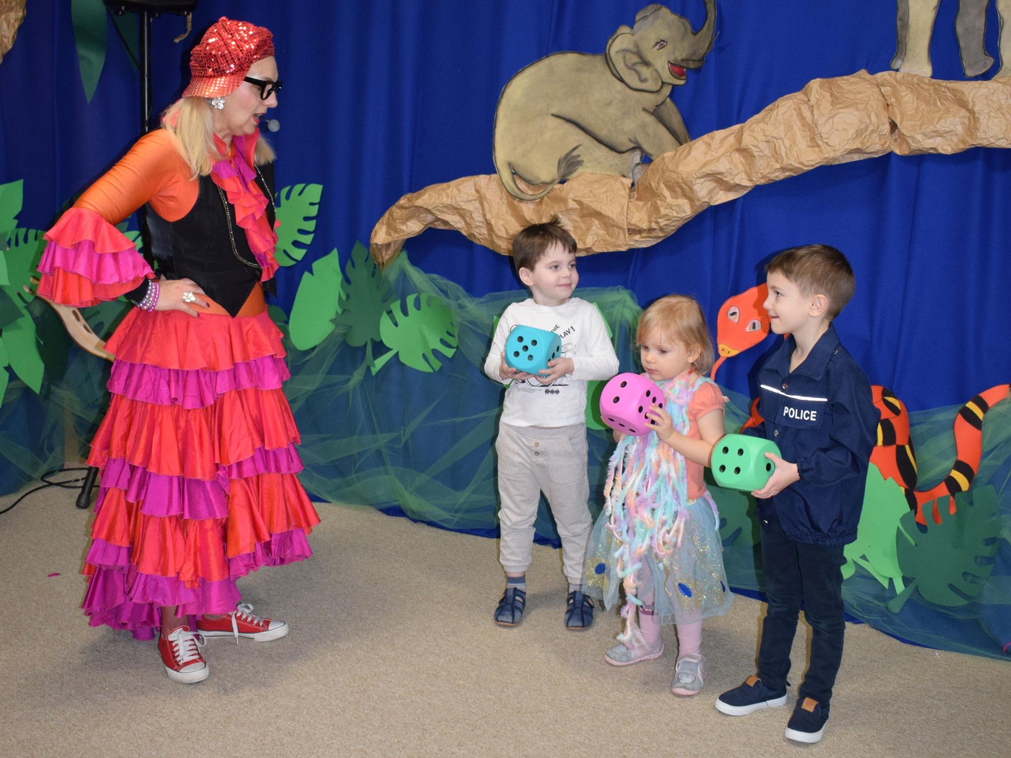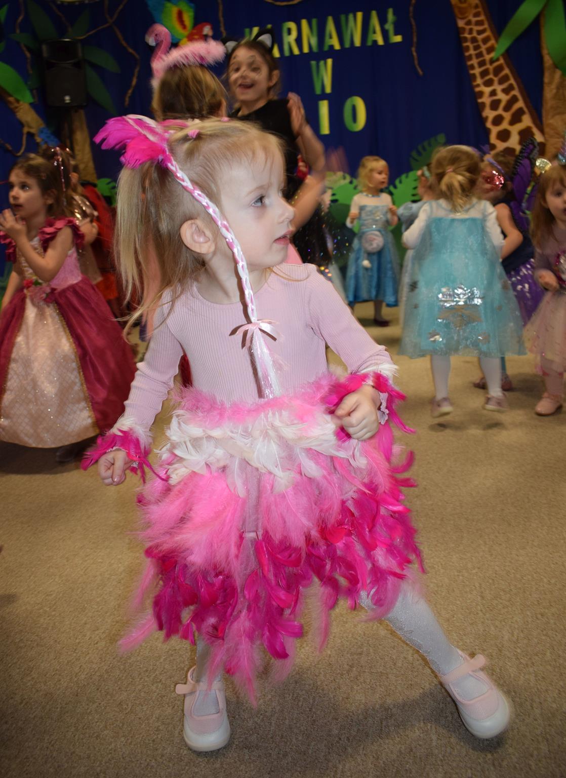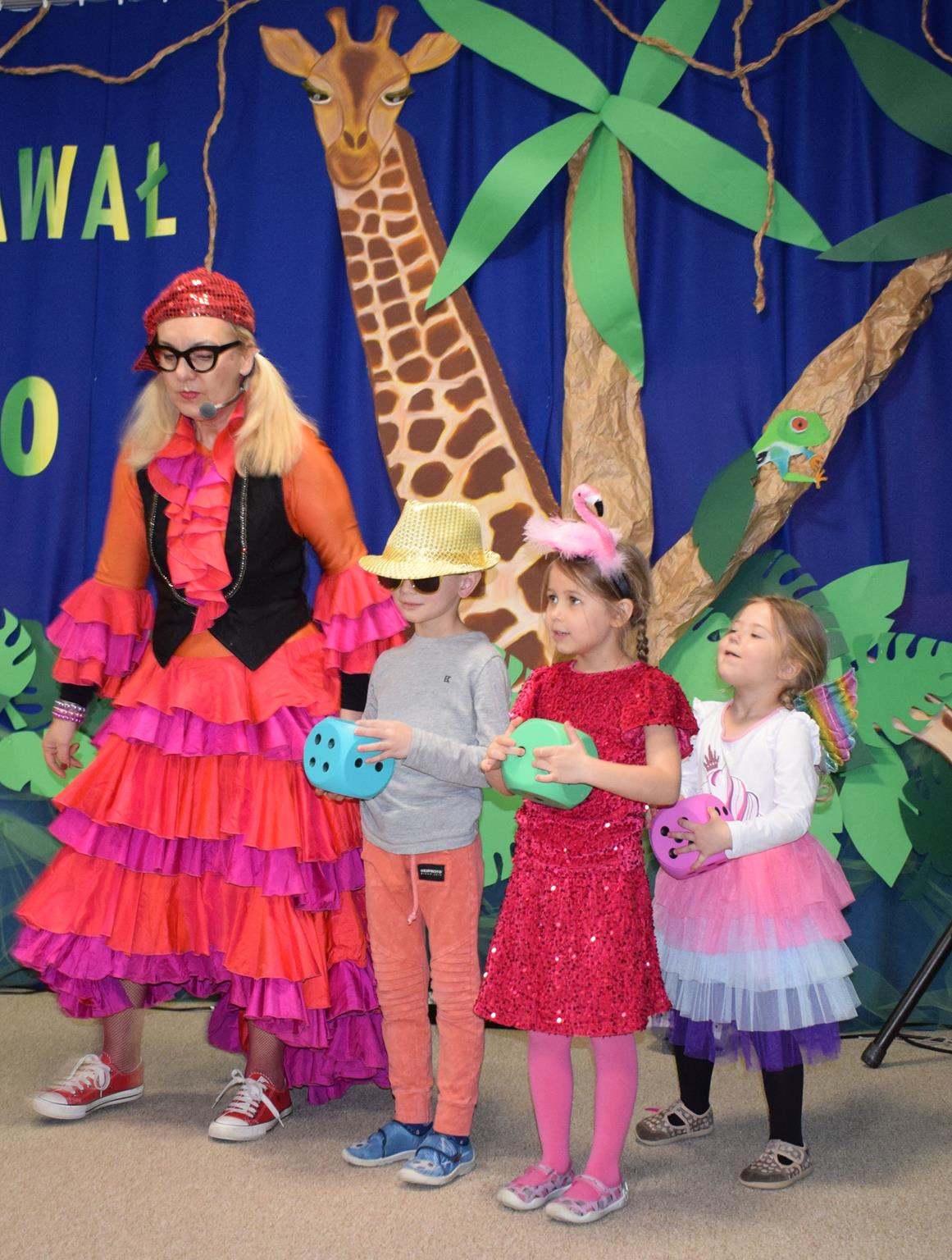 Tegoroczny karnawał rozpoczęliśmy taneczną imprezą. Żywiołowa muzyka pobudziła do tańca nawet najbardziej zasiedziałe przedszkolaki. Sunęliśmy po parkiecie solo, w parach i w wężykach w rytmie gorącej jak brazylijskie słońce samby. Wiele przebojów znaliśmy na pamięć, więc śpiewaliśmy głośno, jakby marząc o tym, by usłyszano nas na Copacabanie. Prowadzących zaś aktorów z Teatru Złoty Dukat zachwyciliśmy nie tylko swoimi umiejętnościami tanecznymi czy wokalnymi, lecz także wielobarwnymi strojami. Na parkiecie nie zabrakło policjantów, strażaków, postaci bajkowych, zwierzątek. Czas karnawałowych pląsów umilały liczne księżniczki i wróżki. Chwilami zdawało się, że wiosna już tuż-tuż, kiedy nagle swym kolorowym skrzydełkiem machnęła jakaś biedronka i motylek.