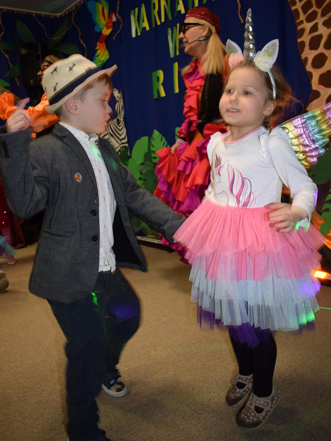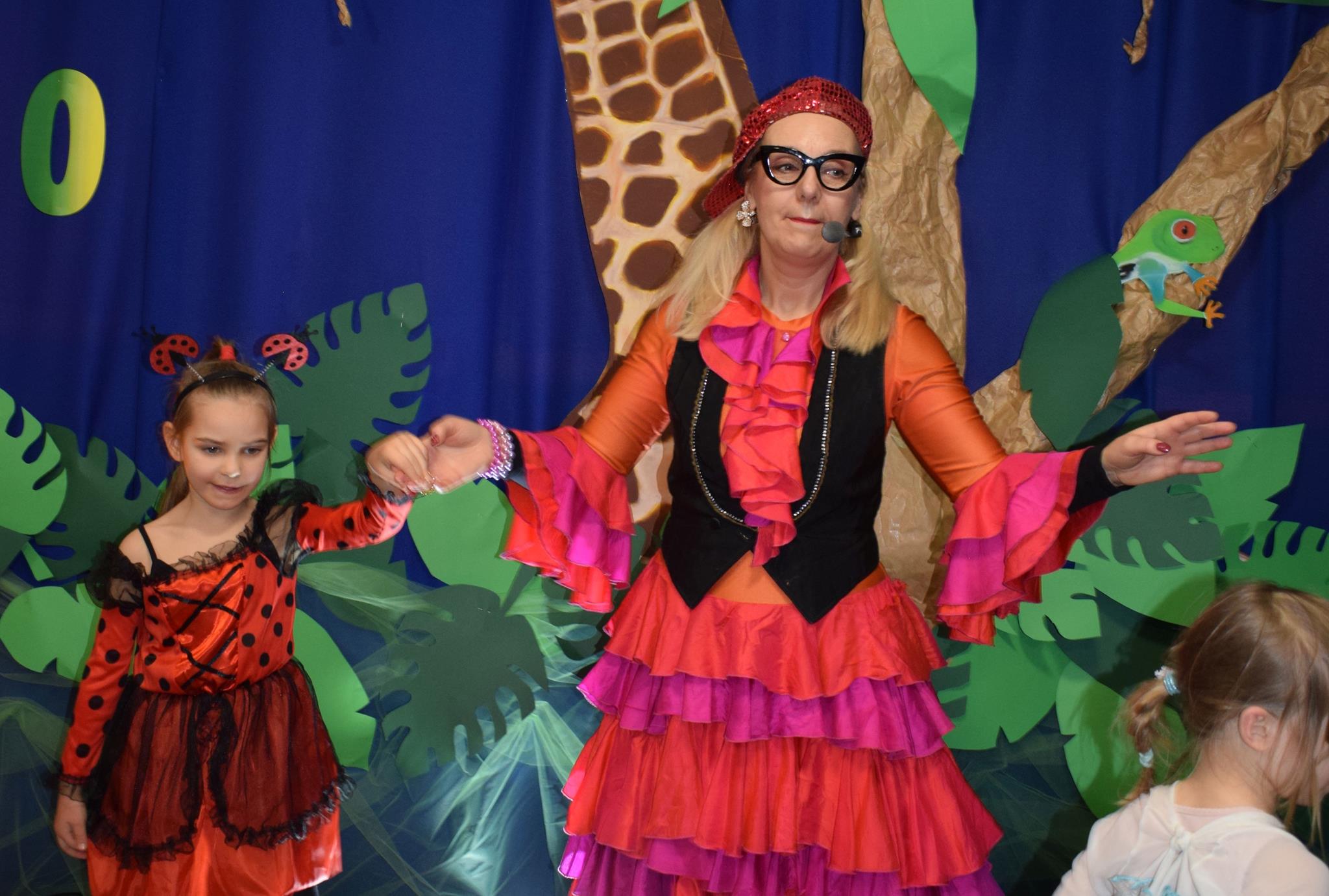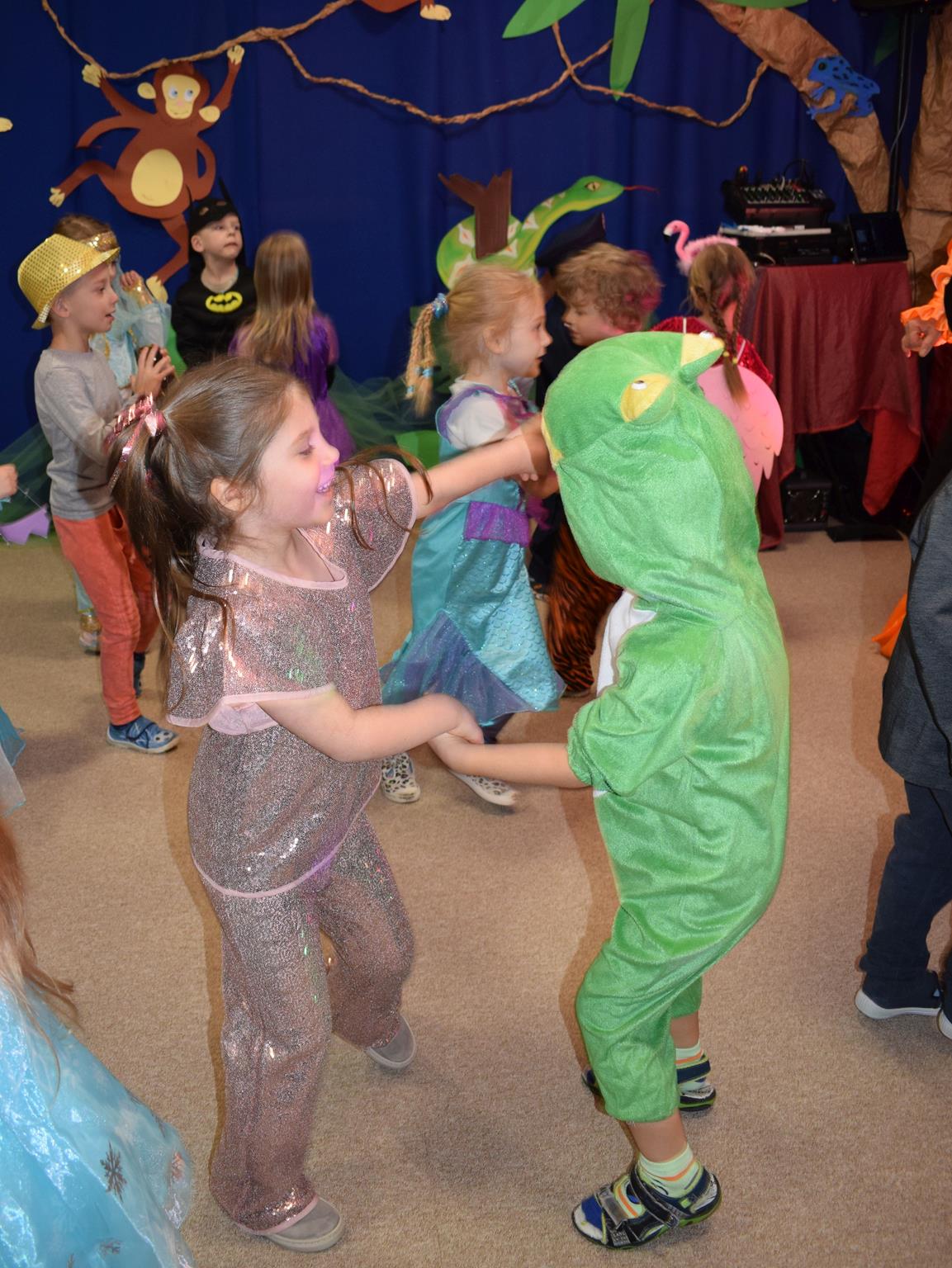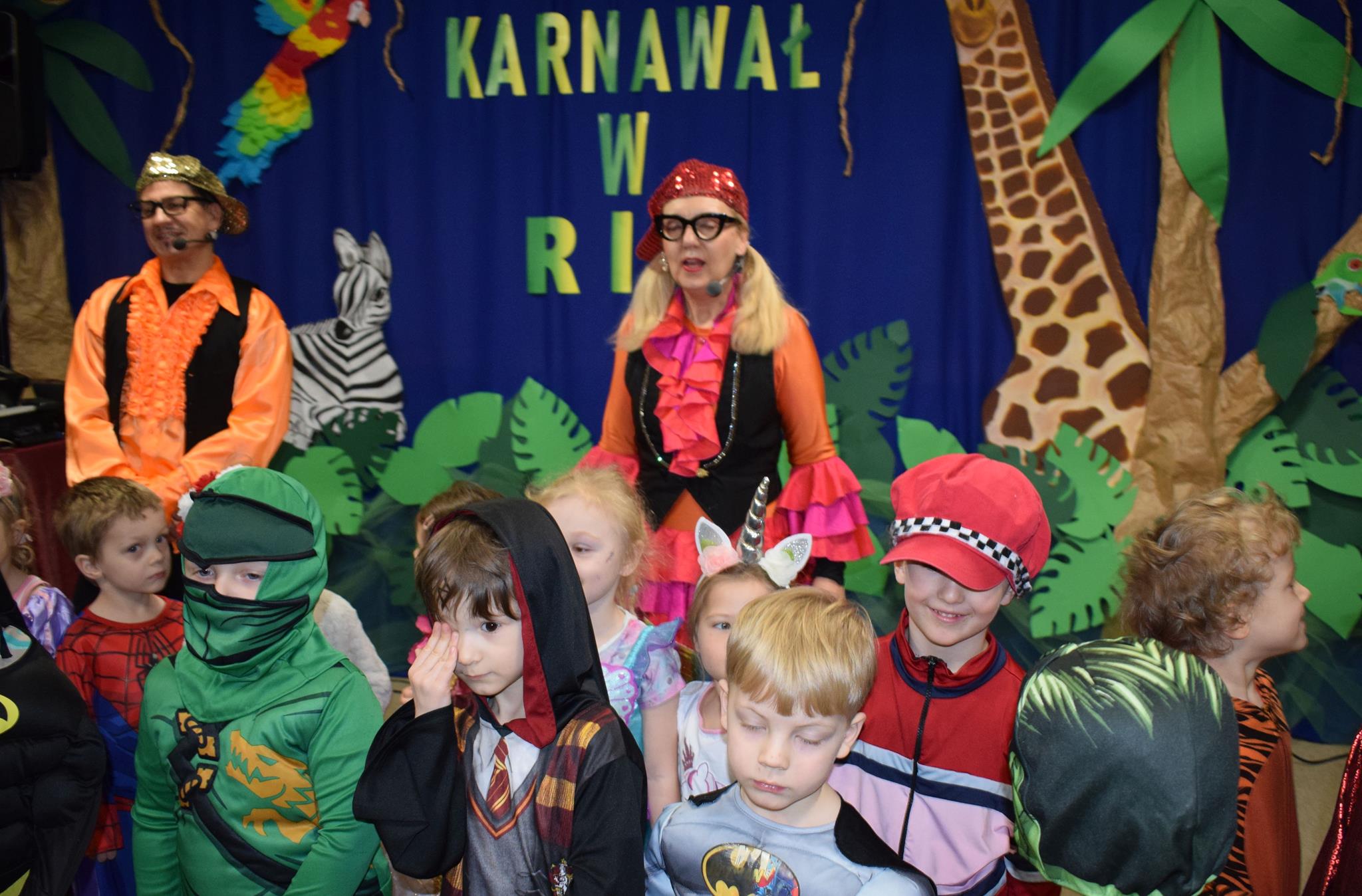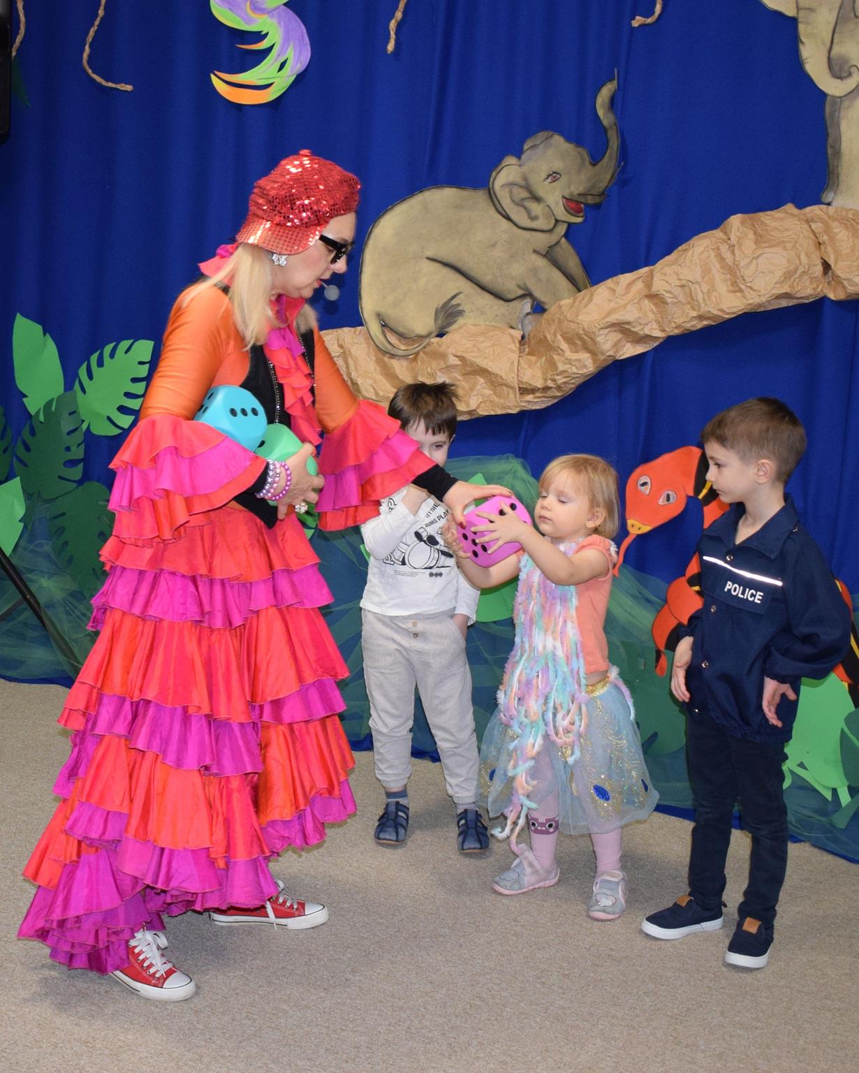 Tegoroczny karnawał rozpoczęliśmy taneczną imprezą. Żywiołowa muzyka pobudziła do tańca nawet najbardziej zasiedziałe przedszkolaki. Sunęliśmy po parkiecie solo, w parach i w wężykach w rytmie gorącej jak brazylijskie słońce samby. Wiele przebojów znaliśmy na pamięć, więc śpiewaliśmy głośno, jakby marząc o tym, by usłyszano nas na Copacabanie. Prowadzących zaś aktorów z Teatru Złoty Dukat zachwyciliśmy nie tylko swoimi umiejętnościami tanecznymi czy wokalnymi, lecz także wielobarwnymi strojami. Na parkiecie nie zabrakło policjantów, strażaków, postaci bajkowych, zwierzątek. Czas karnawałowych pląsów umilały liczne księżniczki i wróżki. Chwilami zdawało się, że wiosna już tuż-tuż, kiedy nagle swym kolorowym skrzydełkiem machnęła jakaś biedronka i motylek.