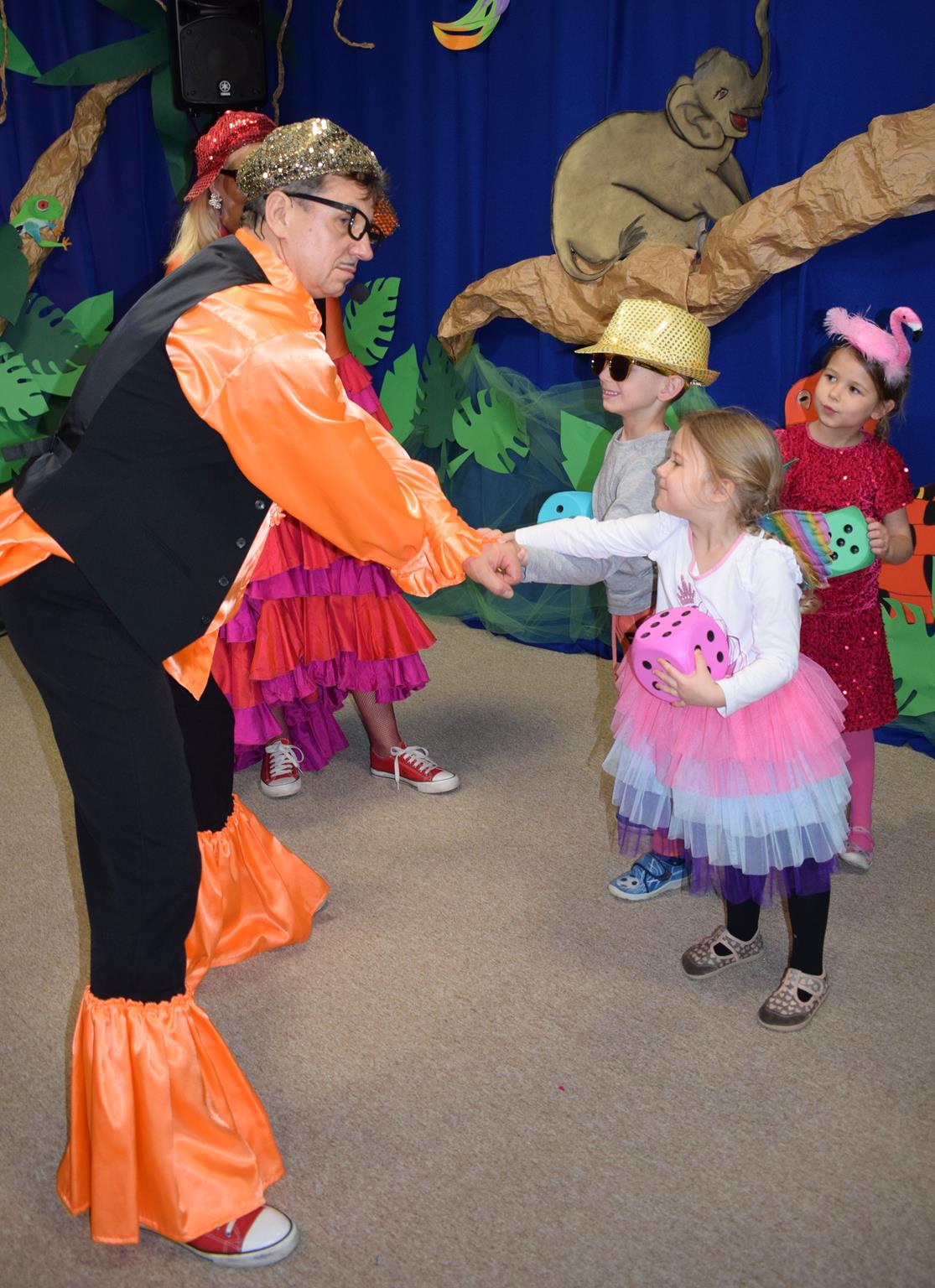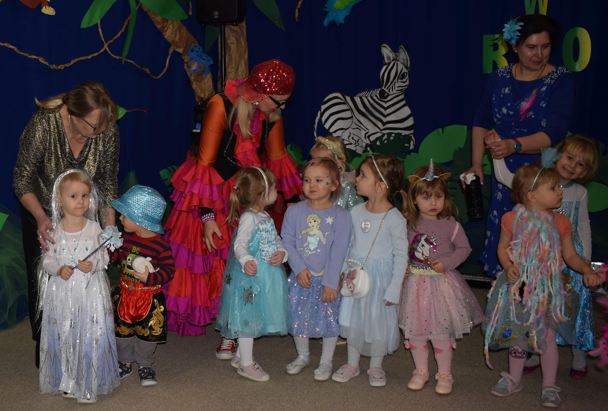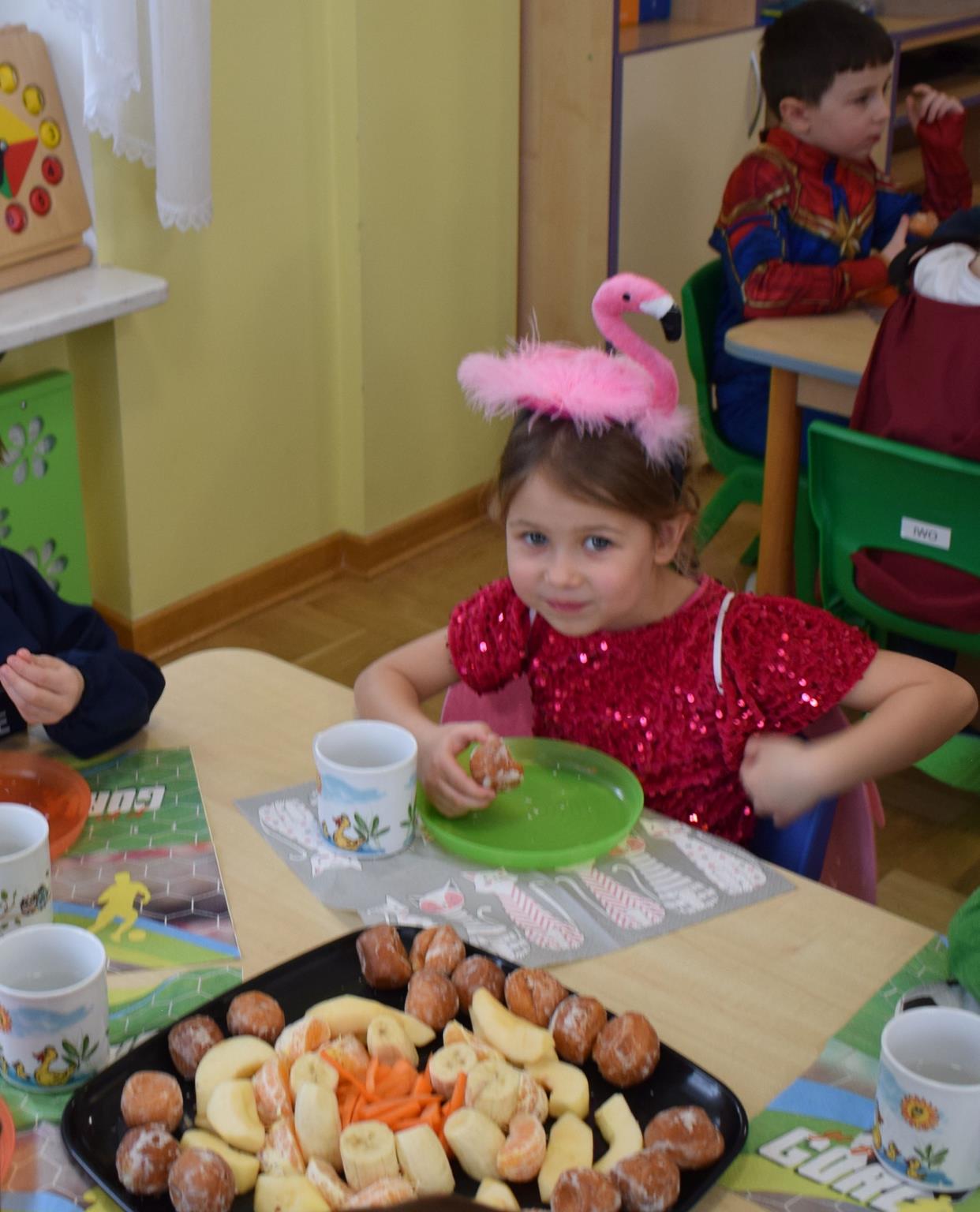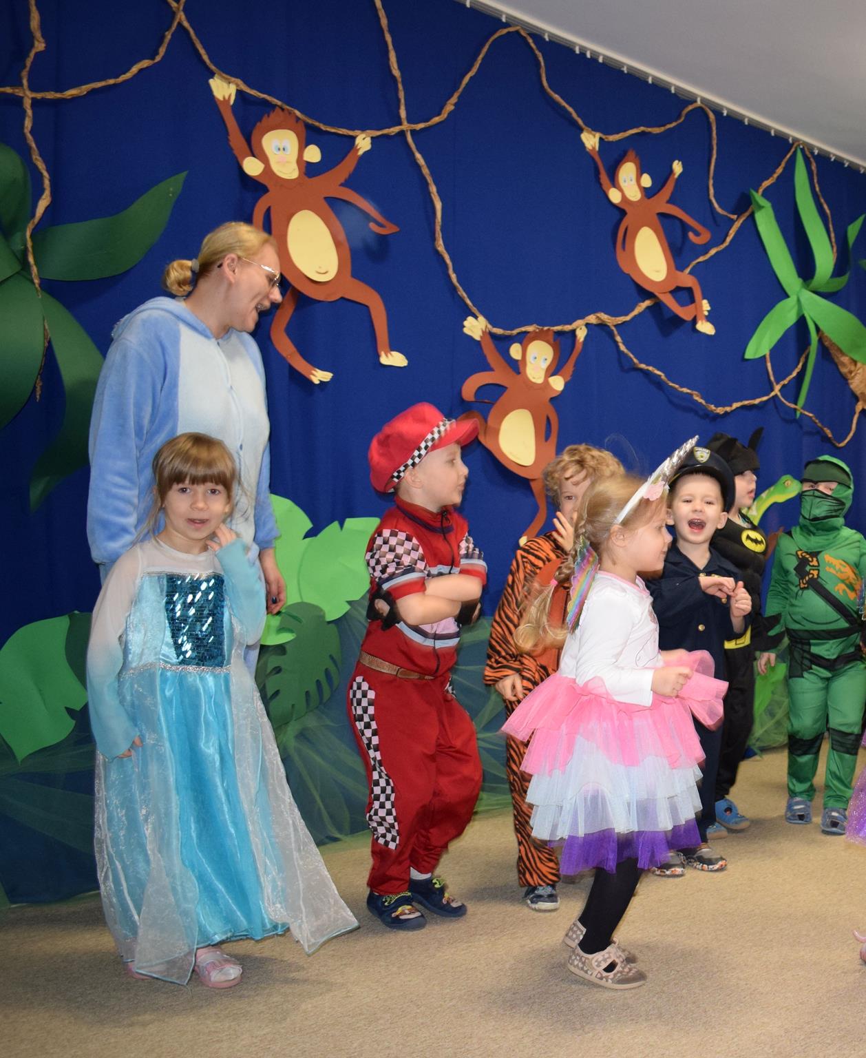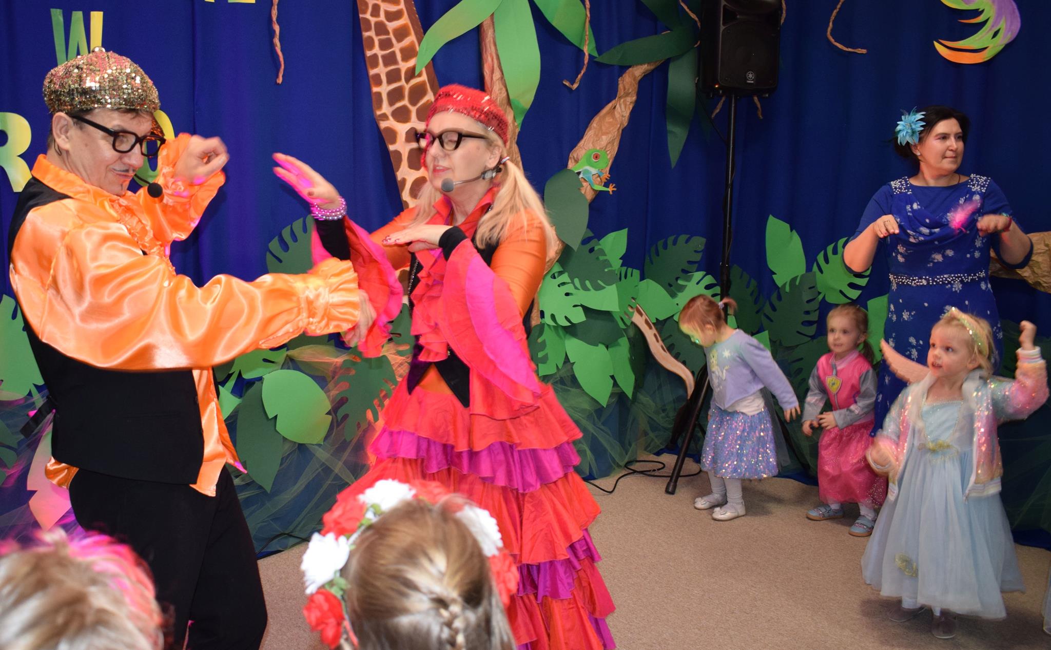 Tegoroczny karnawał rozpoczęliśmy taneczną imprezą. Żywiołowa muzyka pobudziła do tańca nawet najbardziej zasiedziałe przedszkolaki. Sunęliśmy po parkiecie solo, w parach i w wężykach w rytmie gorącej jak brazylijskie słońce samby. Wiele przebojów znaliśmy na pamięć, więc śpiewaliśmy głośno, jakby marząc o tym, by usłyszano nas na Copacabanie. Prowadzących zaś aktorów z Teatru Złoty Dukat zachwyciliśmy nie tylko swoimi umiejętnościami tanecznymi czy wokalnymi, lecz także wielobarwnymi strojami. Na parkiecie nie zabrakło policjantów, strażaków, postaci bajkowych, zwierzątek. Czas karnawałowych pląsów umilały liczne księżniczki i wróżki. Chwilami zdawało się, że wiosna już tuż-tuż, kiedy nagle swym kolorowym skrzydełkiem machnęła jakaś biedronka i motylek.
