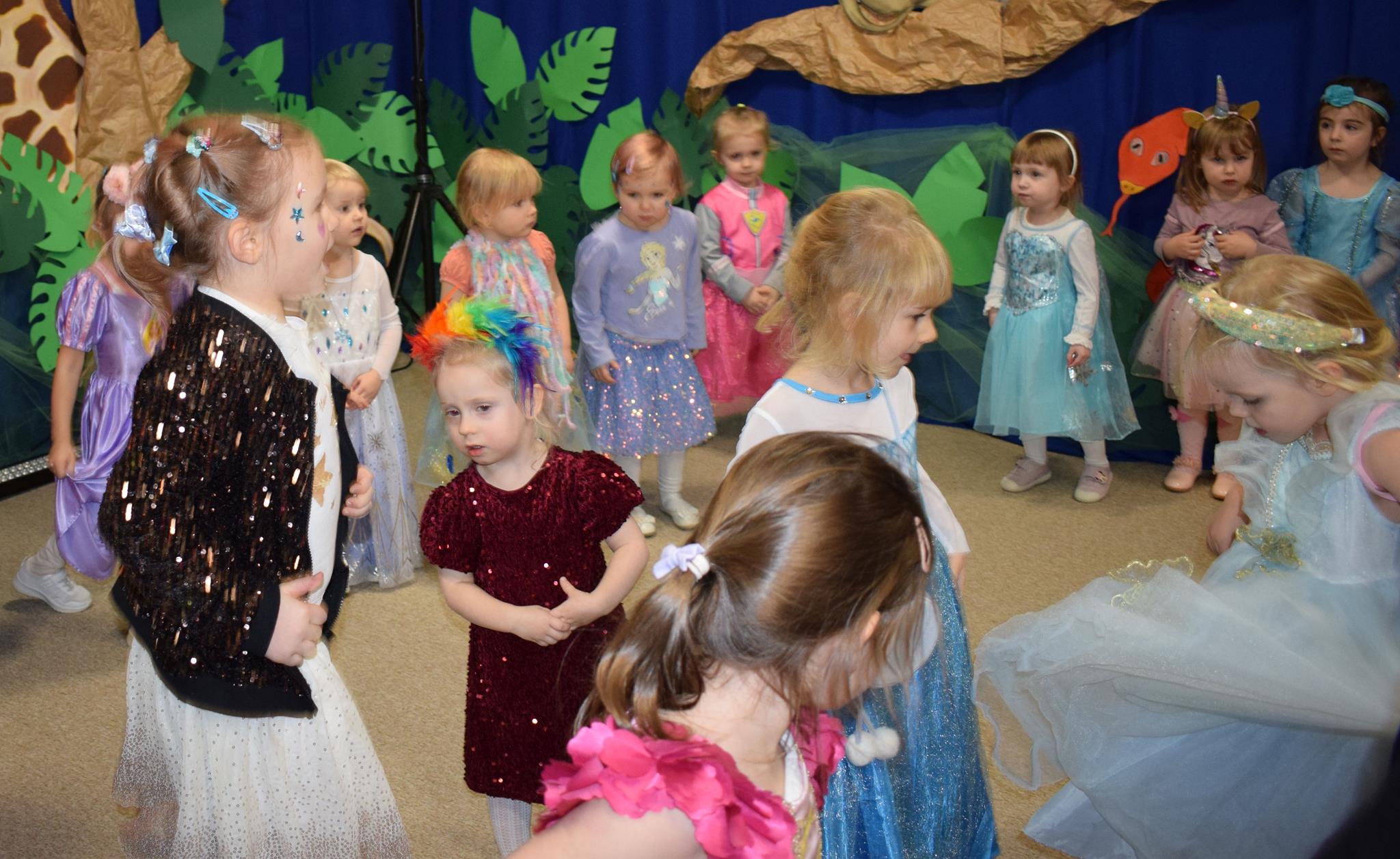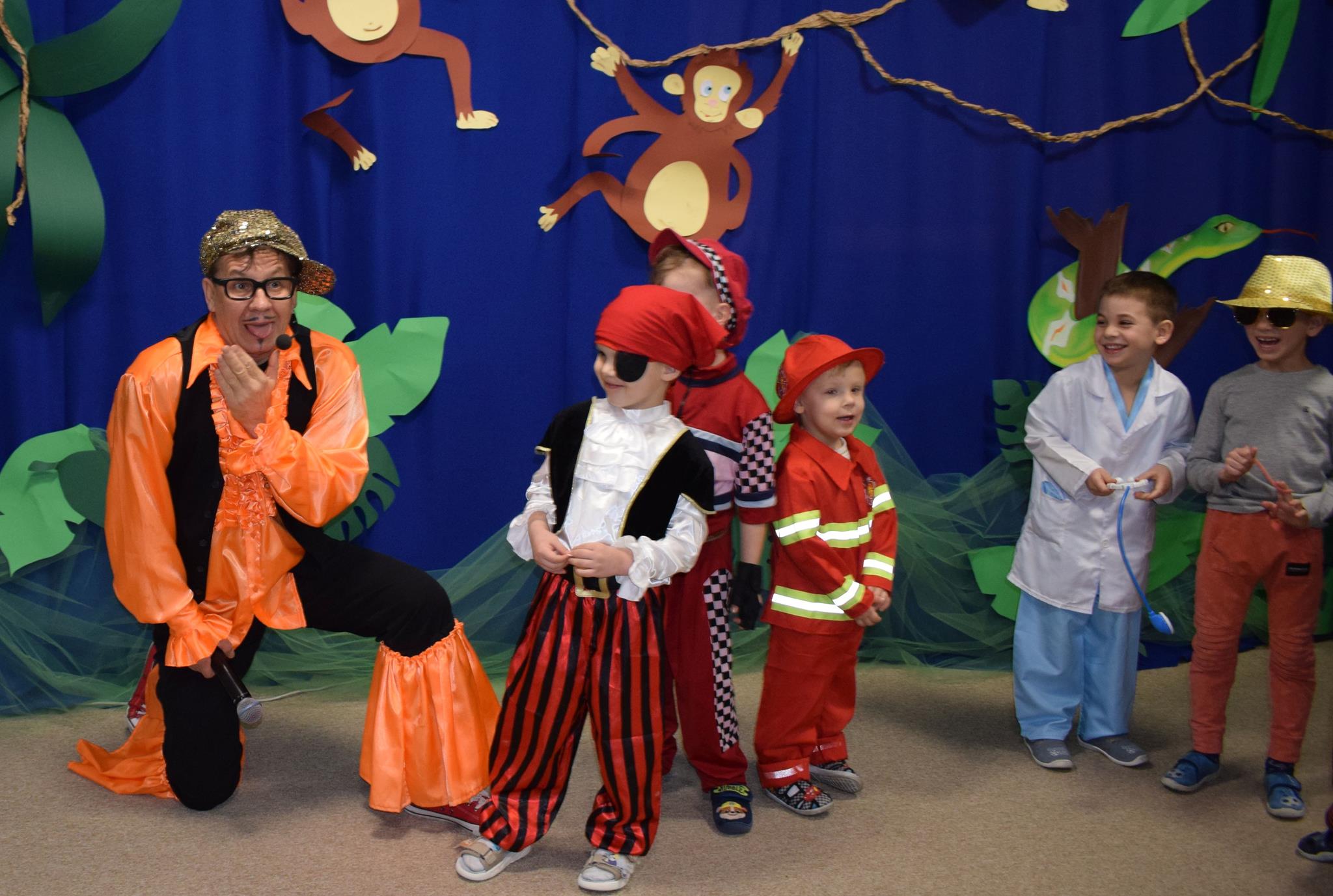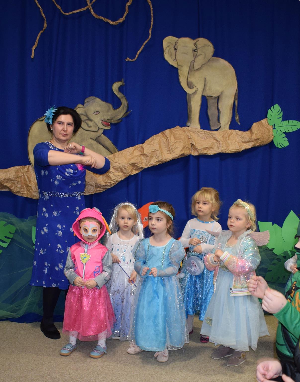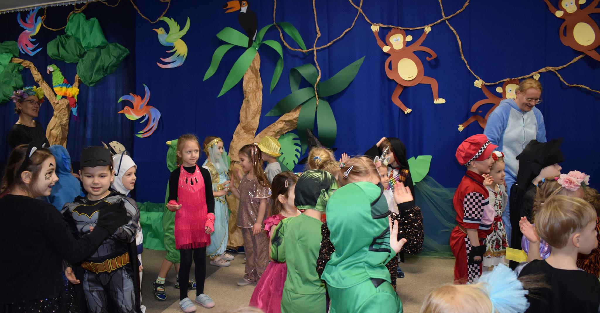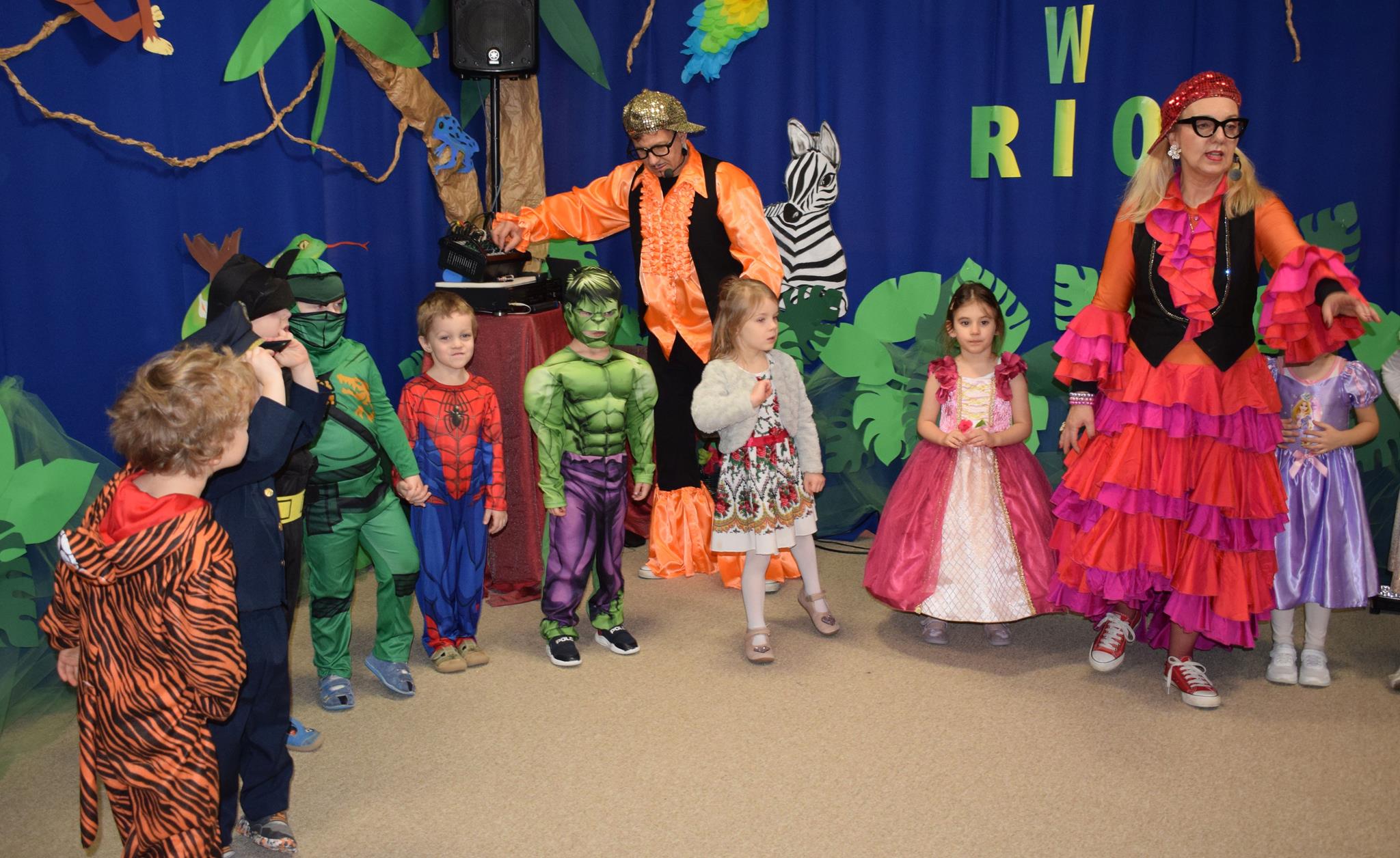 Tegoroczny karnawał rozpoczęliśmy taneczną imprezą. Żywiołowa muzyka pobudziła do tańca nawet najbardziej zasiedziałe przedszkolaki. Sunęliśmy po parkiecie solo, w parach i w wężykach w rytmie gorącej jak brazylijskie słońce samby. Wiele przebojów znaliśmy na pamięć, więc śpiewaliśmy głośno, jakby marząc o tym, by usłyszano nas na Copacabanie. Prowadzących zaś aktorów z Teatru Złoty Dukat zachwyciliśmy nie tylko swoimi umiejętnościami tanecznymi czy wokalnymi, lecz także wielobarwnymi strojami. Na parkiecie nie zabrakło policjantów, strażaków, postaci bajkowych, zwierzątek. Czas karnawałowych pląsów umilały liczne księżniczki i wróżki. Chwilami zdawało się, że wiosna już tuż-tuż, kiedy nagle swym kolorowym skrzydełkiem machnęła jakaś biedronka i motylek.