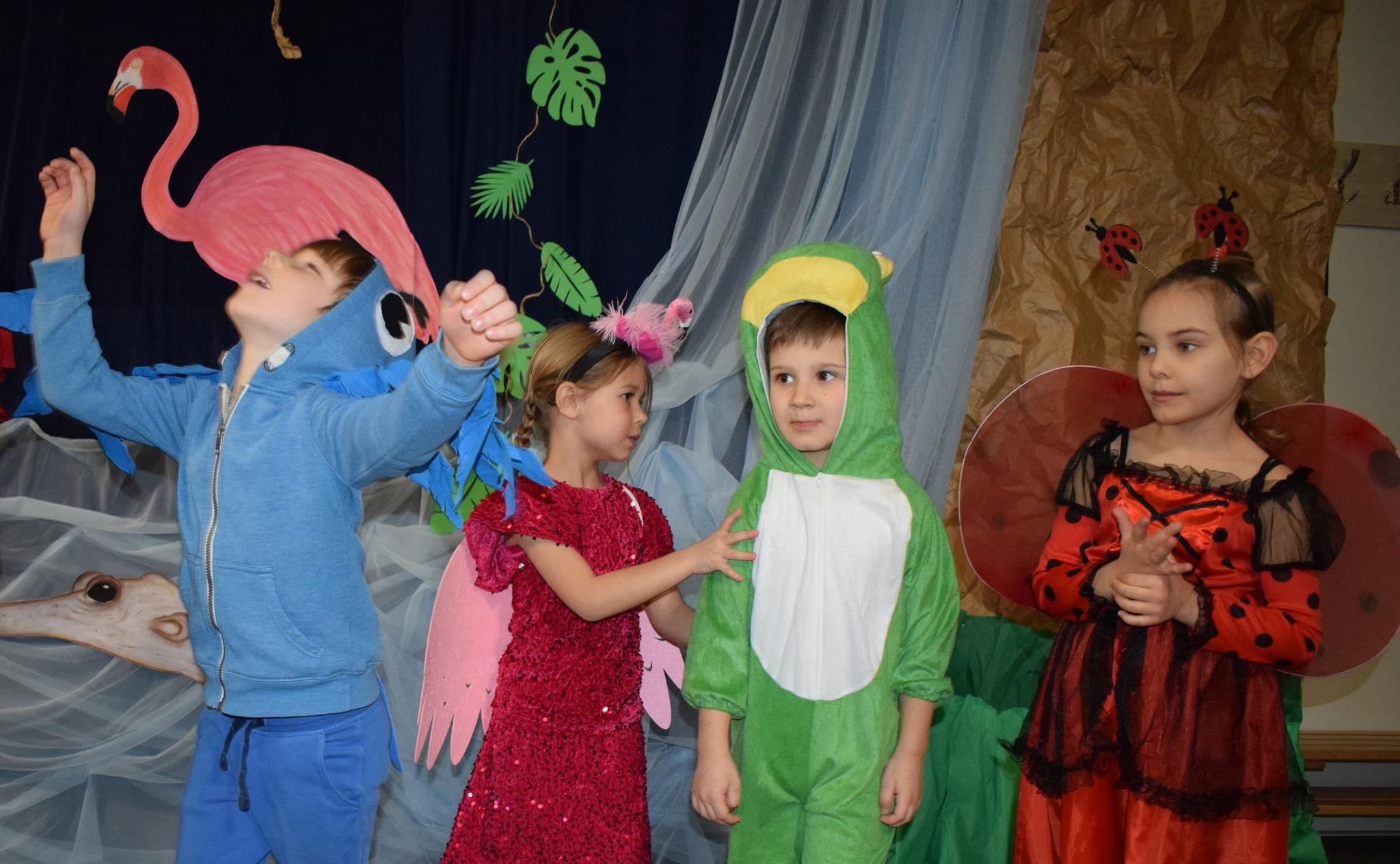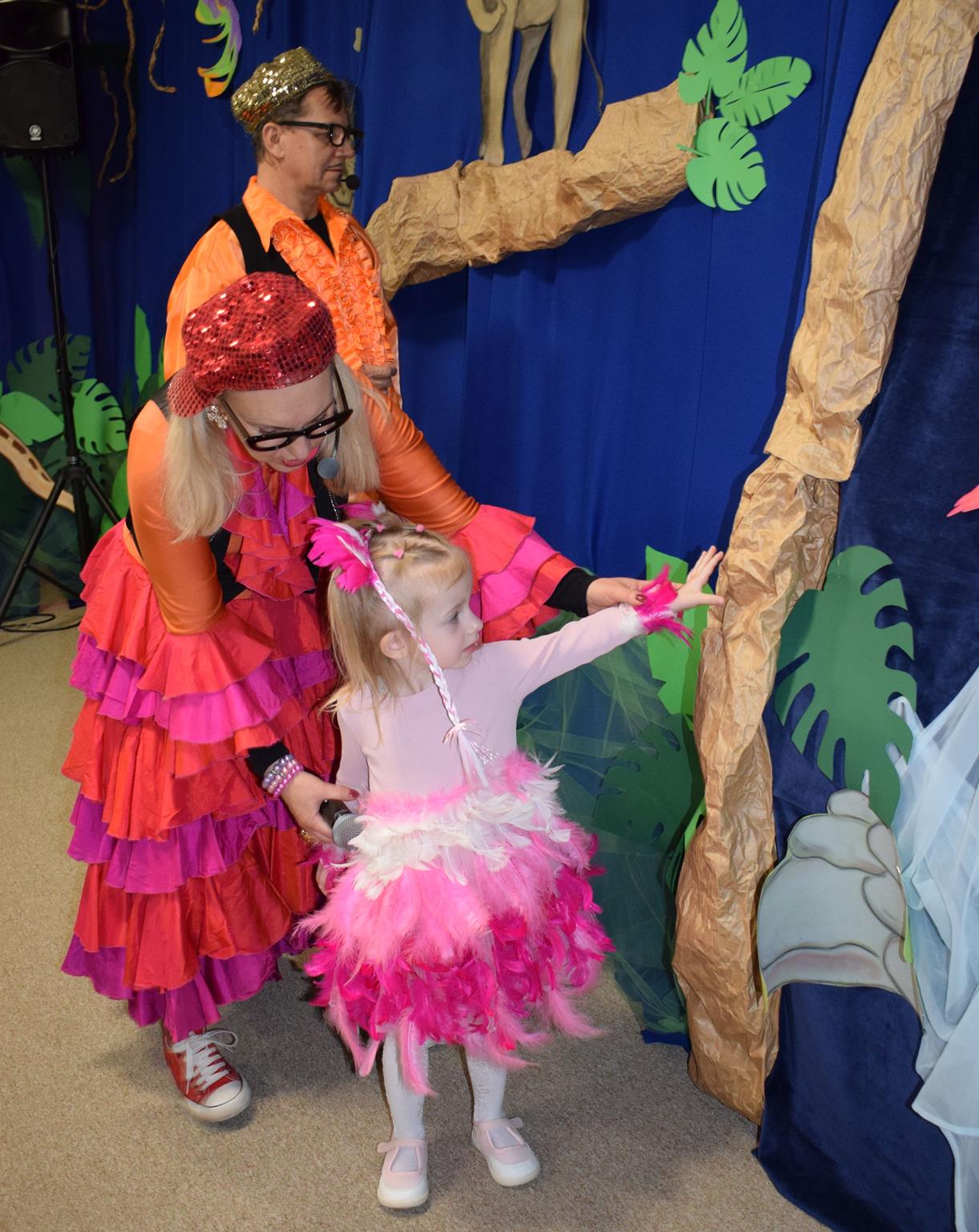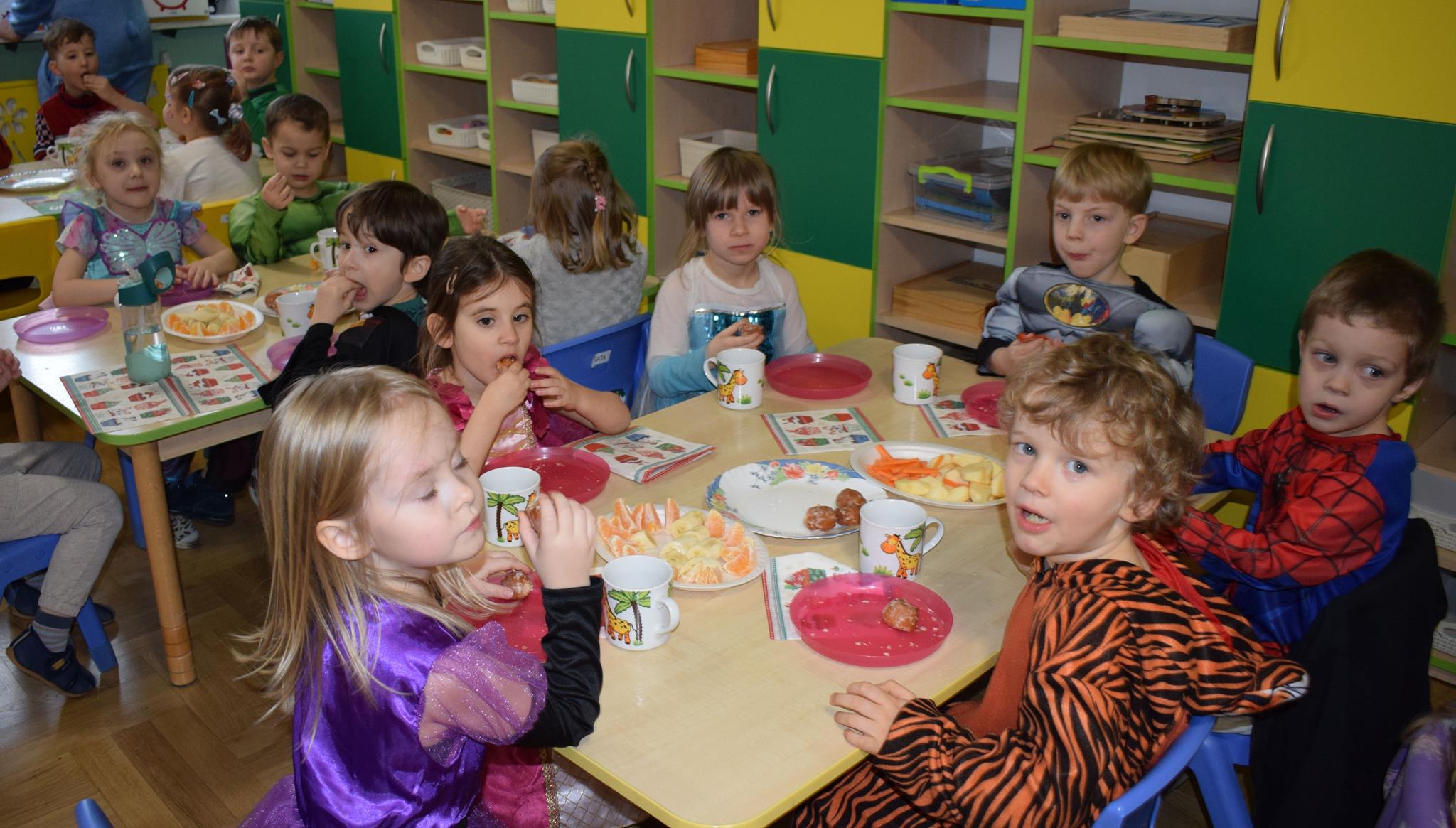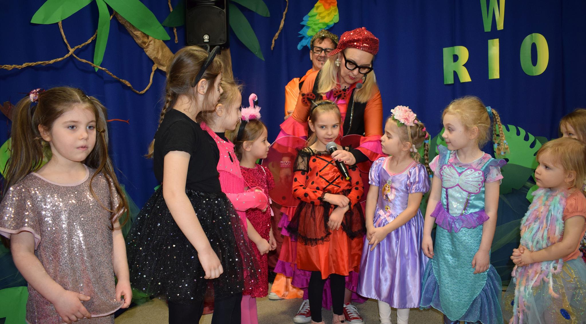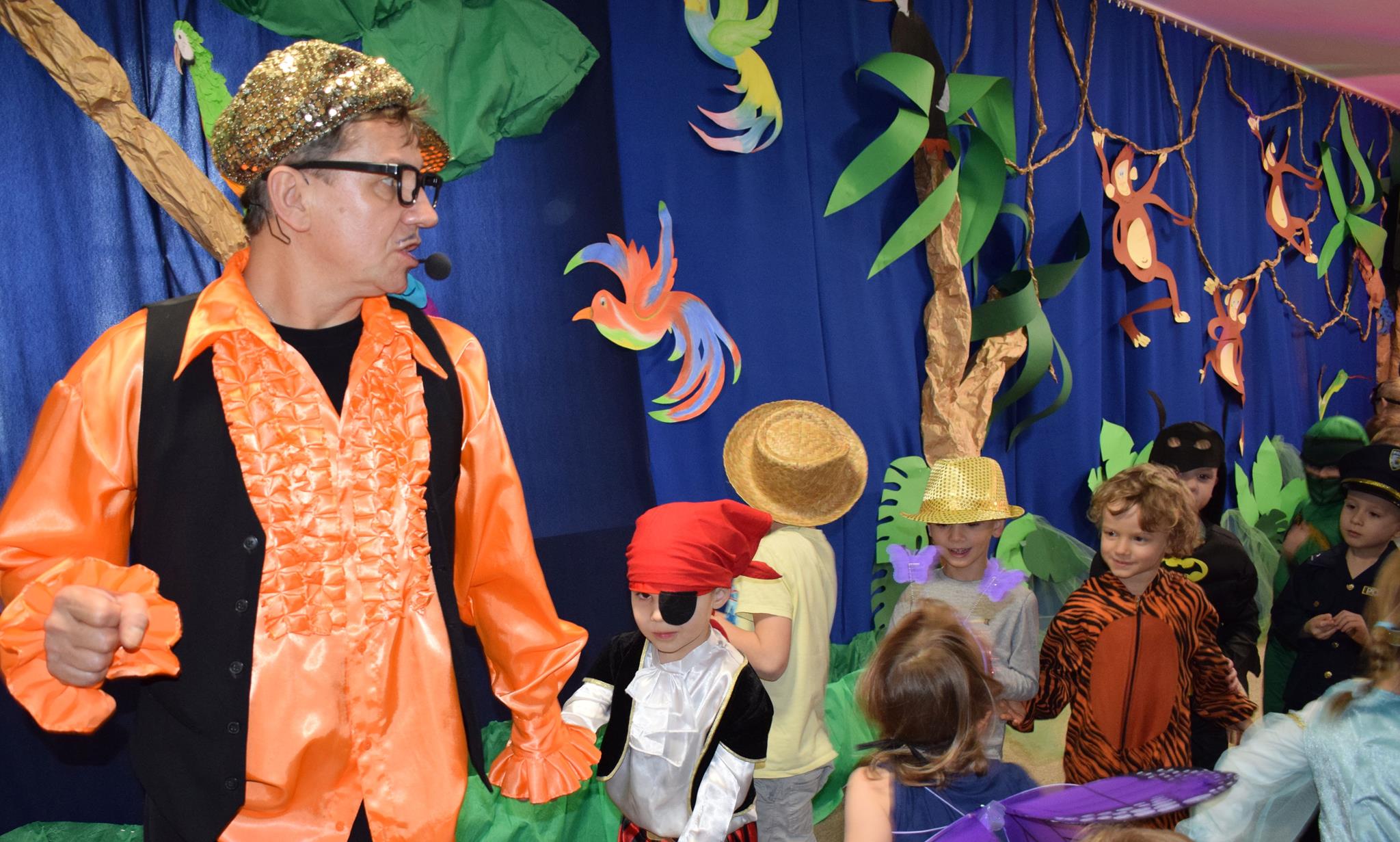 Tegoroczny karnawał rozpoczęliśmy taneczną imprezą. Żywiołowa muzyka pobudziła do tańca nawet najbardziej zasiedziałe przedszkolaki. Sunęliśmy po parkiecie solo, w parach i w wężykach w rytmie gorącej jak brazylijskie słońce samby. Wiele przebojów znaliśmy na pamięć, więc śpiewaliśmy głośno, jakby marząc o tym, by usłyszano nas na Copacabanie. Prowadzących zaś aktorów z Teatru Złoty Dukat zachwyciliśmy nie tylko swoimi umiejętnościami tanecznymi czy wokalnymi, lecz także wielobarwnymi strojami. Na parkiecie nie zabrakło policjantów, strażaków, postaci bajkowych, zwierzątek. Czas karnawałowych pląsów umilały liczne księżniczki i wróżki. Chwilami zdawało się, że wiosna już tuż-tuż, kiedy nagle swym kolorowym skrzydełkiem machnęła jakaś biedronka i motylek.