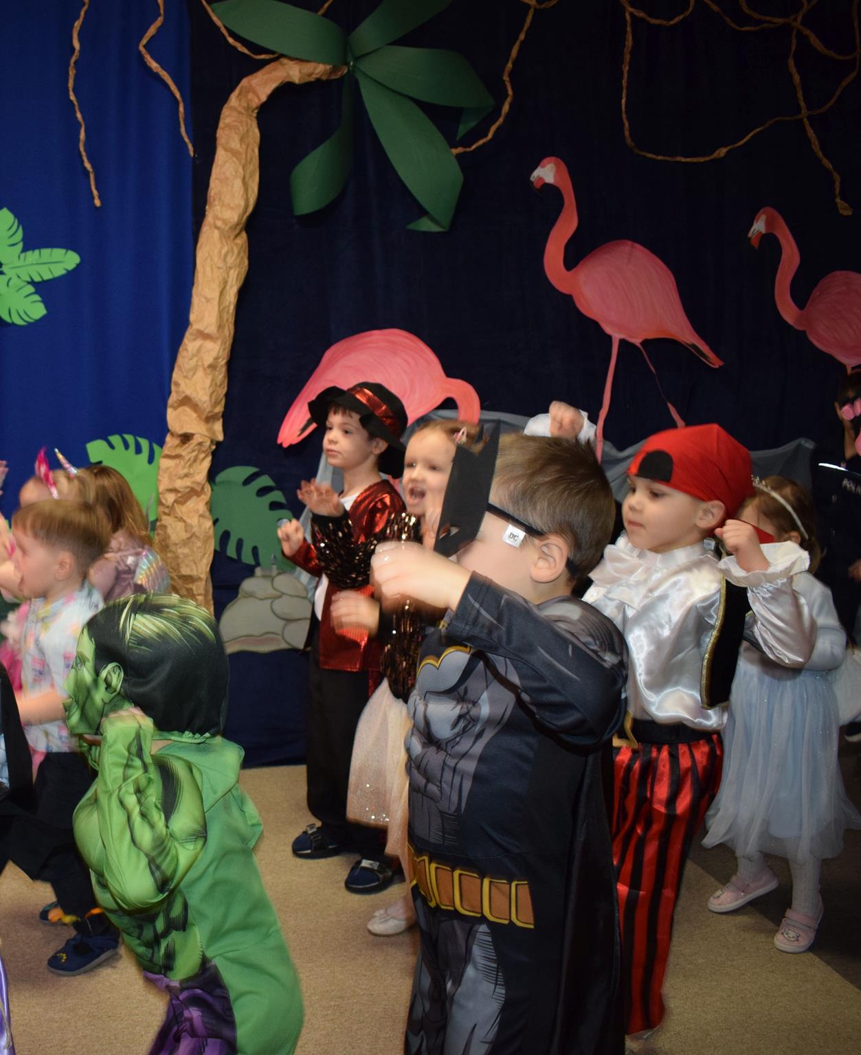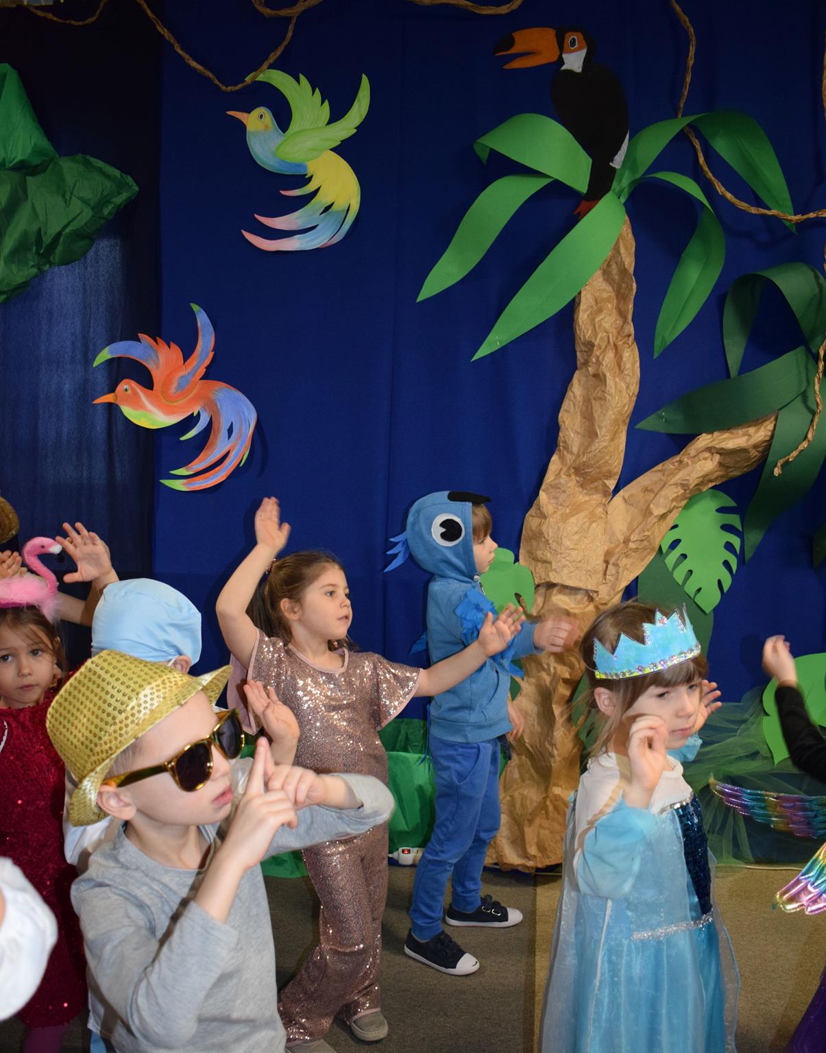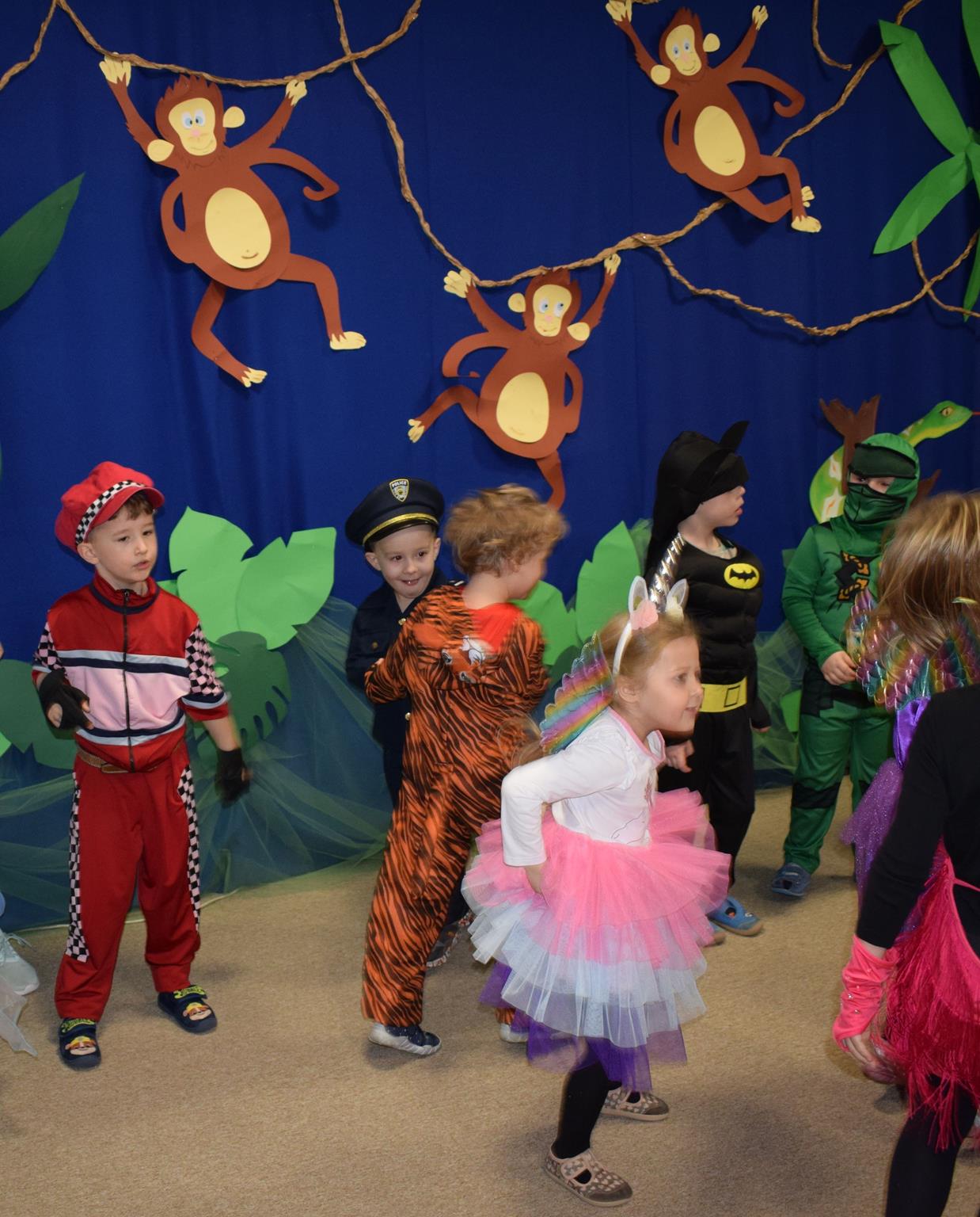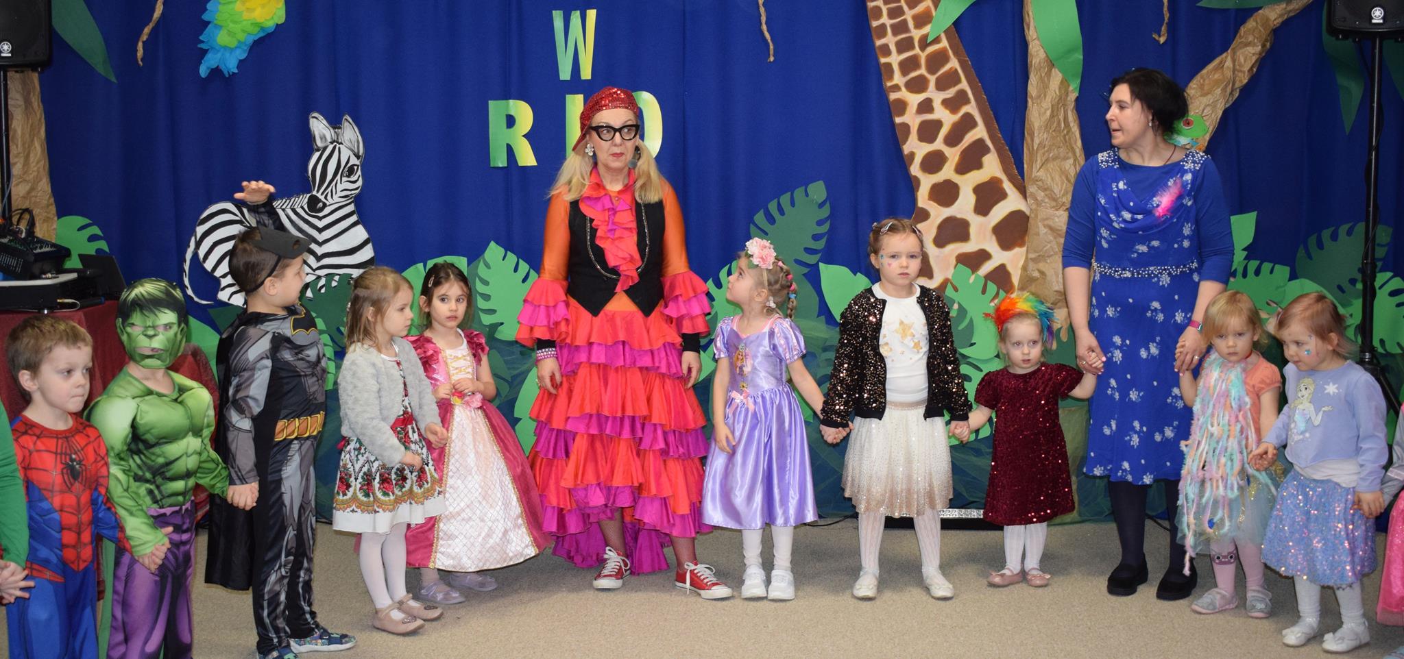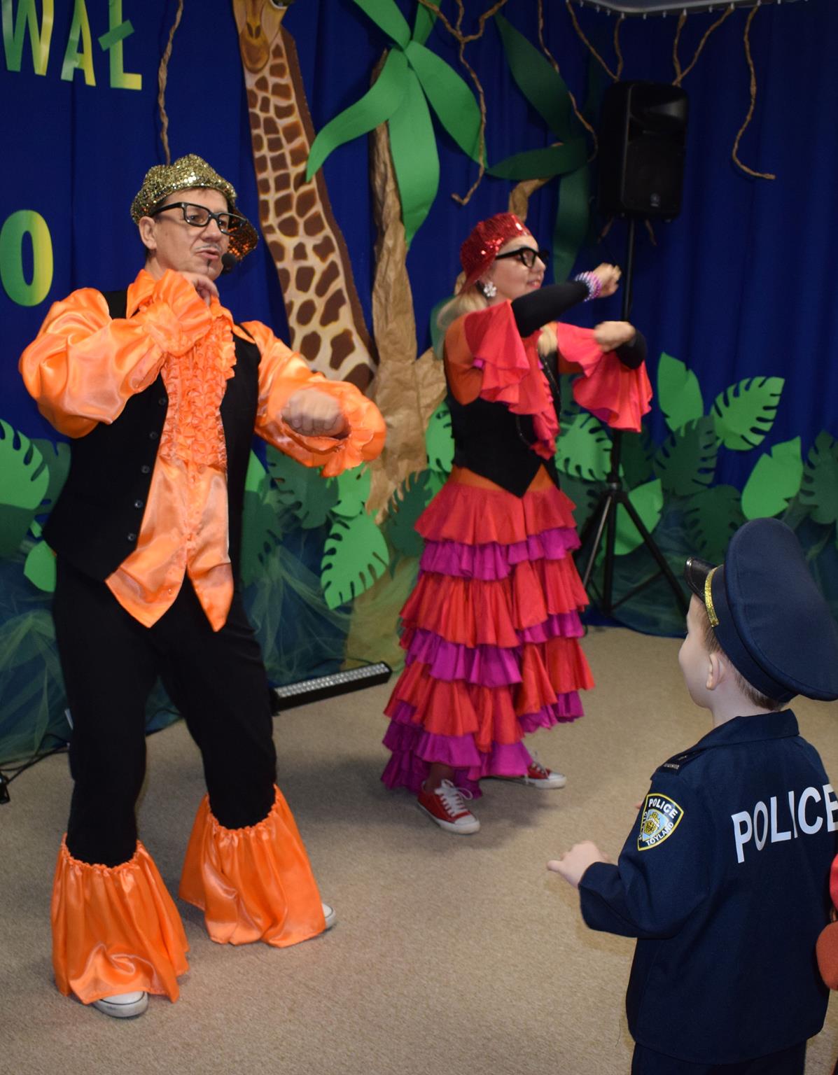Tegoroczny karnawał rozpoczęliśmy taneczną imprezą. Żywiołowa muzyka pobudziła do tańca nawet najbardziej zasiedziałe przedszkolaki. Sunęliśmy po parkiecie solo, w parach i w wężykach w rytmie gorącej jak brazylijskie słońce samby. Wiele przebojów znaliśmy na pamięć, więc śpiewaliśmy głośno, jakby marząc o tym, by usłyszano nas na Copacabanie. Prowadzących zaś aktorów z Teatru Złoty Dukat zachwyciliśmy nie tylko swoimi umiejętnościami tanecznymi czy wokalnymi, lecz także wielobarwnymi strojami. Na parkiecie nie zabrakło policjantów, strażaków, postaci bajkowych, zwierzątek. Czas karnawałowych pląsów umilały liczne księżniczki i wróżki. Chwilami zdawało się, że wiosna już tuż-tuż, kiedy nagle swym kolorowym skrzydełkiem machnęła jakaś biedronka i motylek.