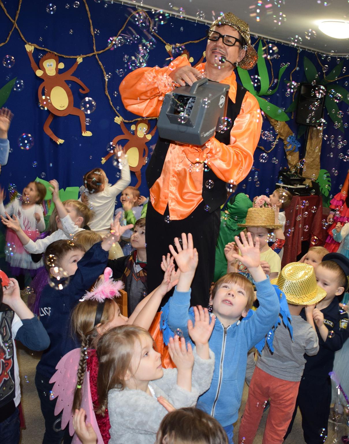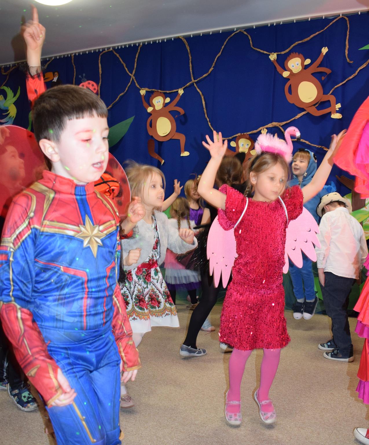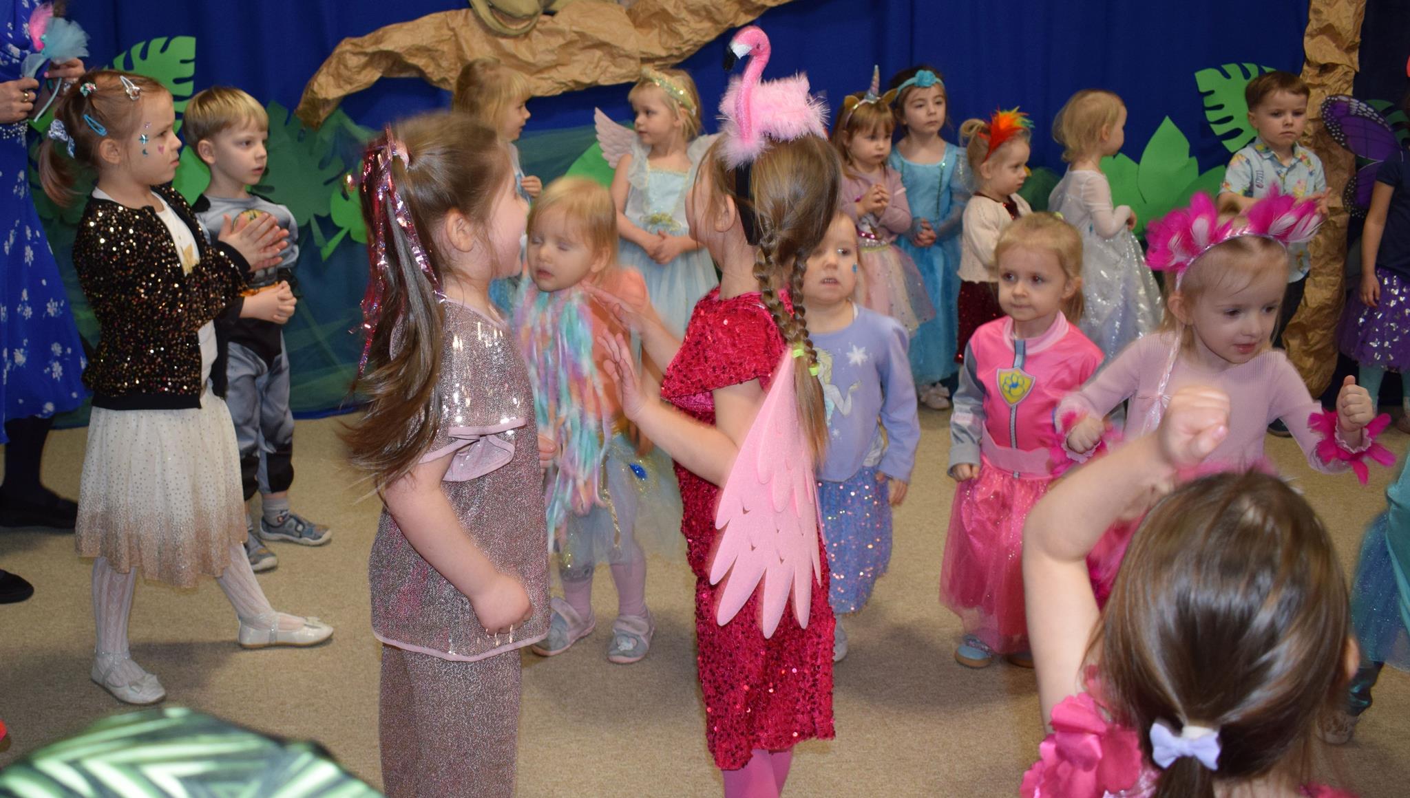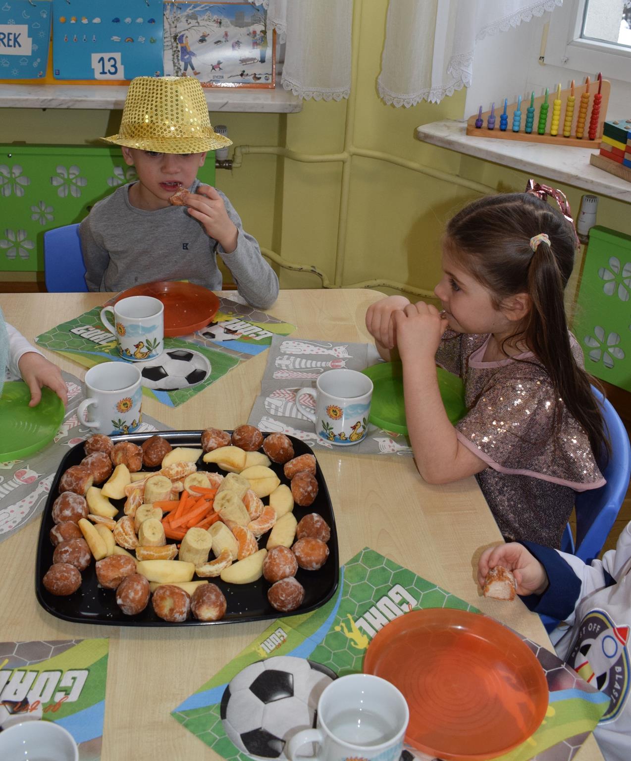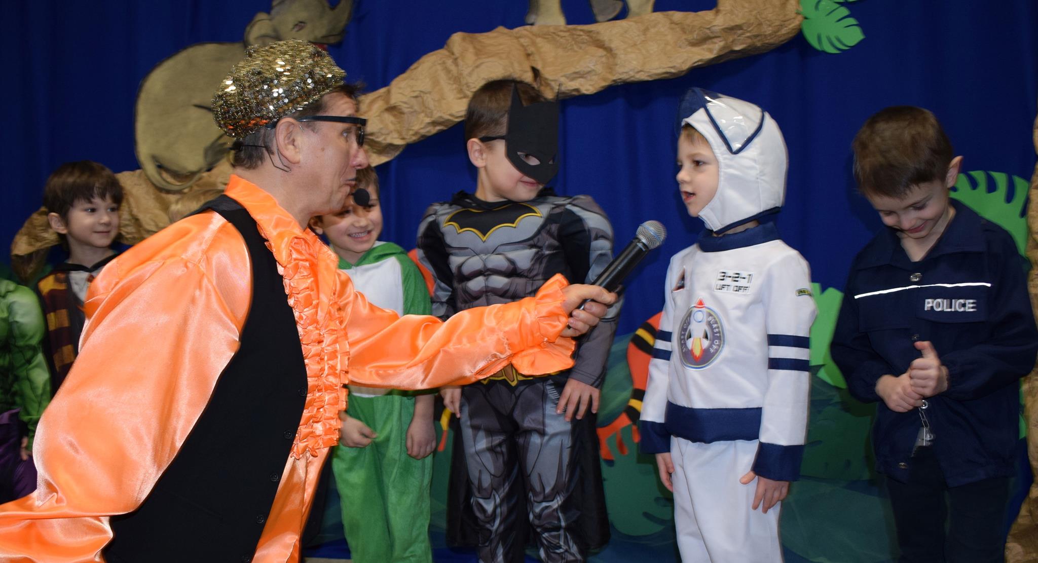 Tegoroczny karnawał rozpoczęliśmy taneczną imprezą. Żywiołowa muzyka pobudziła do tańca nawet najbardziej zasiedziałe przedszkolaki. Sunęliśmy po parkiecie solo, w parach i w wężykach w rytmie gorącej jak brazylijskie słońce samby. Wiele przebojów znaliśmy na pamięć, więc śpiewaliśmy głośno, jakby marząc o tym, by usłyszano nas na Copacabanie. Prowadzących zaś aktorów z Teatru Złoty Dukat zachwyciliśmy nie tylko swoimi umiejętnościami tanecznymi czy wokalnymi, lecz także wielobarwnymi strojami. Na parkiecie nie zabrakło policjantów, strażaków, postaci bajkowych, zwierzątek. Czas karnawałowych pląsów umilały liczne księżniczki i wróżki. Chwilami zdawało się, że wiosna już tuż-tuż, kiedy nagle swym kolorowym skrzydełkiem machnęła jakaś biedronka i motylek.
