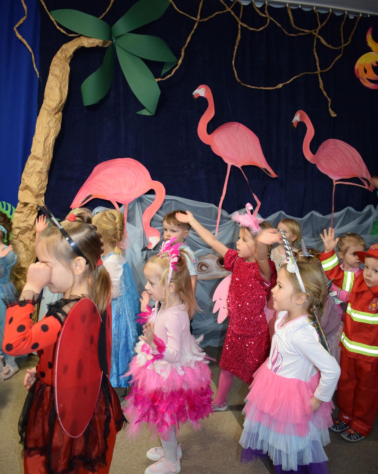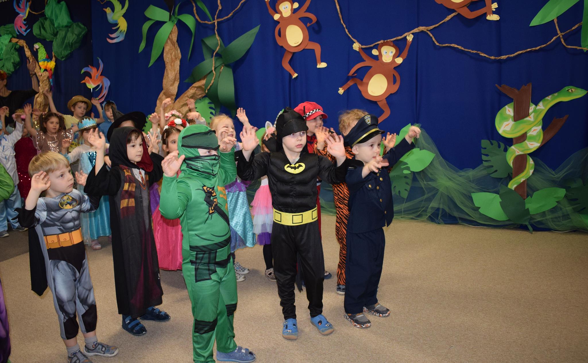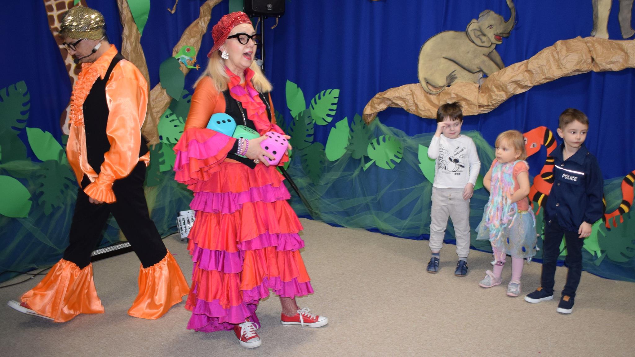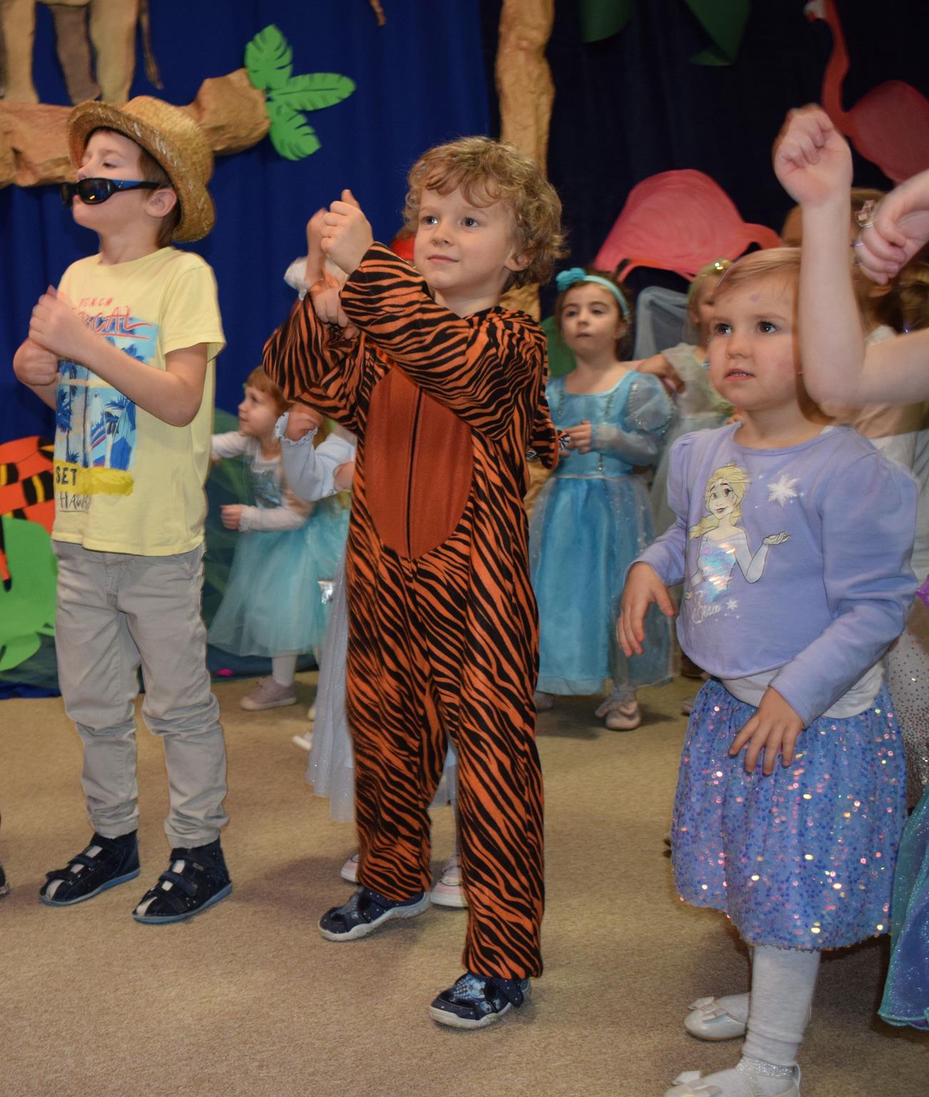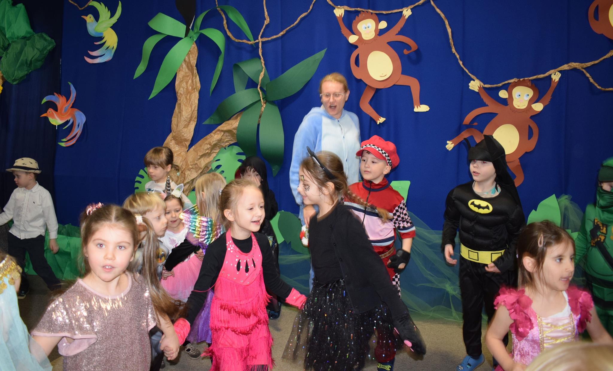 Tegoroczny karnawał rozpoczęliśmy taneczną imprezą. Żywiołowa muzyka pobudziła do tańca nawet najbardziej zasiedziałe przedszkolaki. Sunęliśmy po parkiecie solo, w parach i w wężykach w rytmie gorącej jak brazylijskie słońce samby. Wiele przebojów znaliśmy na pamięć, więc śpiewaliśmy głośno, jakby marząc o tym, by usłyszano nas na Copacabanie. Prowadzących zaś aktorów z Teatru Złoty Dukat zachwyciliśmy nie tylko swoimi umiejętnościami tanecznymi czy wokalnymi, lecz także wielobarwnymi strojami. Na parkiecie nie zabrakło policjantów, strażaków, postaci bajkowych, zwierzątek. Czas karnawałowych pląsów umilały liczne księżniczki i wróżki. Chwilami zdawało się, że wiosna już tuż-tuż, kiedy nagle swym kolorowym skrzydełkiem machnęła jakaś biedronka i motylek.