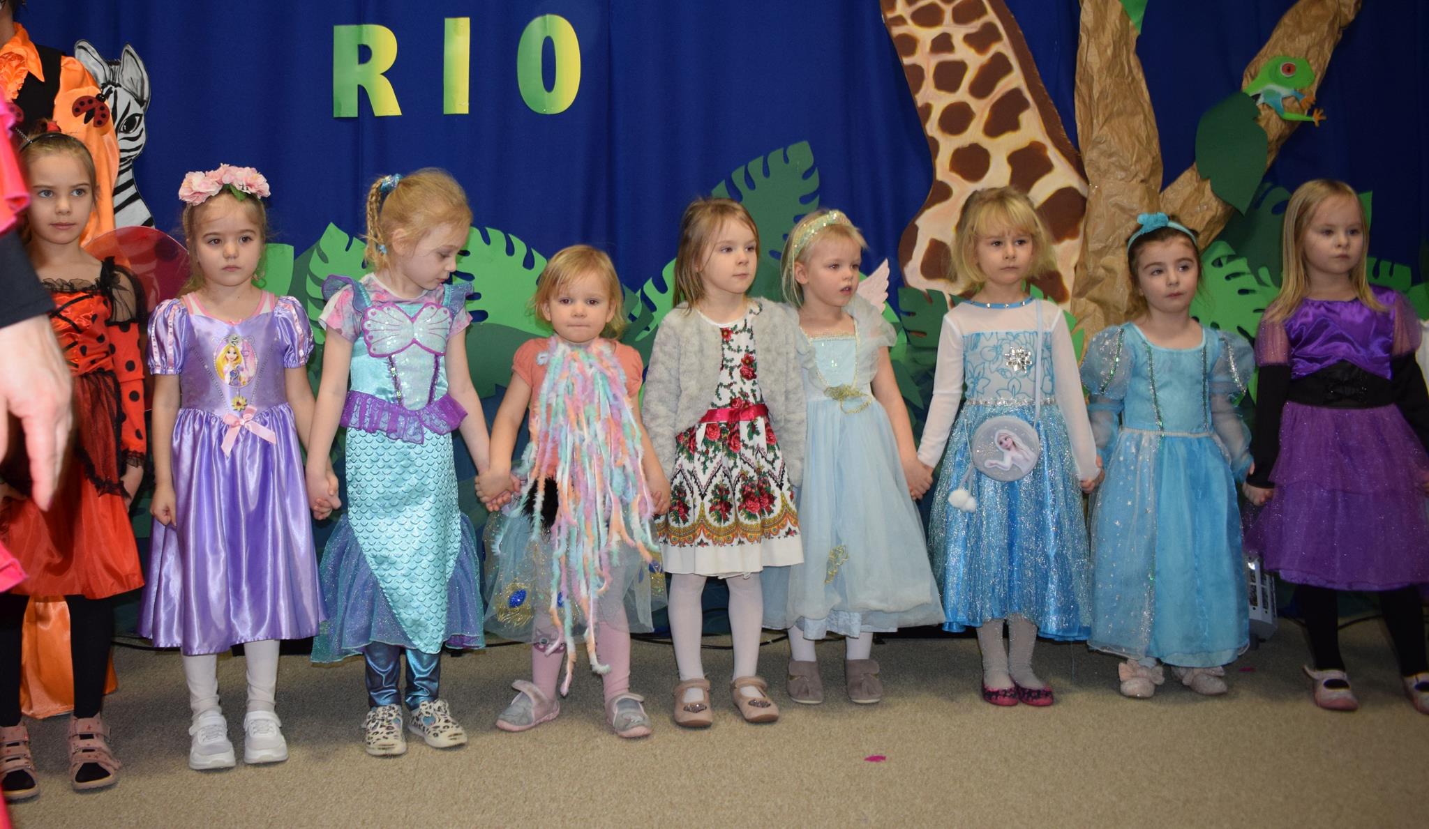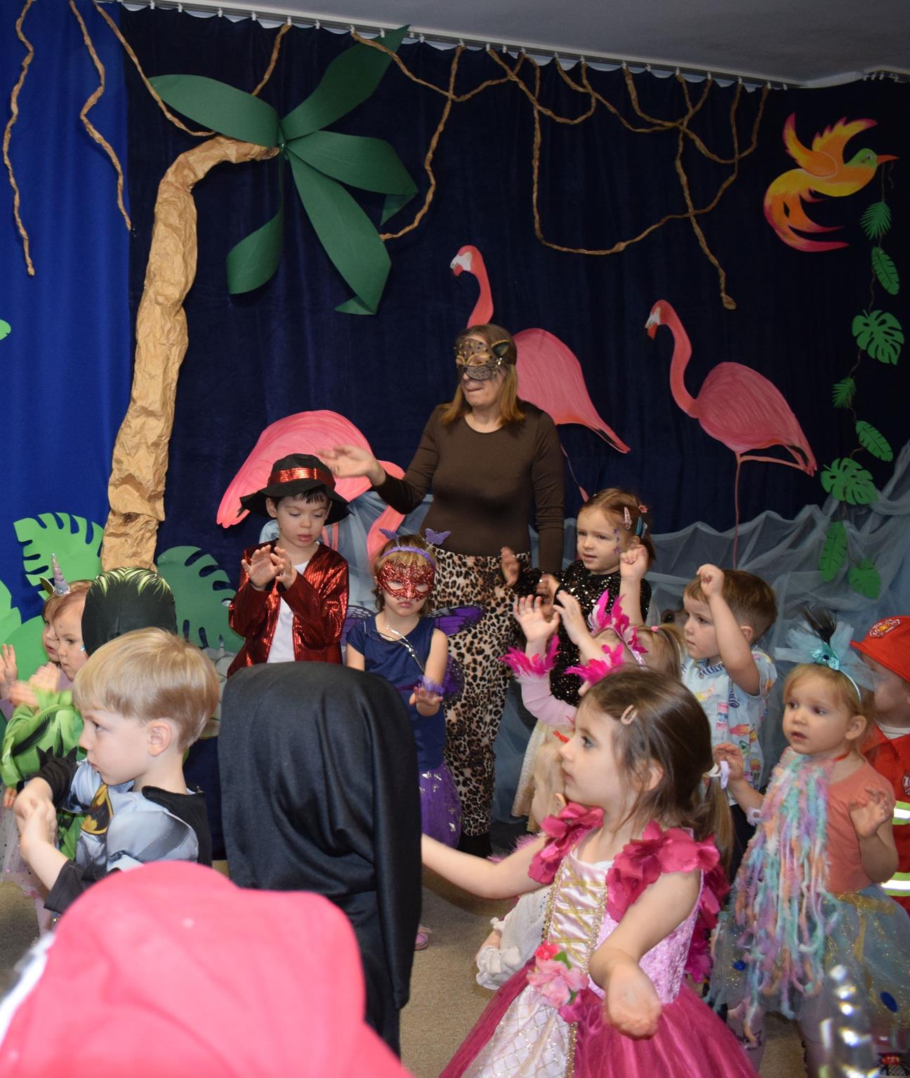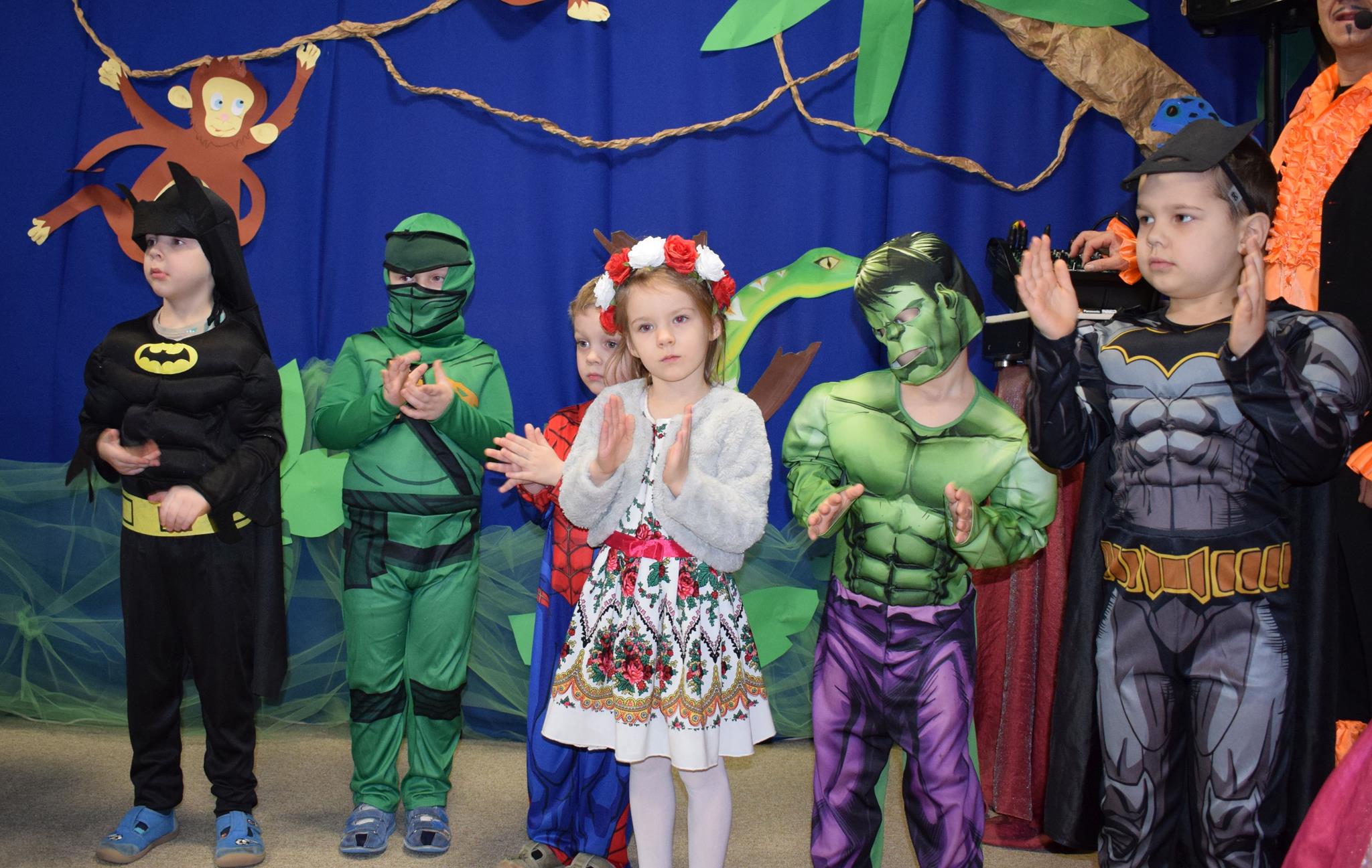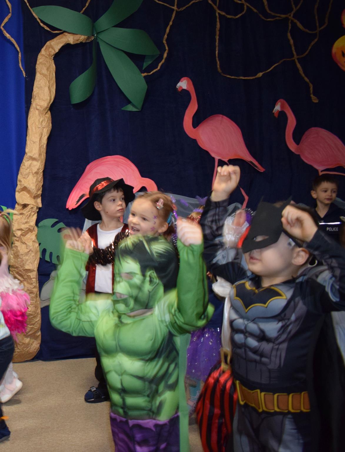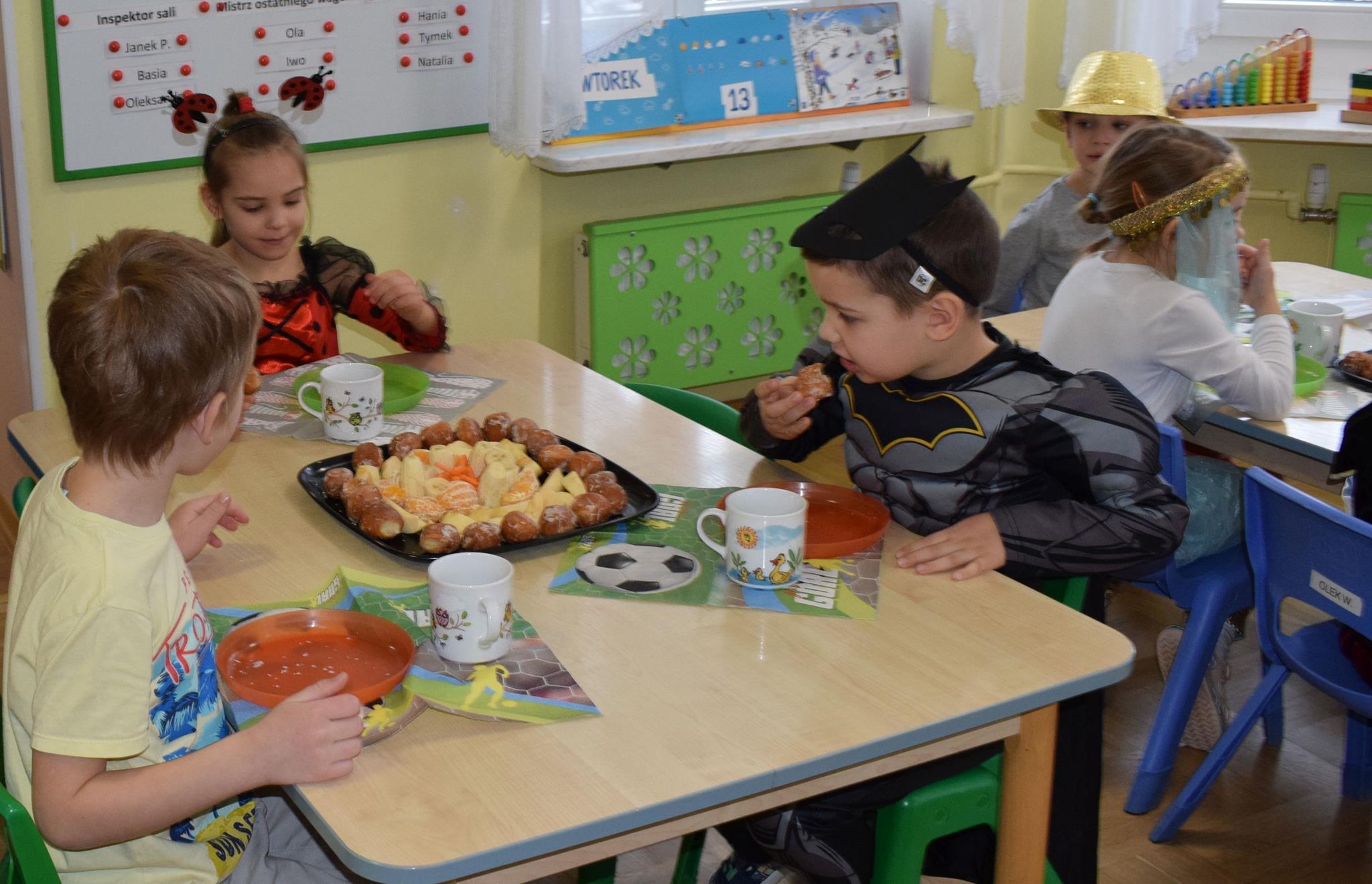 Tegoroczny karnawał rozpoczęliśmy taneczną imprezą. Żywiołowa muzyka pobudziła do tańca nawet najbardziej zasiedziałe przedszkolaki. Sunęliśmy po parkiecie solo, w parach i w wężykach w rytmie gorącej jak brazylijskie słońce samby. Wiele przebojów znaliśmy na pamięć, więc śpiewaliśmy głośno, jakby marząc o tym, by usłyszano nas na Copacabanie. Prowadzących zaś aktorów z Teatru Złoty Dukat zachwyciliśmy nie tylko swoimi umiejętnościami tanecznymi czy wokalnymi, lecz także wielobarwnymi strojami. Na parkiecie nie zabrakło policjantów, strażaków, postaci bajkowych, zwierzątek. Czas karnawałowych pląsów umilały liczne księżniczki i wróżki. Chwilami zdawało się, że wiosna już tuż-tuż, kiedy nagle swym kolorowym skrzydełkiem machnęła jakaś biedronka i motylek.