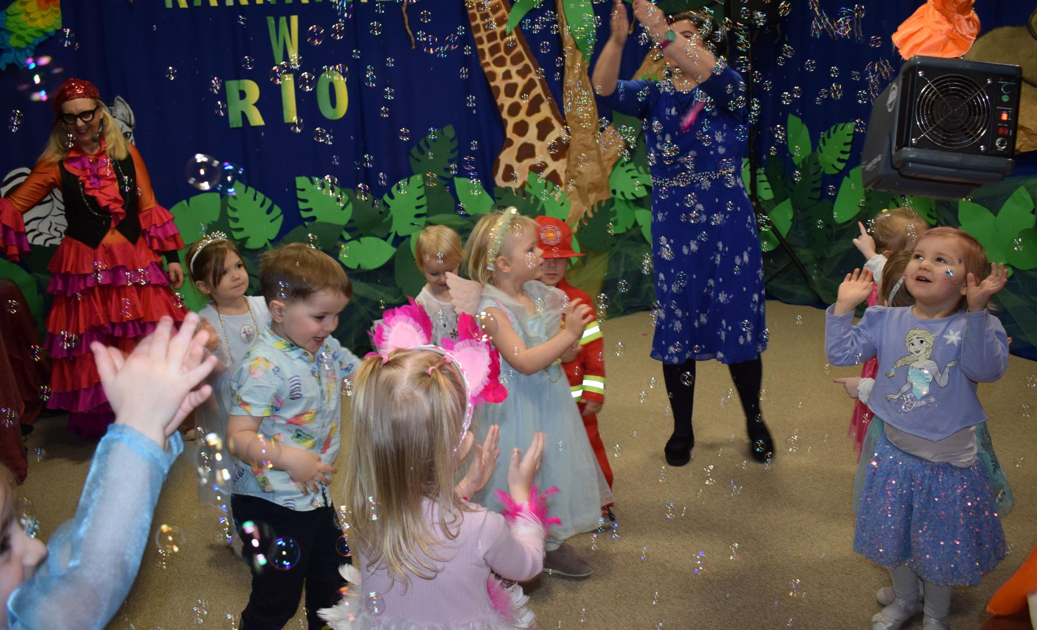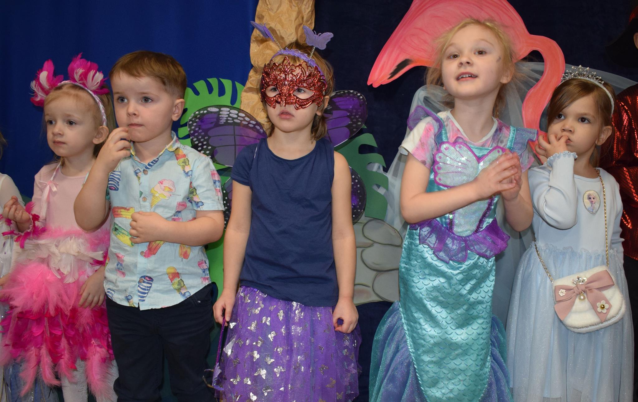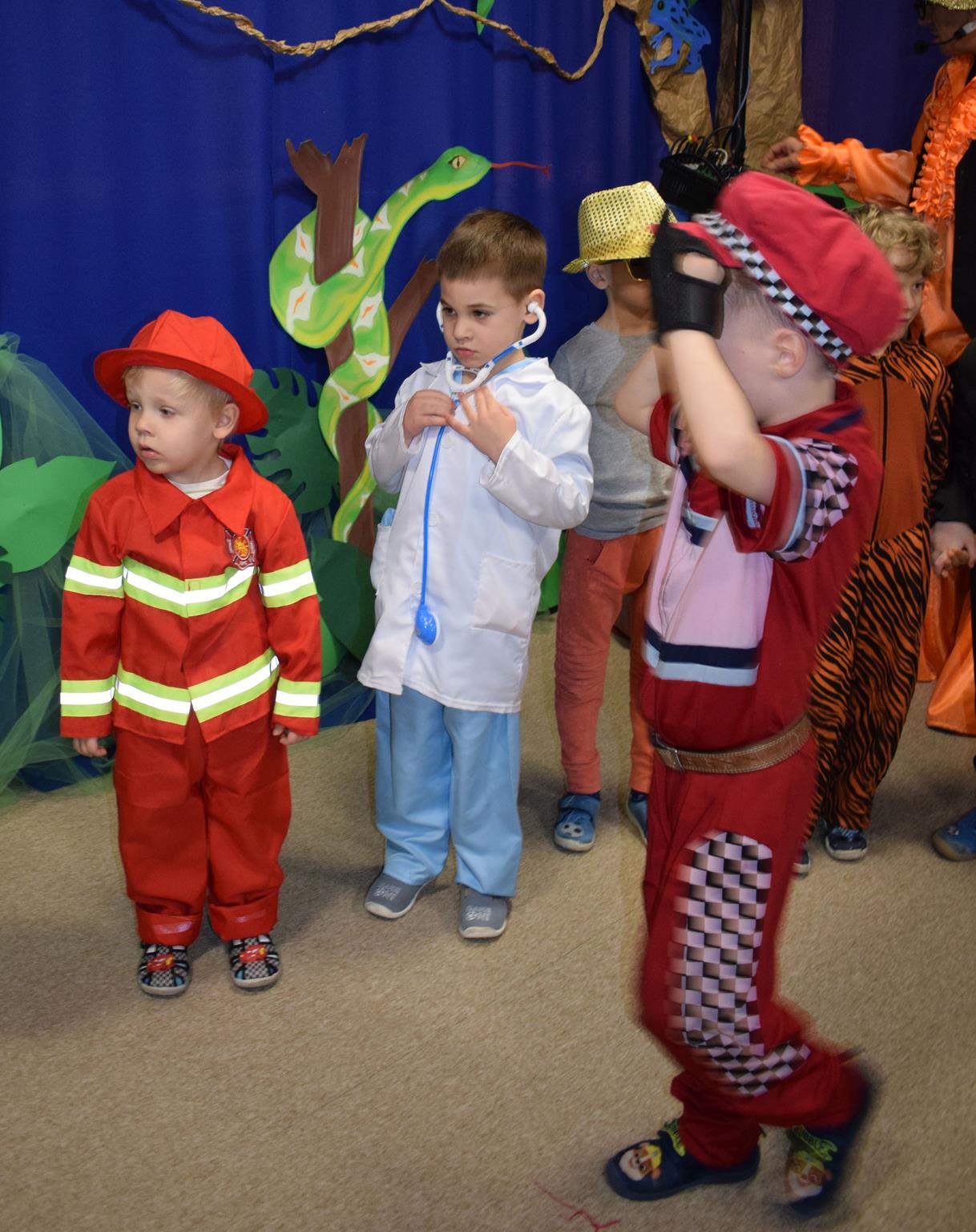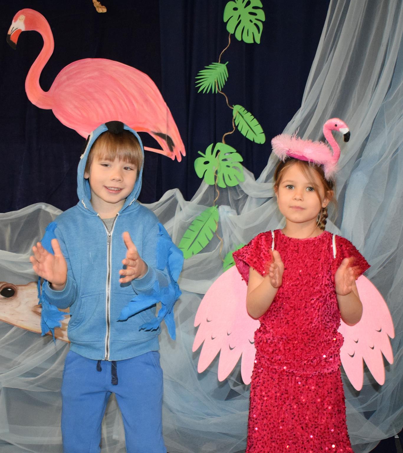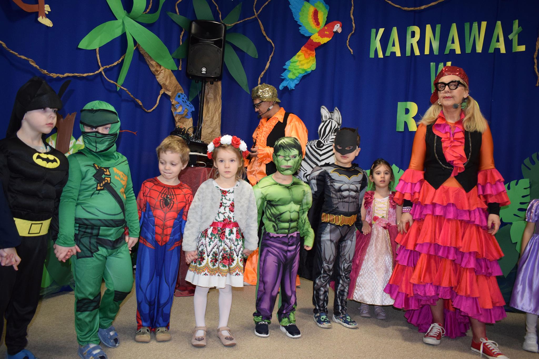 Tegoroczny karnawał rozpoczęliśmy taneczną imprezą. Żywiołowa muzyka pobudziła do tańca nawet najbardziej zasiedziałe przedszkolaki. Sunęliśmy po parkiecie solo, w parach i w wężykach w rytmie gorącej jak brazylijskie słońce samby. Wiele przebojów znaliśmy na pamięć, więc śpiewaliśmy głośno, jakby marząc o tym, by usłyszano nas na Copacabanie. Prowadzących zaś aktorów z Teatru Złoty Dukat zachwyciliśmy nie tylko swoimi umiejętnościami tanecznymi czy wokalnymi, lecz także wielobarwnymi strojami. Na parkiecie nie zabrakło policjantów, strażaków, postaci bajkowych, zwierzątek. Czas karnawałowych pląsów umilały liczne księżniczki i wróżki. Chwilami zdawało się, że wiosna już tuż-tuż, kiedy nagle swym kolorowym skrzydełkiem machnęła jakaś biedronka i motylek.