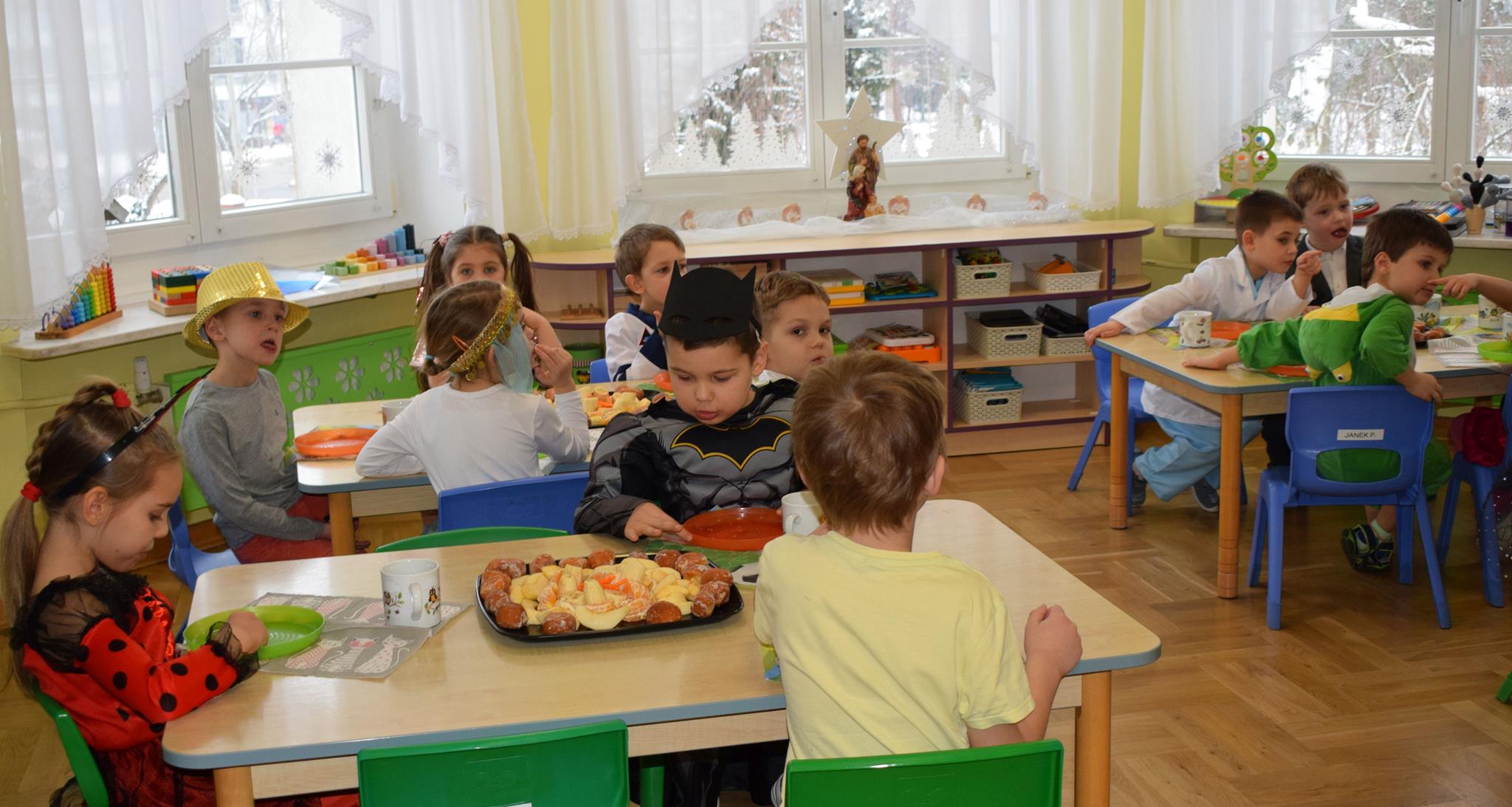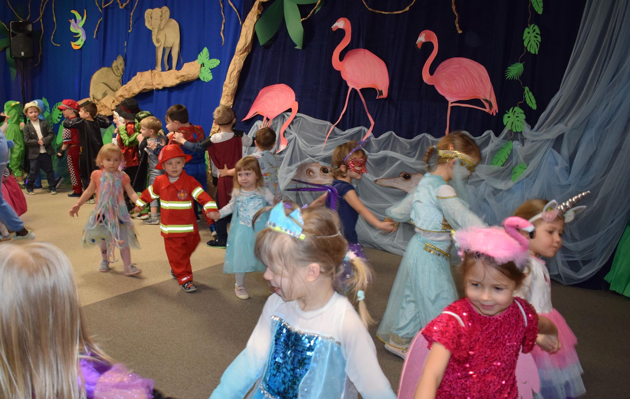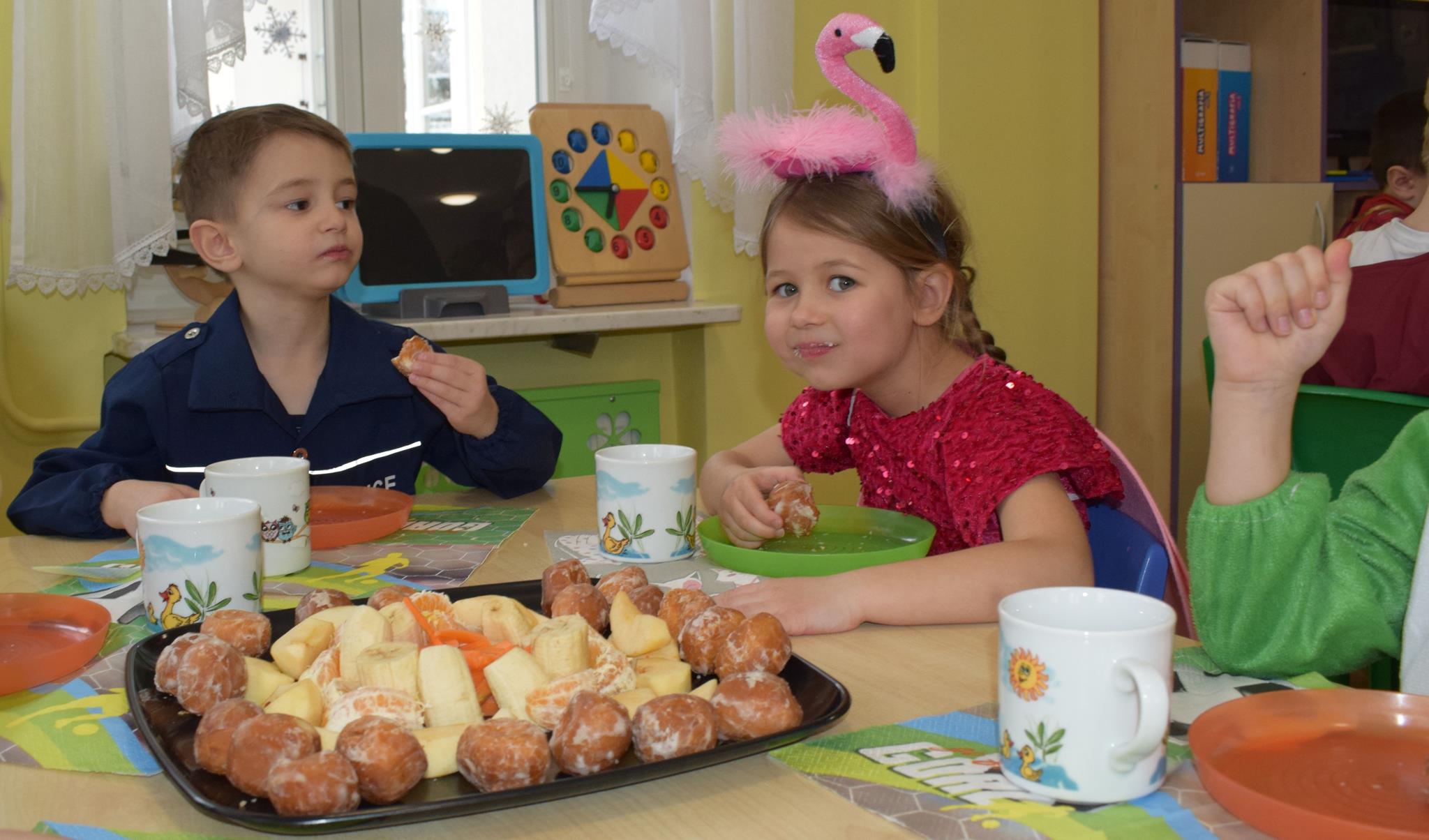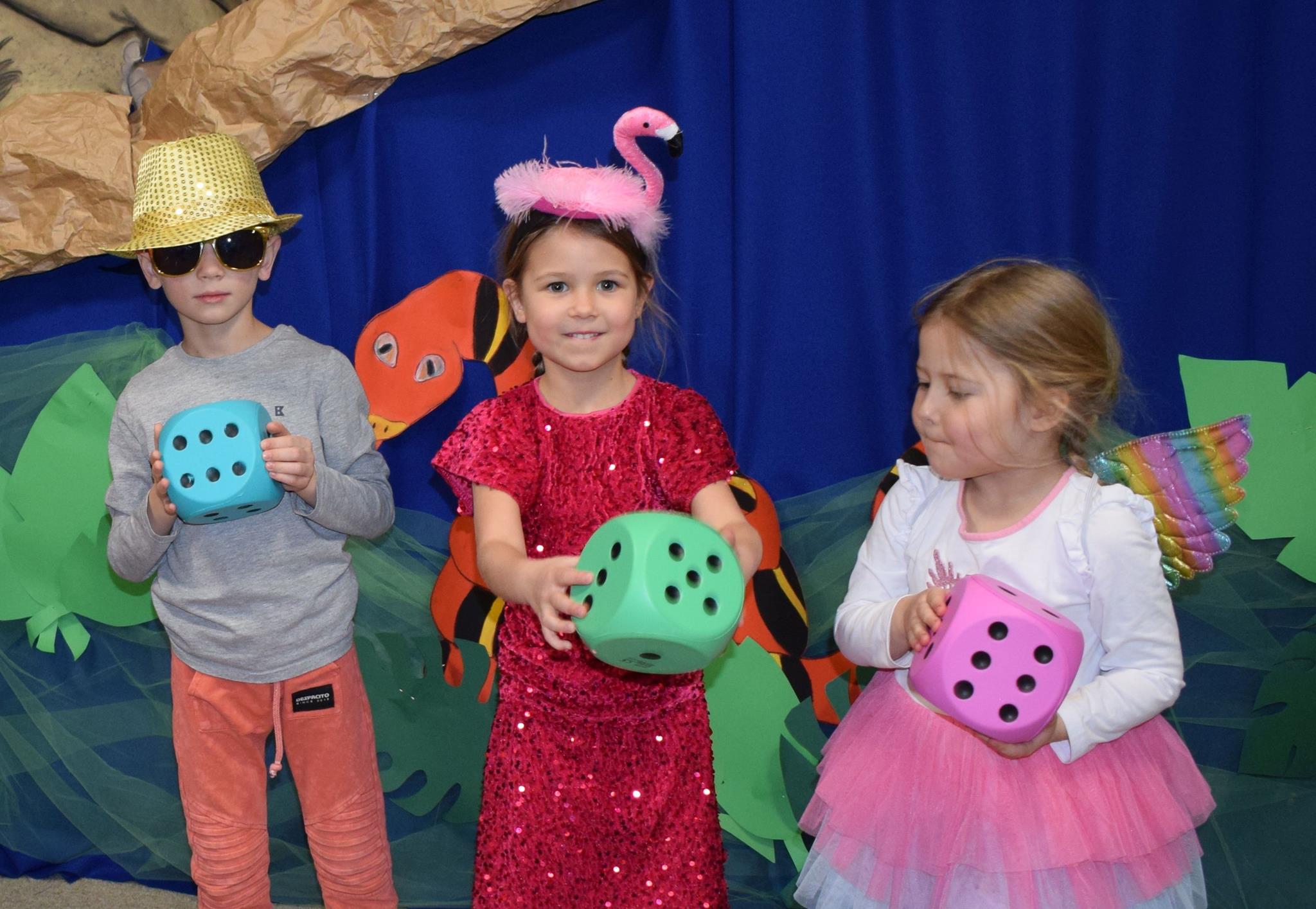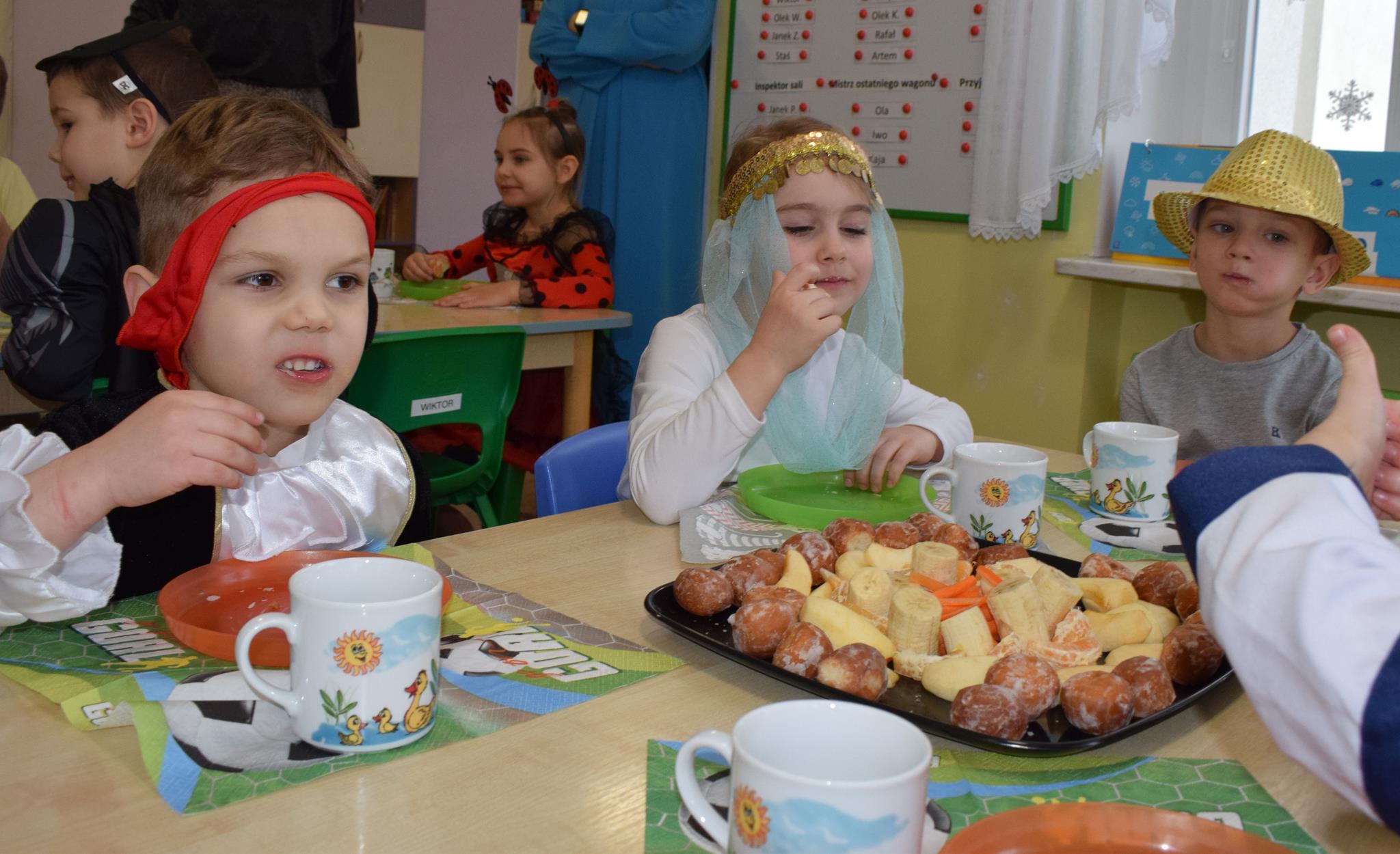 Tegoroczny karnawał rozpoczęliśmy taneczną imprezą. Żywiołowa muzyka pobudziła do tańca nawet najbardziej zasiedziałe przedszkolaki. Sunęliśmy po parkiecie solo, w parach i w wężykach w rytmie gorącej jak brazylijskie słońce samby. Wiele przebojów znaliśmy na pamięć, więc śpiewaliśmy głośno, jakby marząc o tym, by usłyszano nas na Copacabanie. Prowadzących zaś aktorów z Teatru Złoty Dukat zachwyciliśmy nie tylko swoimi umiejętnościami tanecznymi czy wokalnymi, lecz także wielobarwnymi strojami. Na parkiecie nie zabrakło policjantów, strażaków, postaci bajkowych, zwierzątek. Czas karnawałowych pląsów umilały liczne księżniczki i wróżki. Chwilami zdawało się, że wiosna już tuż-tuż, kiedy nagle swym kolorowym skrzydełkiem machnęła jakaś biedronka i motylek.