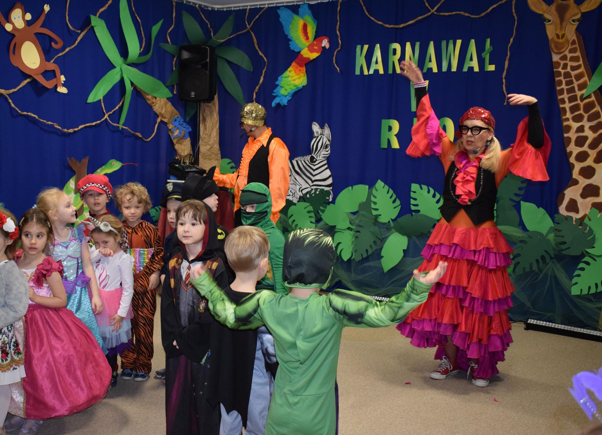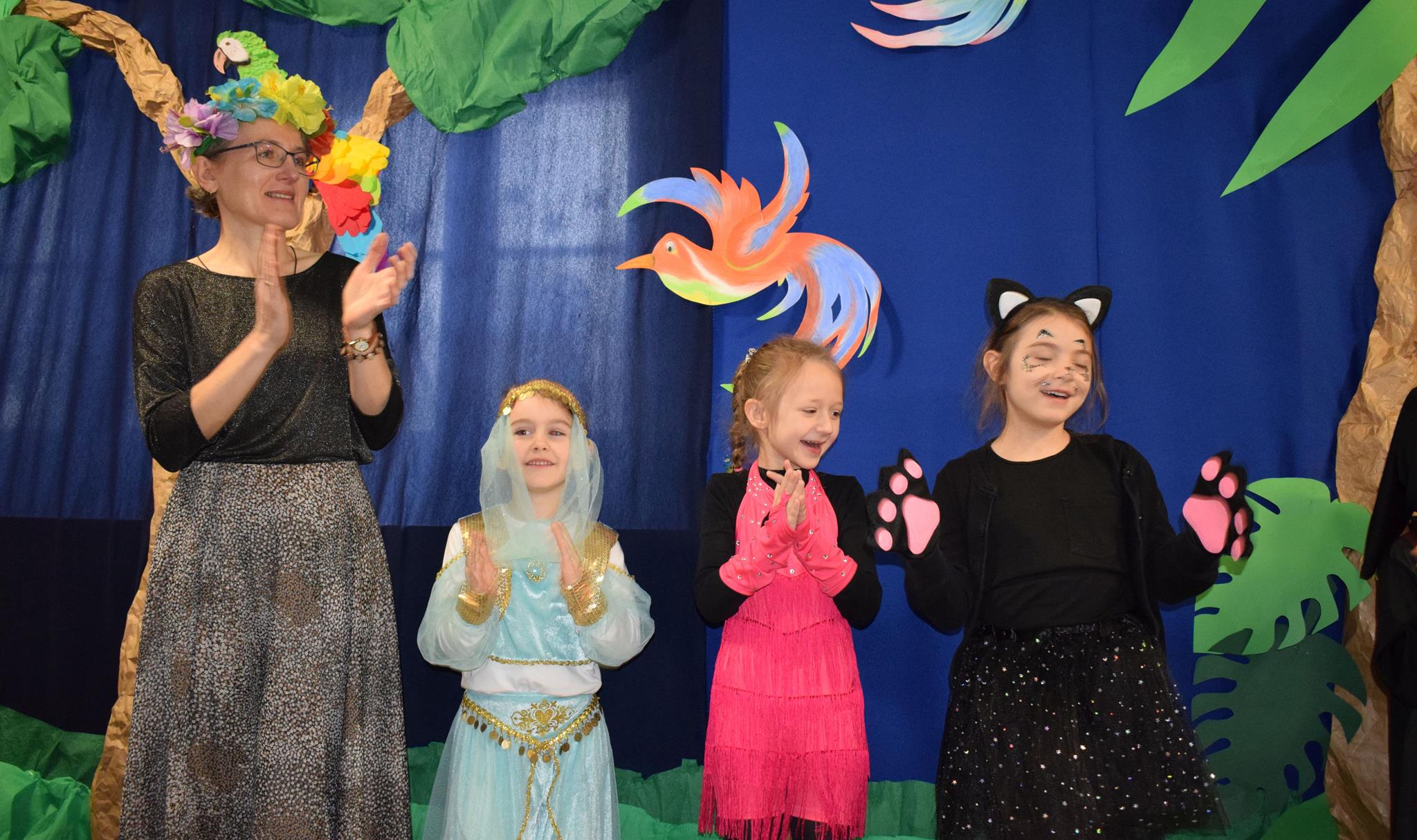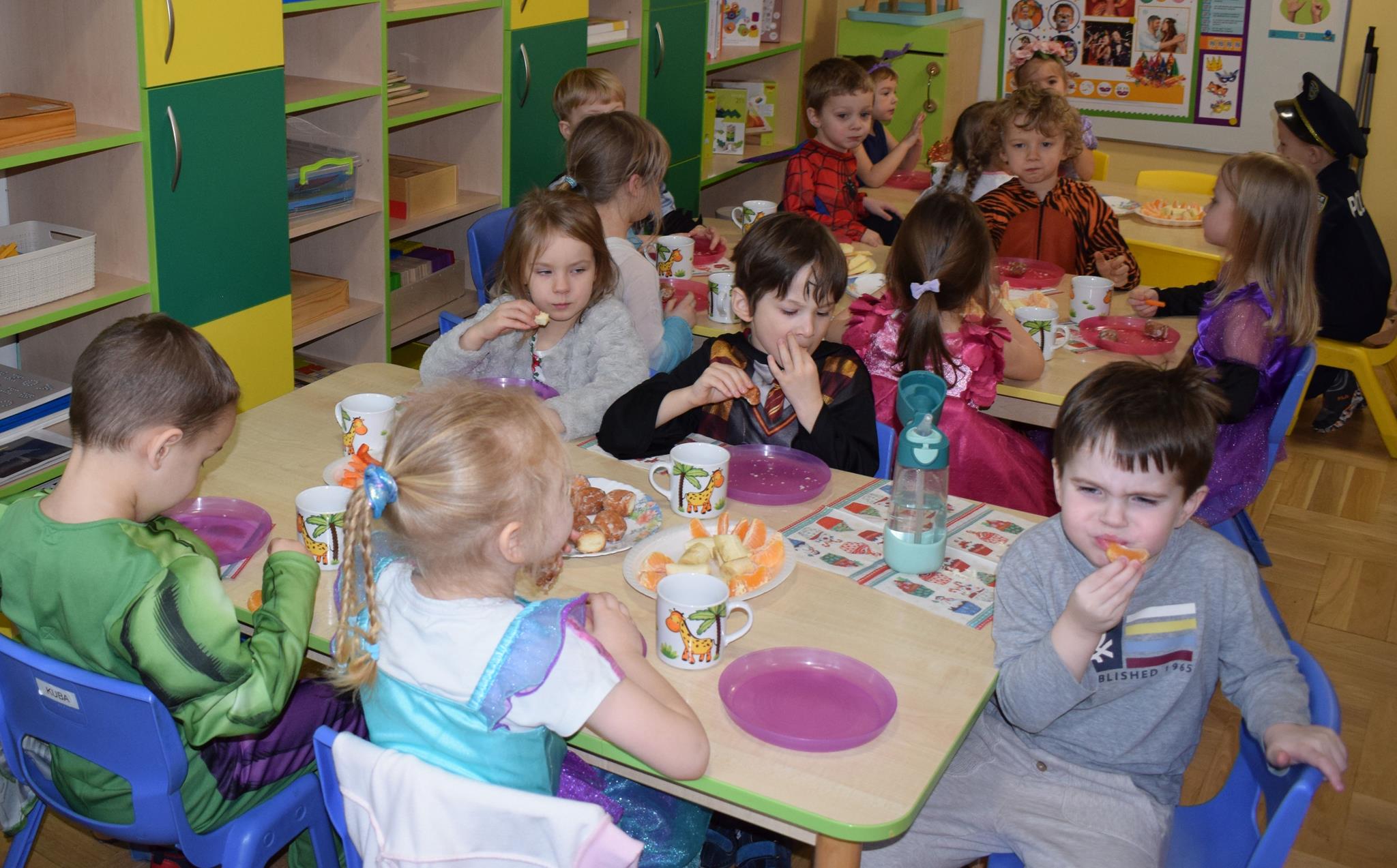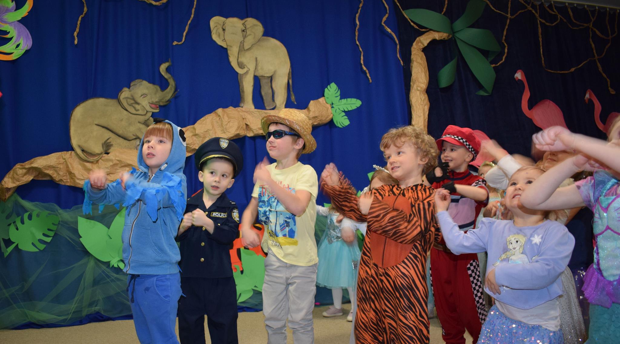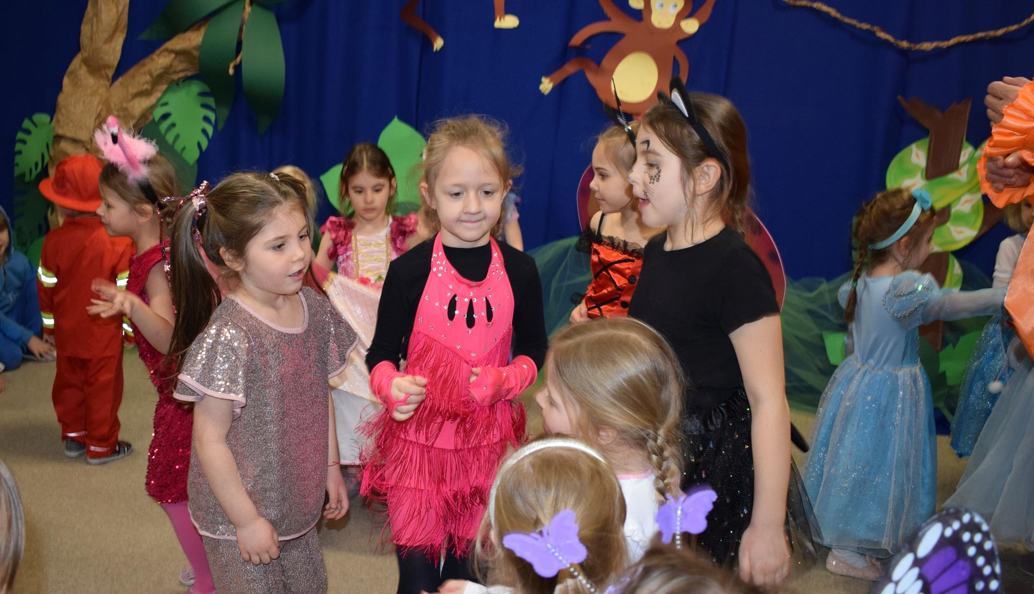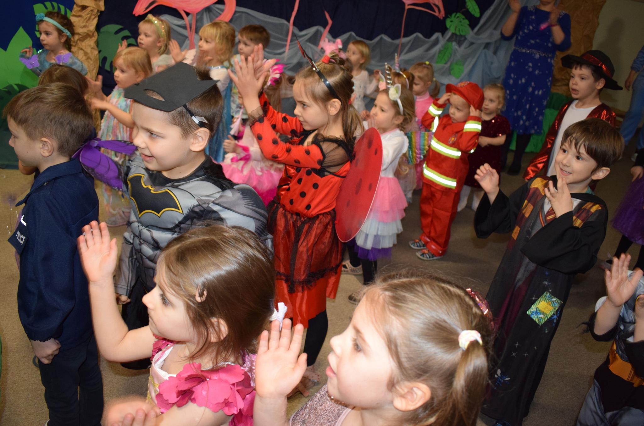 Tegoroczny karnawał rozpoczęliśmy taneczną imprezą. Żywiołowa muzyka pobudziła do tańca nawet najbardziej zasiedziałe przedszkolaki. Sunęliśmy po parkiecie solo, w parach i w wężykach w rytmie gorącej jak brazylijskie słońce samby. Wiele przebojów znaliśmy na pamięć, więc śpiewaliśmy głośno, jakby marząc o tym, by usłyszano nas na Copacabanie. Prowadzących zaś aktorów z Teatru Złoty Dukat zachwyciliśmy nie tylko swoimi umiejętnościami tanecznymi czy wokalnymi, lecz także wielobarwnymi strojami. Na parkiecie nie zabrakło policjantów, strażaków, postaci bajkowych, zwierzątek. Czas karnawałowych pląsów umilały liczne księżniczki i wróżki. Chwilami zdawało się, że wiosna już tuż-tuż, kiedy nagle swym kolorowym skrzydełkiem machnęła jakaś biedronka i motylek.