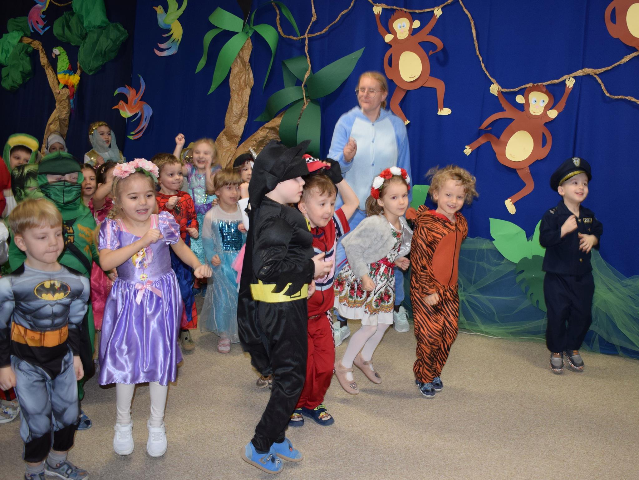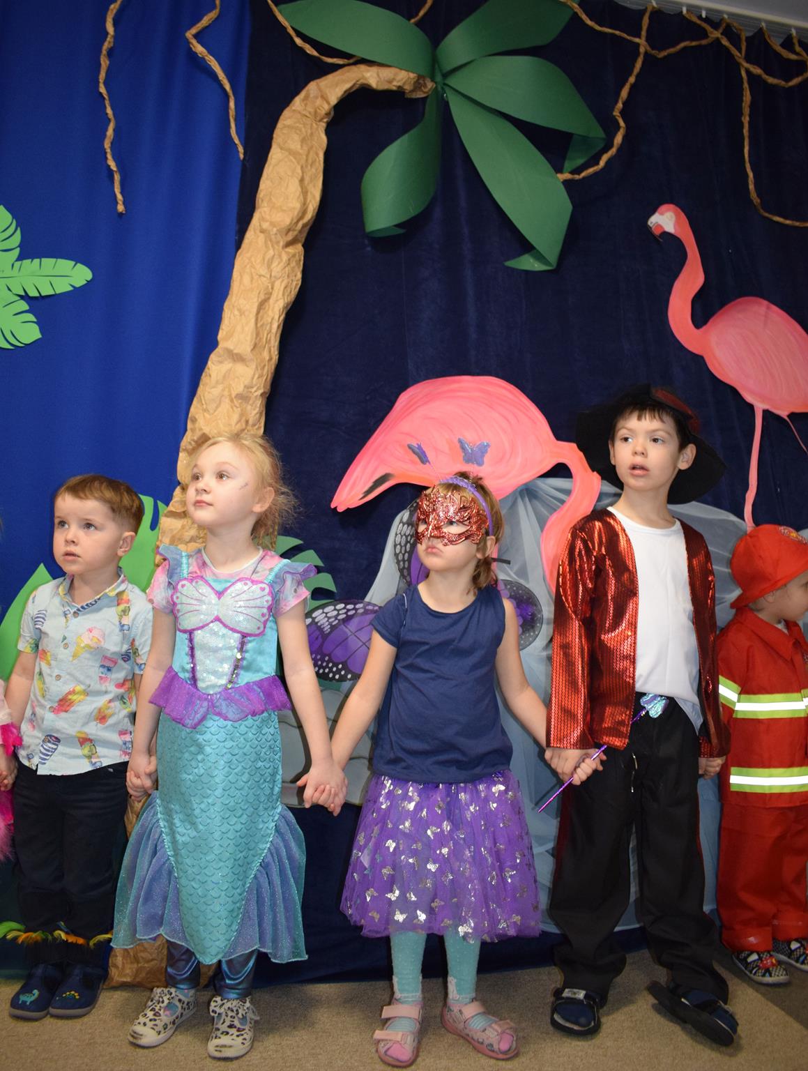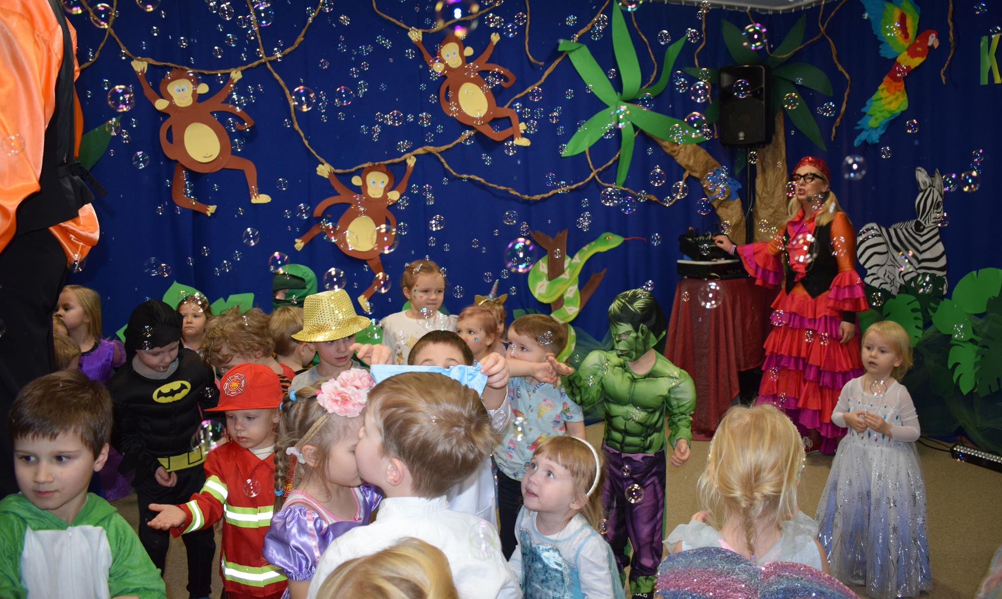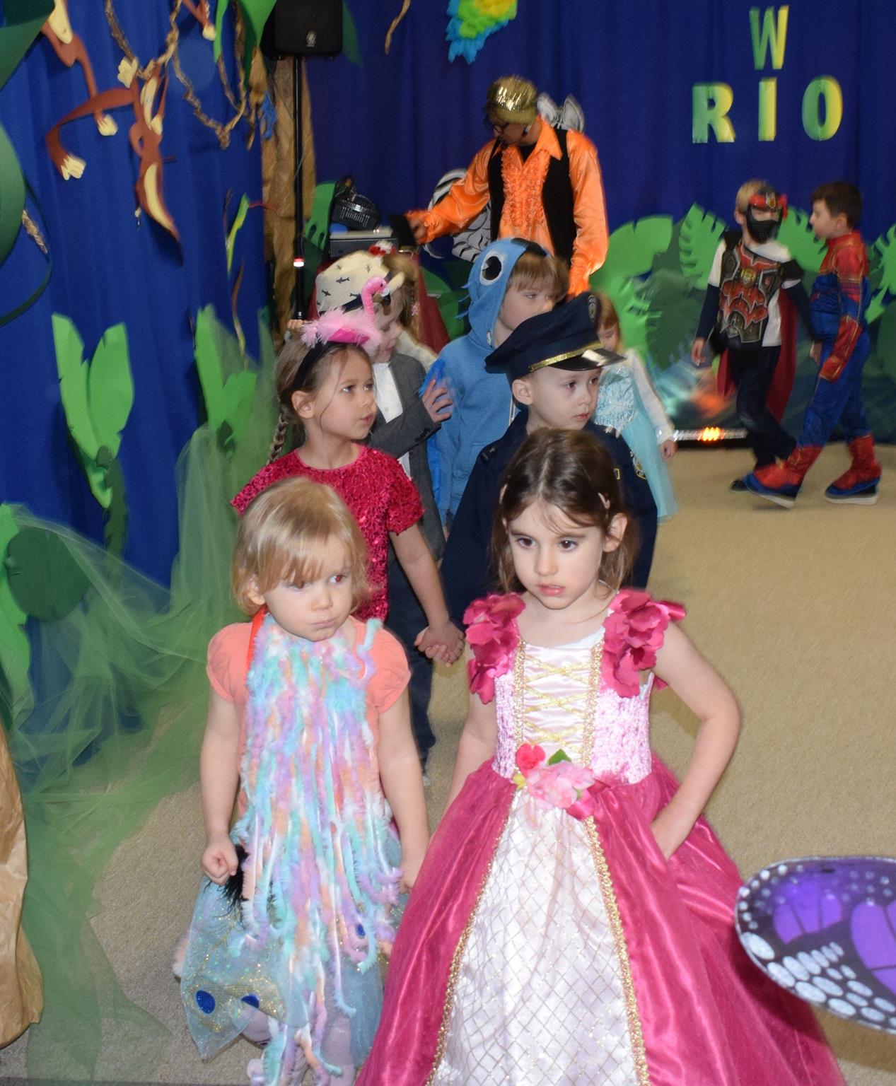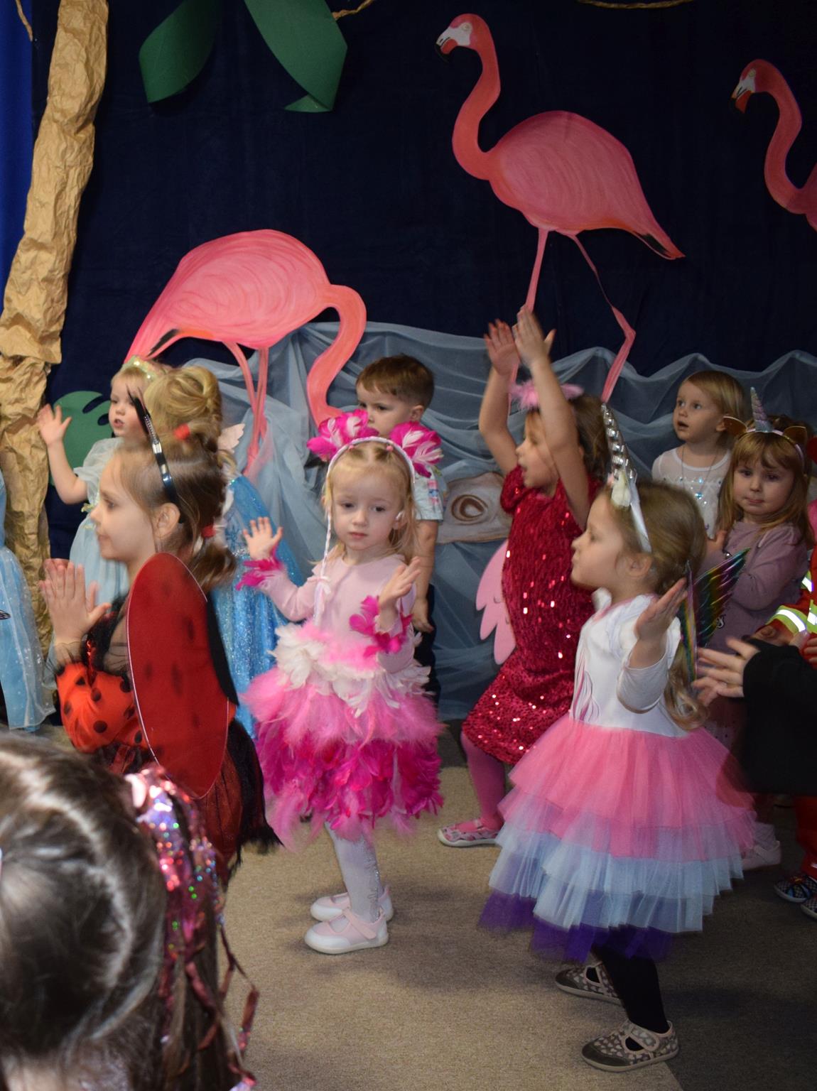 Tegoroczny karnawał rozpoczęliśmy taneczną imprezą. Żywiołowa muzyka pobudziła do tańca nawet najbardziej zasiedziałe przedszkolaki. Sunęliśmy po parkiecie solo, w parach i w wężykach w rytmie gorącej jak brazylijskie słońce samby. Wiele przebojów znaliśmy na pamięć, więc śpiewaliśmy głośno, jakby marząc o tym, by usłyszano nas na Copacabanie. Prowadzących zaś aktorów z Teatru Złoty Dukat zachwyciliśmy nie tylko swoimi umiejętnościami tanecznymi czy wokalnymi, lecz także wielobarwnymi strojami. Na parkiecie nie zabrakło policjantów, strażaków, postaci bajkowych, zwierzątek. Czas karnawałowych pląsów umilały liczne księżniczki i wróżki. Chwilami zdawało się, że wiosna już tuż-tuż, kiedy nagle swym kolorowym skrzydełkiem machnęła jakaś biedronka i motylek.