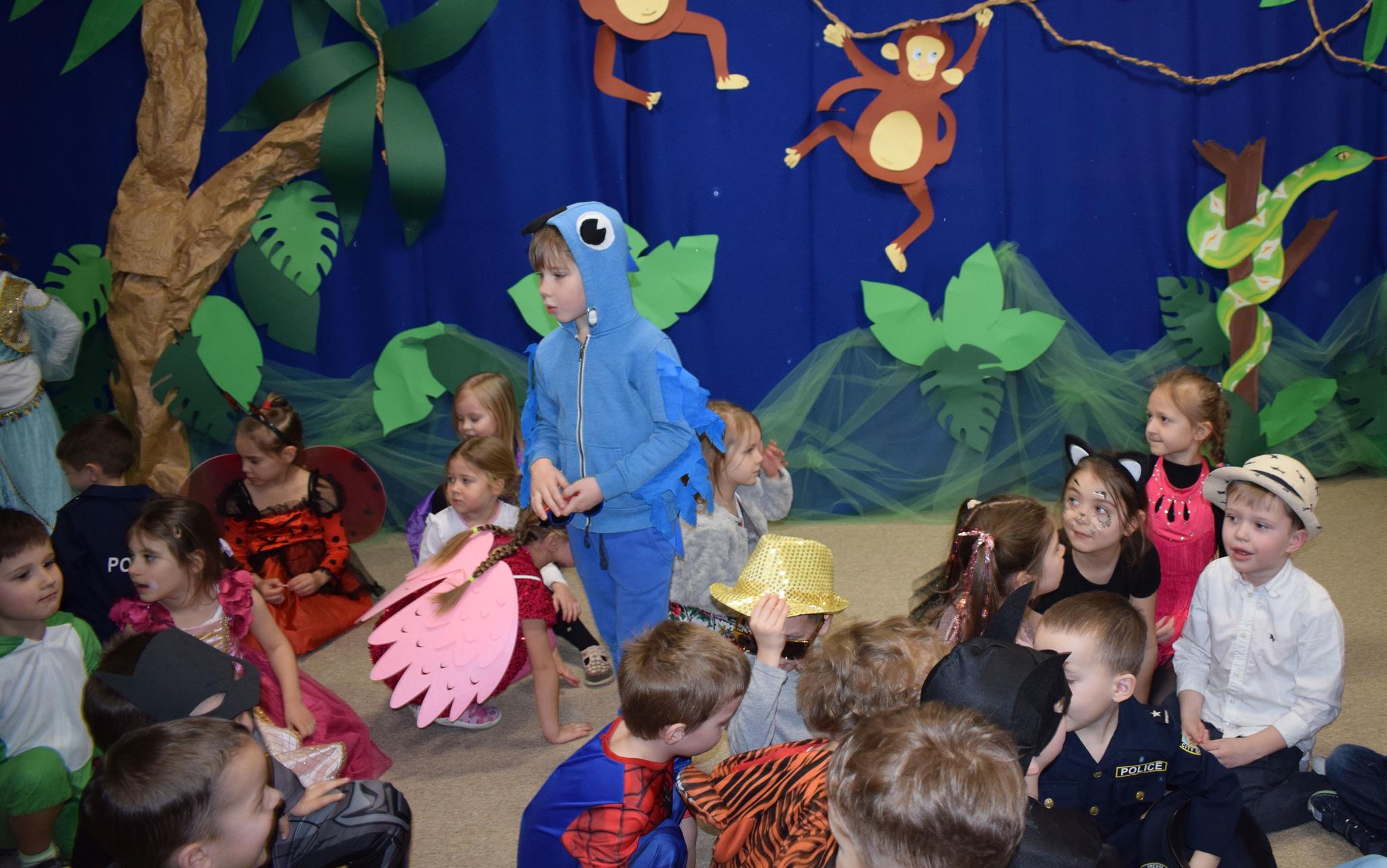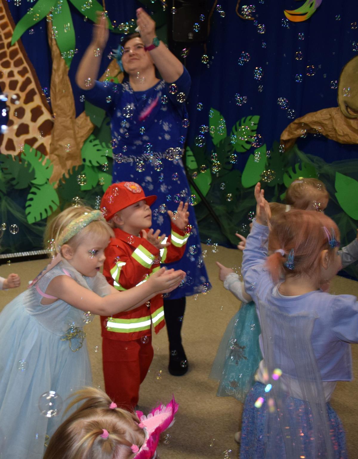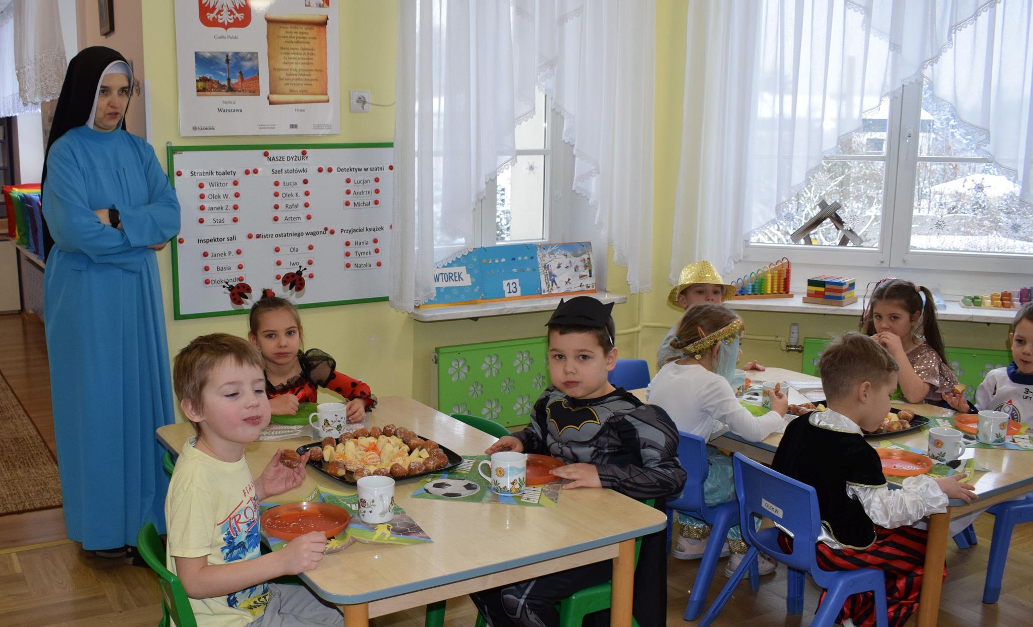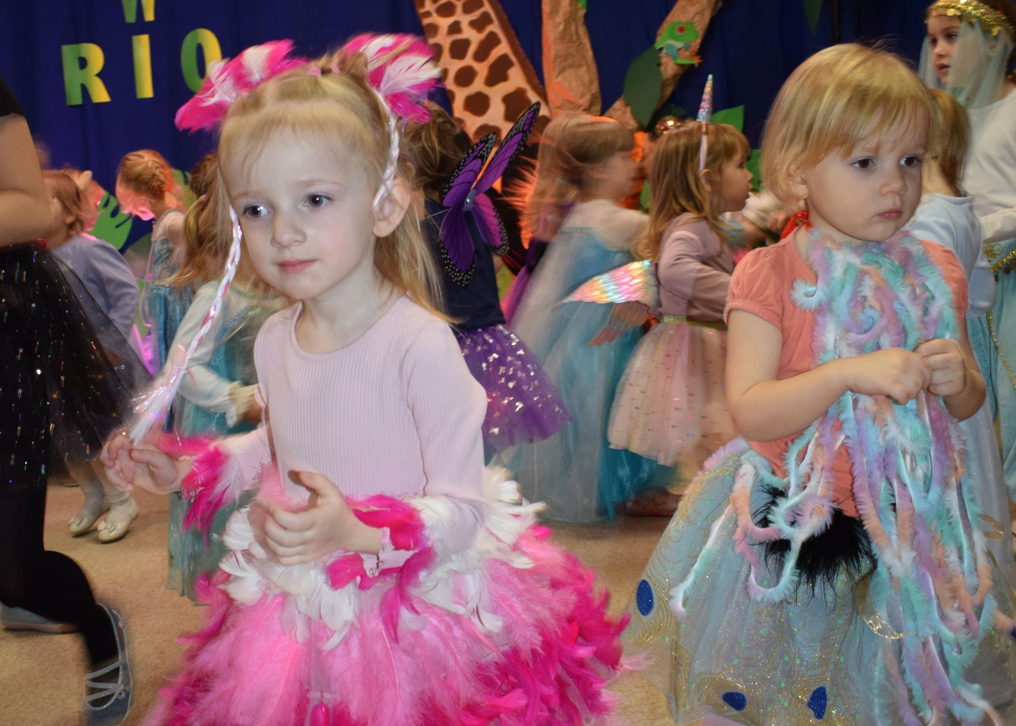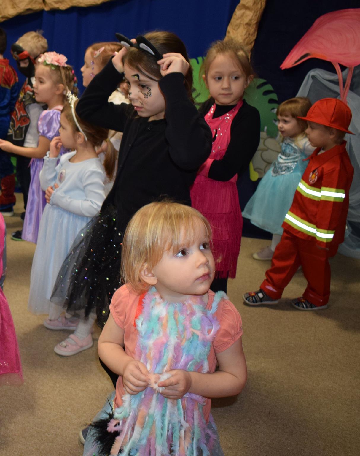 Tegoroczny karnawał rozpoczęliśmy taneczną imprezą. Żywiołowa muzyka pobudziła do tańca nawet najbardziej zasiedziałe przedszkolaki. Sunęliśmy po parkiecie solo, w parach i w wężykach w rytmie gorącej jak brazylijskie słońce samby. Wiele przebojów znaliśmy na pamięć, więc śpiewaliśmy głośno, jakby marząc o tym, by usłyszano nas na Copacabanie. Prowadzących zaś aktorów z Teatru Złoty Dukat zachwyciliśmy nie tylko swoimi umiejętnościami tanecznymi czy wokalnymi, lecz także wielobarwnymi strojami. Na parkiecie nie zabrakło policjantów, strażaków, postaci bajkowych, zwierzątek. Czas karnawałowych pląsów umilały liczne księżniczki i wróżki. Chwilami zdawało się, że wiosna już tuż-tuż, kiedy nagle swym kolorowym skrzydełkiem machnęła jakaś biedronka i motylek.