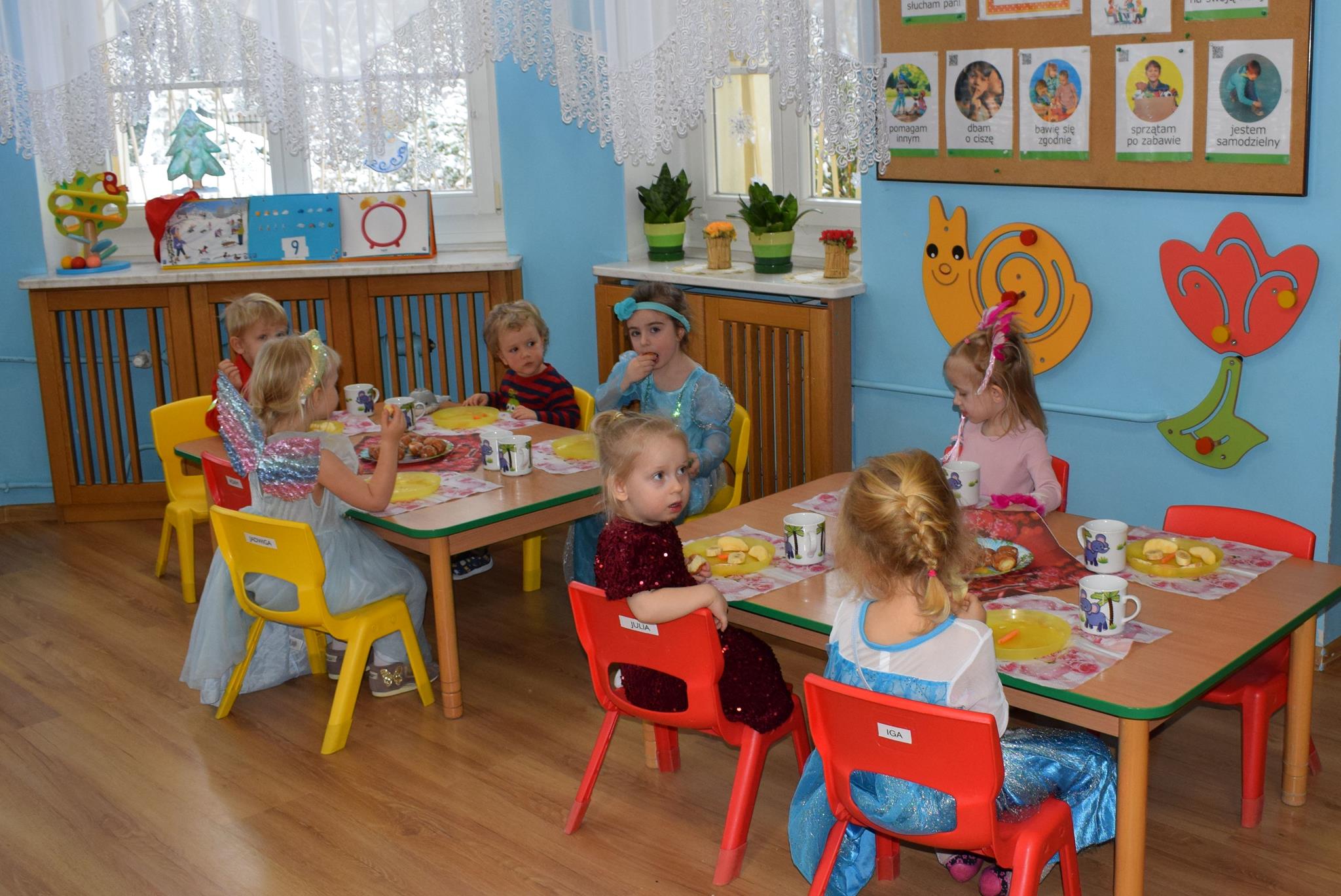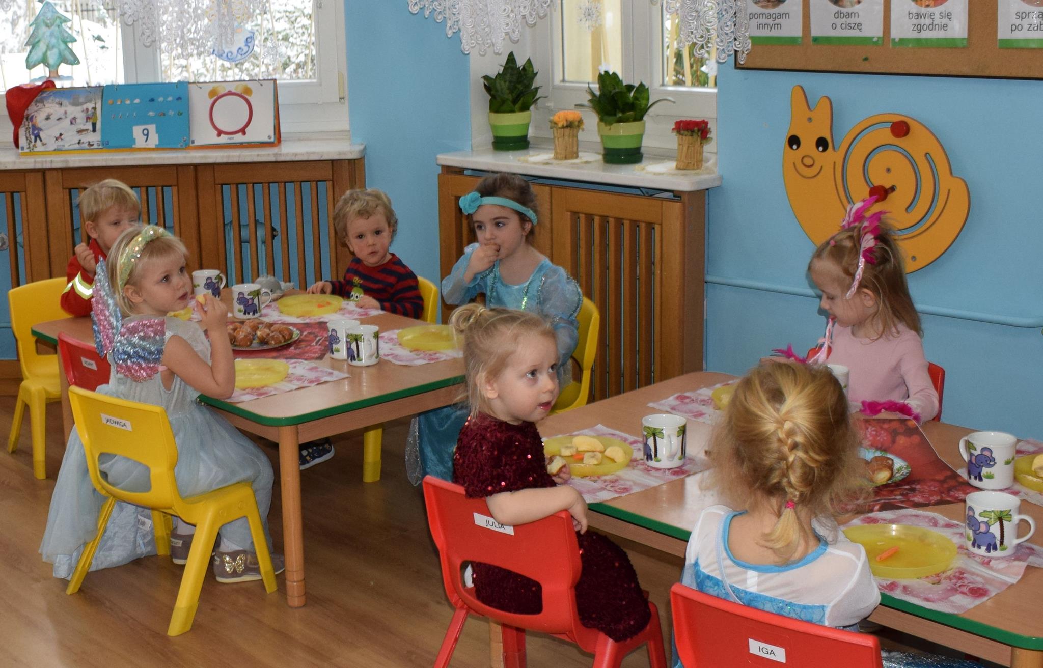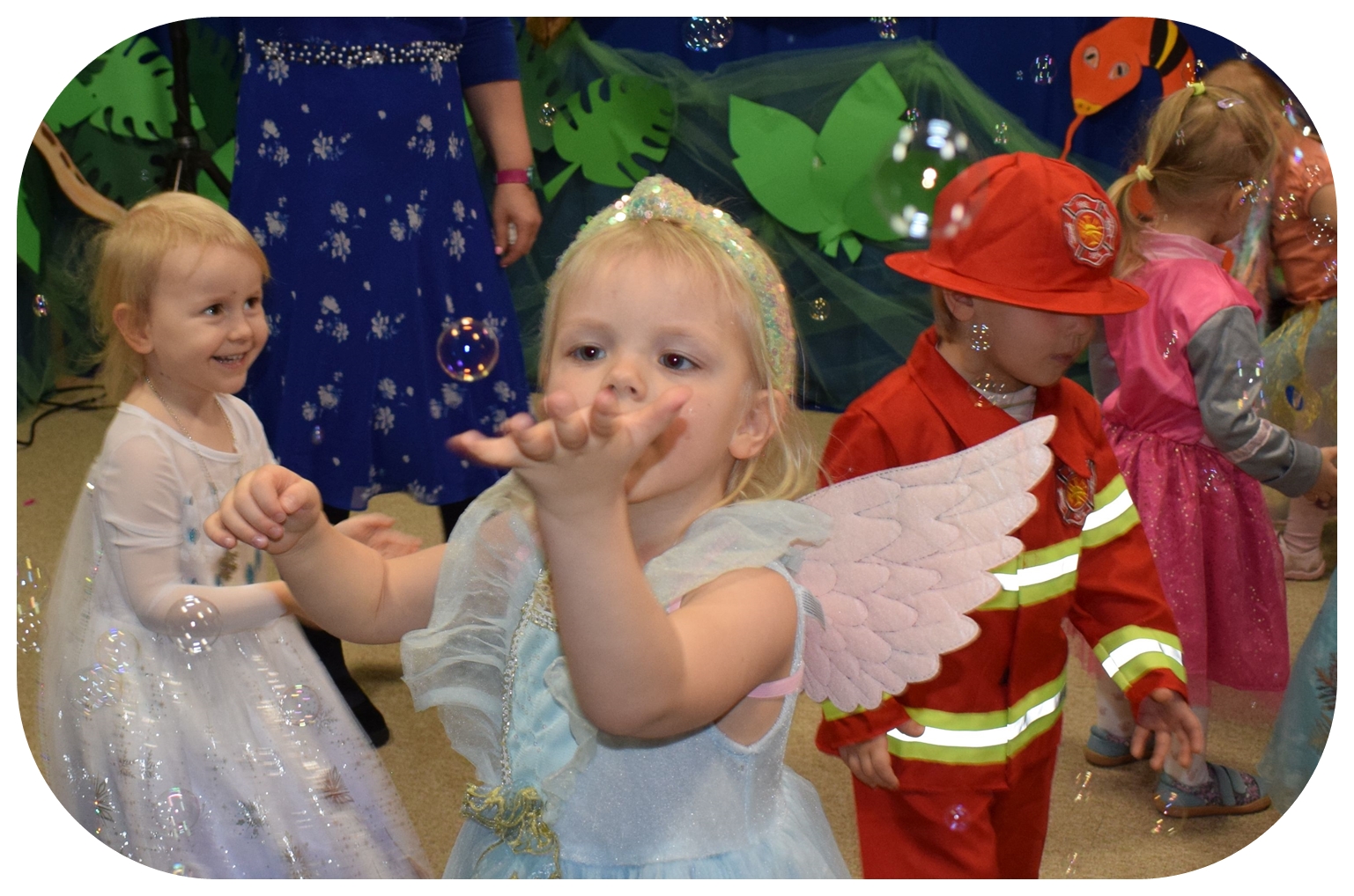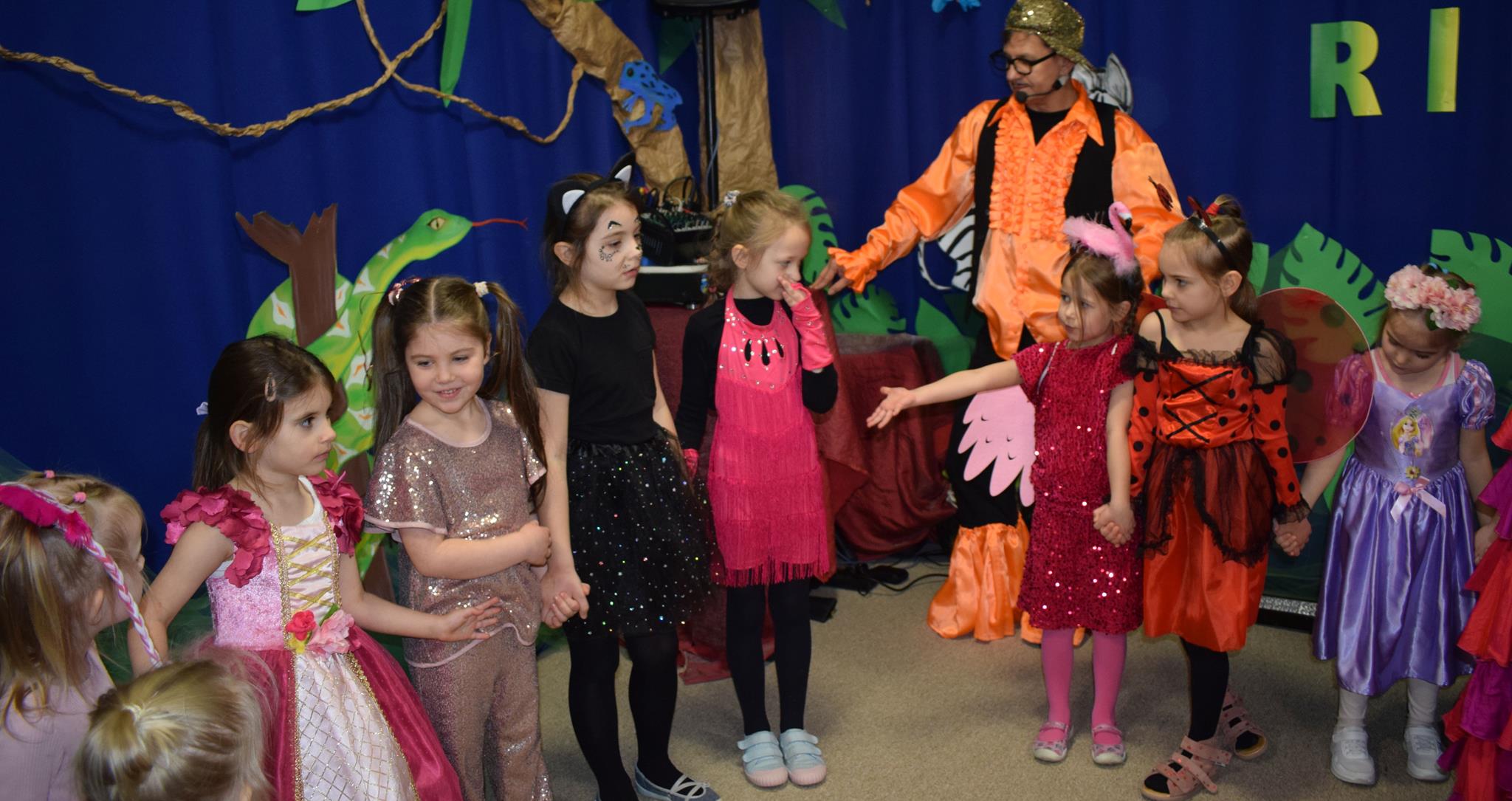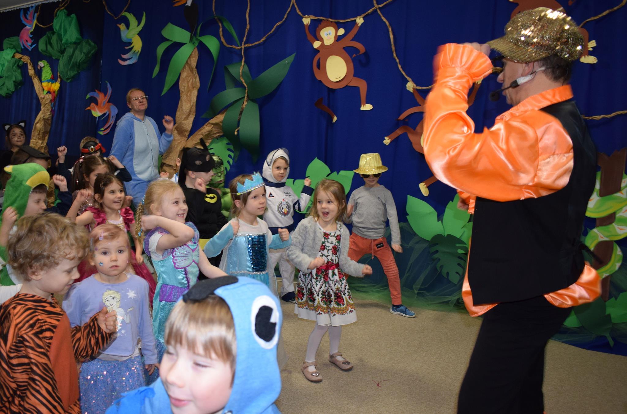 Tegoroczny karnawał rozpoczęliśmy taneczną imprezą. Żywiołowa muzyka pobudziła do tańca nawet najbardziej zasiedziałe przedszkolaki. Sunęliśmy po parkiecie solo, w parach i w wężykach w rytmie gorącej jak brazylijskie słońce samby. Wiele przebojów znaliśmy na pamięć, więc śpiewaliśmy głośno, jakby marząc o tym, by usłyszano nas na Copacabanie. Prowadzących zaś aktorów z Teatru Złoty Dukat zachwyciliśmy nie tylko swoimi umiejętnościami tanecznymi czy wokalnymi, lecz także wielobarwnymi strojami. Na parkiecie nie zabrakło policjantów, strażaków, postaci bajkowych, zwierzątek. Czas karnawałowych pląsów umilały liczne księżniczki i wróżki. Chwilami zdawało się, że wiosna już tuż-tuż, kiedy nagle swym kolorowym skrzydełkiem machnęła jakaś biedronka i motylek.