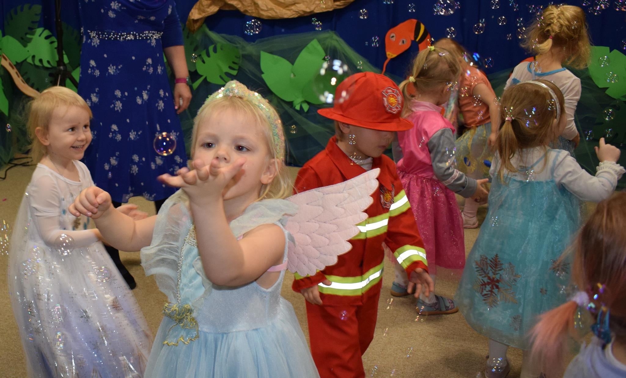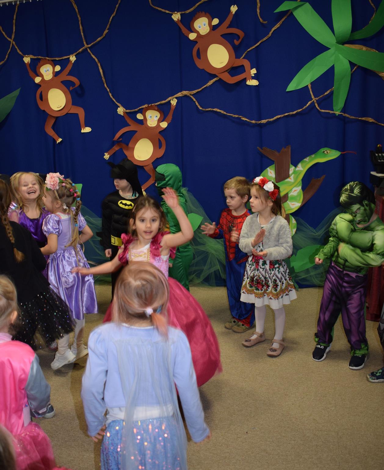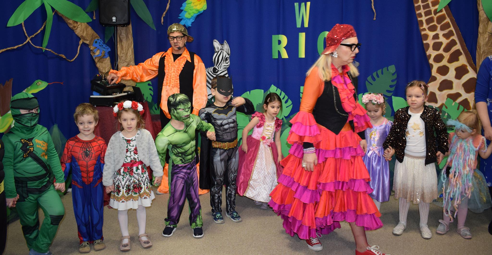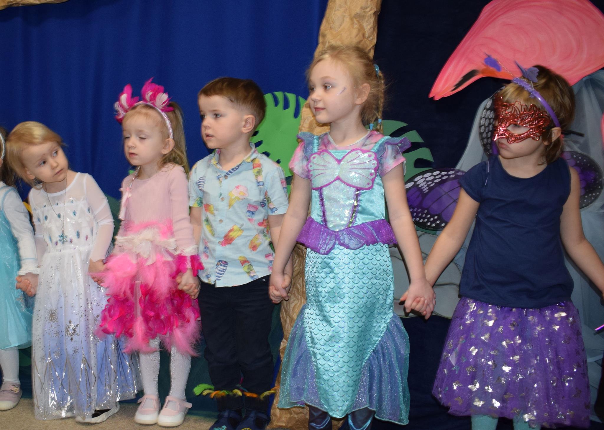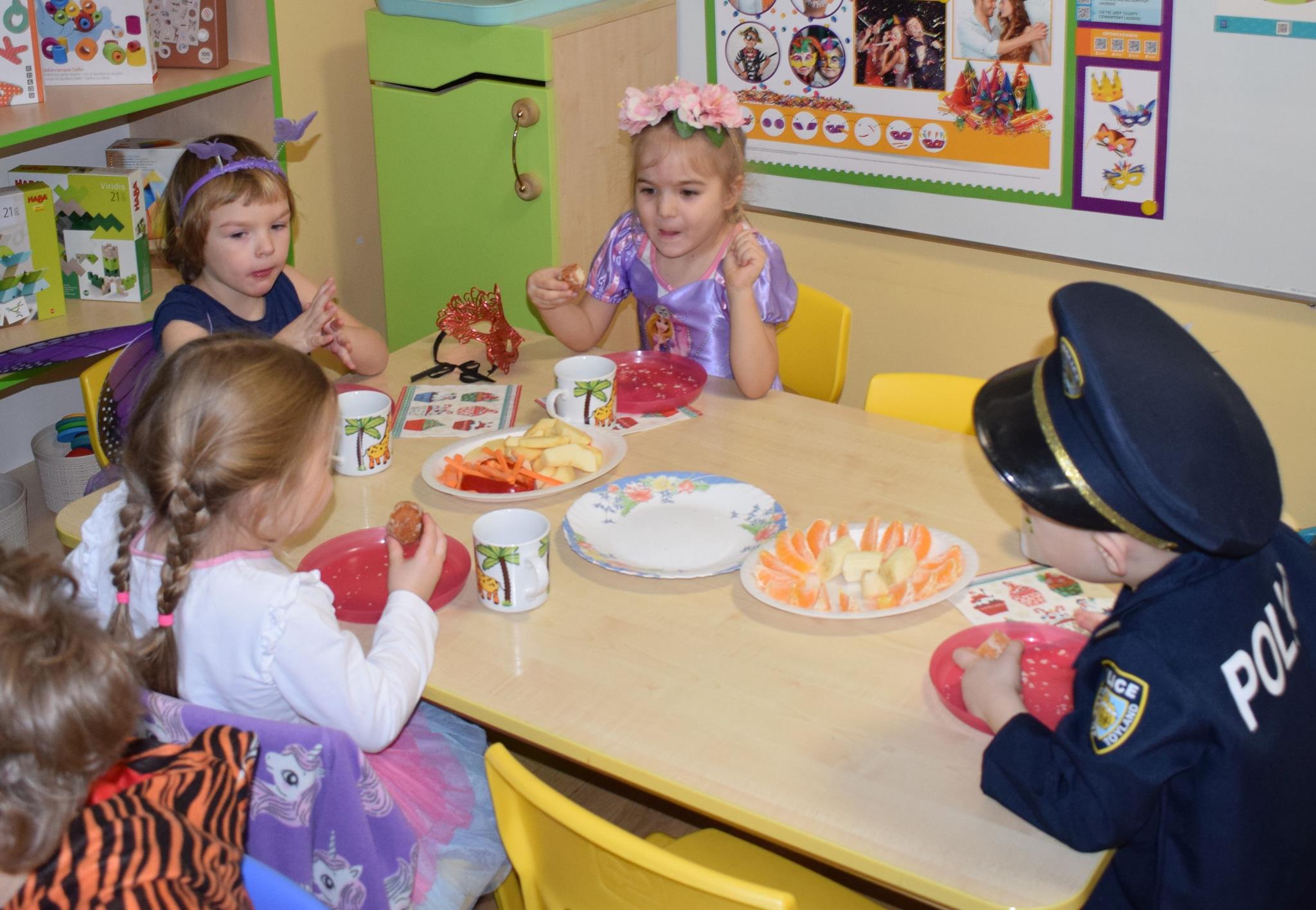 Tegoroczny karnawał rozpoczęliśmy taneczną imprezą. Żywiołowa muzyka pobudziła do tańca nawet najbardziej zasiedziałe przedszkolaki. Sunęliśmy po parkiecie solo, w parach i w wężykach w rytmie gorącej jak brazylijskie słońce samby. Wiele przebojów znaliśmy na pamięć, więc śpiewaliśmy głośno, jakby marząc o tym, by usłyszano nas na Copacabanie. Prowadzących zaś aktorów z Teatru Złoty Dukat zachwyciliśmy nie tylko swoimi umiejętnościami tanecznymi czy wokalnymi, lecz także wielobarwnymi strojami. Na parkiecie nie zabrakło policjantów, strażaków, postaci bajkowych, zwierzątek. Czas karnawałowych pląsów umilały liczne księżniczki i wróżki. Chwilami zdawało się, że wiosna już tuż-tuż, kiedy nagle swym kolorowym skrzydełkiem machnęła jakaś biedronka i motylek.