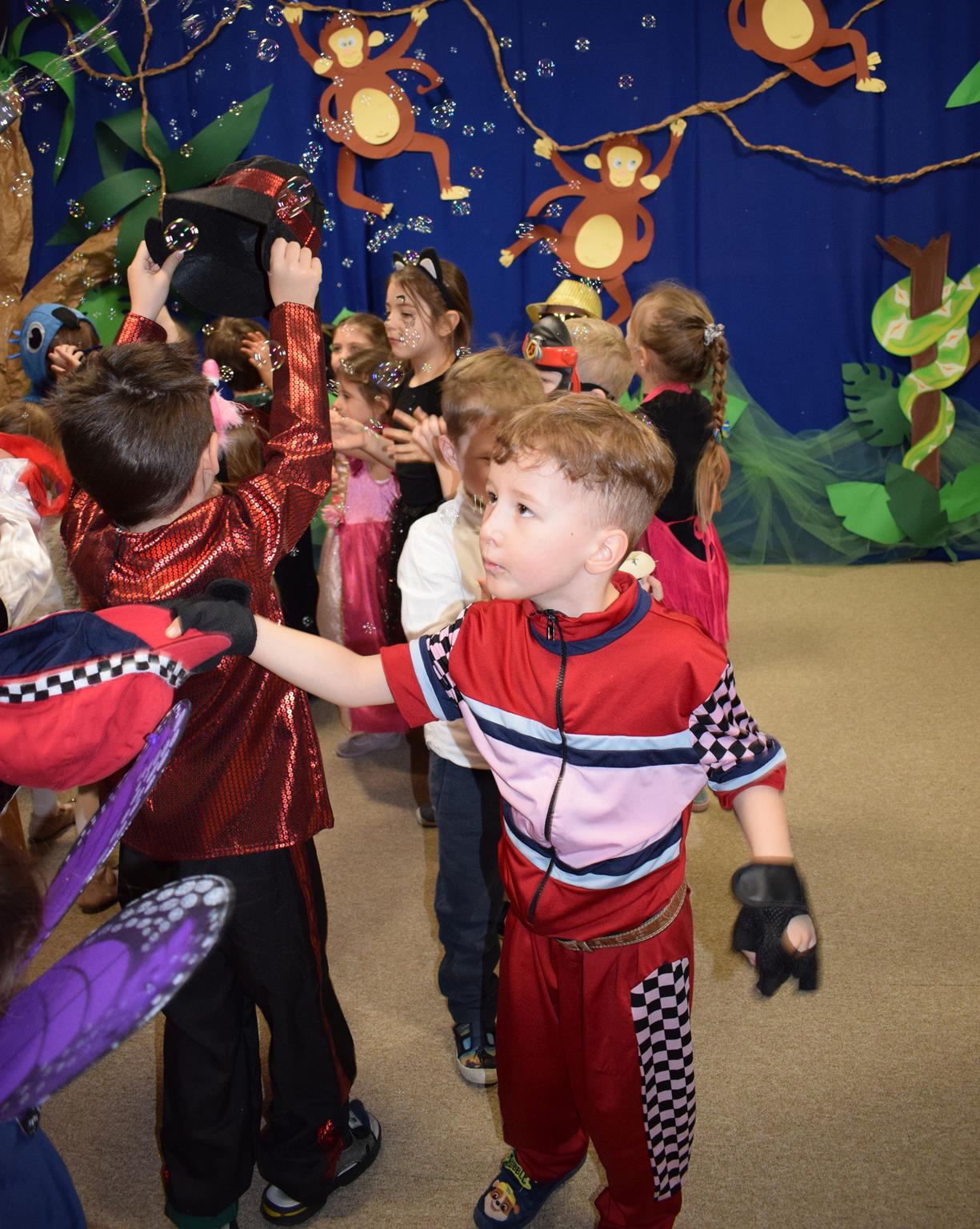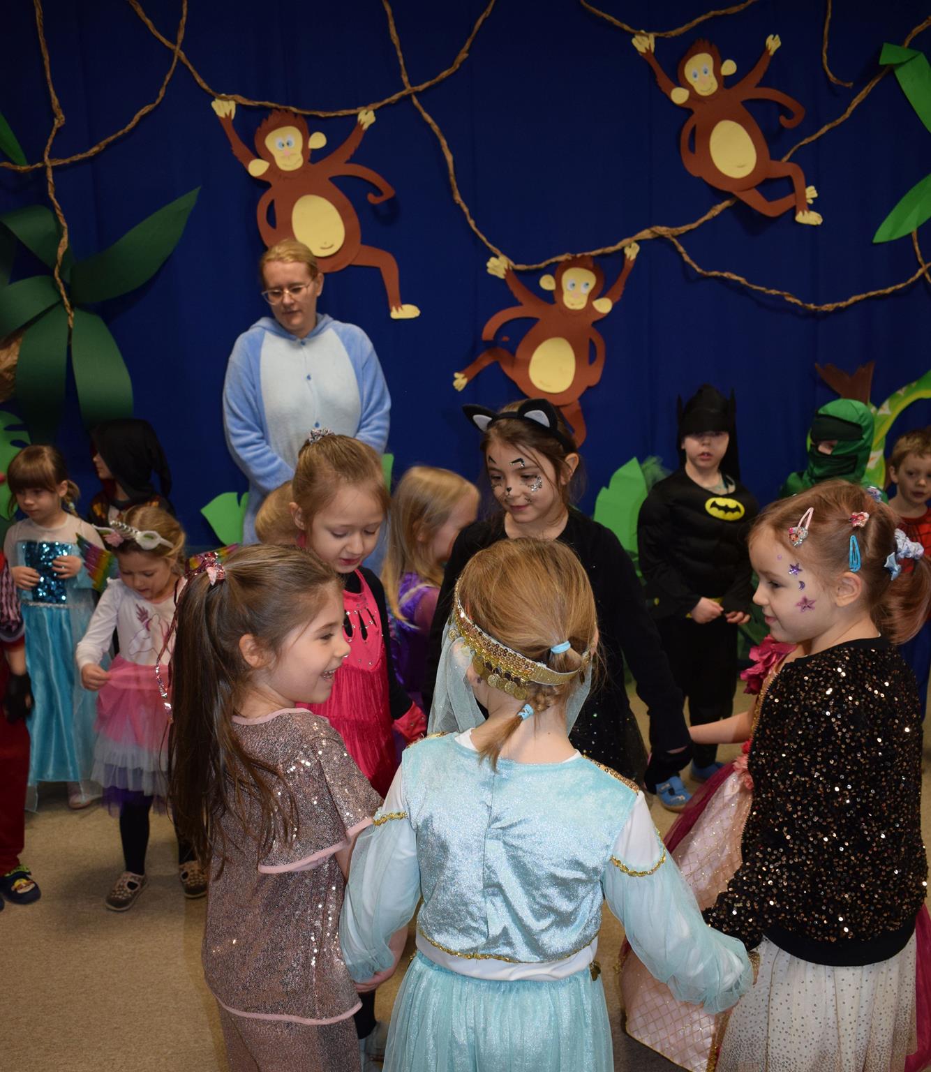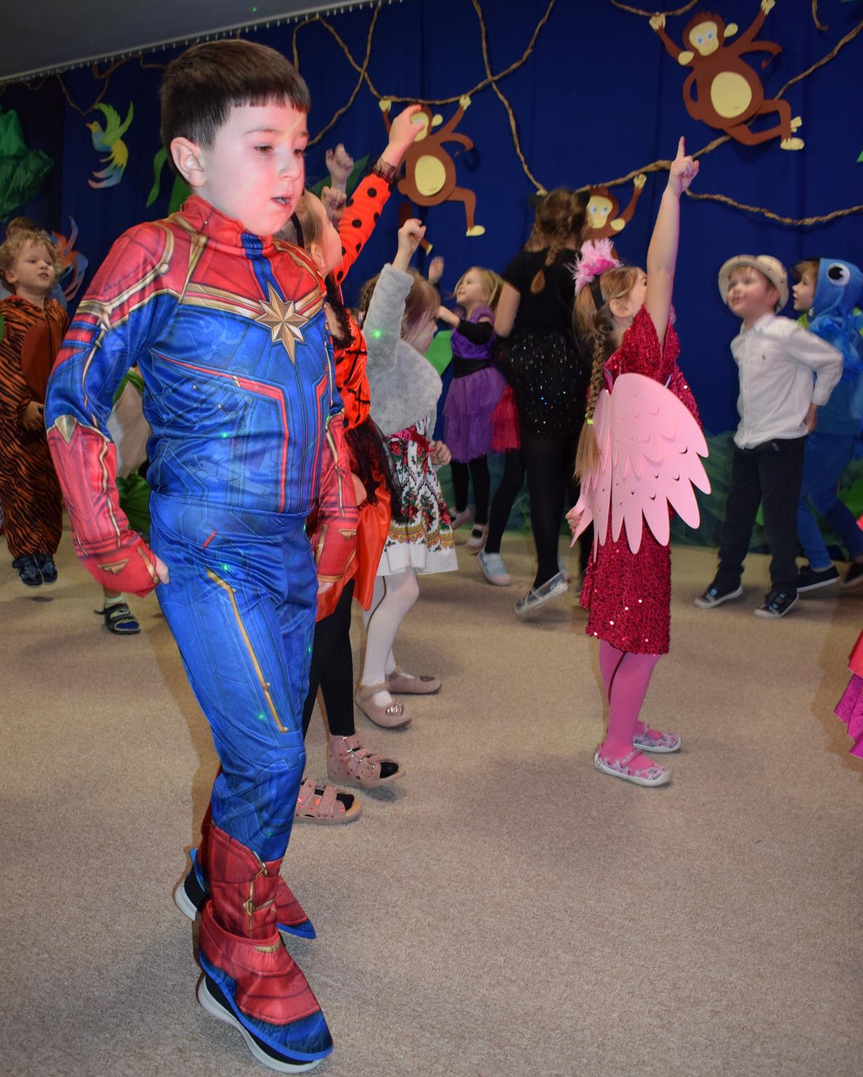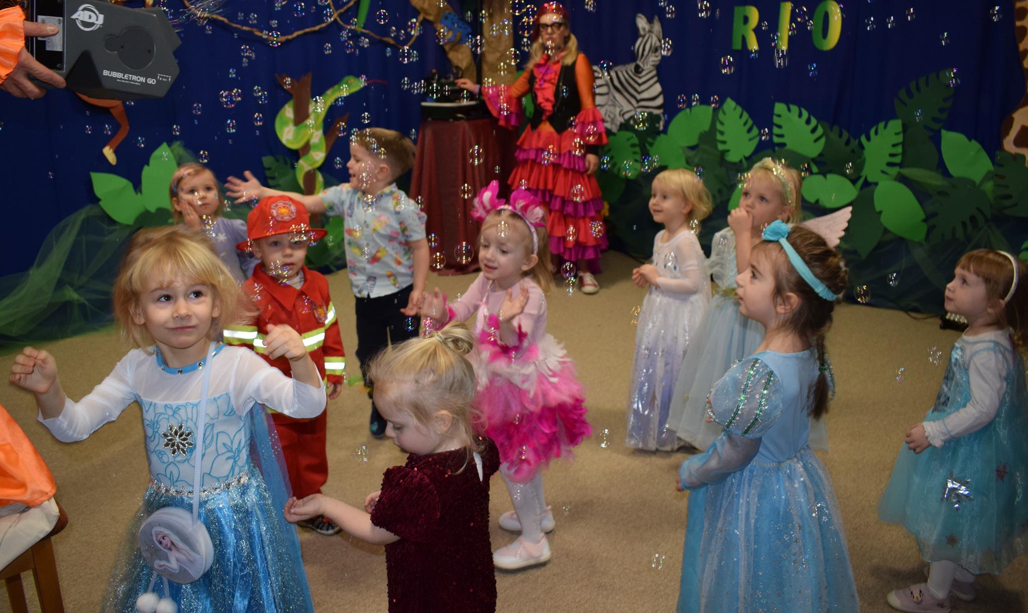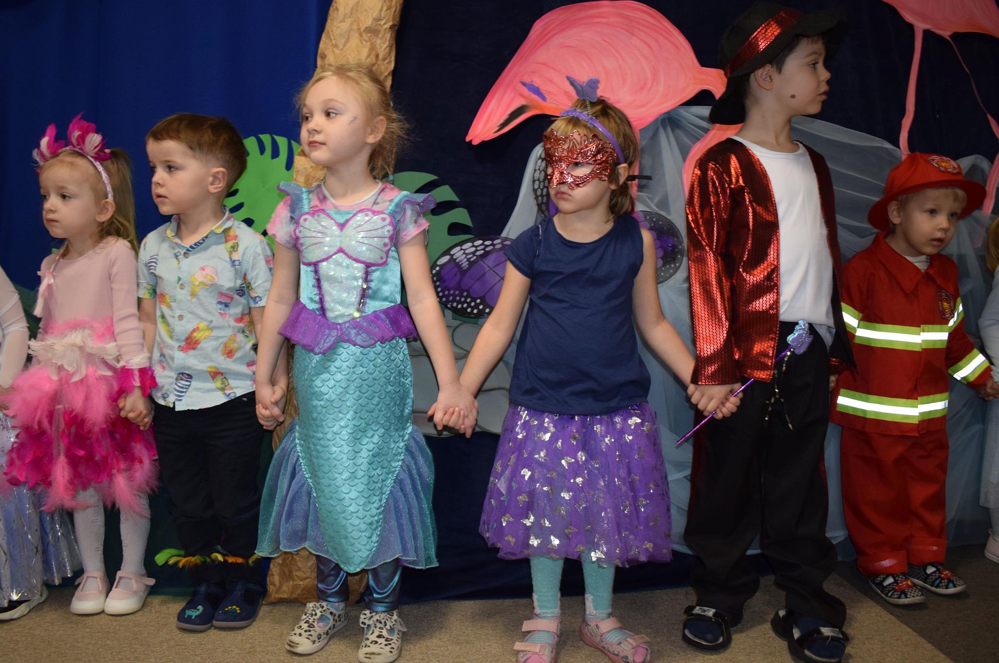 Tegoroczny karnawał rozpoczęliśmy taneczną imprezą. Żywiołowa muzyka pobudziła do tańca nawet najbardziej zasiedziałe przedszkolaki. Sunęliśmy po parkiecie solo, w parach i w wężykach w rytmie gorącej jak brazylijskie słońce samby. Wiele przebojów znaliśmy na pamięć, więc śpiewaliśmy głośno, jakby marząc o tym, by usłyszano nas na Copacabanie. Prowadzących zaś aktorów z Teatru Złoty Dukat zachwyciliśmy nie tylko swoimi umiejętnościami tanecznymi czy wokalnymi, lecz także wielobarwnymi strojami. Na parkiecie nie zabrakło policjantów, strażaków, postaci bajkowych, zwierzątek. Czas karnawałowych pląsów umilały liczne księżniczki i wróżki. Chwilami zdawało się, że wiosna już tuż-tuż, kiedy nagle swym kolorowym skrzydełkiem machnęła jakaś biedronka i motylek.