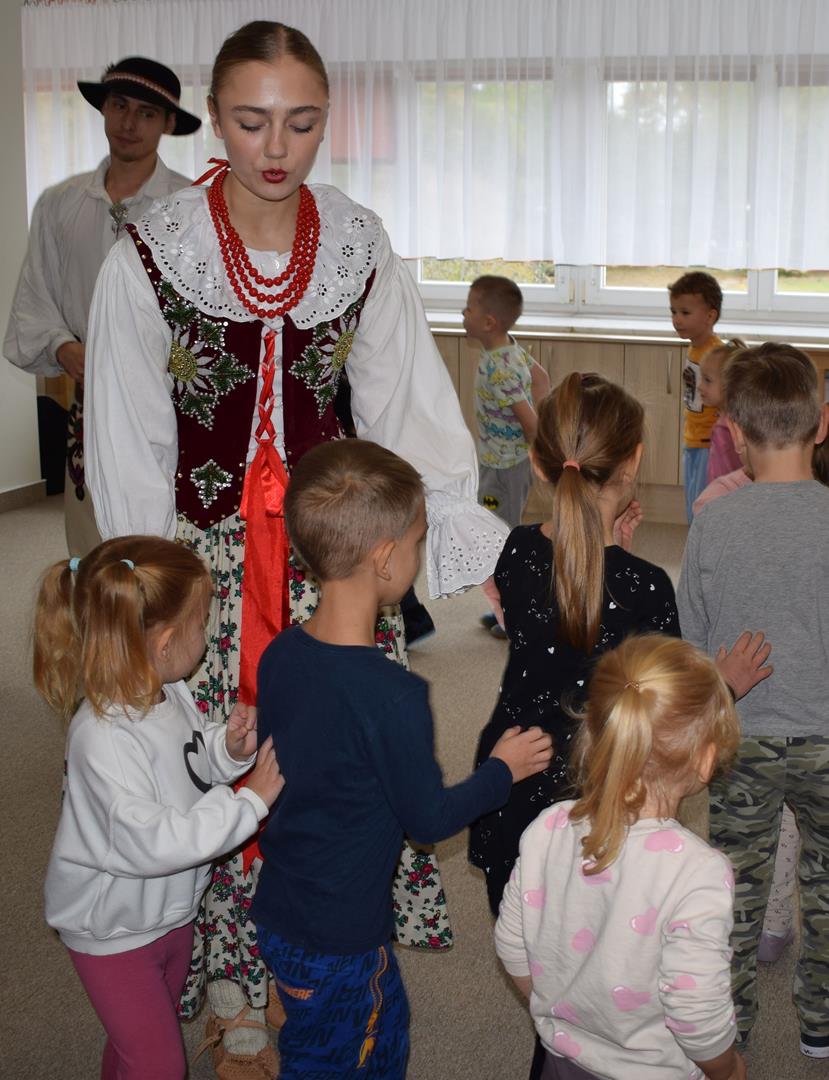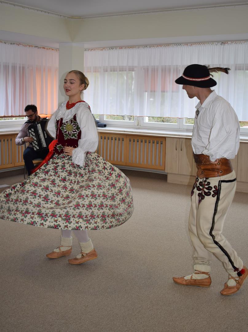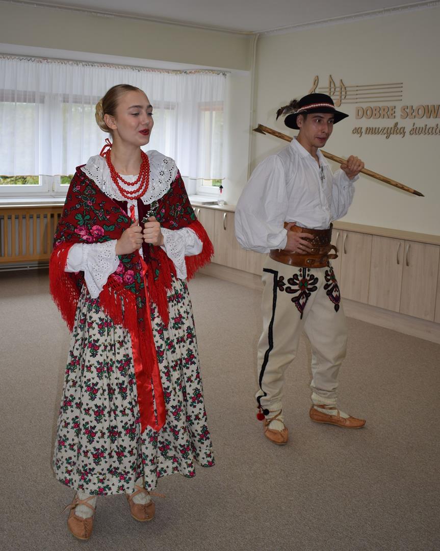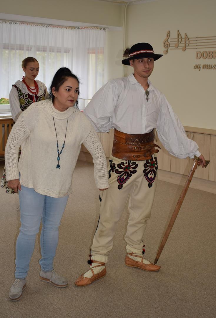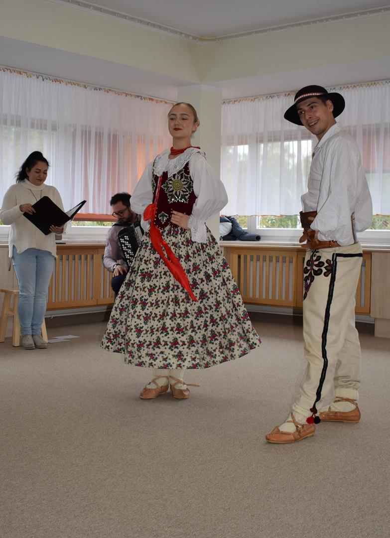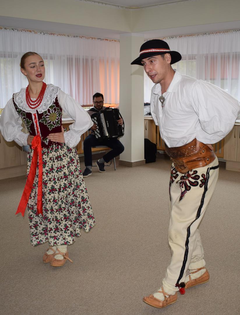 Pieśni i tańce ludowe są zawsze cennym źródłem wiedzy o minionych czasach. Tym razem wzięliśmy pod lupę Podhale i jego mieszkańców. Kierpce, gacie i ciupaska, pięknie zdobione gorsety i kwieciste spódnice widziane z bliska zapierały dech w piersiach. Za sprawą oryginalnego wielogłosowego śpiewu przenieśliśmy się na tatrzańskie hale, gdzie leniwie, pod czujnym okiem bacy pasły się owieczki. Poznaliśmy też legendę o najsłynniejszym zbójniku Janosiku, miłującym nade wszystko wolność i „równającym świat”. A wreszcie spróbowaliśmy swoich sił na parkiecie. Jak przystało na podhalańskie obyczaje, gdzie dźwięk zdaje się być elementem krajobrazu, decybele poszły mocno w górę.