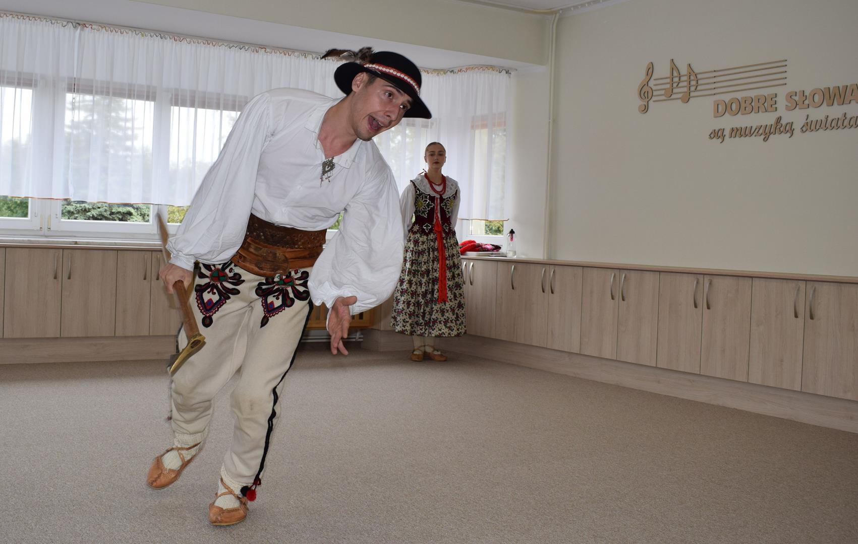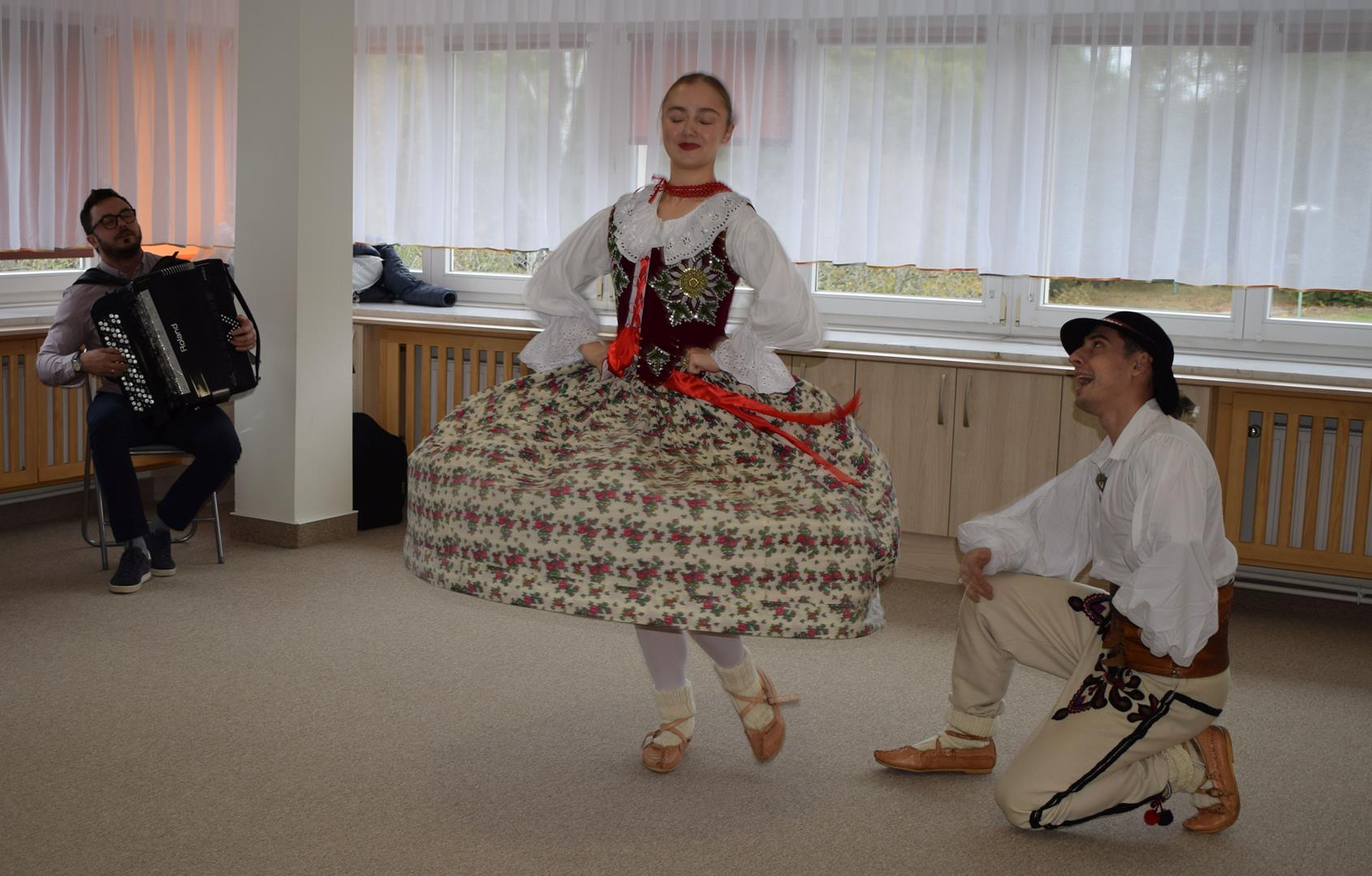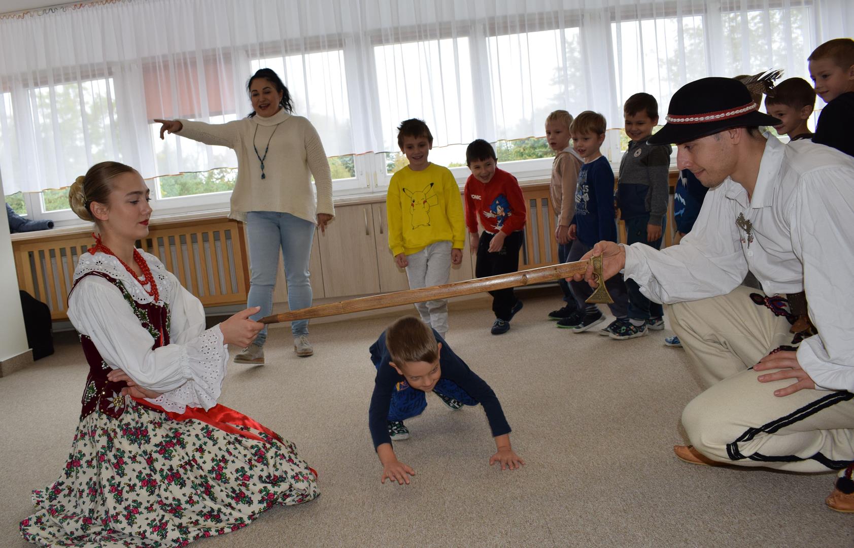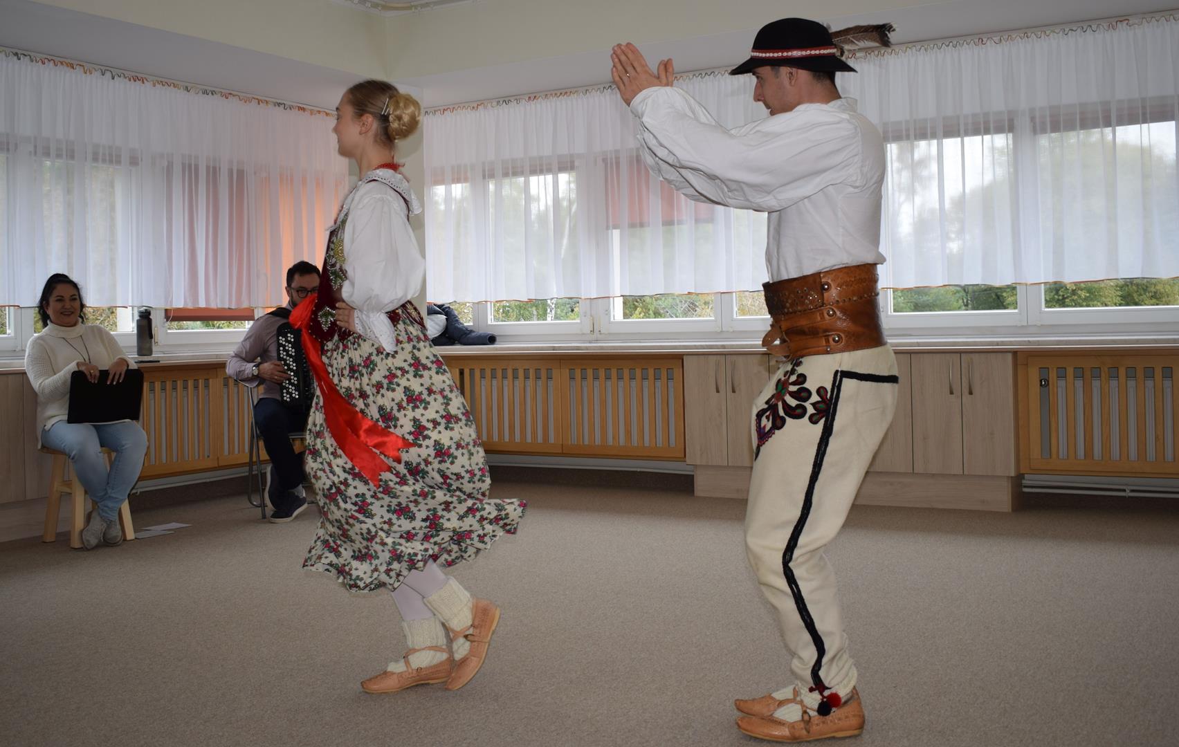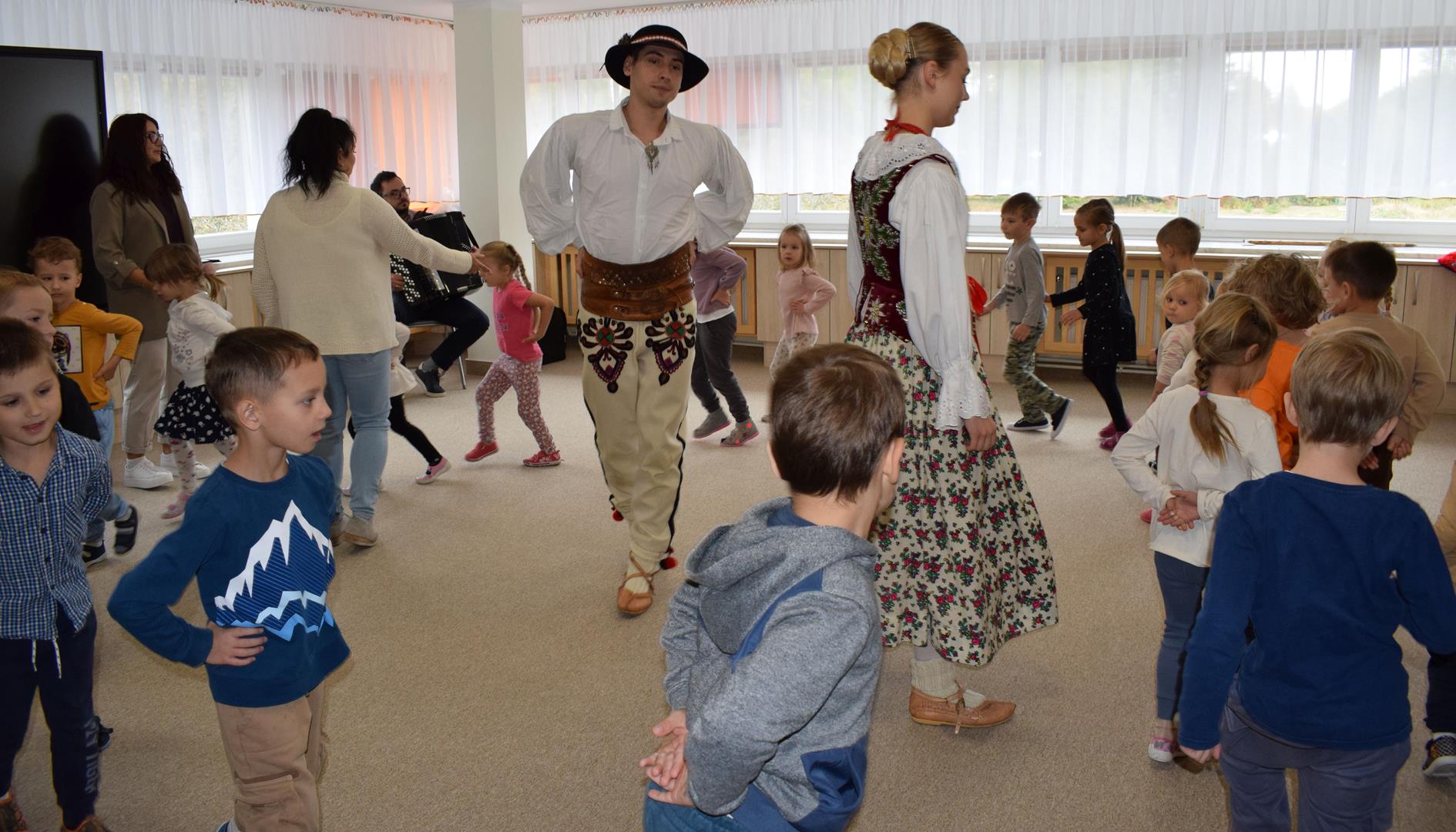 Pieśni i tańce ludowe są zawsze cennym źródłem wiedzy o minionych czasach. Tym razem wzięliśmy pod lupę Podhale i jego mieszkańców. Kierpce, gacie i ciupaska, pięknie zdobione gorsety i kwieciste spódnice widziane z bliska zapierały dech w piersiach. Za sprawą oryginalnego wielogłosowego śpiewu przenieśliśmy się na tatrzańskie hale, gdzie leniwie, pod czujnym okiem bacy pasły się owieczki. Poznaliśmy też legendę o najsłynniejszym zbójniku Janosiku, miłującym nade wszystko wolność i „równającym świat”. A wreszcie spróbowaliśmy swoich sił na parkiecie. Jak przystało na podhalańskie obyczaje, gdzie dźwięk zdaje się być elementem krajobrazu, decybele poszły mocno w górę.