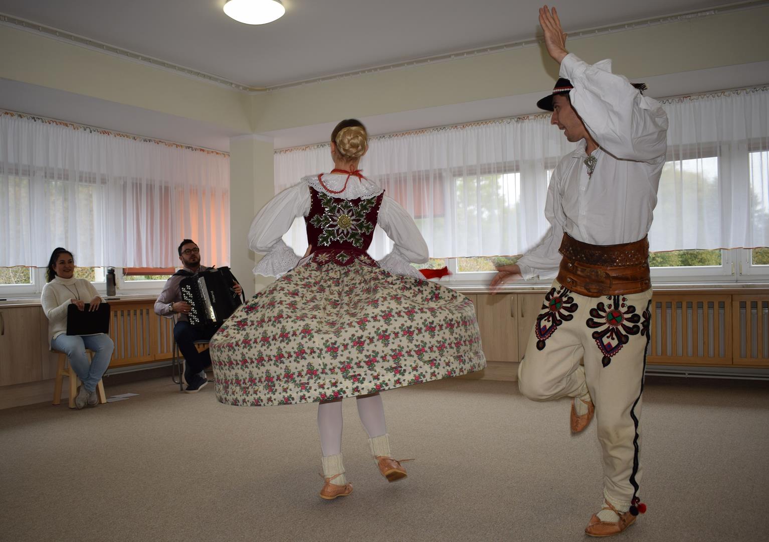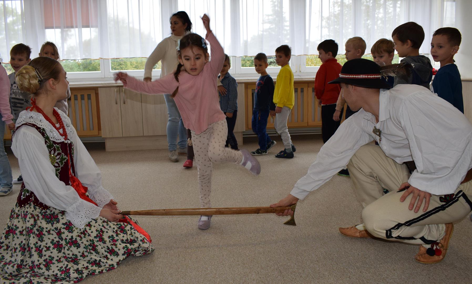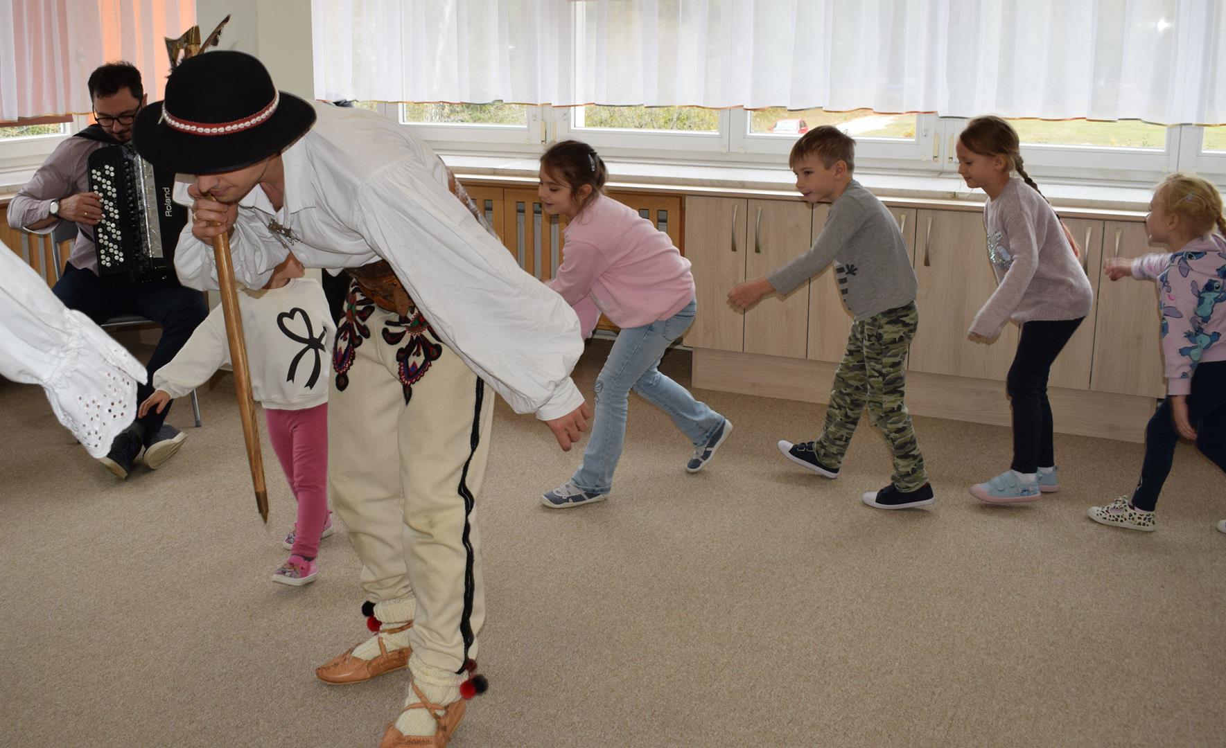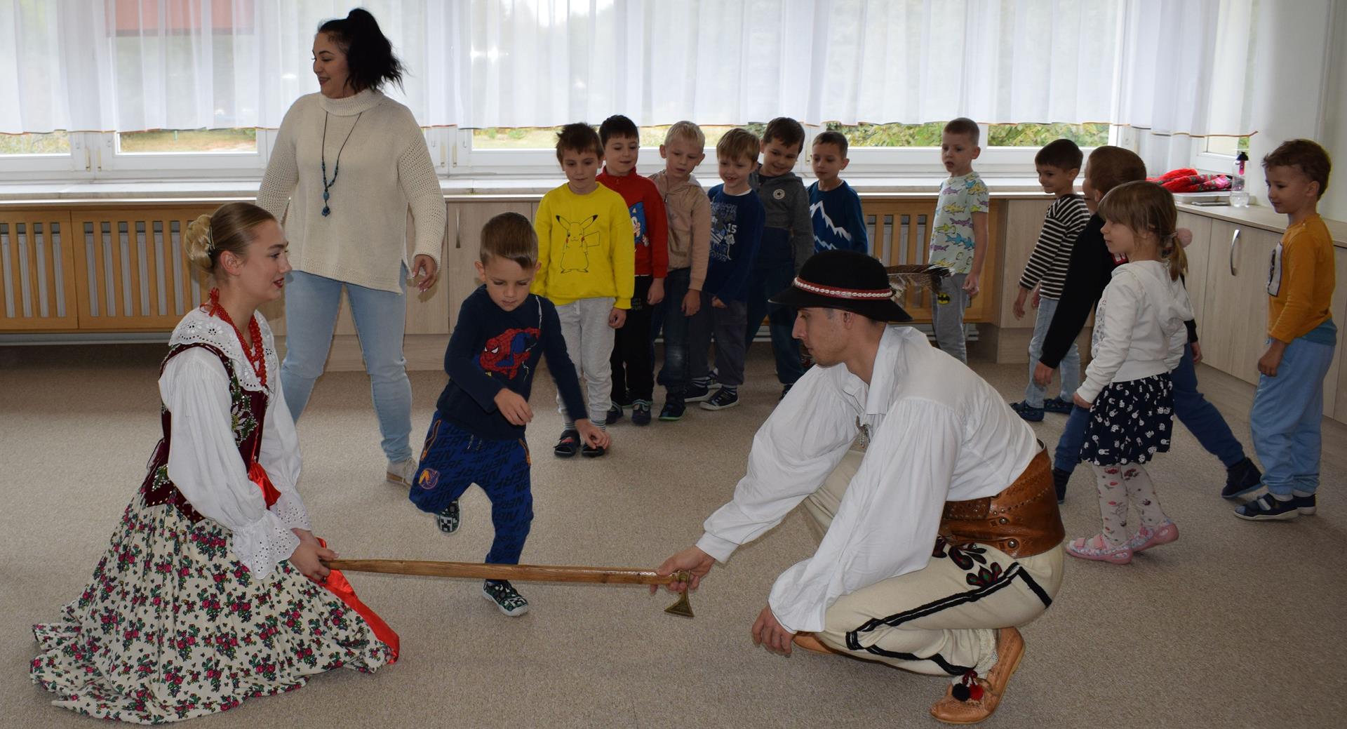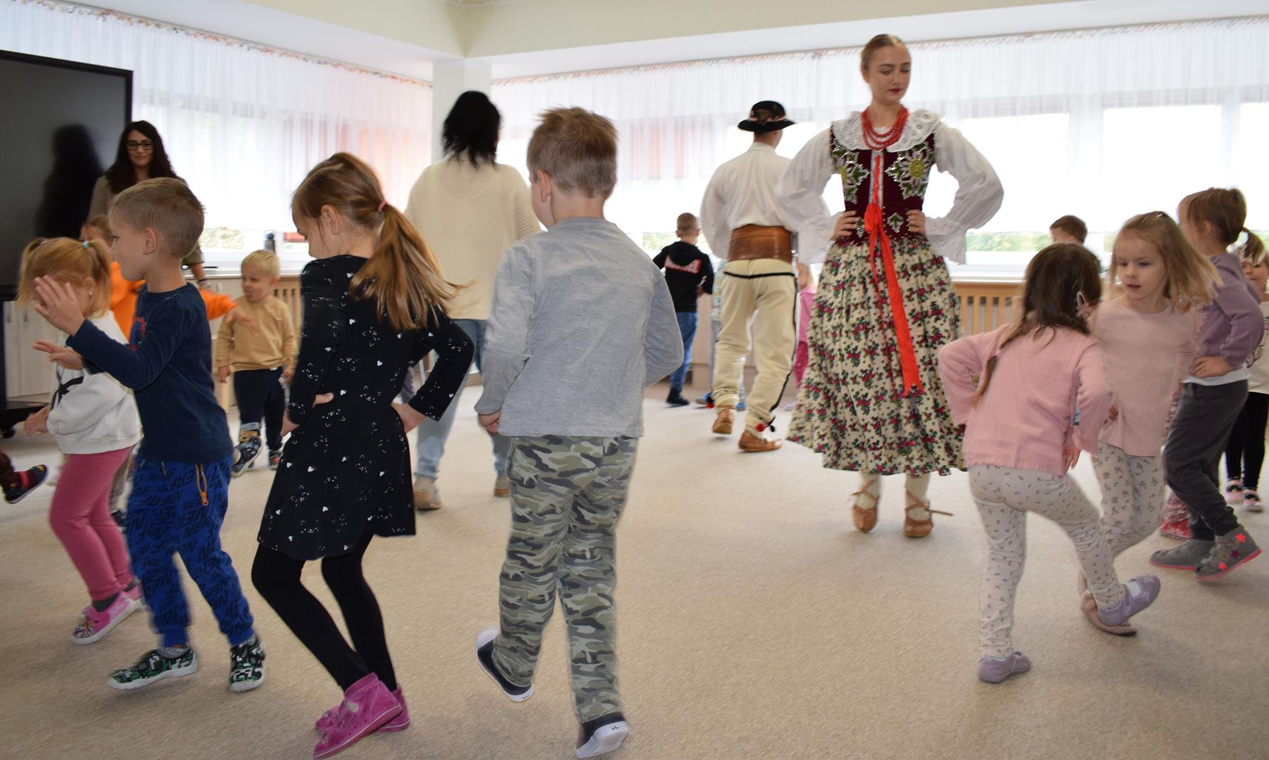 Pieśni i tańce ludowe są zawsze cennym źródłem wiedzy o minionych czasach. Tym razem wzięliśmy pod lupę Podhale i jego mieszkańców. Kierpce, gacie i ciupaska, pięknie zdobione gorsety i kwieciste spódnice widziane z bliska zapierały dech w piersiach. Za sprawą oryginalnego wielogłosowego śpiewu przenieśliśmy się na tatrzańskie hale, gdzie leniwie, pod czujnym okiem bacy pasły się owieczki. Poznaliśmy też legendę o najsłynniejszym zbójniku Janosiku, miłującym nade wszystko wolność i „równającym świat”. A wreszcie spróbowaliśmy swoich sił na parkiecie. Jak przystało na podhalańskie obyczaje, gdzie dźwięk zdaje się być elementem krajobrazu, decybele poszły mocno w górę.