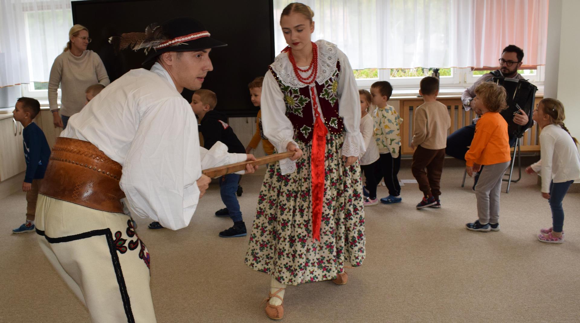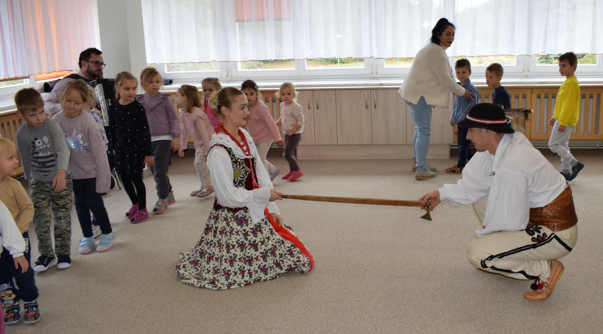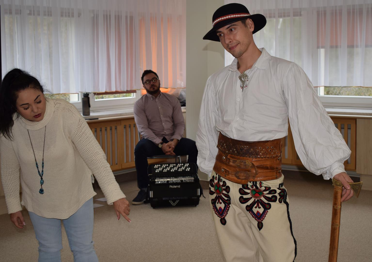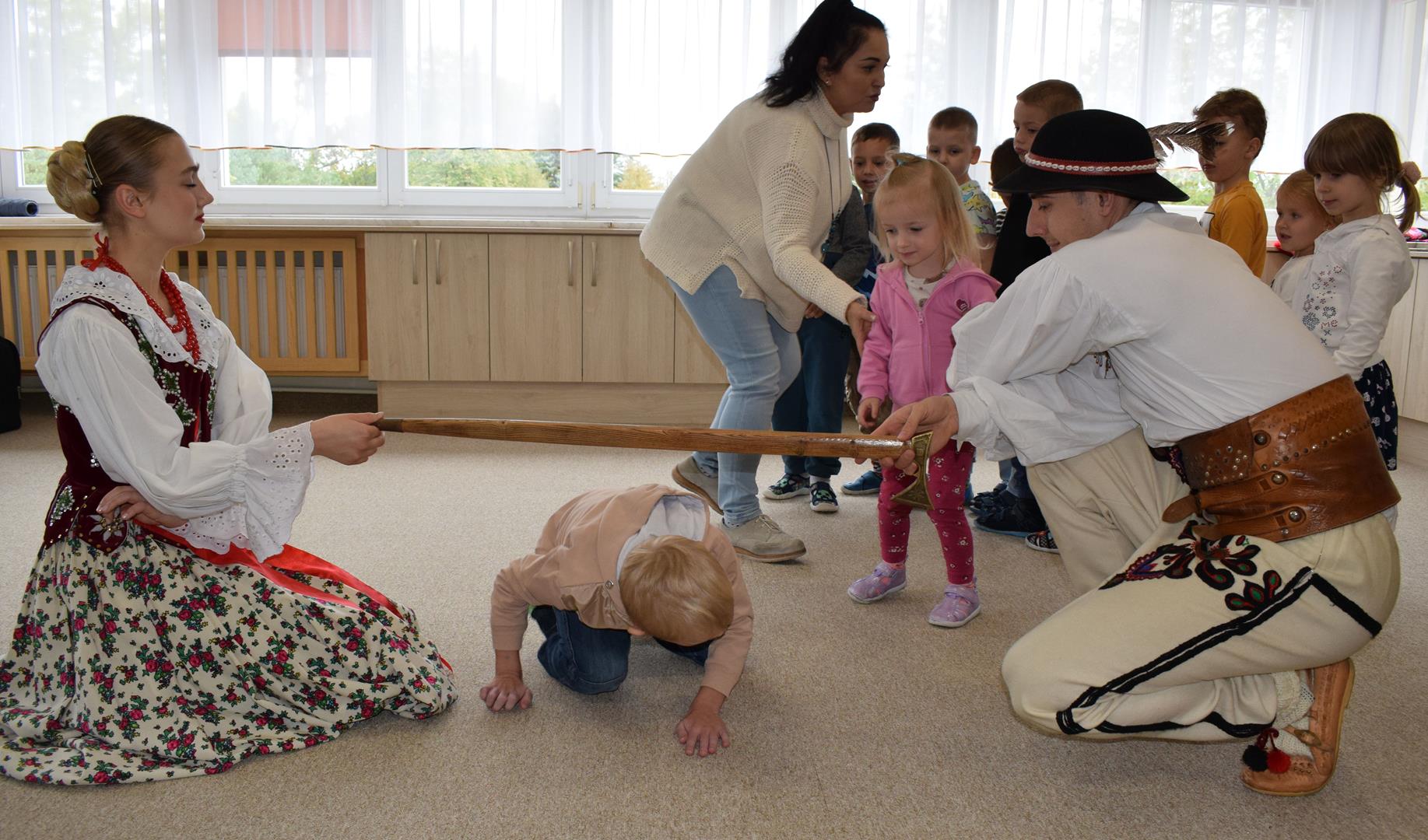 Pieśni i tańce ludowe są zawsze cennym źródłem wiedzy o minionych czasach. Tym razem wzięliśmy pod lupę Podhale i jego mieszkańców. Kierpce, gacie i ciupaska, pięknie zdobione gorsety i kwieciste spódnice widziane z bliska zapierały dech w piersiach. Za sprawą oryginalnego wielogłosowego śpiewu przenieśliśmy się na tatrzańskie hale, gdzie leniwie, pod czujnym okiem bacy pasły się owieczki. Poznaliśmy też legendę o najsłynniejszym zbójniku Janosiku, miłującym nade wszystko wolność i „równającym świat”. A wreszcie spróbowaliśmy swoich sił na parkiecie. Jak przystało na podhalańskie obyczaje, gdzie dźwięk zdaje się być elementem krajobrazu, decybele poszły mocno w górę.