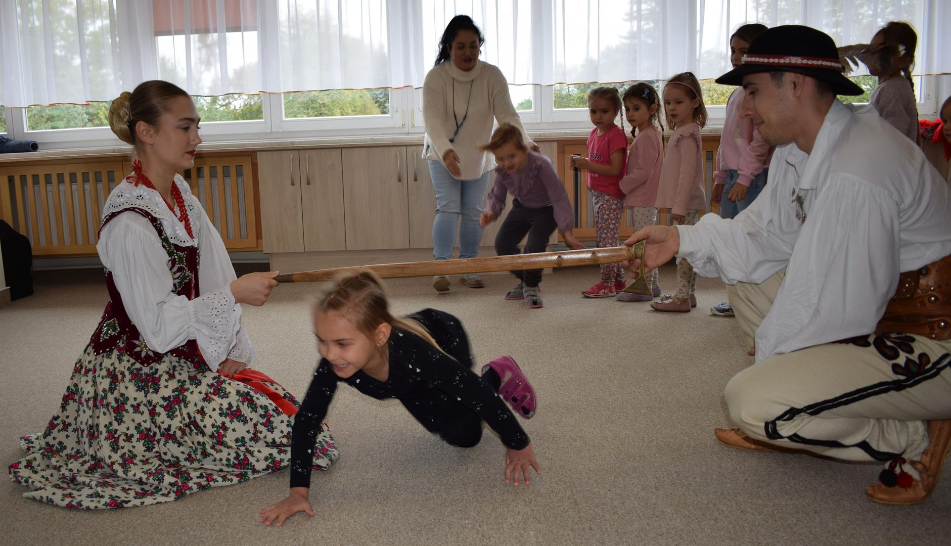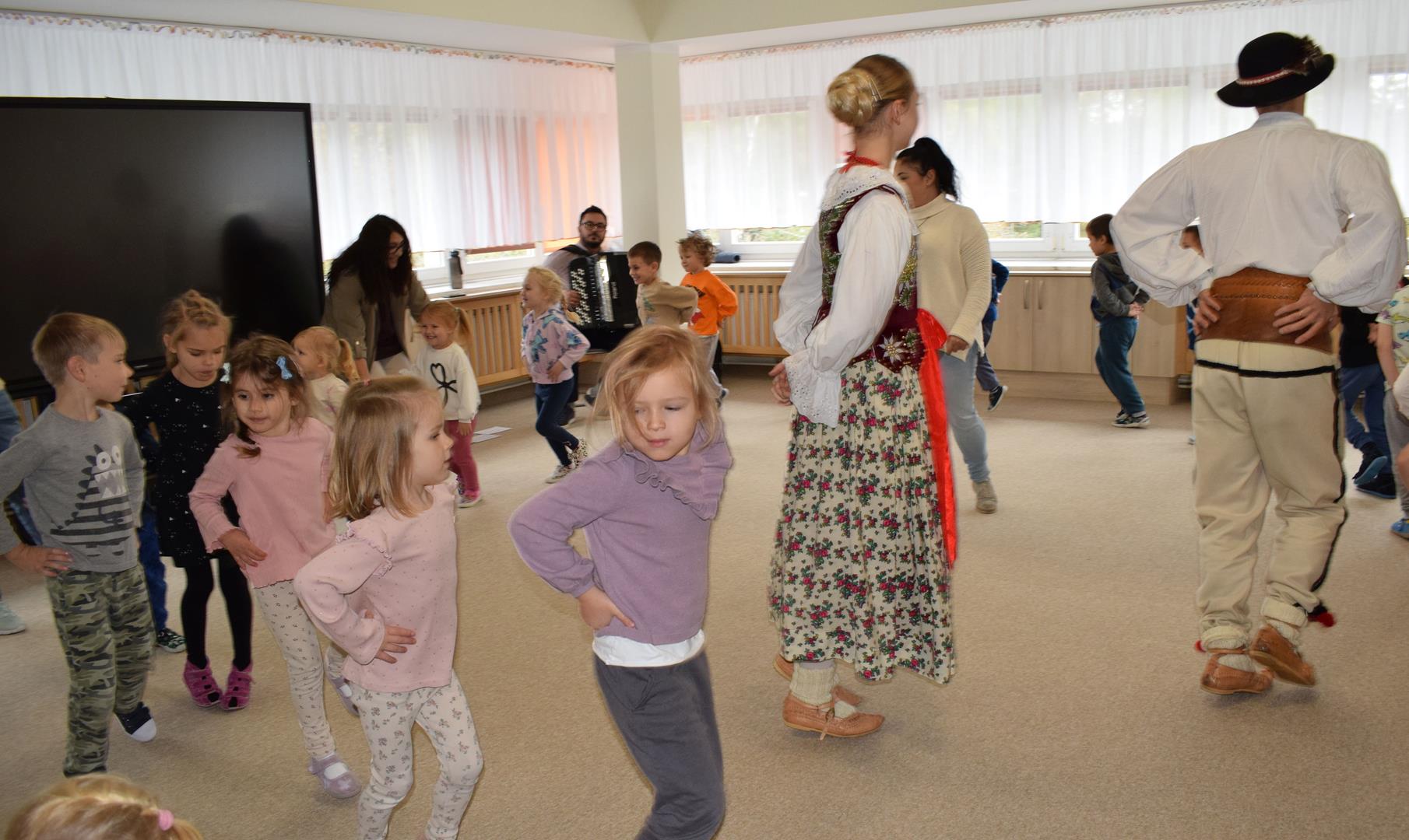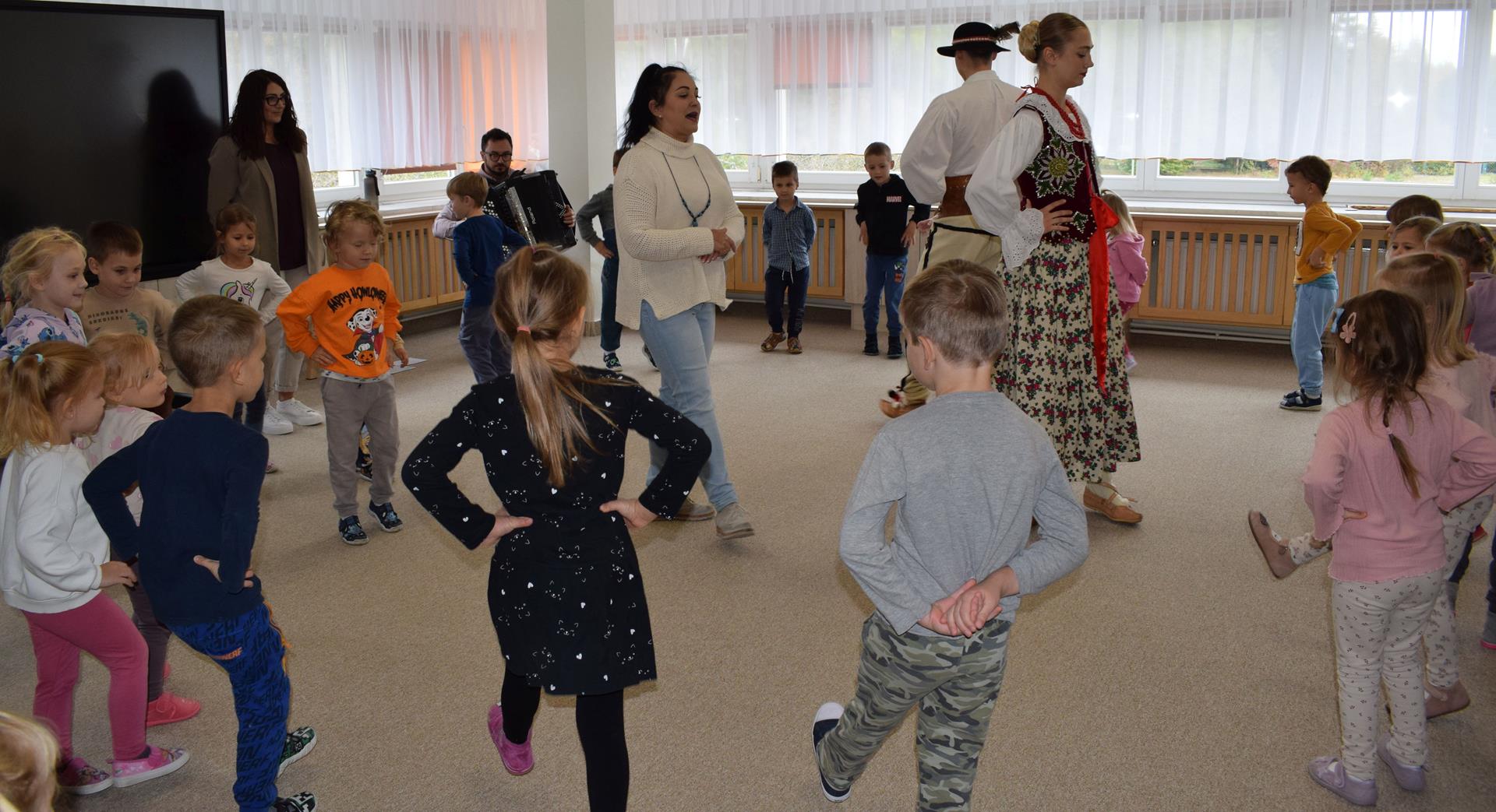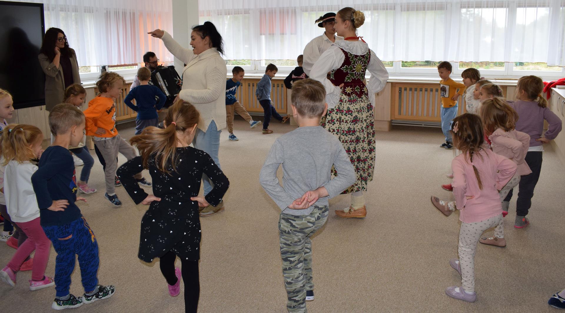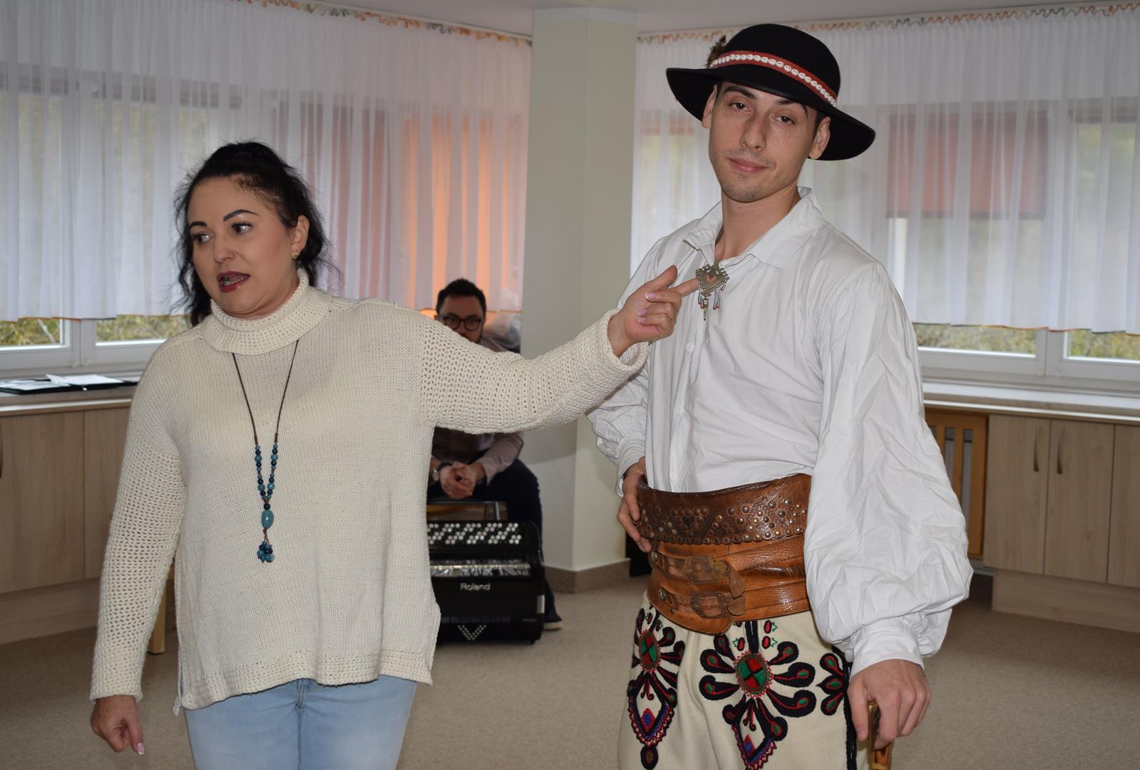 Pieśni i tańce ludowe są zawsze cennym źródłem wiedzy o minionych czasach. Tym razem wzięliśmy pod lupę Podhale i jego mieszkańców. Kierpce, gacie i ciupaska, pięknie zdobione gorsety i kwieciste spódnice widziane z bliska zapierały dech w piersiach. Za sprawą oryginalnego wielogłosowego śpiewu przenieśliśmy się na tatrzańskie hale, gdzie leniwie, pod czujnym okiem bacy pasły się owieczki. Poznaliśmy też legendę o najsłynniejszym zbójniku Janosiku, miłującym nade wszystko wolność i „równającym świat”. A wreszcie spróbowaliśmy swoich sił na parkiecie. Jak przystało na podhalańskie obyczaje, gdzie dźwięk zdaje się być elementem krajobrazu, decybele poszły mocno w górę.