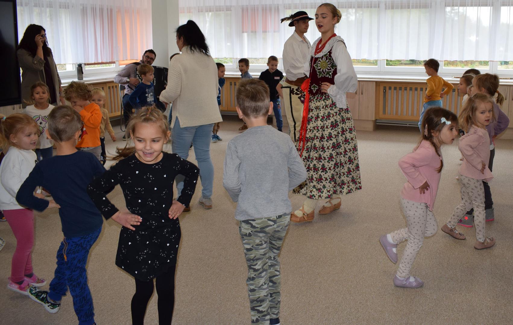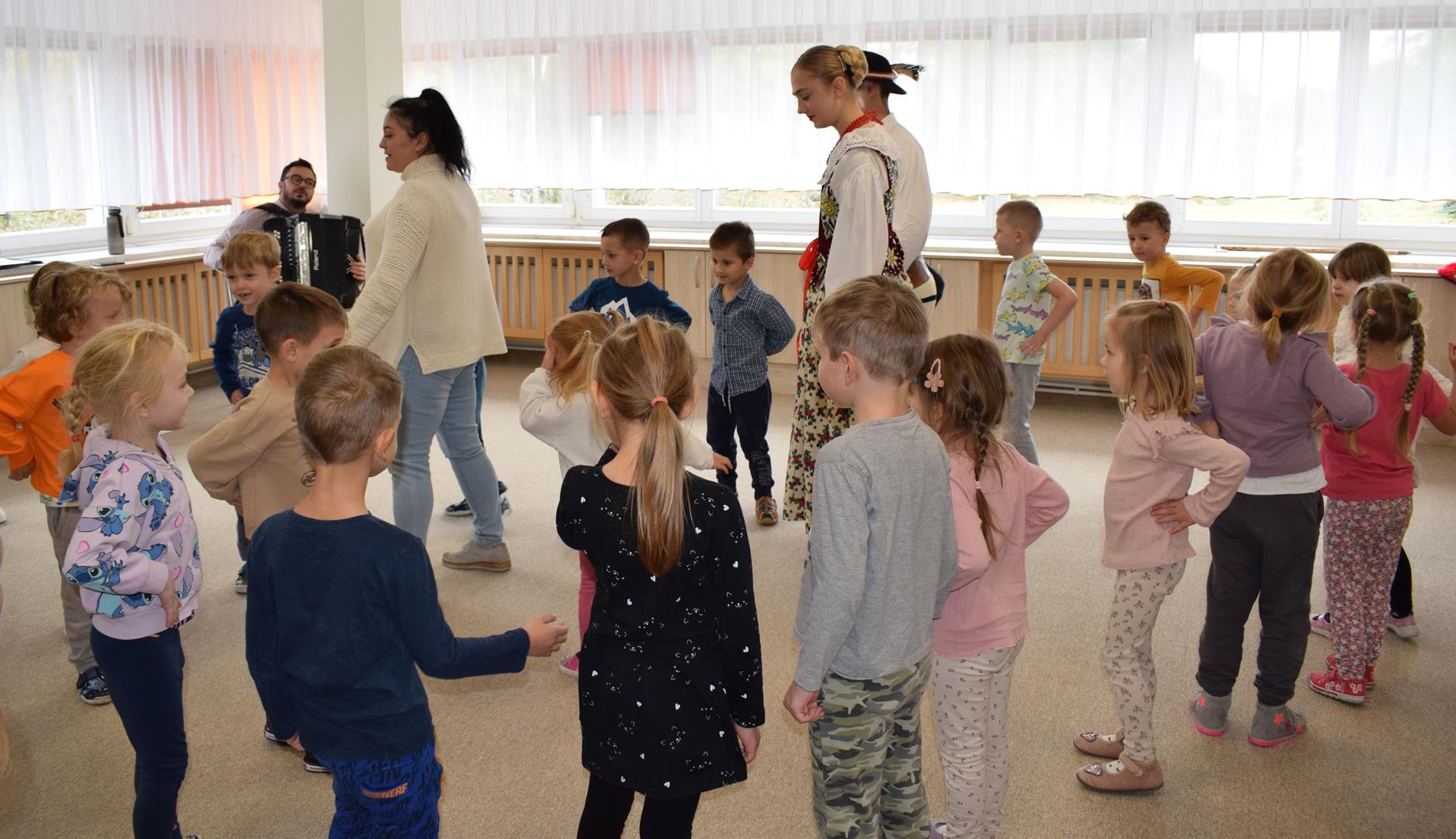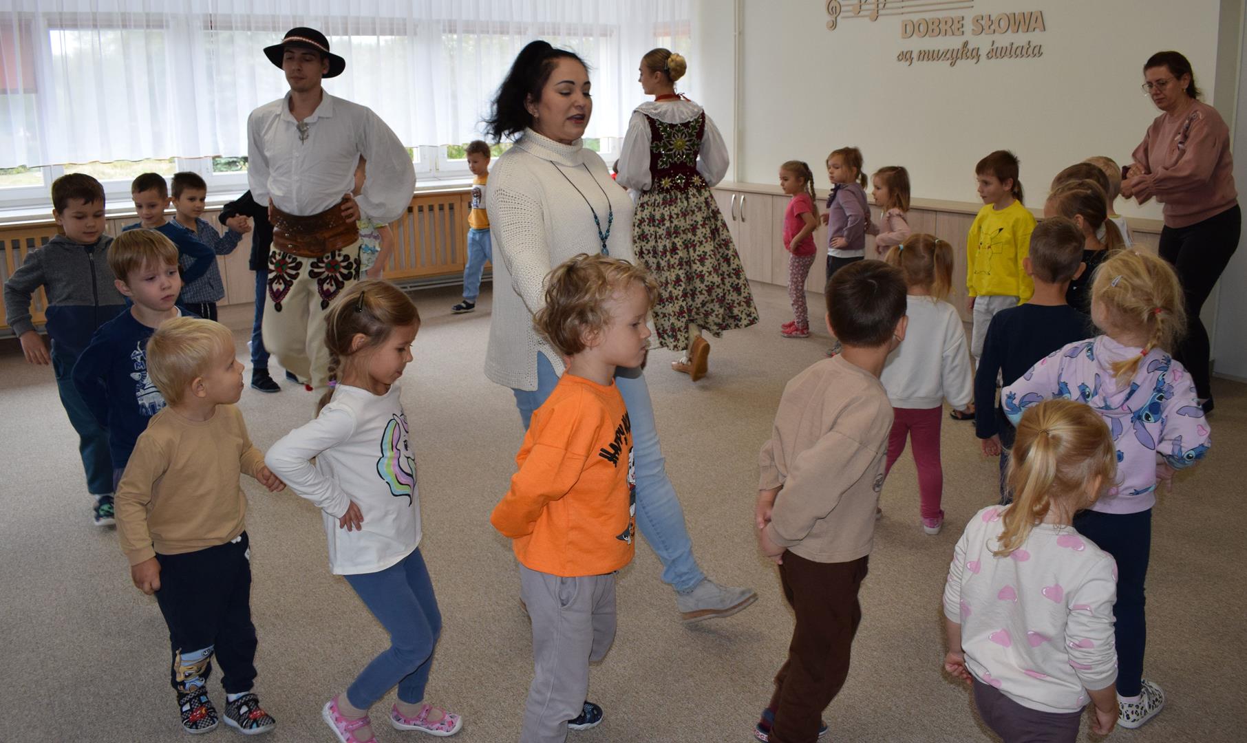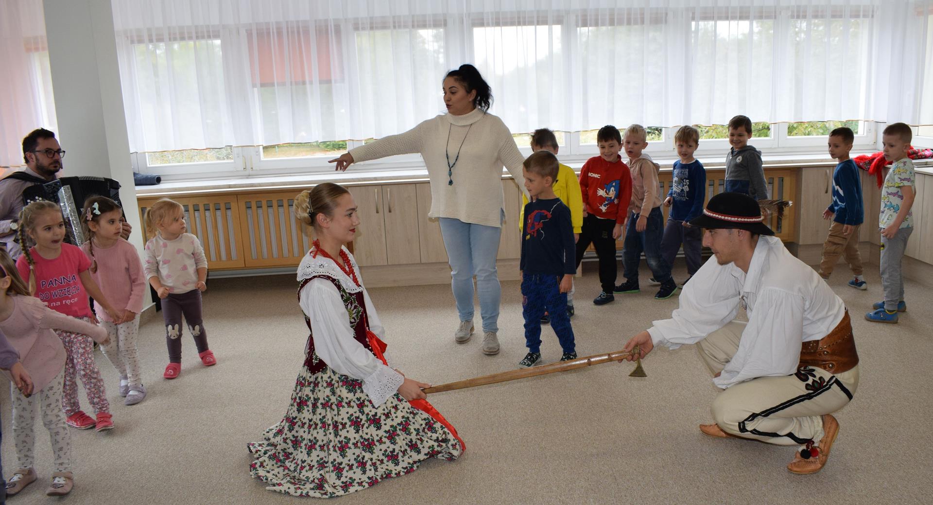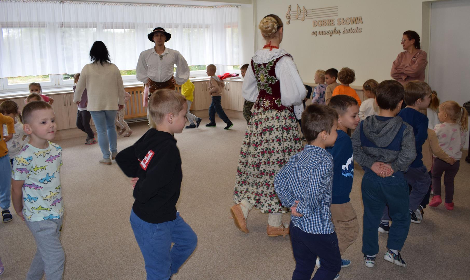 Pieśni i tańce ludowe są zawsze cennym źródłem wiedzy o minionych czasach. Tym razem wzięliśmy pod lupę Podhale i jego mieszkańców. Kierpce, gacie i ciupaska, pięknie zdobione gorsety i kwieciste spódnice widziane z bliska zapierały dech w piersiach. Za sprawą oryginalnego wielogłosowego śpiewu przenieśliśmy się na tatrzańskie hale, gdzie leniwie, pod czujnym okiem bacy pasły się owieczki. Poznaliśmy też legendę o najsłynniejszym zbójniku Janosiku, miłującym nade wszystko wolność i „równającym świat”. A wreszcie spróbowaliśmy swoich sił na parkiecie. Jak przystało na podhalańskie obyczaje, gdzie dźwięk zdaje się być elementem krajobrazu, decybele poszły mocno w górę.