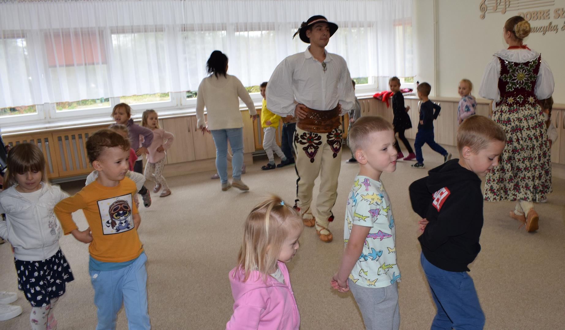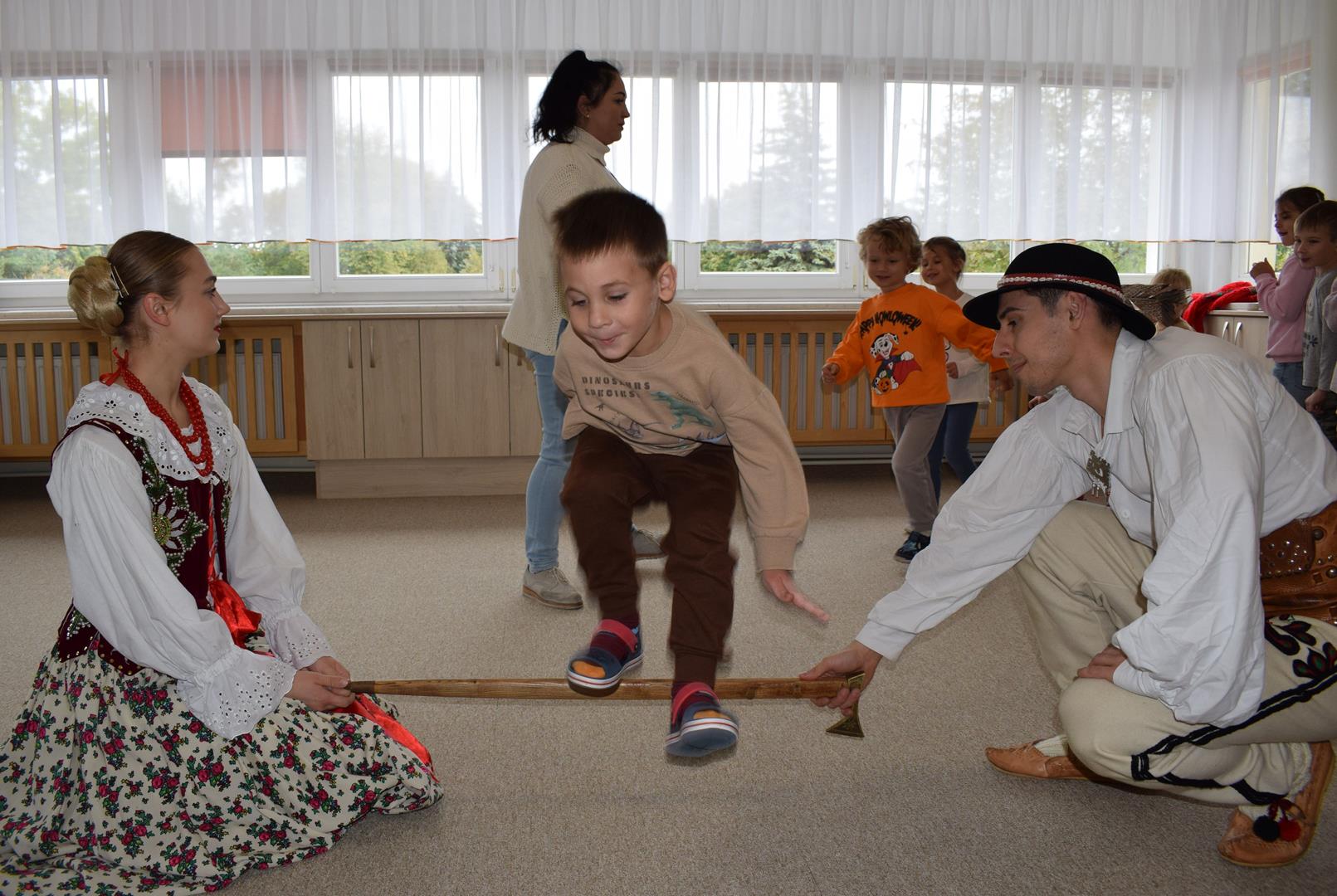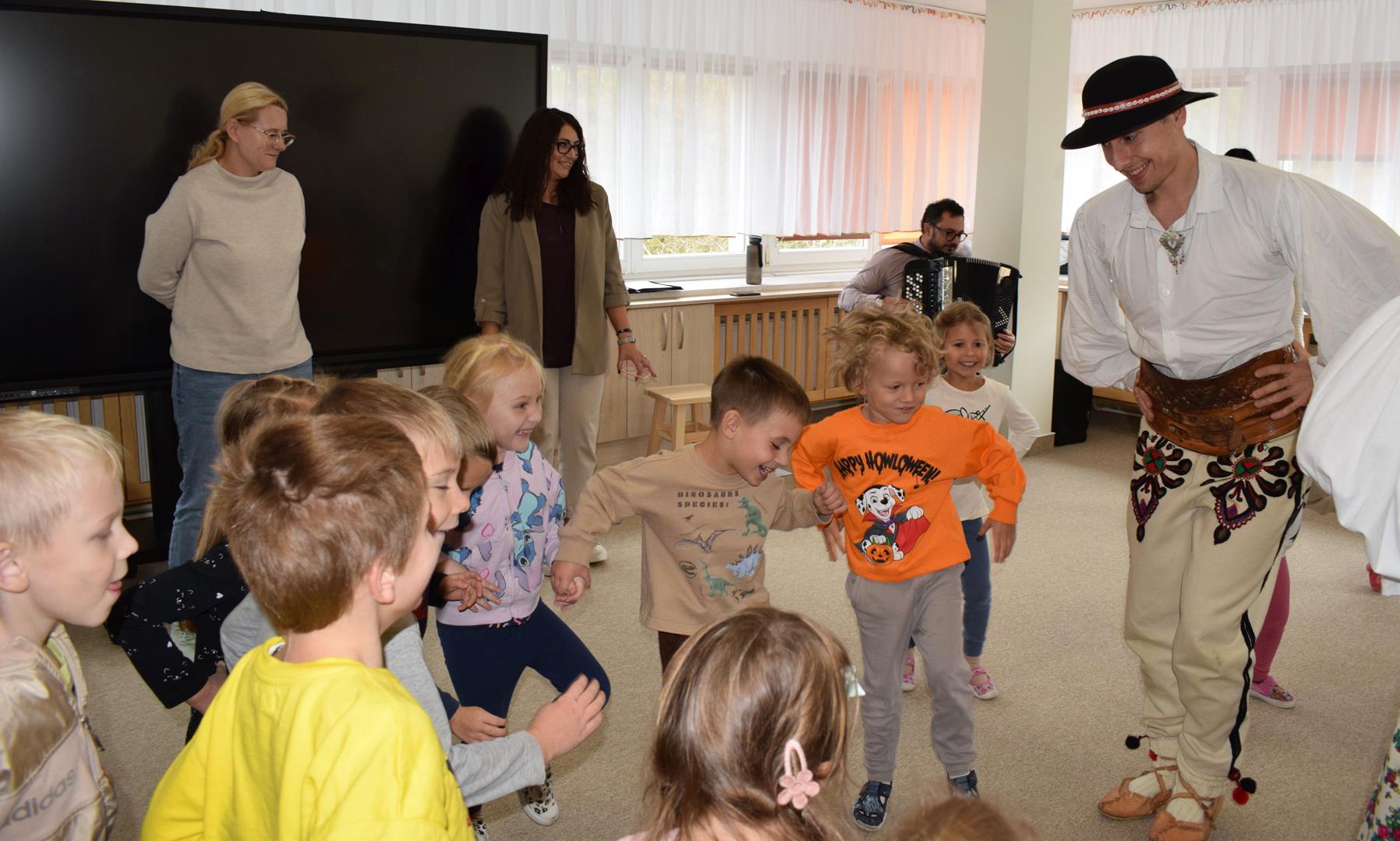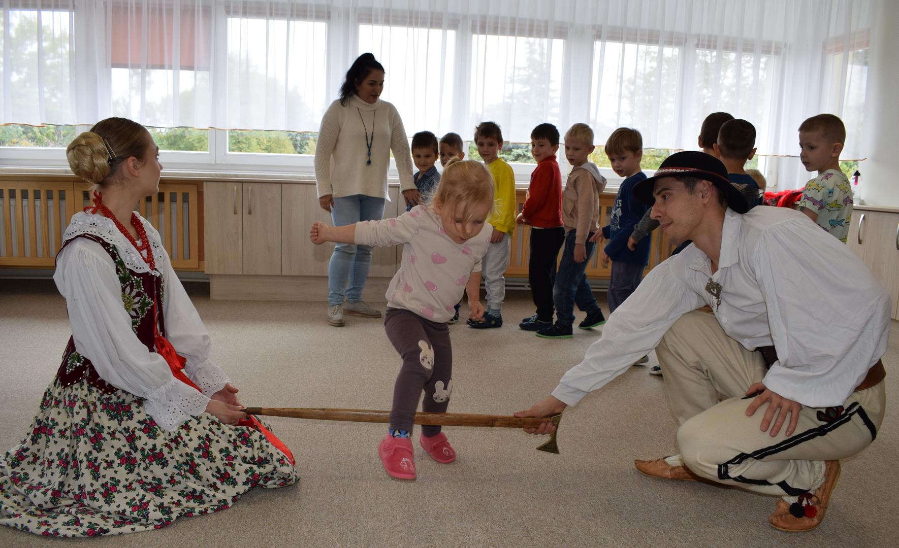 Pieśni i tańce ludowe są zawsze cennym źródłem wiedzy o minionych czasach. Tym razem wzięliśmy pod lupę Podhale i jego mieszkańców. Kierpce, gacie i ciupaska, pięknie zdobione gorsety i kwieciste spódnice widziane z bliska zapierały dech w piersiach. Za sprawą oryginalnego wielogłosowego śpiewu przenieśliśmy się na tatrzańskie hale, gdzie leniwie, pod czujnym okiem bacy pasły się owieczki. Poznaliśmy też legendę o najsłynniejszym zbójniku Janosiku, miłującym nade wszystko wolność i „równającym świat”. A wreszcie spróbowaliśmy swoich sił na parkiecie. Jak przystało na podhalańskie obyczaje, gdzie dźwięk zdaje się być elementem krajobrazu, decybele poszły mocno w górę.