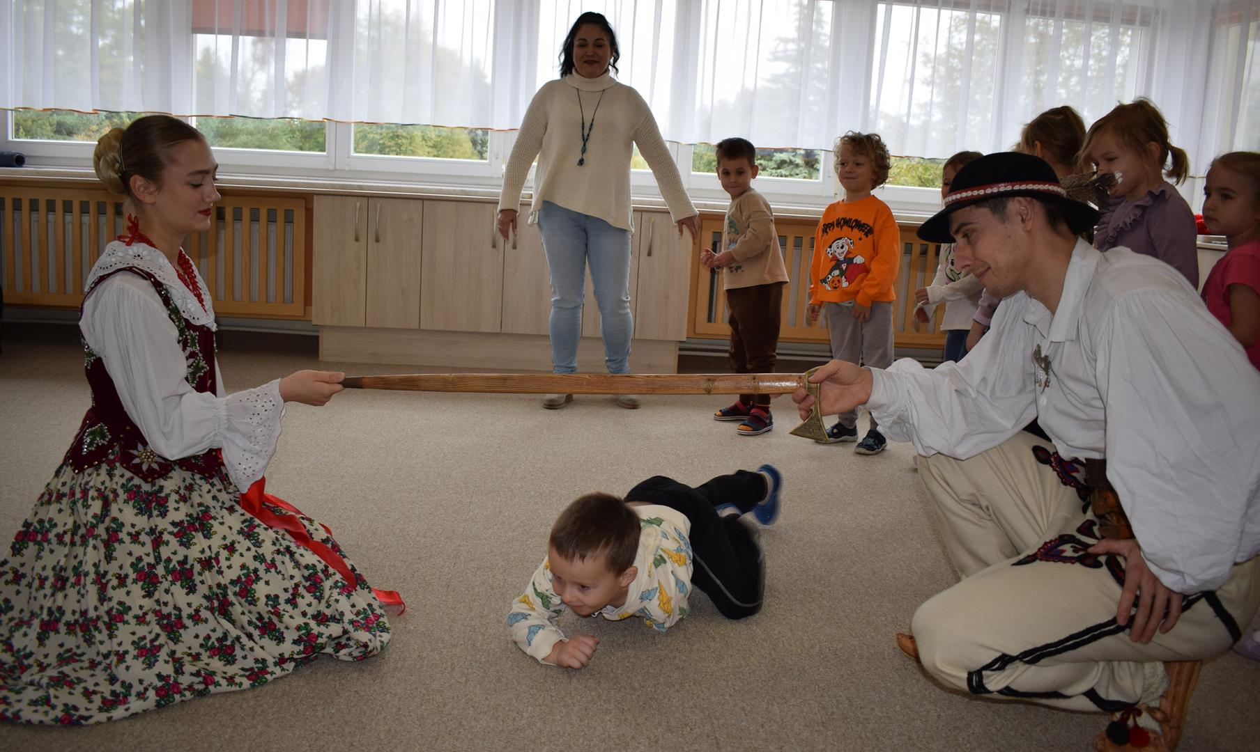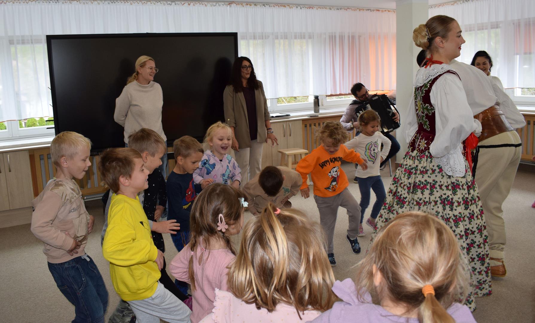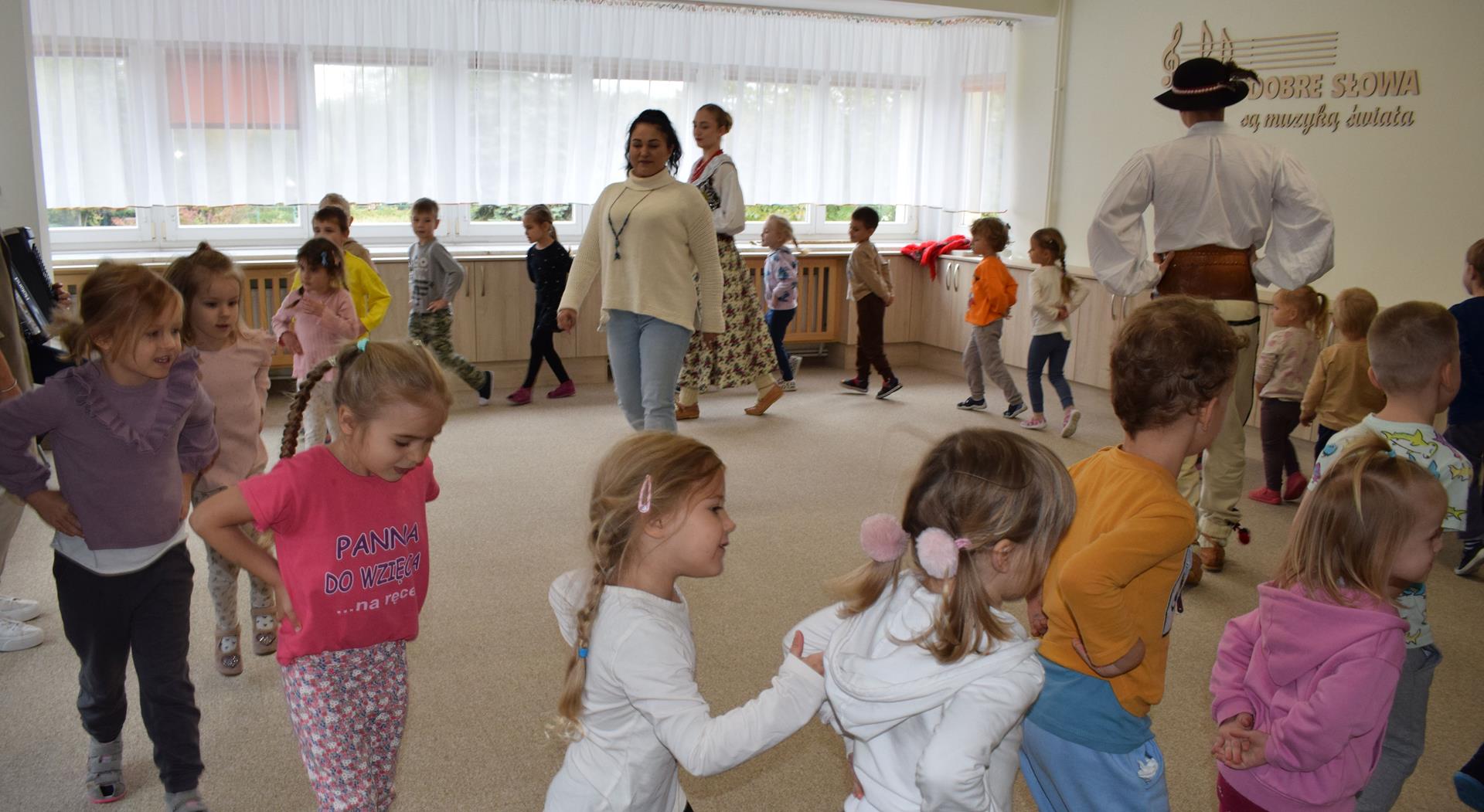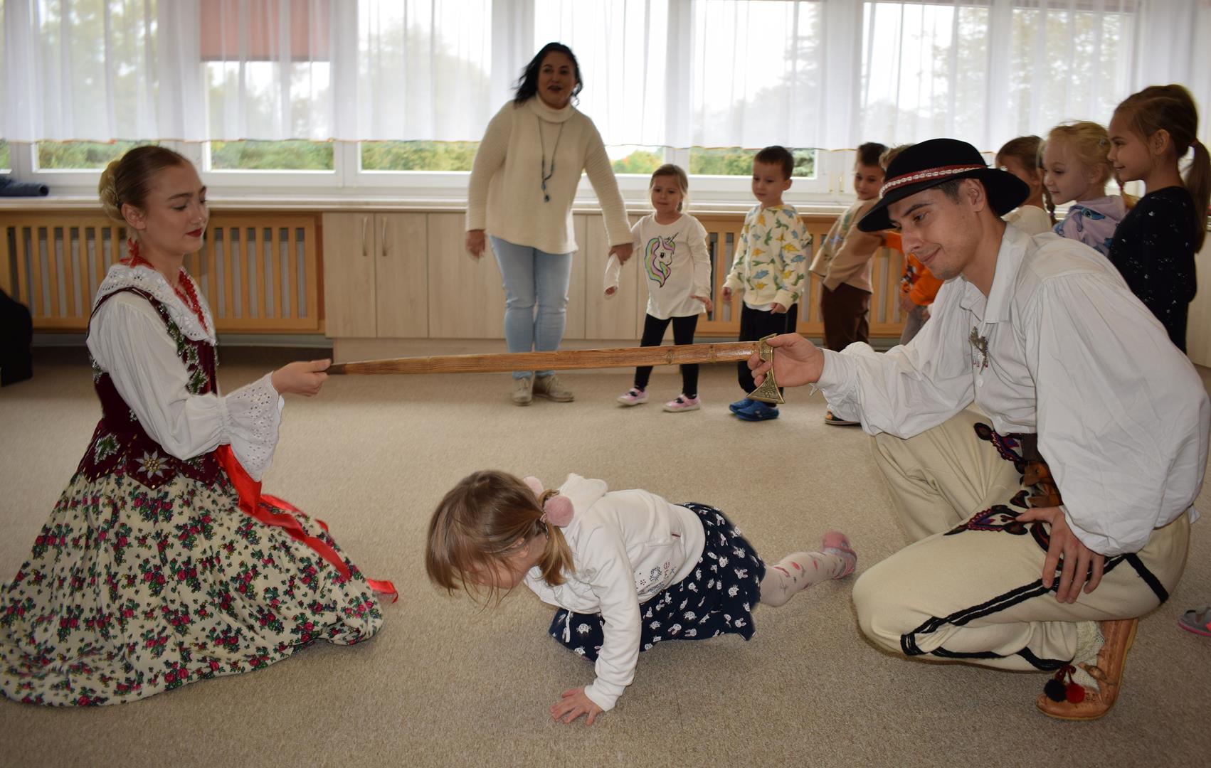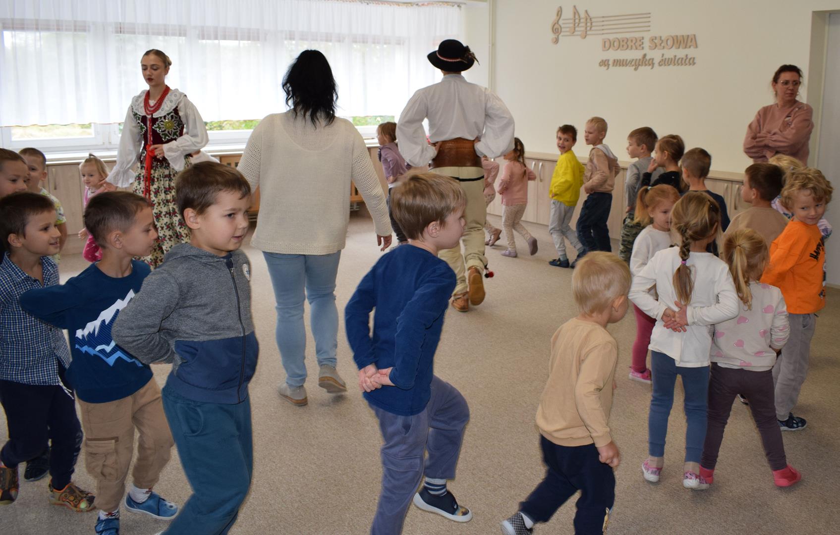 Pieśni i tańce ludowe są zawsze cennym źródłem wiedzy o minionych czasach. Tym razem wzięliśmy pod lupę Podhale i jego mieszkańców. Kierpce, gacie i ciupaska, pięknie zdobione gorsety i kwieciste spódnice widziane z bliska zapierały dech w piersiach. Za sprawą oryginalnego wielogłosowego śpiewu przenieśliśmy się na tatrzańskie hale, gdzie leniwie, pod czujnym okiem bacy pasły się owieczki. Poznaliśmy też legendę o najsłynniejszym zbójniku Janosiku, miłującym nade wszystko wolność i „równającym świat”. A wreszcie spróbowaliśmy swoich sił na parkiecie. Jak przystało na podhalańskie obyczaje, gdzie dźwięk zdaje się być elementem krajobrazu, decybele poszły mocno w górę.