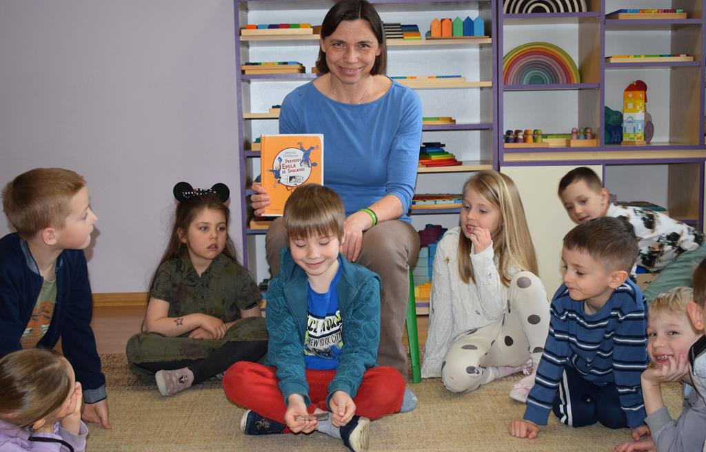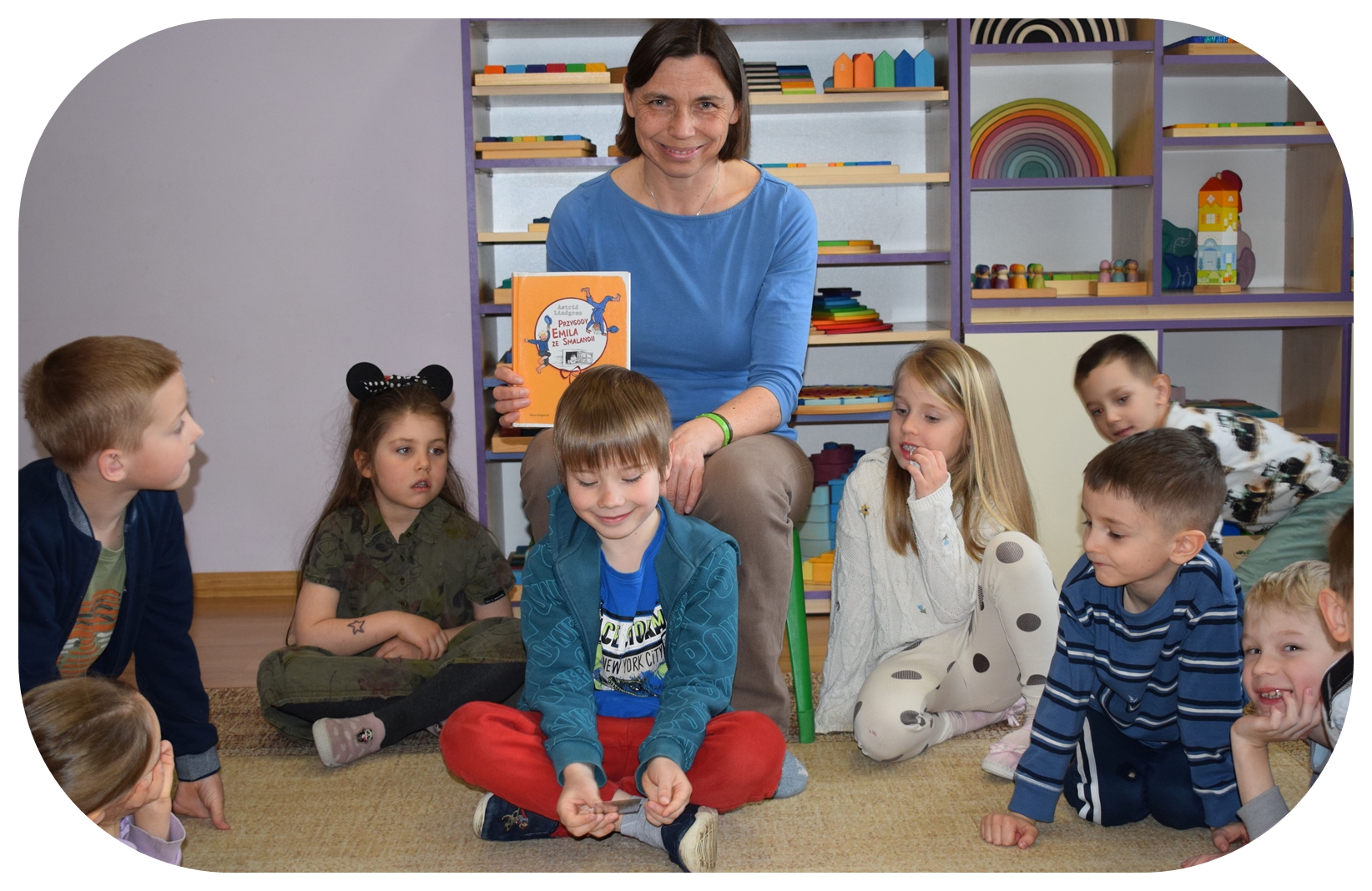 W ramach projektu „Rodzice czytają dzieciom”, odwiedziła nas mama Stasia, która przeniosła nas do szwedzkiej wioski Lönneberga. Przeżyliśmy spotkanie z najbardziej pomysłowym chłopcem w Szwecji, Emilem Svensson, który słynie z tego, że jego „psoty” zazwyczaj wynikają z dobrych chęci, a nie złośliwości. Dzieci poznały dwie zabawne przygody Emila, który próbował wyrwać Linie ząb przy pomocy konia, a potem pomalował Idę, swoją siostrzyczkę na niebiesko, myśląc, że czyni ją szlachetną. Oba pomysły zakończyły się wielkim zamieszaniem, a chłopiec trafił do stolarni, gdzie strugał kolejnego drewnianego ludzika. Mamie Stasia dziękujemy za wspólnie spędzony czas i dawkę humoru!