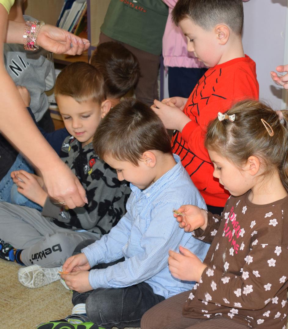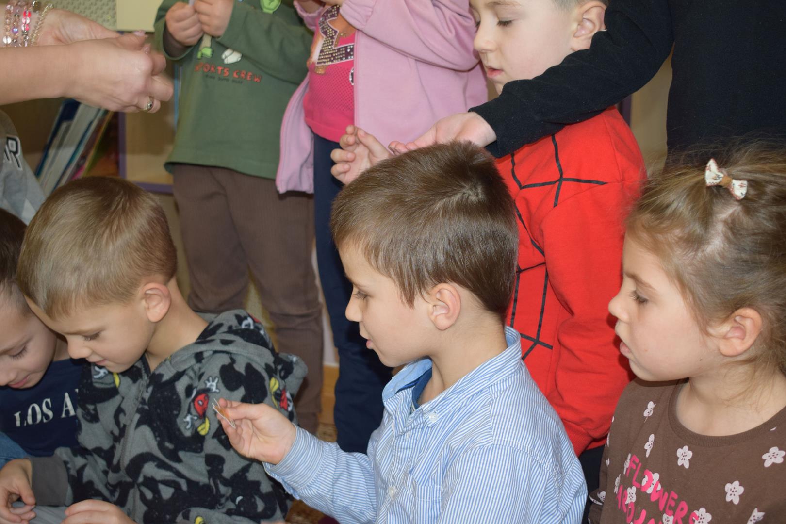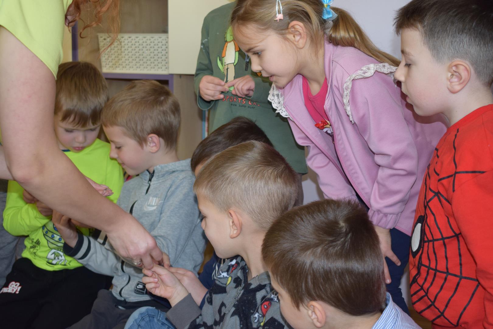 Spotkanie odbyło się w ramach współpracy z rodzicami dzieci naszego przedszkola. Gościliśmy Panią Aleksandrę – mamę Andrzeja. Pani Aleksandra jest z zawodu weterynarzem. Dzieci zdobyły wiedzę na temat: bezpiecznych zabaw ze zwierzętami, „czytanie” intencji zwierząt do nas, kiedy pies/kot chce się do nas przytulać, kiedy nasze pupile nie mają ochoty na zabawy i przytulanie, jak się zachować, gdy atakuje nas pies, czy można dotykać obce pieski lub kotki, czy można dotykać dzikie zwierzęta w parkach lub lasach. Dzieci omówiły również z Panią Aleksandrą jak należy kształtować pozytywną postawę wobec zwierząt. Zostały wyświetlone filmiki, na których były pokazane psy i koty chętne do zabawy oraz psy i koty wrogo nastawione do kontaktów z człowiekiem. Sówki brały aktywny udział w spotkaniu, zadawały pytania. Na koniec Pani Aleksandra podarowała każdemu dziecku naklejkę ze zwierzaczkiem. Bardzo dziękujemy za poświęcony czas i przeprowadzenie ciekawych zajęć w grupie Sówek:)
