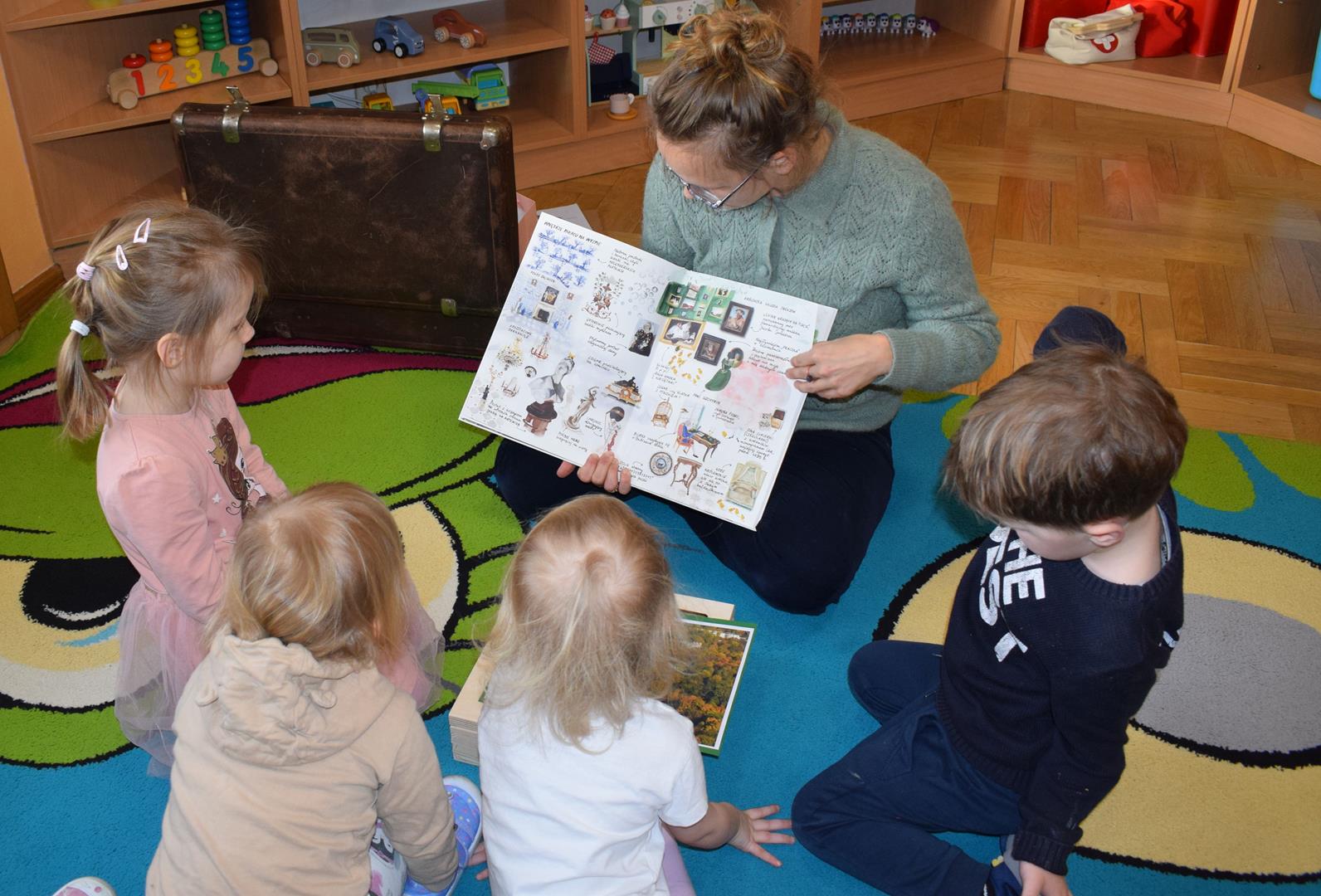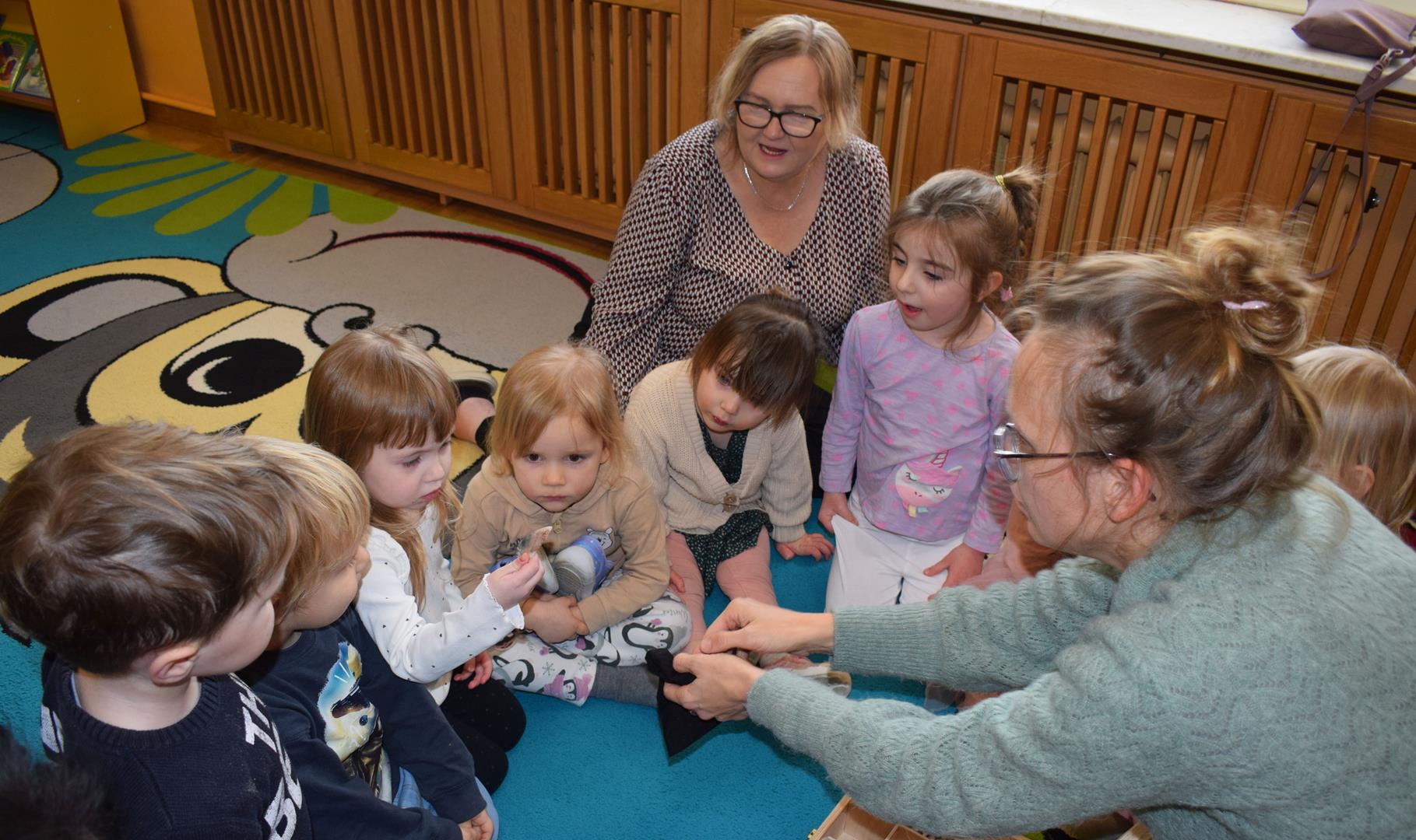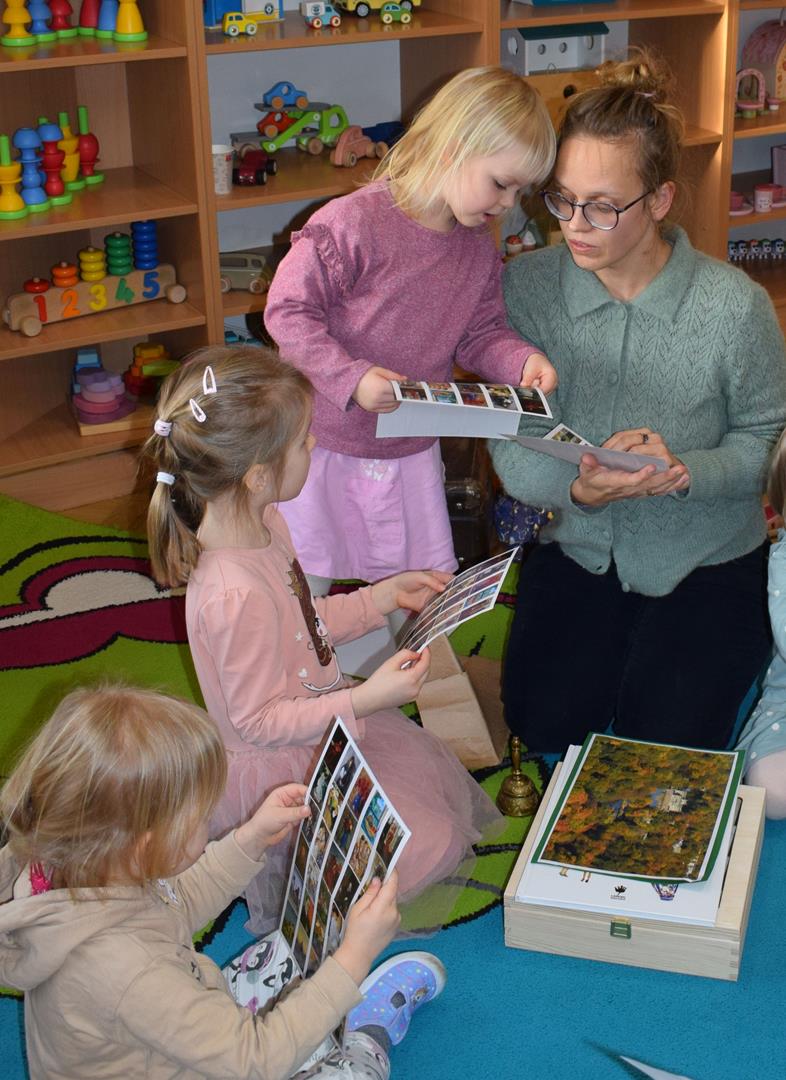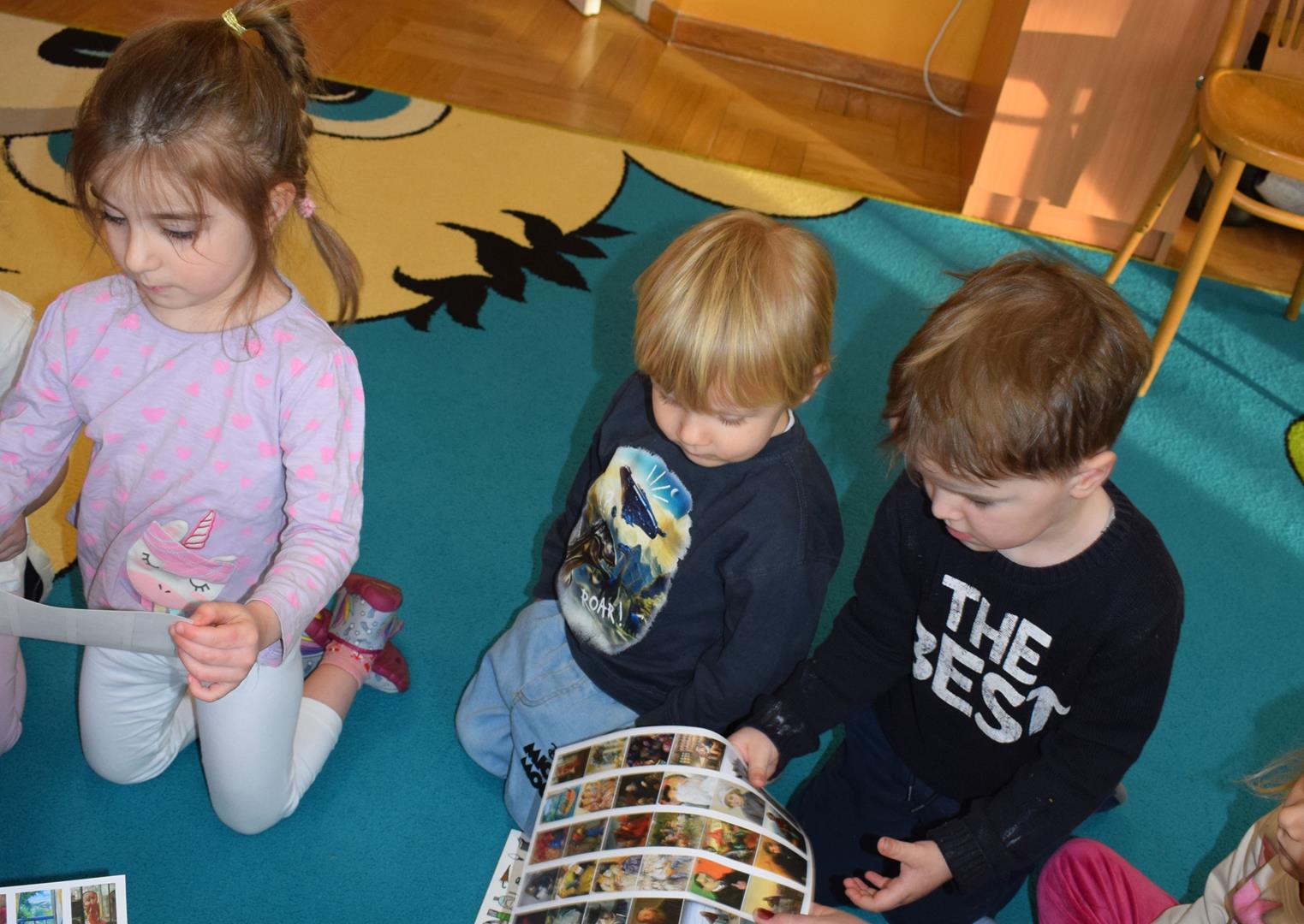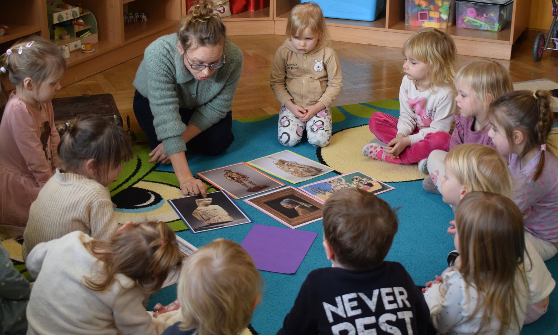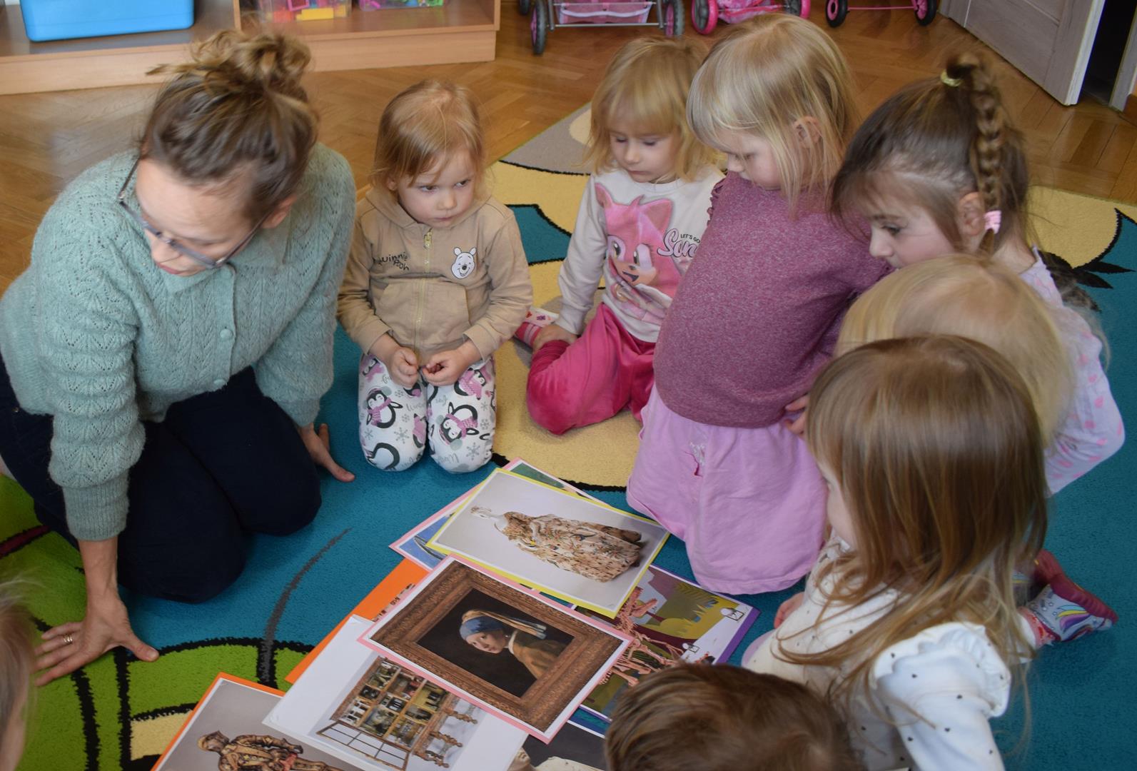 W grupie Delfinki gościliśmy Panią Agatę – mamę Jadzi, która w przystępny sposób opowiedziała dzieciom o muzeum. Pani Agata przyniosła ze sobą ogromną walizkę wypełnioną różnymi skarbami, które stopniowo pokazywała. Na początku wyjęła ilustracje różnych eksponatów muzealnych, skrywających swoją historię, które dzieci wnikliwie oglądały i próbowały nazywać. Z książki „Pieniek otwiera muzeum” autorstwa norweskiej pisarki i ilustratorki Åshild Kanstad Johnsen przedszkolaki poznały sympatycznego Pieńka, który uwielbia spacerować po lesie i kolekcjonować znalezione tam „skarby” – m.in. kamyki, szyszki, patyki i pióra. Gdy w jego leśnym domku zaczyna brakować miejsca na nowe znaleziska, za namową babci postanawia skatalogować swoje zbiory i otworzyć własne muzeum. Przedszkolaki zainspirowane Pieńkiem wspólnie stworzyły swoje muzeum w przyniesionej przez Panią Agatę skrzyni. Z tajemniczego worka losowały różne „skarby” i według ustalonego „klucza” je porządkowały. Jako, że Pani Agata zawodowo związana jest z Muzeum w Łazienkach, z wielkiej walizki wyłoniła się książka pt. „Muzeum zachwytów. Malarski przewodnik po Łazienkach Królewskich”. Ilustracje z przewodnika posłużyły do krótkiej zabawy w „bystre oczko”. Na koniec Pani Agata obdarowała dzieci zestawem naklejek do stworzenia własnego muzeum w domu, np. w zeszycie, na kartce… Bardzo dziękujemy za interesującą lekcję muzealną w przedszkolu oraz za zaproszenie do Łazienek Królewskich.
