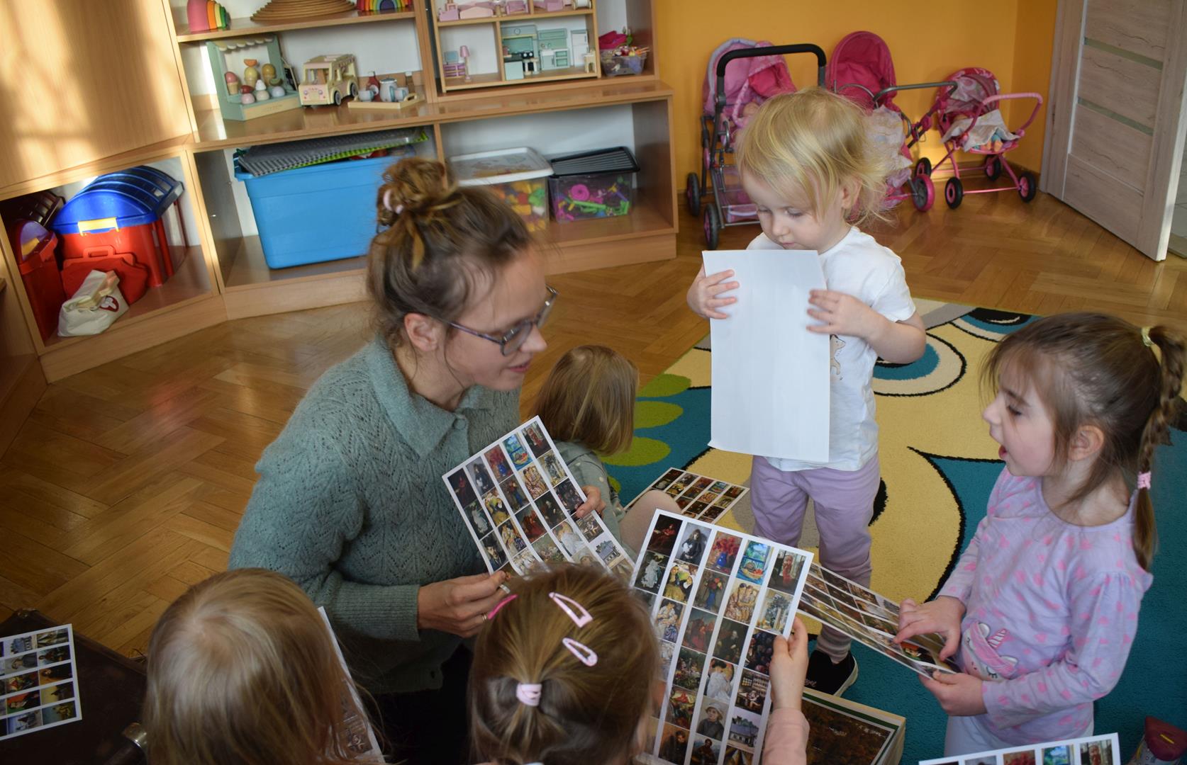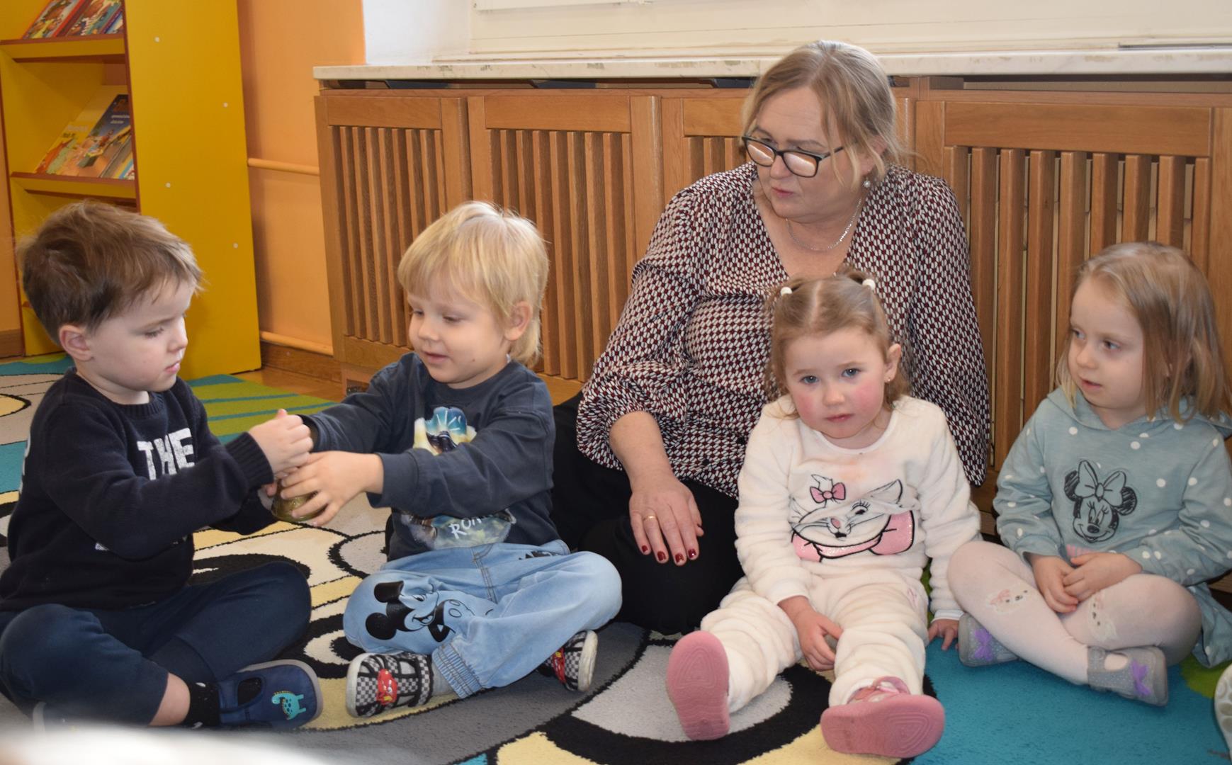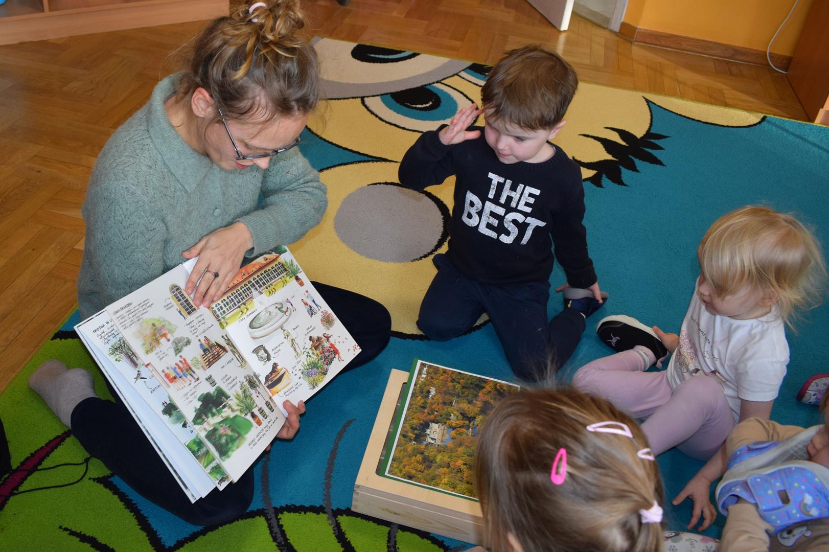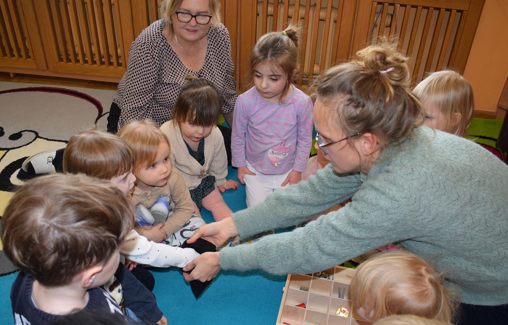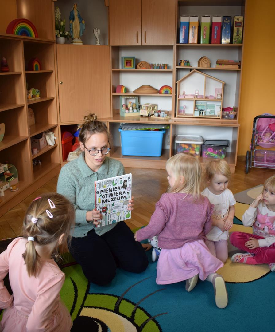 W grupie Delfinki gościliśmy Panią Agatę – mamę Jadzi, która w przystępny sposób opowiedziała dzieciom o muzeum. Pani Agata przyniosła ze sobą ogromną walizkę wypełnioną różnymi skarbami, które stopniowo pokazywała. Na początku wyjęła ilustracje różnych eksponatów muzealnych, skrywających swoją historię, które dzieci wnikliwie oglądały i próbowały nazywać. Z książki „Pieniek otwiera muzeum” autorstwa norweskiej pisarki i ilustratorki Åshild Kanstad Johnsen przedszkolaki poznały sympatycznego Pieńka, który uwielbia spacerować po lesie i kolekcjonować znalezione tam „skarby” – m.in. kamyki, szyszki, patyki i pióra. Gdy w jego leśnym domku zaczyna brakować miejsca na nowe znaleziska, za namową babci postanawia skatalogować swoje zbiory i otworzyć własne muzeum. Przedszkolaki zainspirowane Pieńkiem wspólnie stworzyły swoje muzeum w przyniesionej przez Panią Agatę skrzyni. Z tajemniczego worka losowały różne „skarby” i według ustalonego „klucza” je porządkowały. Jako, że Pani Agata zawodowo związana jest z Muzeum w Łazienkach, z wielkiej walizki wyłoniła się książka pt. „Muzeum zachwytów. Malarski przewodnik po Łazienkach Królewskich”. Ilustracje z przewodnika posłużyły do krótkiej zabawy w „bystre oczko”. Na koniec Pani Agata obdarowała dzieci zestawem naklejek do stworzenia własnego muzeum w domu, np. w zeszycie, na kartce… Bardzo dziękujemy za interesującą lekcję muzealną w przedszkolu oraz za zaproszenie do Łazienek Królewskich.