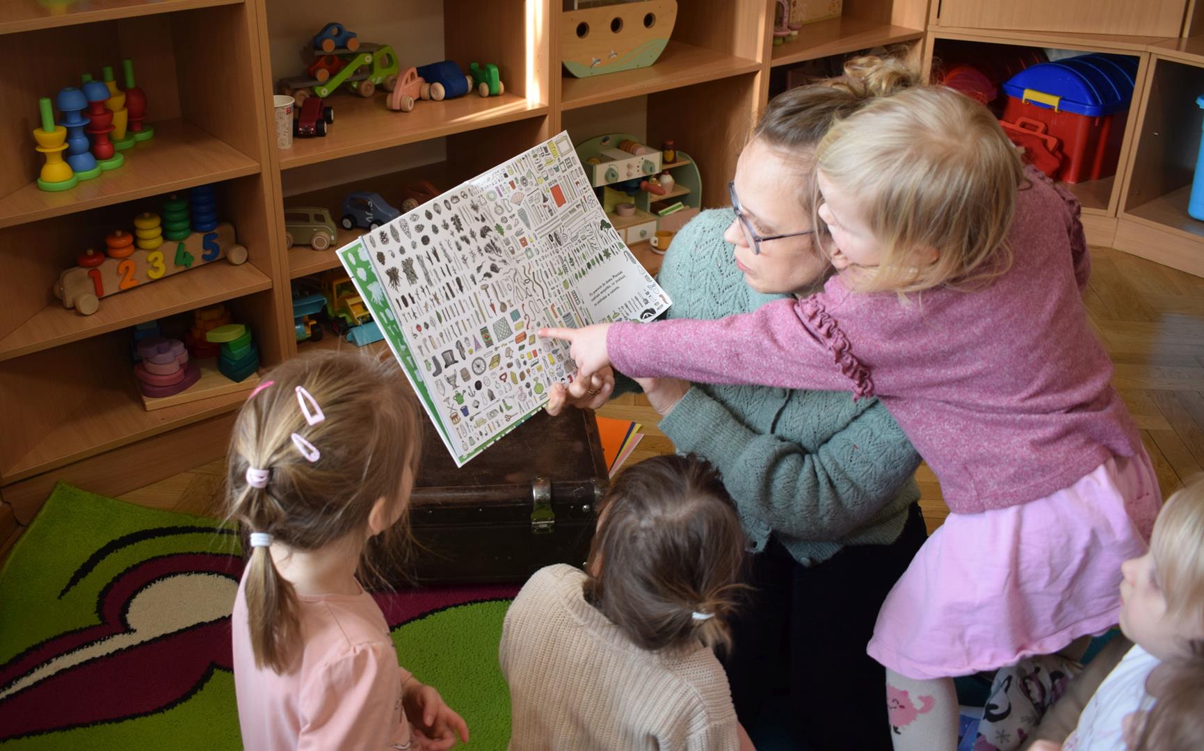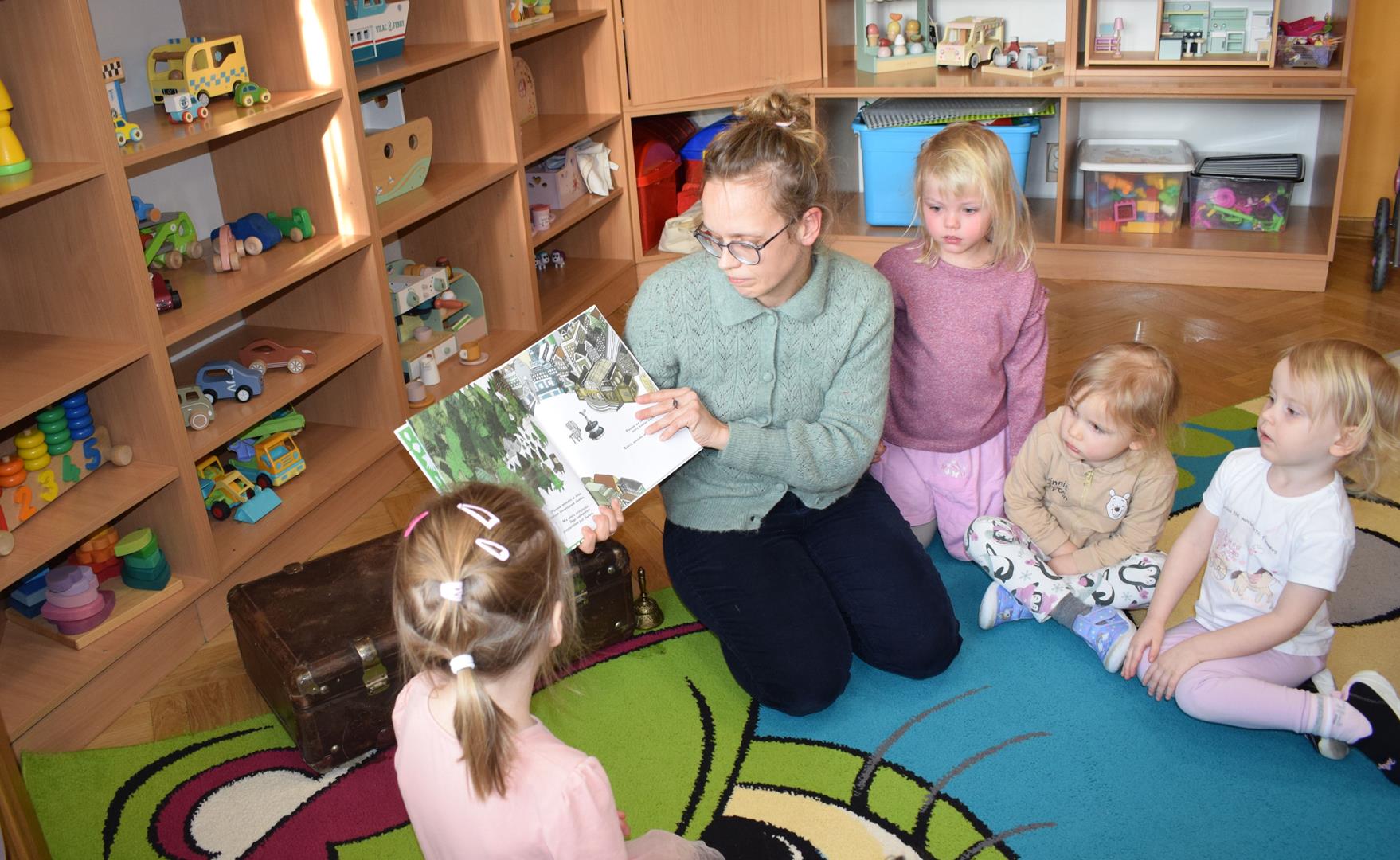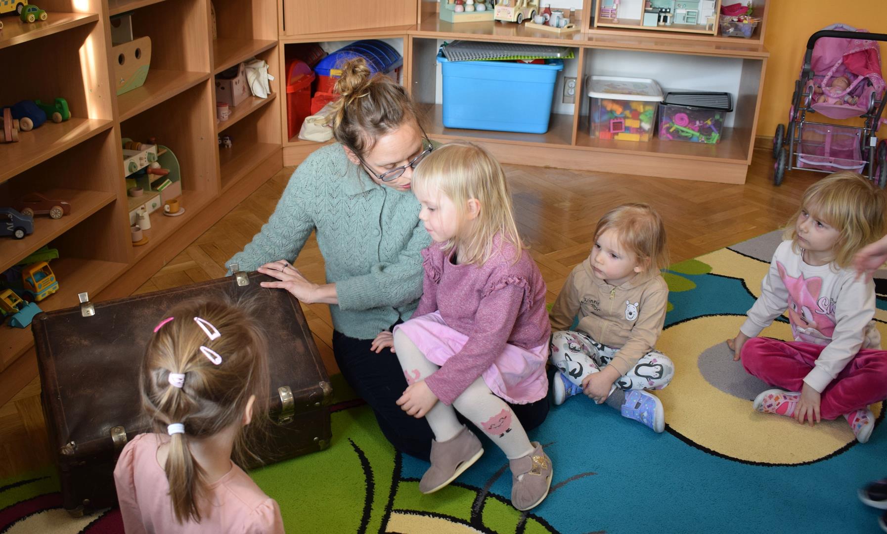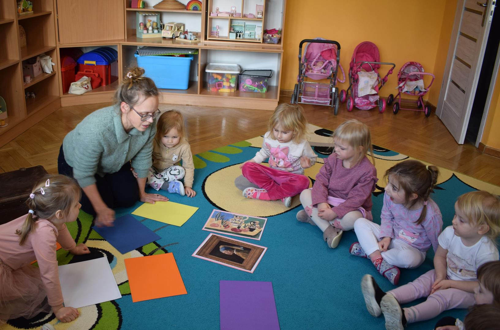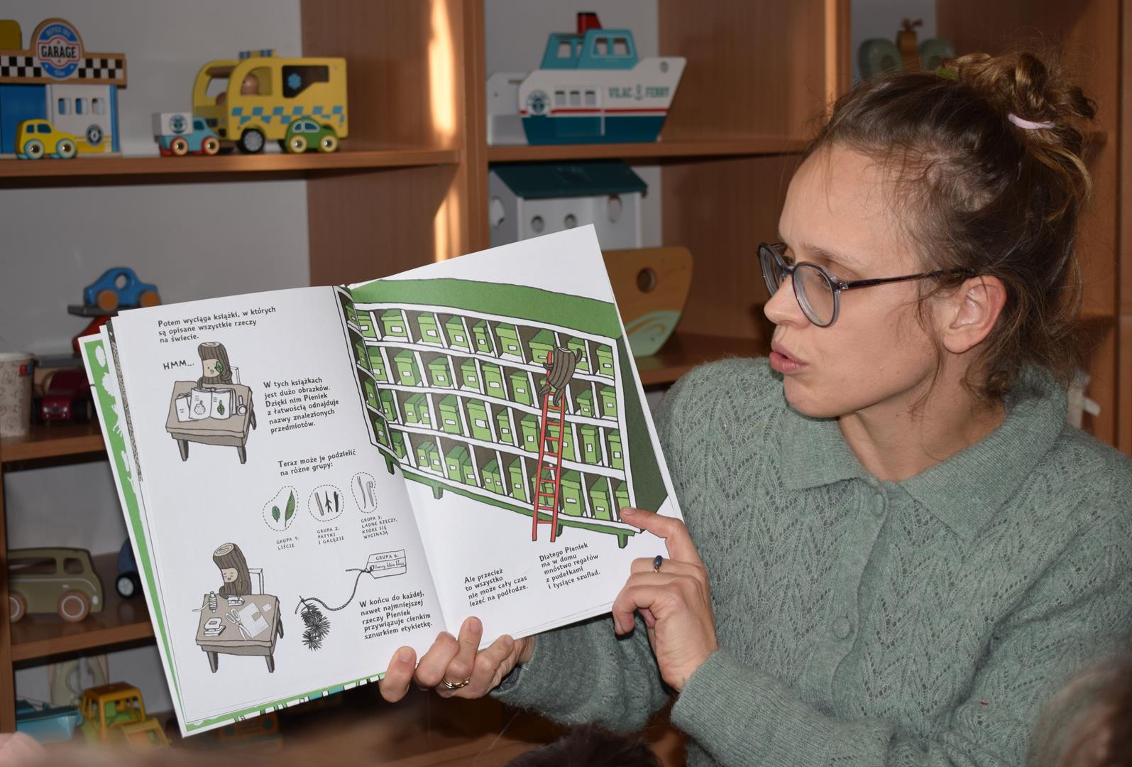 W grupie Delfinki gościliśmy Panią Agatę – mamę Jadzi, która w przystępny sposób opowiedziała dzieciom o muzeum. Pani Agata przyniosła ze sobą ogromną walizkę wypełnioną różnymi skarbami, które stopniowo pokazywała. Na początku wyjęła ilustracje różnych eksponatów muzealnych, skrywających swoją historię, które dzieci wnikliwie oglądały i próbowały nazywać. Z książki „Pieniek otwiera muzeum” autorstwa norweskiej pisarki i ilustratorki Åshild Kanstad Johnsen przedszkolaki poznały sympatycznego Pieńka, który uwielbia spacerować po lesie i kolekcjonować znalezione tam „skarby” – m.in. kamyki, szyszki, patyki i pióra. Gdy w jego leśnym domku zaczyna brakować miejsca na nowe znaleziska, za namową babci postanawia skatalogować swoje zbiory i otworzyć własne muzeum. Przedszkolaki zainspirowane Pieńkiem wspólnie stworzyły swoje muzeum w przyniesionej przez Panią Agatę skrzyni. Z tajemniczego worka losowały różne „skarby” i według ustalonego „klucza” je porządkowały. Jako, że Pani Agata zawodowo związana jest z Muzeum w Łazienkach, z wielkiej walizki wyłoniła się książka pt. „Muzeum zachwytów. Malarski przewodnik po Łazienkach Królewskich”. Ilustracje z przewodnika posłużyły do krótkiej zabawy w „bystre oczko”. Na koniec Pani Agata obdarowała dzieci zestawem naklejek do stworzenia własnego muzeum w domu, np. w zeszycie, na kartce… Bardzo dziękujemy za interesującą lekcję muzealną w przedszkolu oraz za zaproszenie do Łazienek Królewskich.