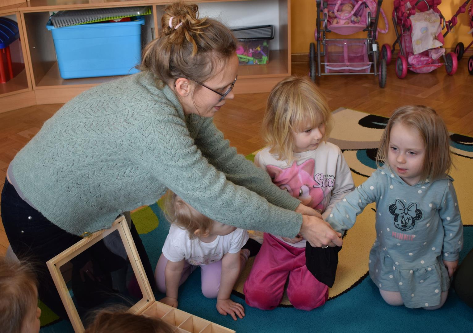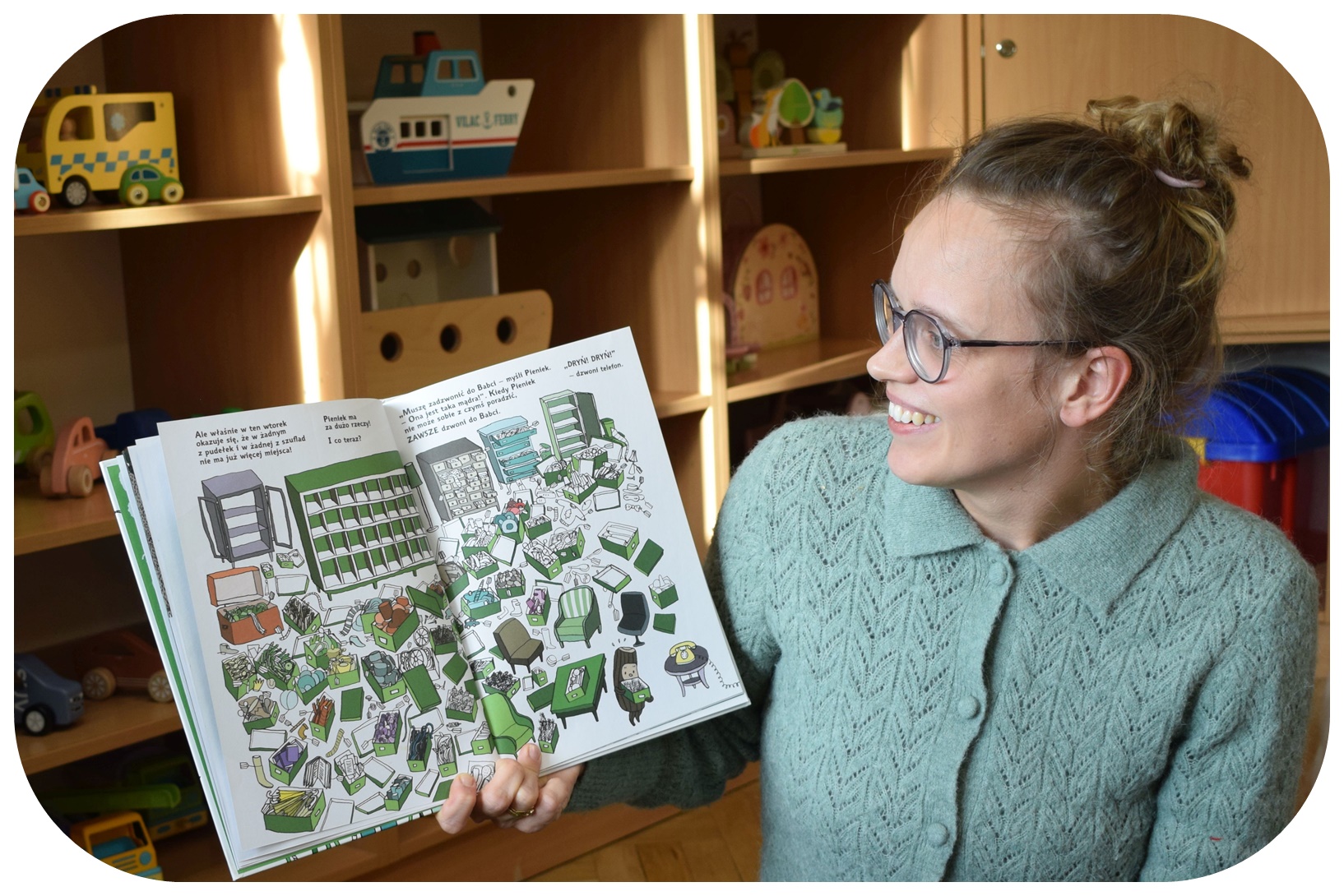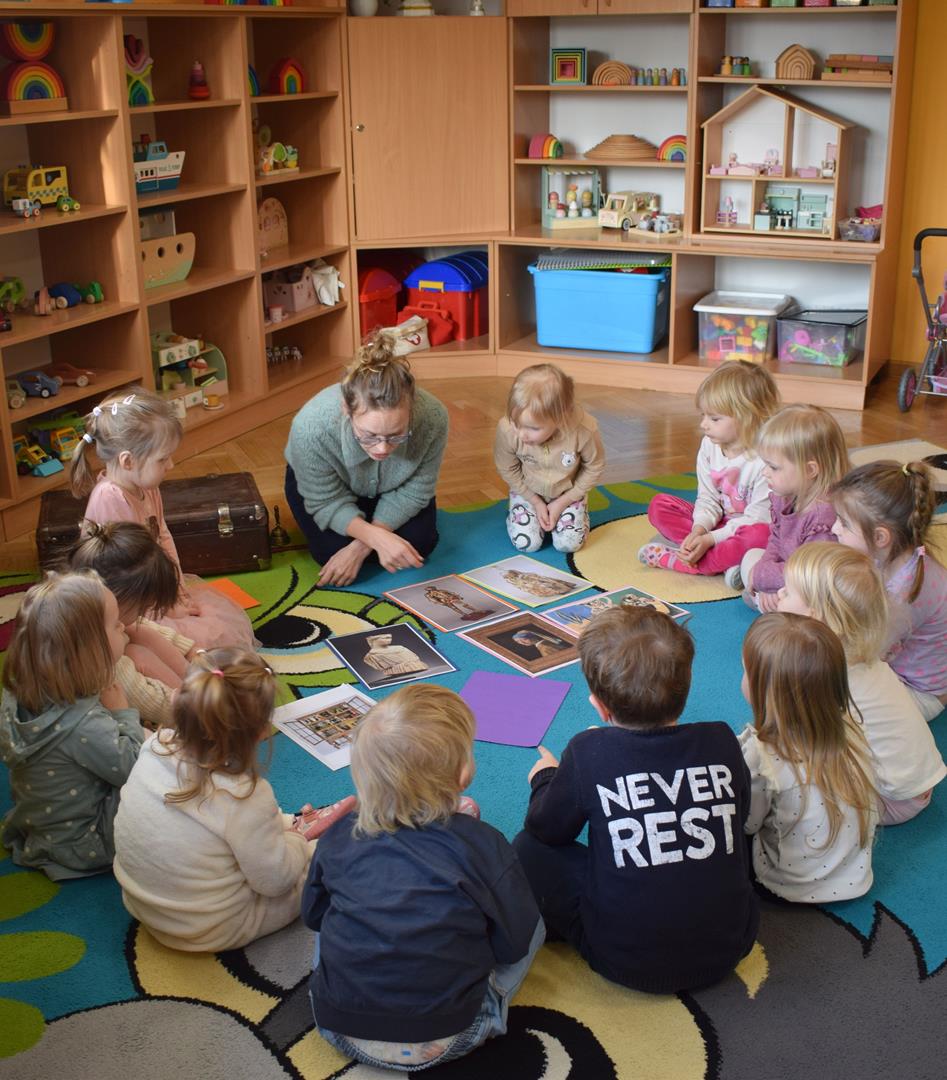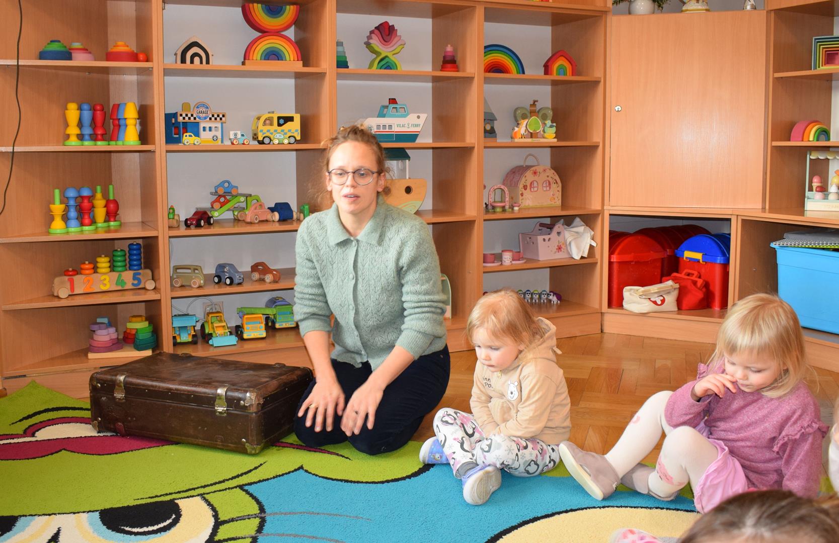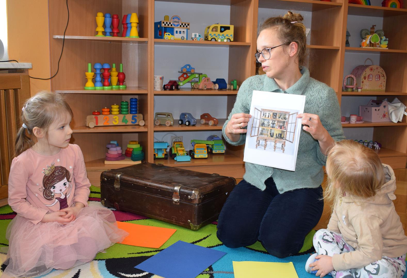 W grupie Delfinki gościliśmy Panią Agatę – mamę Jadzi, która w przystępny sposób opowiedziała dzieciom o muzeum. Pani Agata przyniosła ze sobą ogromną walizkę wypełnioną różnymi skarbami, które stopniowo pokazywała. Na początku wyjęła ilustracje różnych eksponatów muzealnych, skrywających swoją historię, które dzieci wnikliwie oglądały i próbowały nazywać. Z książki „Pieniek otwiera muzeum” autorstwa norweskiej pisarki i ilustratorki Åshild Kanstad Johnsen przedszkolaki poznały sympatycznego Pieńka, który uwielbia spacerować po lesie i kolekcjonować znalezione tam „skarby” – m.in. kamyki, szyszki, patyki i pióra. Gdy w jego leśnym domku zaczyna brakować miejsca na nowe znaleziska, za namową babci postanawia skatalogować swoje zbiory i otworzyć własne muzeum. Przedszkolaki zainspirowane Pieńkiem wspólnie stworzyły swoje muzeum w przyniesionej przez Panią Agatę skrzyni. Z tajemniczego worka losowały różne „skarby” i według ustalonego „klucza” je porządkowały. Jako, że Pani Agata zawodowo związana jest z Muzeum w Łazienkach, z wielkiej walizki wyłoniła się książka pt. „Muzeum zachwytów. Malarski przewodnik po Łazienkach Królewskich”. Ilustracje z przewodnika posłużyły do krótkiej zabawy w „bystre oczko”. Na koniec Pani Agata obdarowała dzieci zestawem naklejek do stworzenia własnego muzeum w domu, np. w zeszycie, na kartce… Bardzo dziękujemy za interesującą lekcję muzealną w przedszkolu oraz za zaproszenie do Łazienek Królewskich.