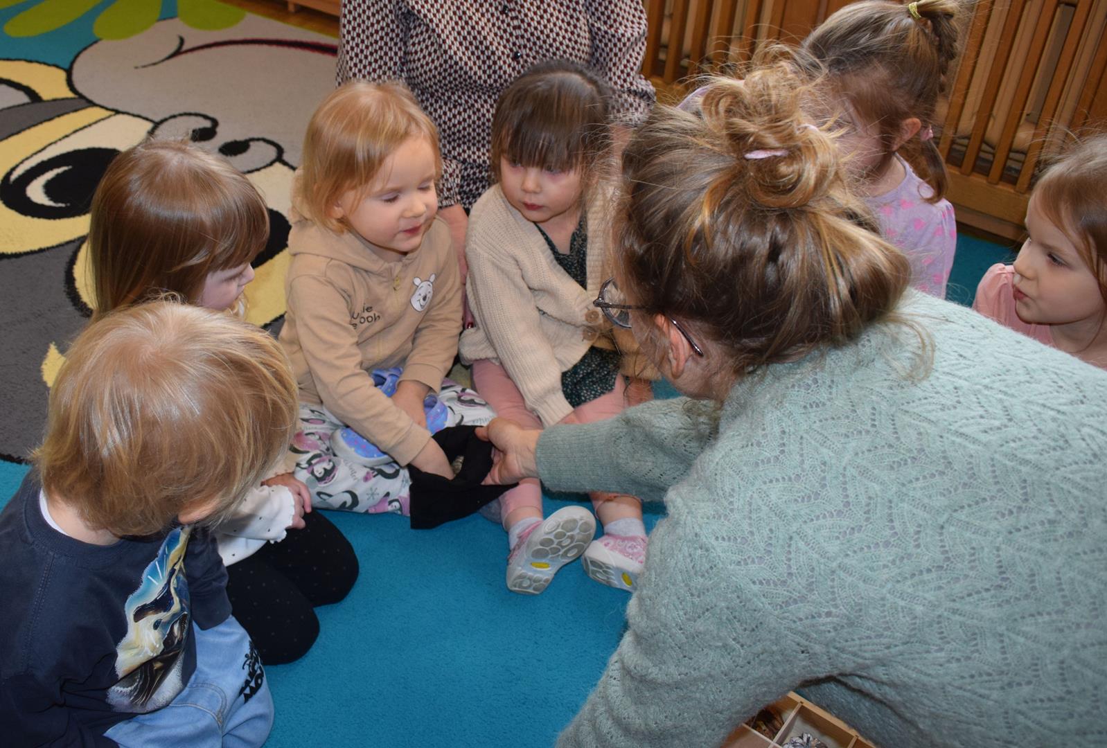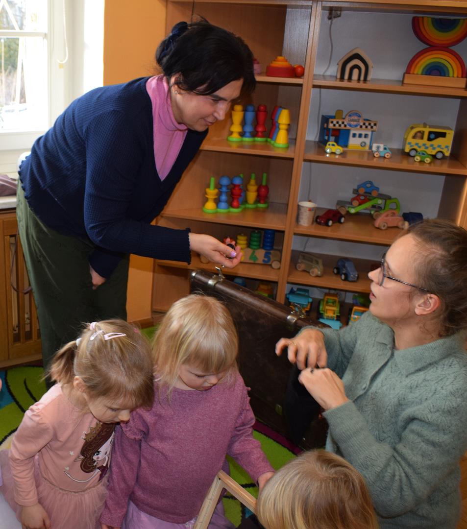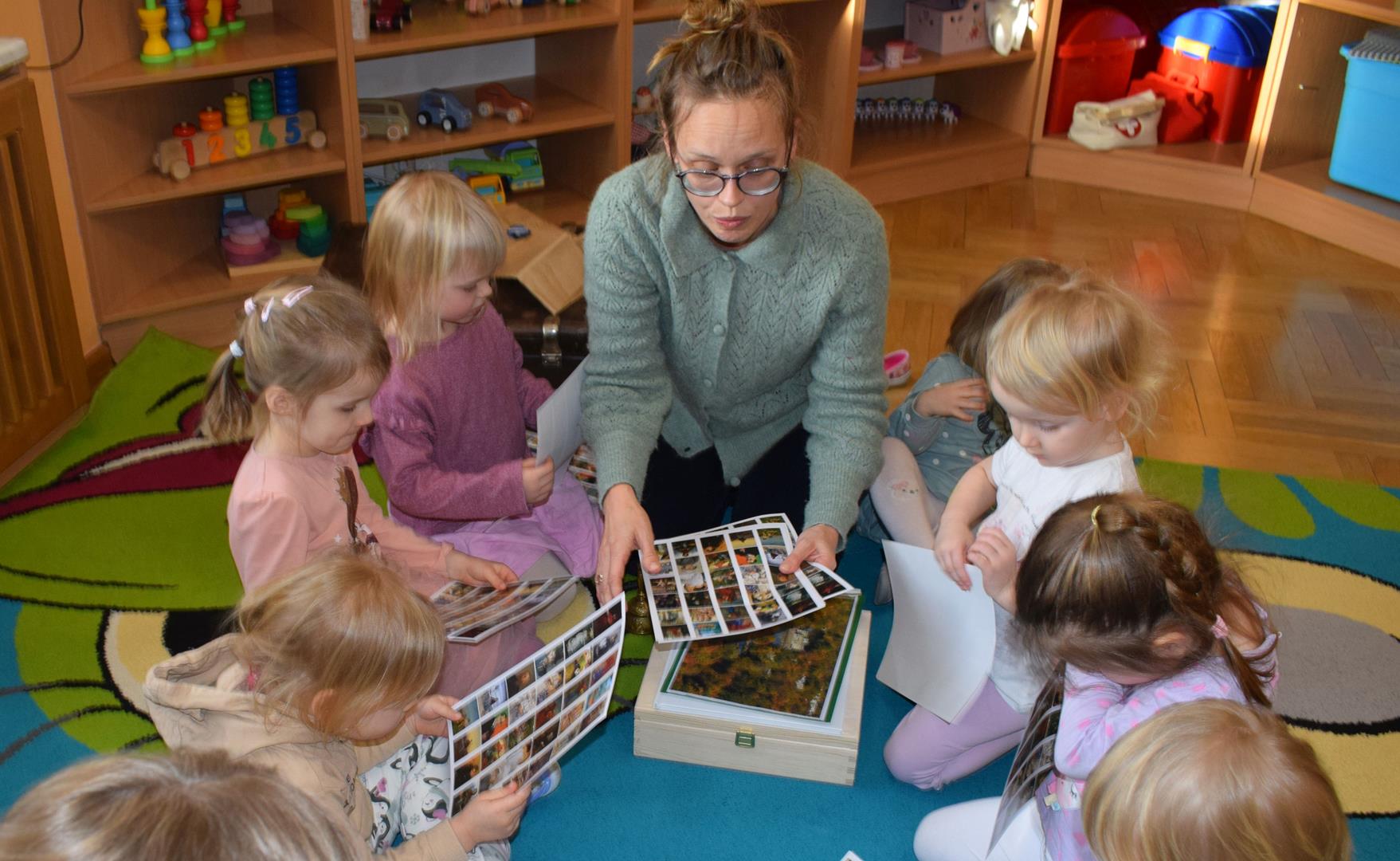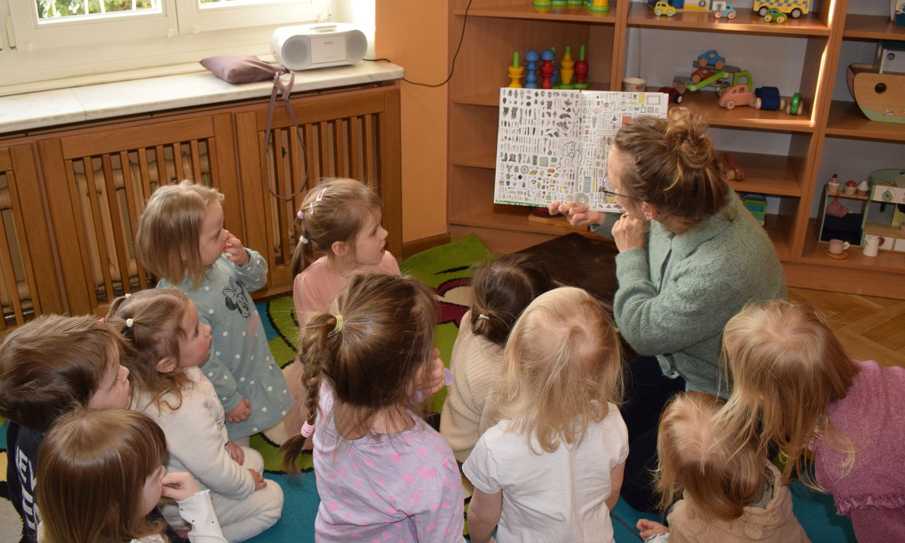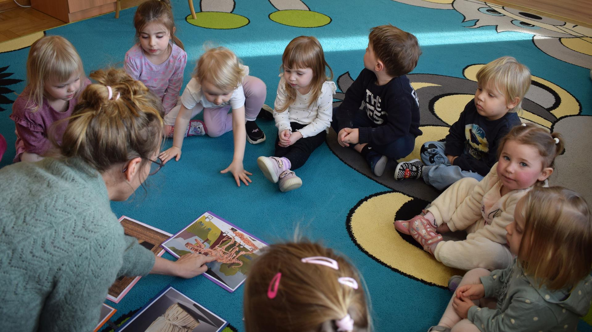 W grupie Delfinki gościliśmy Panią Agatę – mamę Jadzi, która w przystępny sposób opowiedziała dzieciom o muzeum. Pani Agata przyniosła ze sobą ogromną walizkę wypełnioną różnymi skarbami, które stopniowo pokazywała. Na początku wyjęła ilustracje różnych eksponatów muzealnych, skrywających swoją historię, które dzieci wnikliwie oglądały i próbowały nazywać. Z książki „Pieniek otwiera muzeum” autorstwa norweskiej pisarki i ilustratorki Åshild Kanstad Johnsen przedszkolaki poznały sympatycznego Pieńka, który uwielbia spacerować po lesie i kolekcjonować znalezione tam „skarby” – m.in. kamyki, szyszki, patyki i pióra. Gdy w jego leśnym domku zaczyna brakować miejsca na nowe znaleziska, za namową babci postanawia skatalogować swoje zbiory i otworzyć własne muzeum. Przedszkolaki zainspirowane Pieńkiem wspólnie stworzyły swoje muzeum w przyniesionej przez Panią Agatę skrzyni. Z tajemniczego worka losowały różne „skarby” i według ustalonego „klucza” je porządkowały. Jako, że Pani Agata zawodowo związana jest z Muzeum w Łazienkach, z wielkiej walizki wyłoniła się książka pt. „Muzeum zachwytów. Malarski przewodnik po Łazienkach Królewskich”. Ilustracje z przewodnika posłużyły do krótkiej zabawy w „bystre oczko”. Na koniec Pani Agata obdarowała dzieci zestawem naklejek do stworzenia własnego muzeum w domu, np. w zeszycie, na kartce… Bardzo dziękujemy za interesującą lekcję muzealną w przedszkolu oraz za zaproszenie do Łazienek Królewskich.
