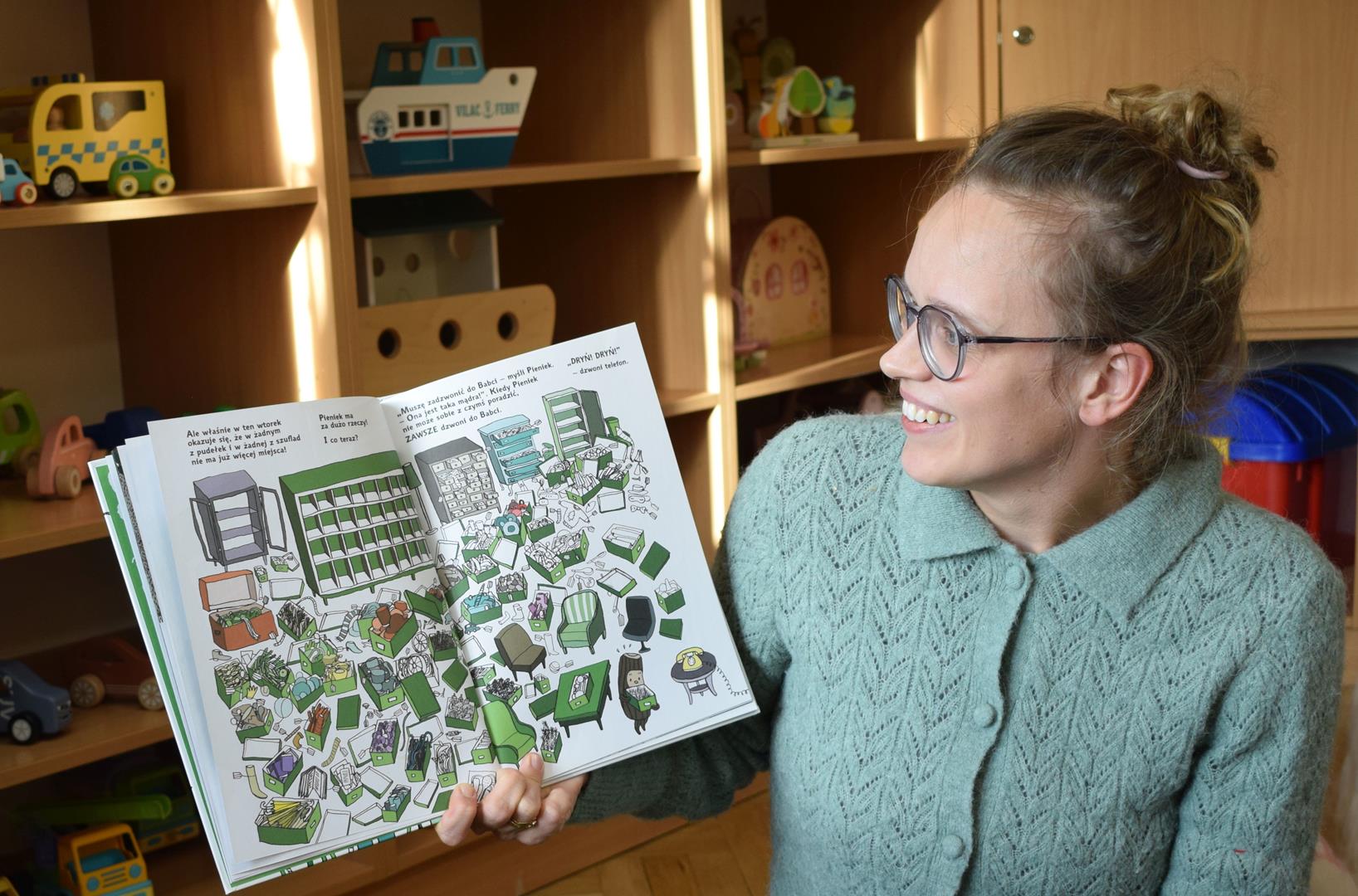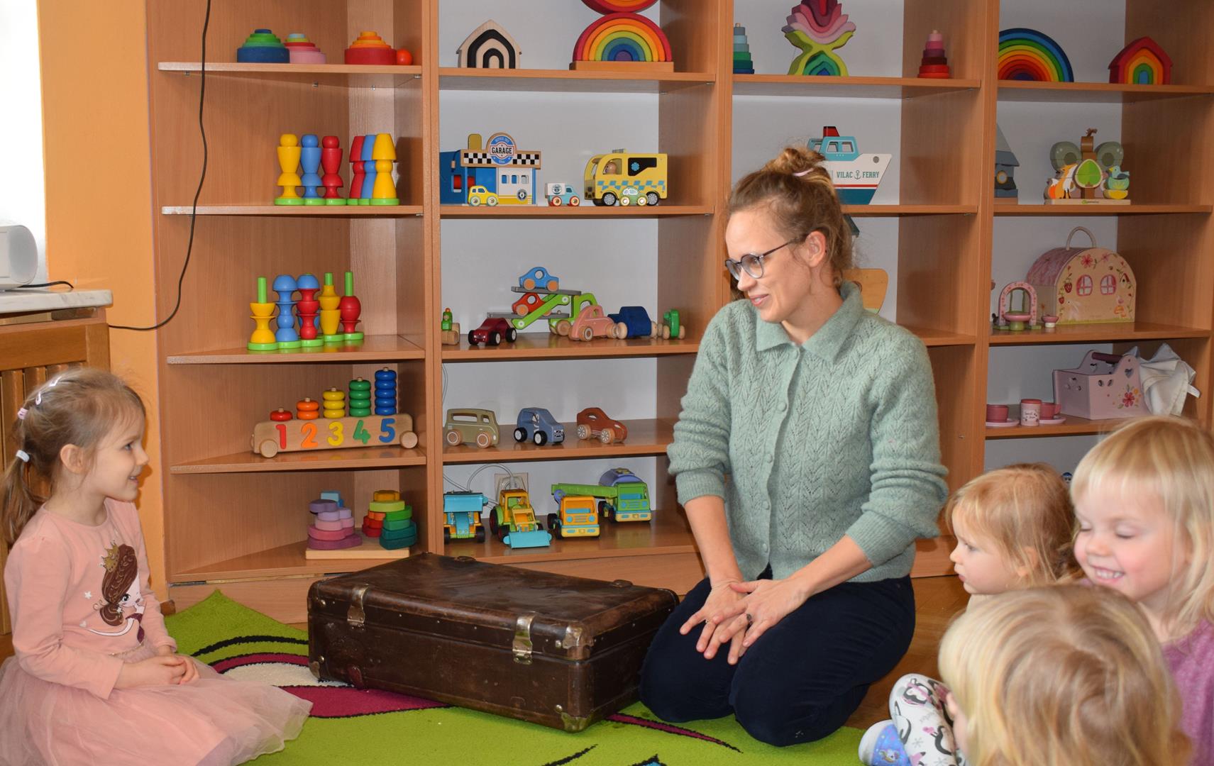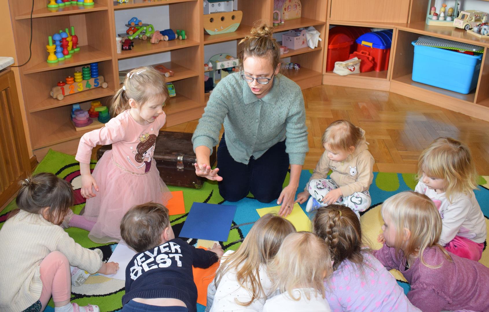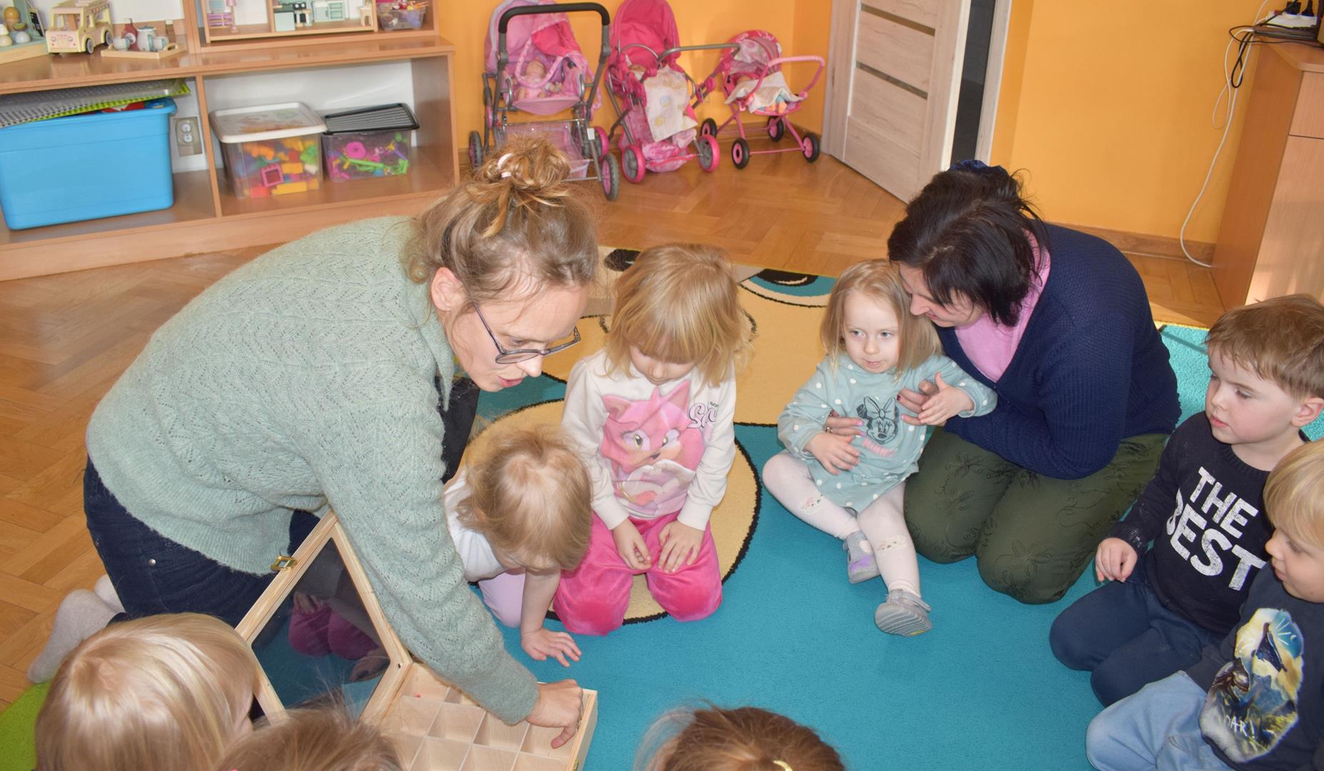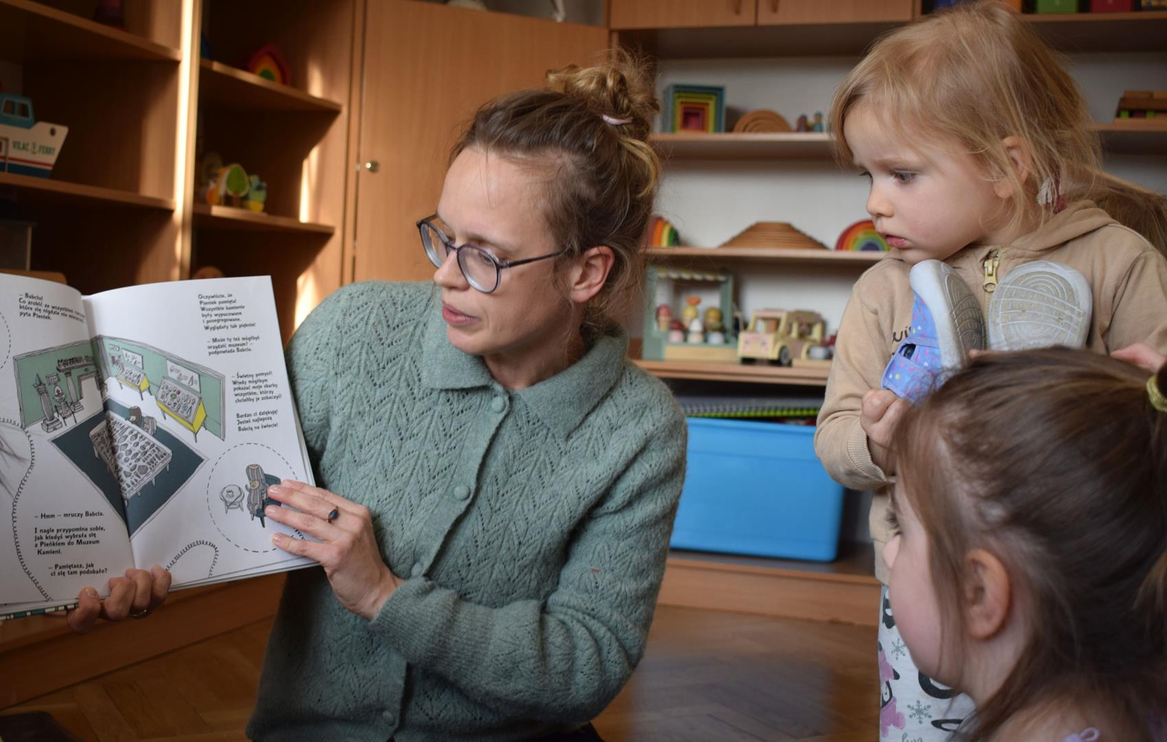 W grupie Delfinki gościliśmy Panią Agatę – mamę Jadzi, która w przystępny sposób opowiedziała dzieciom o muzeum. Pani Agata przyniosła ze sobą ogromną walizkę wypełnioną różnymi skarbami, które stopniowo pokazywała. Na początku wyjęła ilustracje różnych eksponatów muzealnych, skrywających swoją historię, które dzieci wnikliwie oglądały i próbowały nazywać. Z książki „Pieniek otwiera muzeum” autorstwa norweskiej pisarki i ilustratorki Åshild Kanstad Johnsen przedszkolaki poznały sympatycznego Pieńka, który uwielbia spacerować po lesie i kolekcjonować znalezione tam „skarby” – m.in. kamyki, szyszki, patyki i pióra. Gdy w jego leśnym domku zaczyna brakować miejsca na nowe znaleziska, za namową babci postanawia skatalogować swoje zbiory i otworzyć własne muzeum. Przedszkolaki zainspirowane Pieńkiem wspólnie stworzyły swoje muzeum w przyniesionej przez Panią Agatę skrzyni. Z tajemniczego worka losowały różne „skarby” i według ustalonego „klucza” je porządkowały. Jako, że Pani Agata zawodowo związana jest z Muzeum w Łazienkach, z wielkiej walizki wyłoniła się książka pt. „Muzeum zachwytów. Malarski przewodnik po Łazienkach Królewskich”. Ilustracje z przewodnika posłużyły do krótkiej zabawy w „bystre oczko”. Na koniec Pani Agata obdarowała dzieci zestawem naklejek do stworzenia własnego muzeum w domu, np. w zeszycie, na kartce… Bardzo dziękujemy za interesującą lekcję muzealną w przedszkolu oraz za zaproszenie do Łazienek Królewskich.