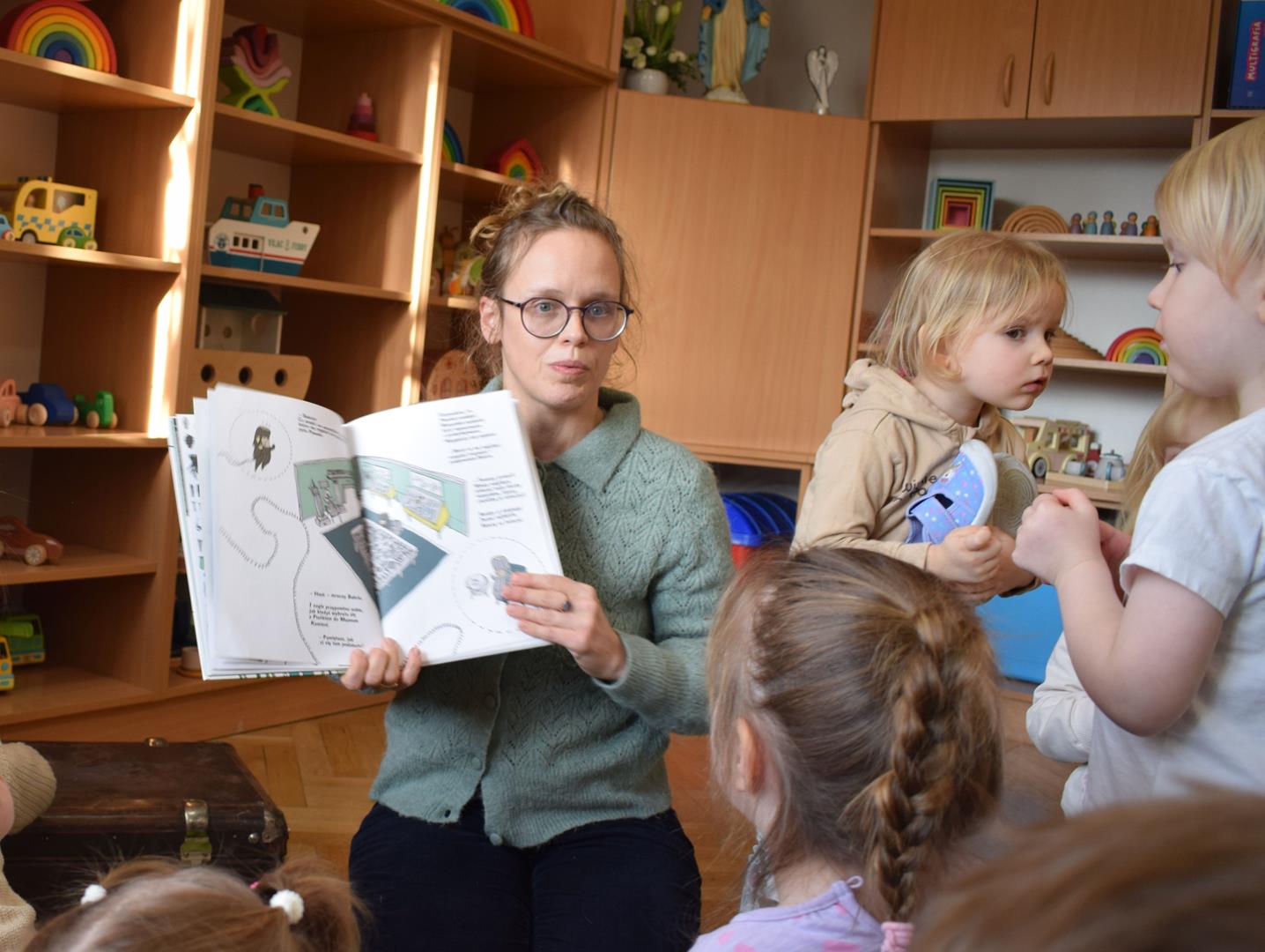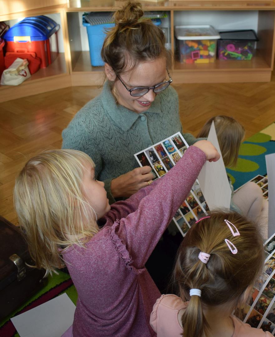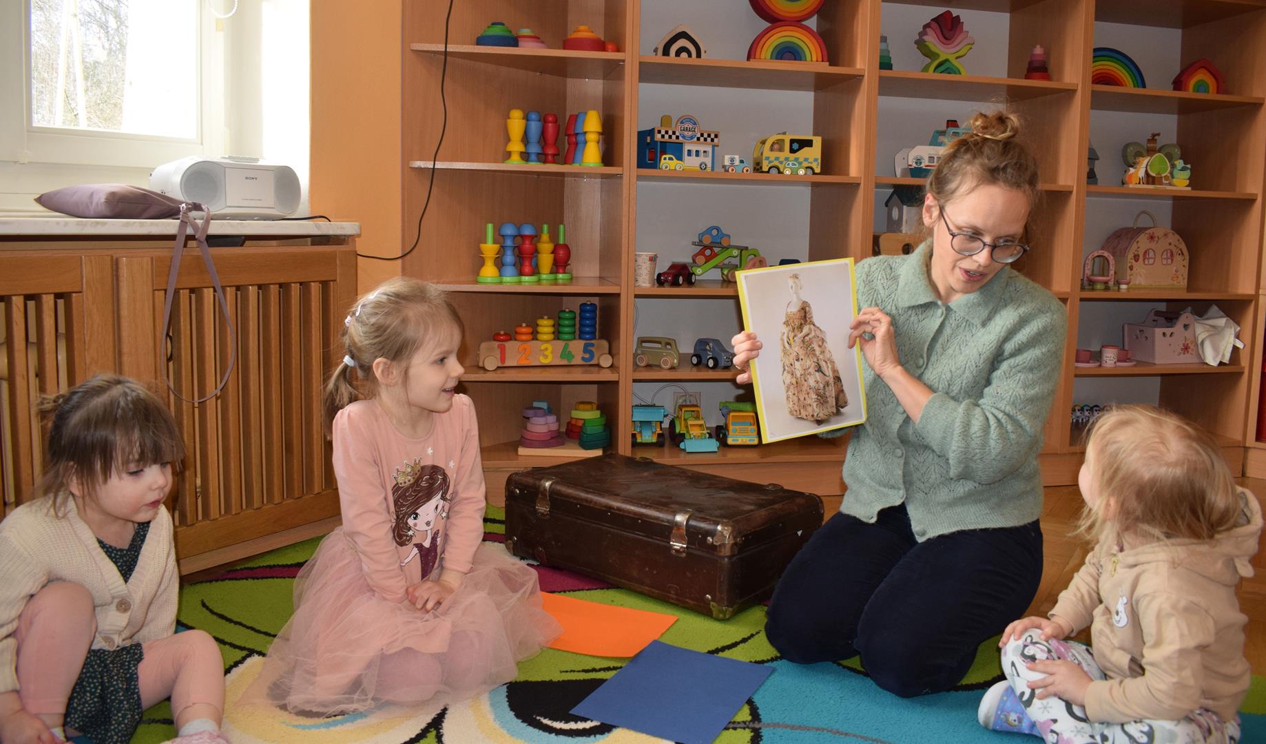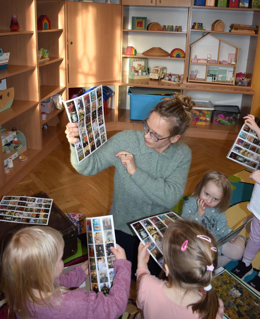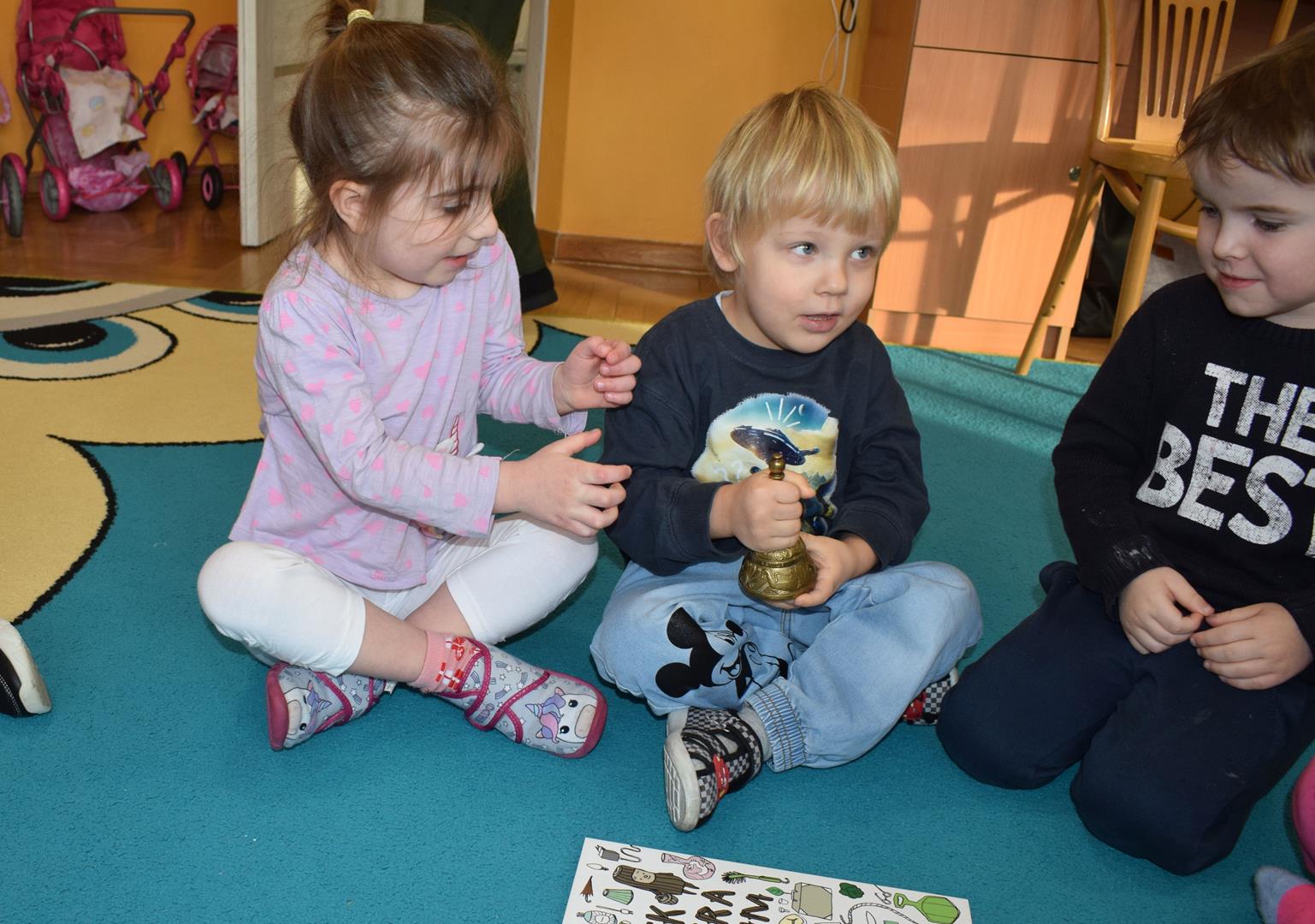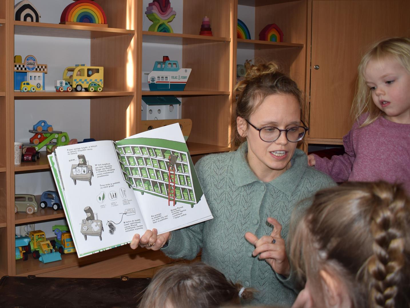 W grupie Delfinki gościliśmy Panią Agatę – mamę Jadzi, która w przystępny sposób opowiedziała dzieciom o muzeum. Pani Agata przyniosła ze sobą ogromną walizkę wypełnioną różnymi skarbami, które stopniowo pokazywała. Na początku wyjęła ilustracje różnych eksponatów muzealnych, skrywających swoją historię, które dzieci wnikliwie oglądały i próbowały nazywać. Z książki „Pieniek otwiera muzeum” autorstwa norweskiej pisarki i ilustratorki Åshild Kanstad Johnsen przedszkolaki poznały sympatycznego Pieńka, który uwielbia spacerować po lesie i kolekcjonować znalezione tam „skarby” – m.in. kamyki, szyszki, patyki i pióra. Gdy w jego leśnym domku zaczyna brakować miejsca na nowe znaleziska, za namową babci postanawia skatalogować swoje zbiory i otworzyć własne muzeum. Przedszkolaki zainspirowane Pieńkiem wspólnie stworzyły swoje muzeum w przyniesionej przez Panią Agatę skrzyni. Z tajemniczego worka losowały różne „skarby” i według ustalonego „klucza” je porządkowały. Jako, że Pani Agata zawodowo związana jest z Muzeum w Łazienkach, z wielkiej walizki wyłoniła się książka pt. „Muzeum zachwytów. Malarski przewodnik po Łazienkach Królewskich”. Ilustracje z przewodnika posłużyły do krótkiej zabawy w „bystre oczko”. Na koniec Pani Agata obdarowała dzieci zestawem naklejek do stworzenia własnego muzeum w domu, np. w zeszycie, na kartce… Bardzo dziękujemy za interesującą lekcję muzealną w przedszkolu oraz za zaproszenie do Łazienek Królewskich.
