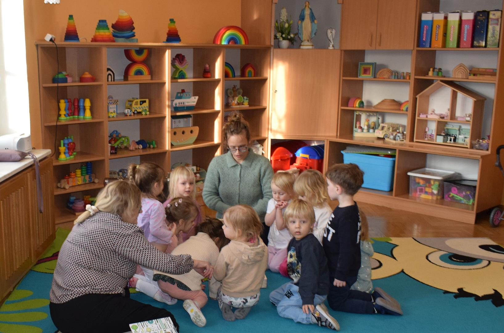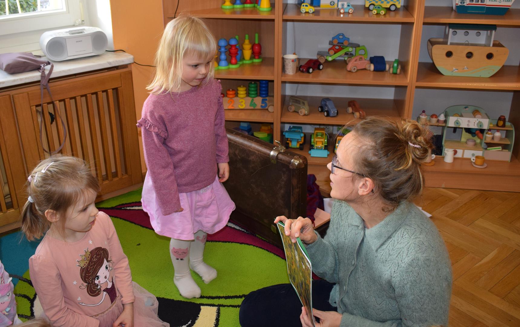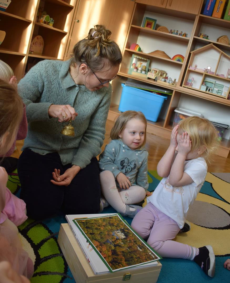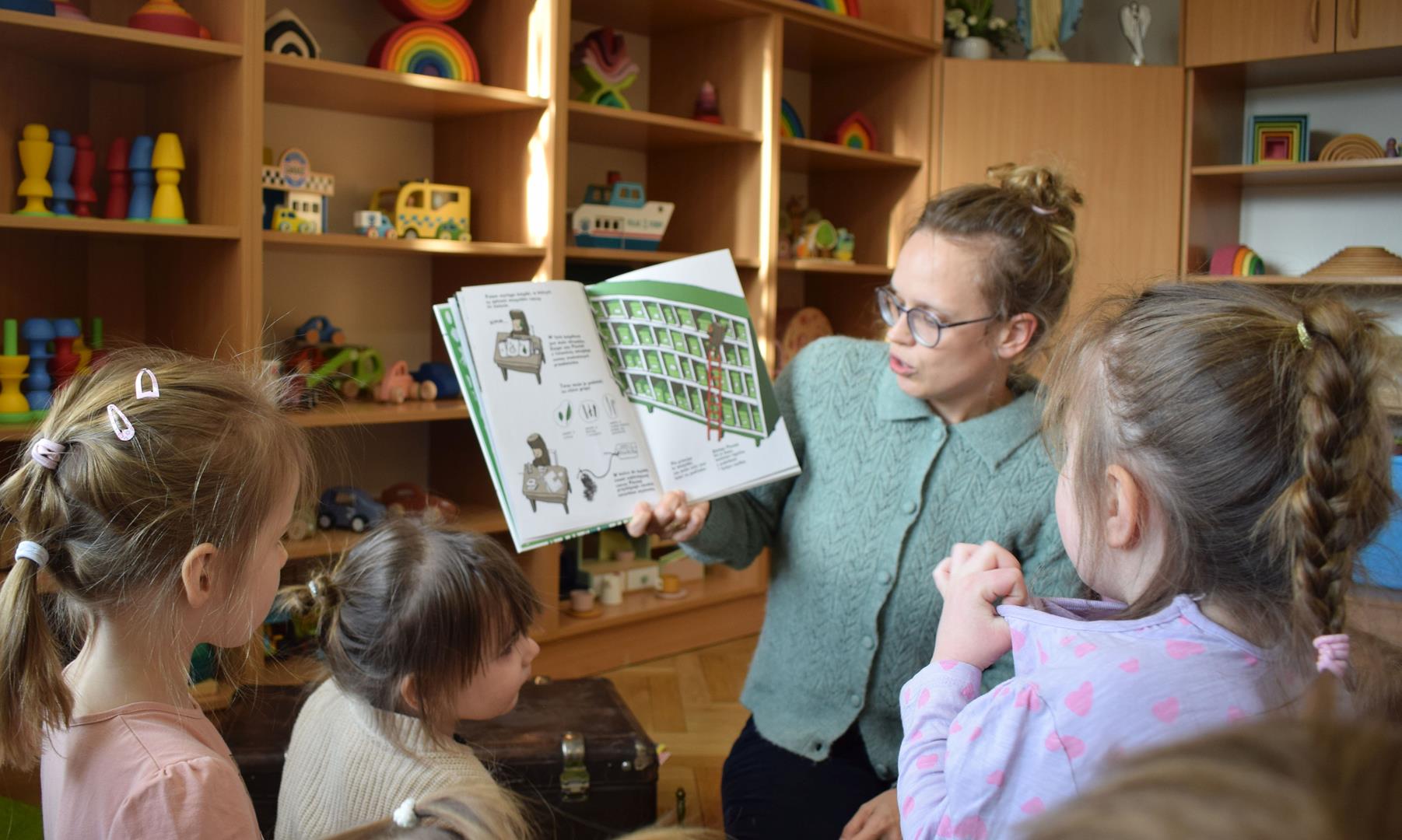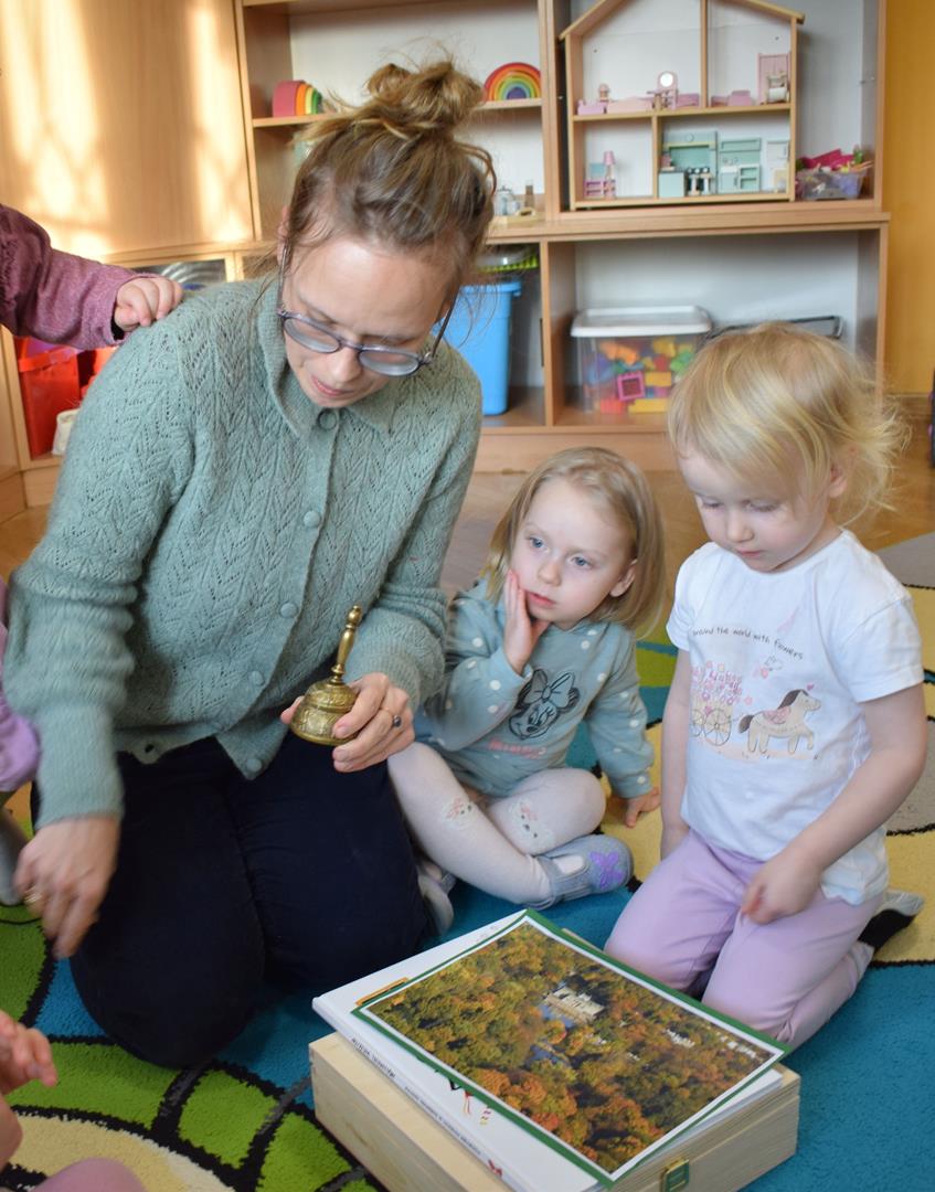 W grupie Delfinki gościliśmy Panią Agatę – mamę Jadzi, która w przystępny sposób opowiedziała dzieciom o muzeum. Pani Agata przyniosła ze sobą ogromną walizkę wypełnioną różnymi skarbami, które stopniowo pokazywała. Na początku wyjęła ilustracje różnych eksponatów muzealnych, skrywających swoją historię, które dzieci wnikliwie oglądały i próbowały nazywać. Z książki „Pieniek otwiera muzeum” autorstwa norweskiej pisarki i ilustratorki Åshild Kanstad Johnsen przedszkolaki poznały sympatycznego Pieńka, który uwielbia spacerować po lesie i kolekcjonować znalezione tam „skarby” – m.in. kamyki, szyszki, patyki i pióra. Gdy w jego leśnym domku zaczyna brakować miejsca na nowe znaleziska, za namową babci postanawia skatalogować swoje zbiory i otworzyć własne muzeum. Przedszkolaki zainspirowane Pieńkiem wspólnie stworzyły swoje muzeum w przyniesionej przez Panią Agatę skrzyni. Z tajemniczego worka losowały różne „skarby” i według ustalonego „klucza” je porządkowały. Jako, że Pani Agata zawodowo związana jest z Muzeum w Łazienkach, z wielkiej walizki wyłoniła się książka pt. „Muzeum zachwytów. Malarski przewodnik po Łazienkach Królewskich”. Ilustracje z przewodnika posłużyły do krótkiej zabawy w „bystre oczko”. Na koniec Pani Agata obdarowała dzieci zestawem naklejek do stworzenia własnego muzeum w domu, np. w zeszycie, na kartce… Bardzo dziękujemy za interesującą lekcję muzealną w przedszkolu oraz za zaproszenie do Łazienek Królewskich.